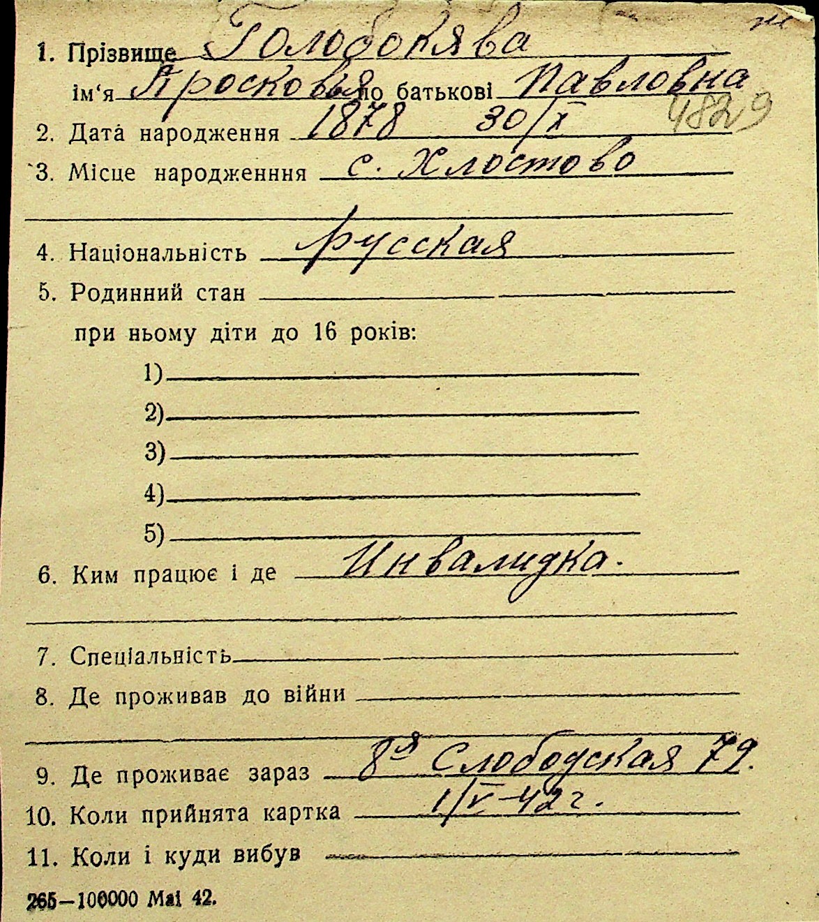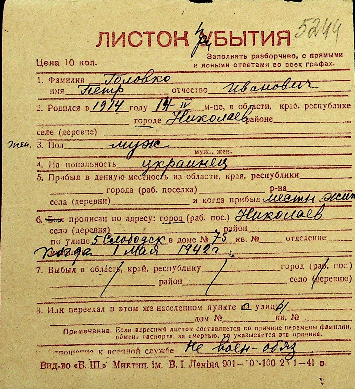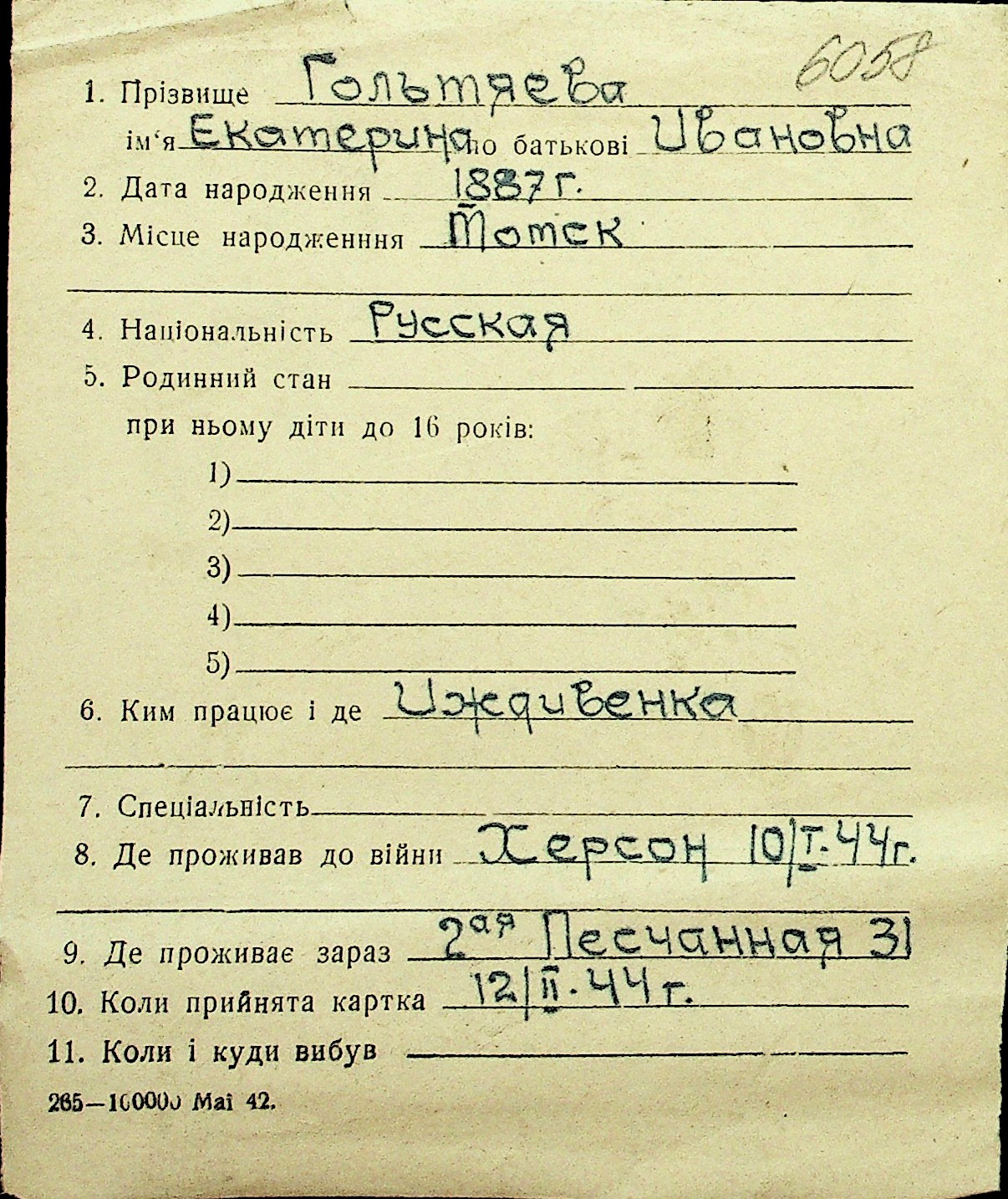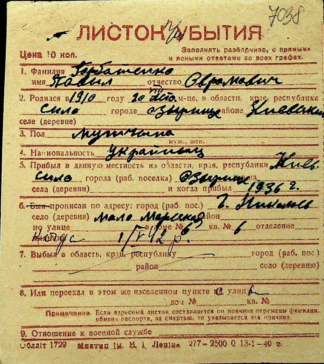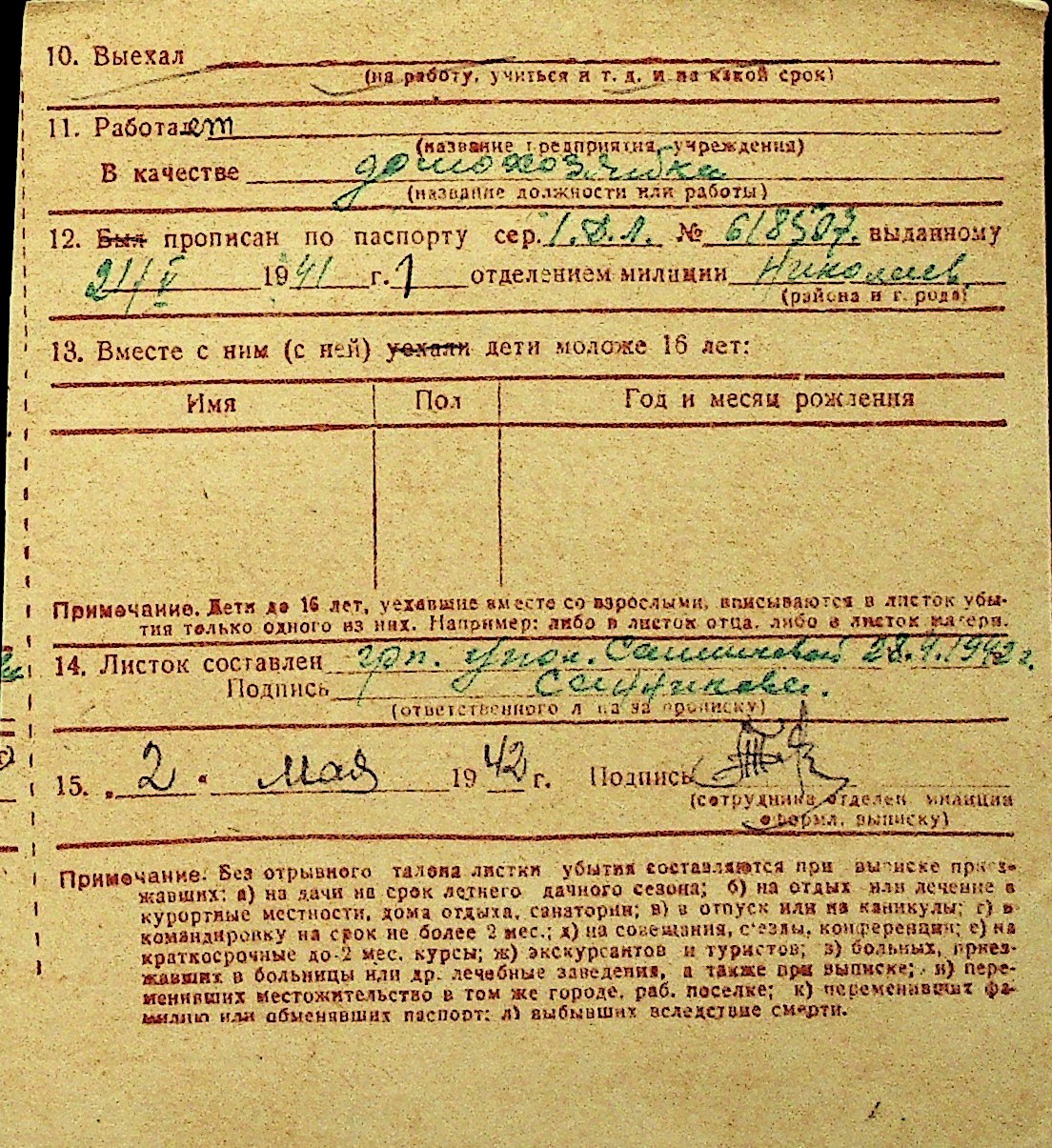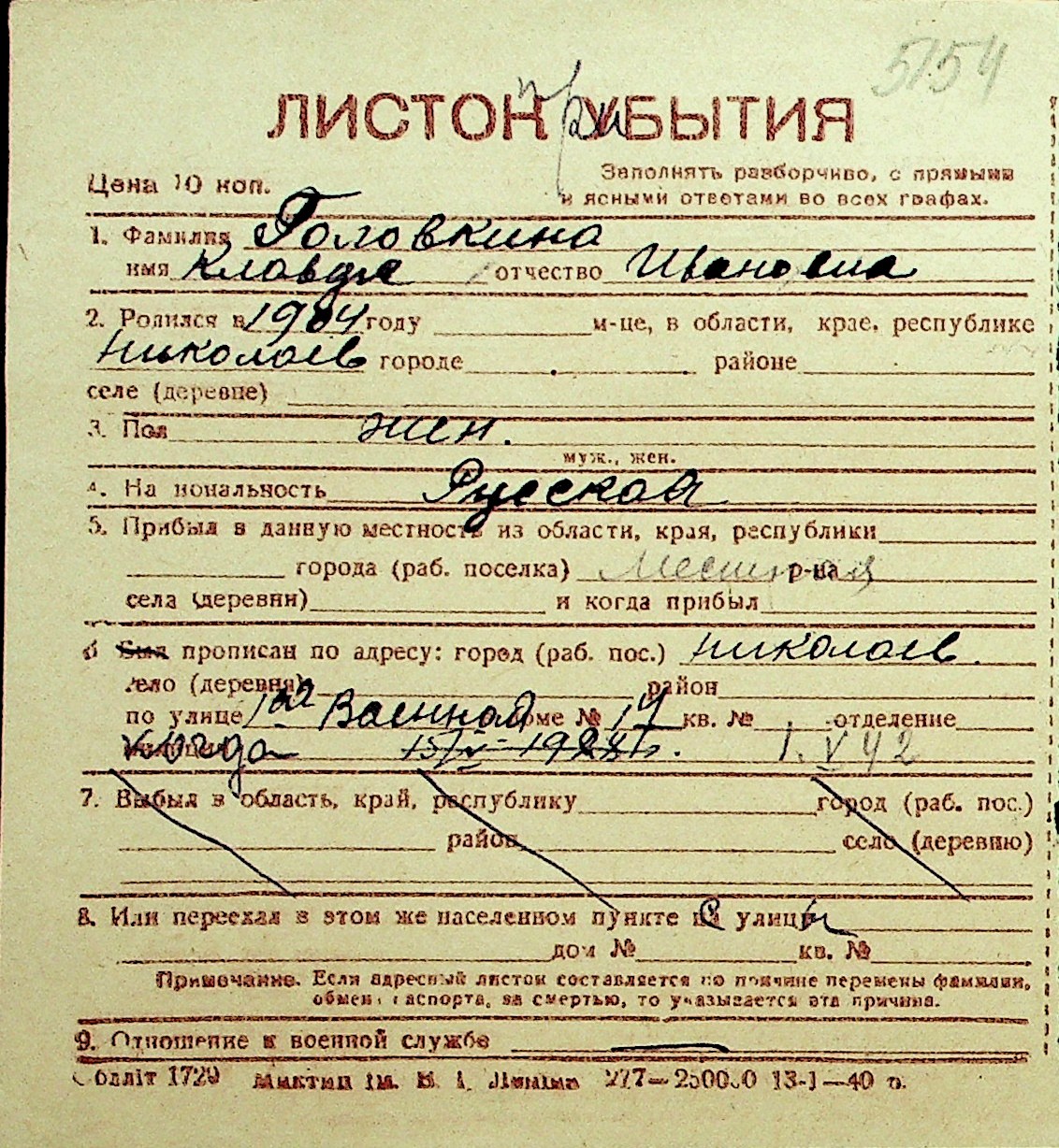 • • Перелік карток до фонду № Н-1016