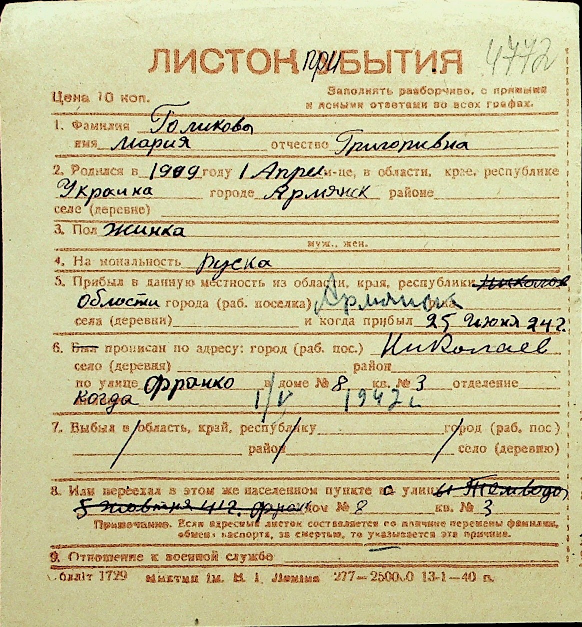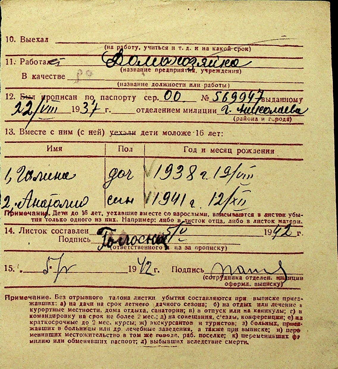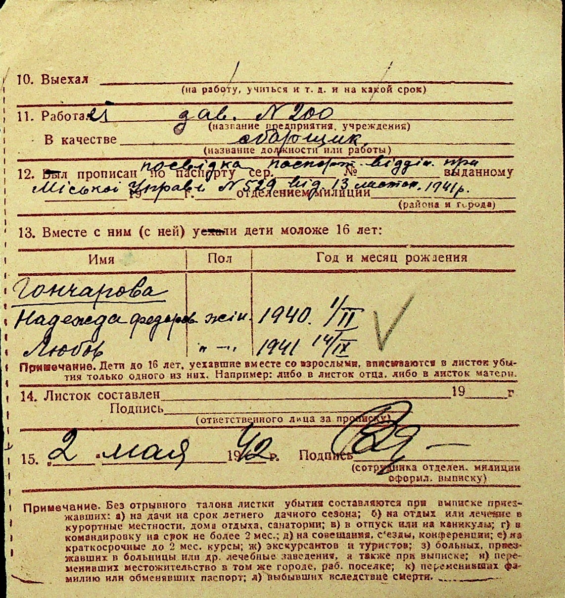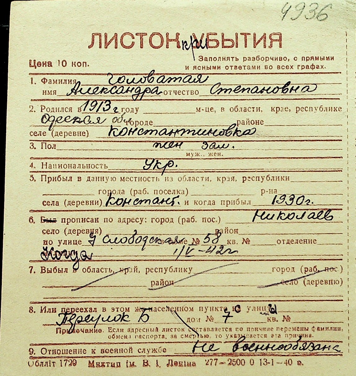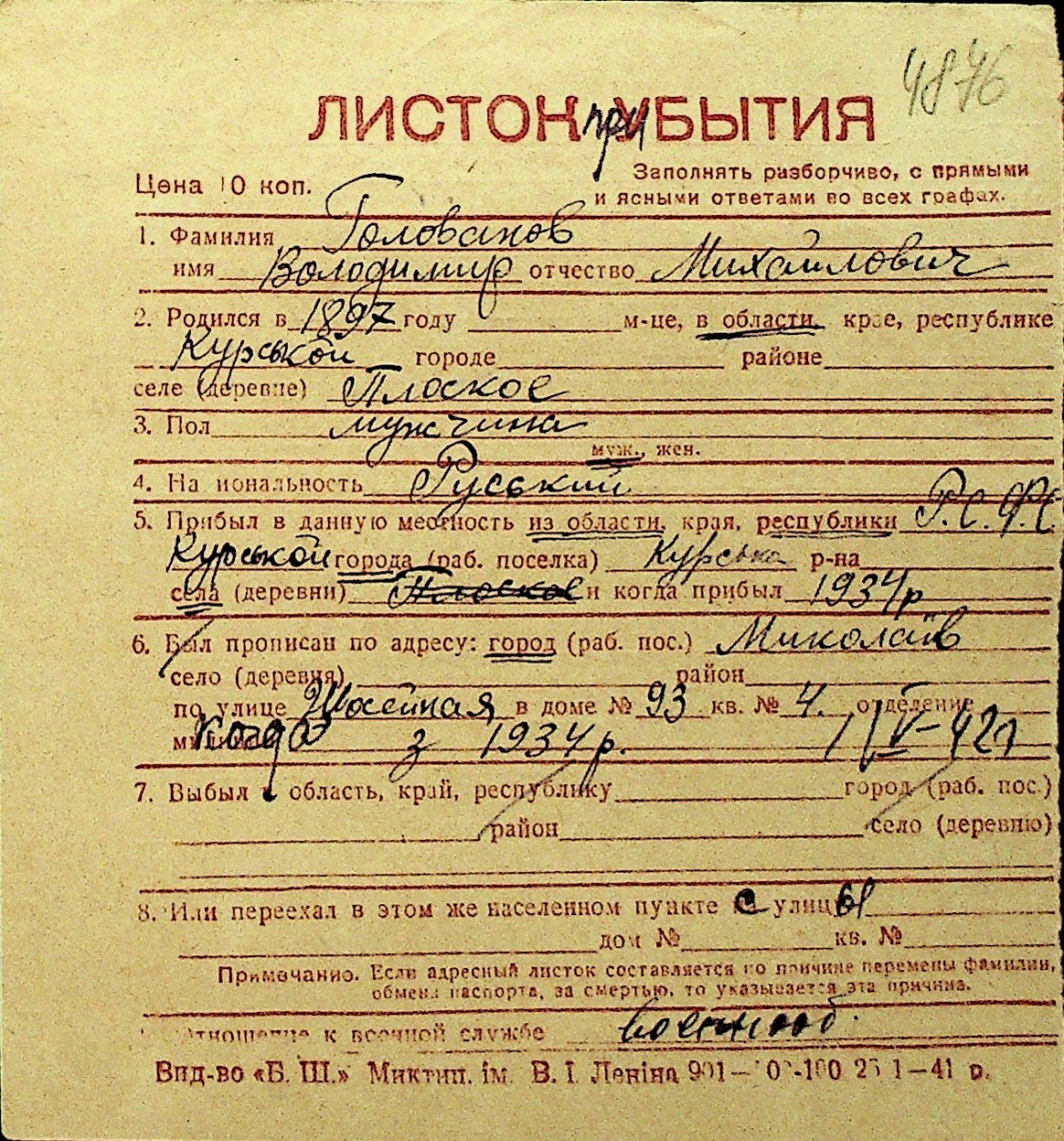 • • Перелік карток до фонду № Н-1016