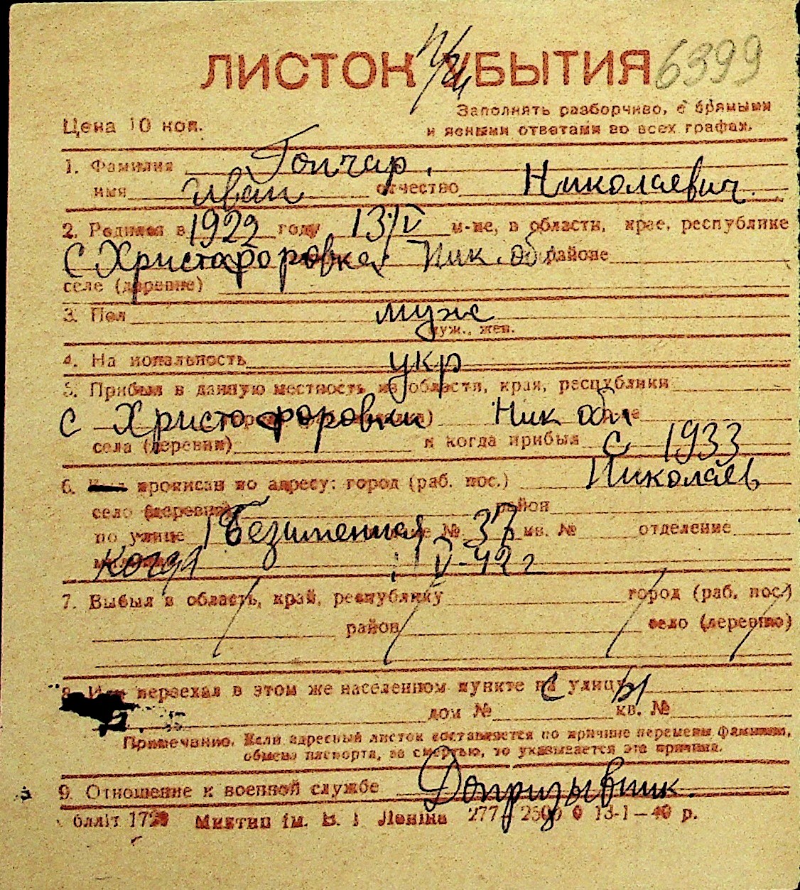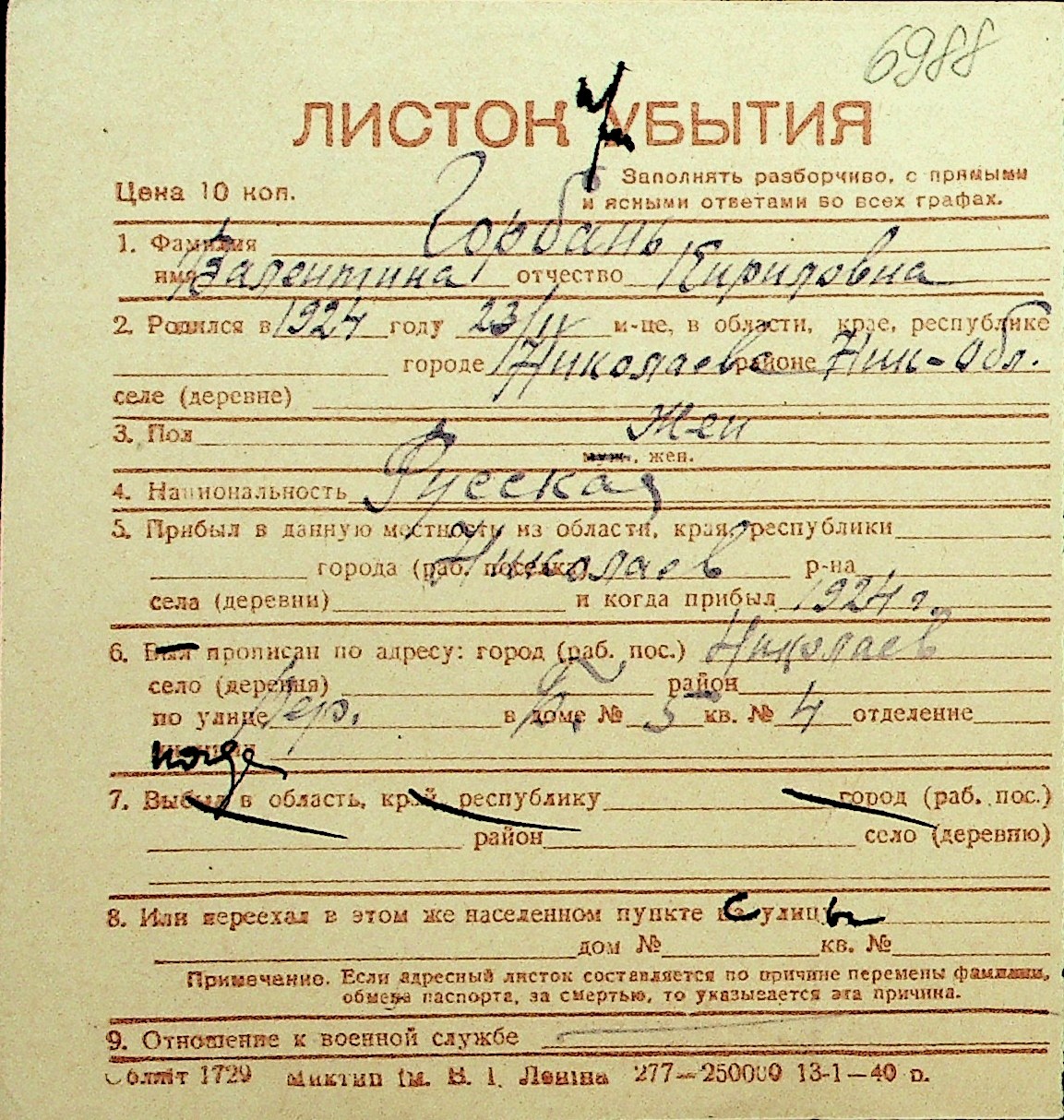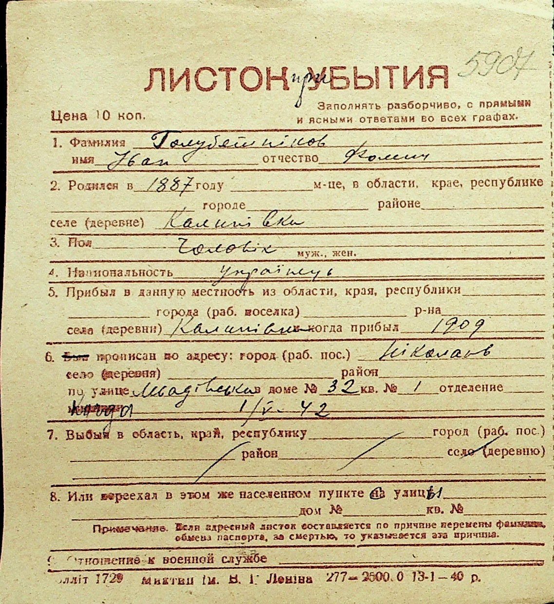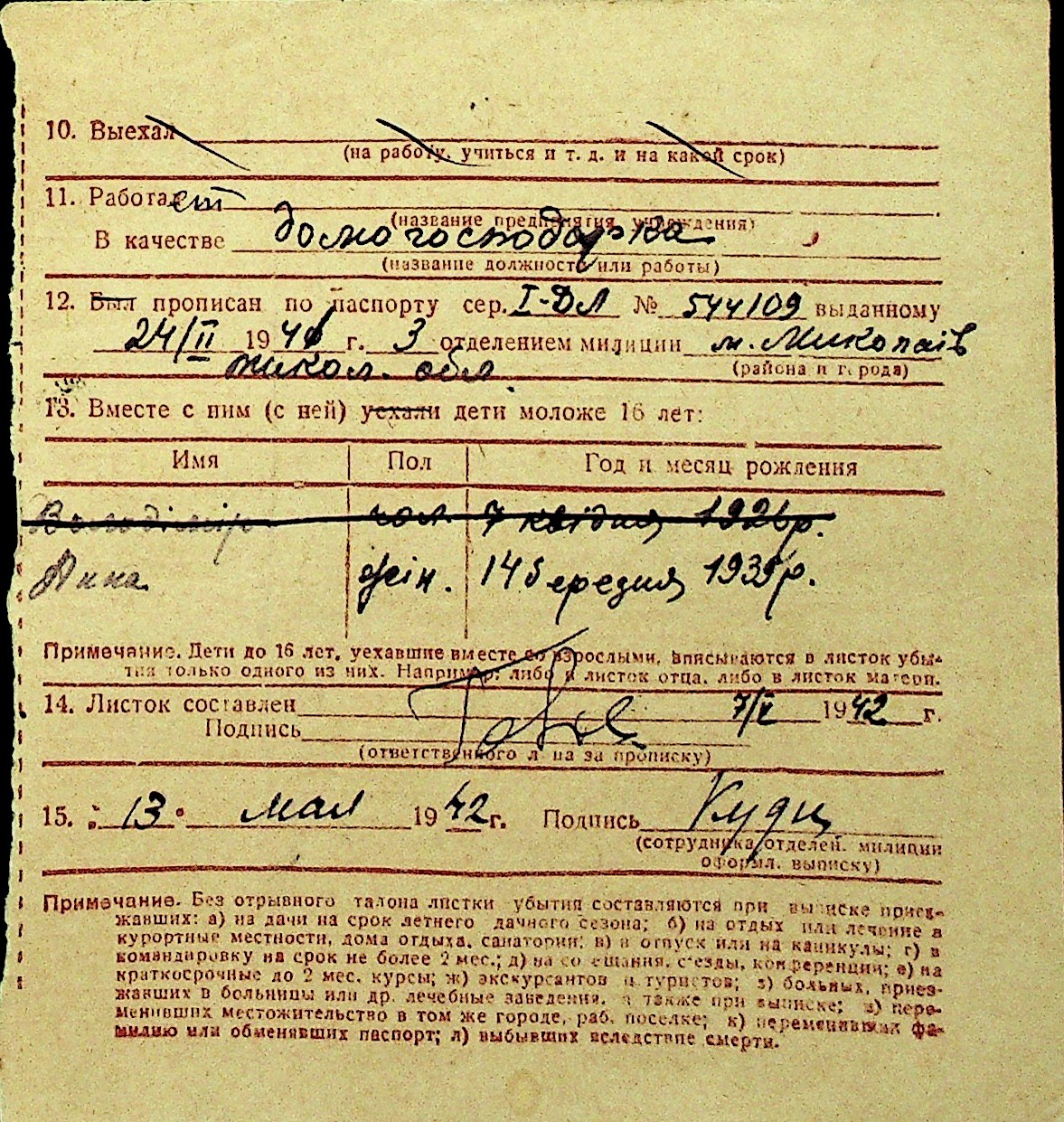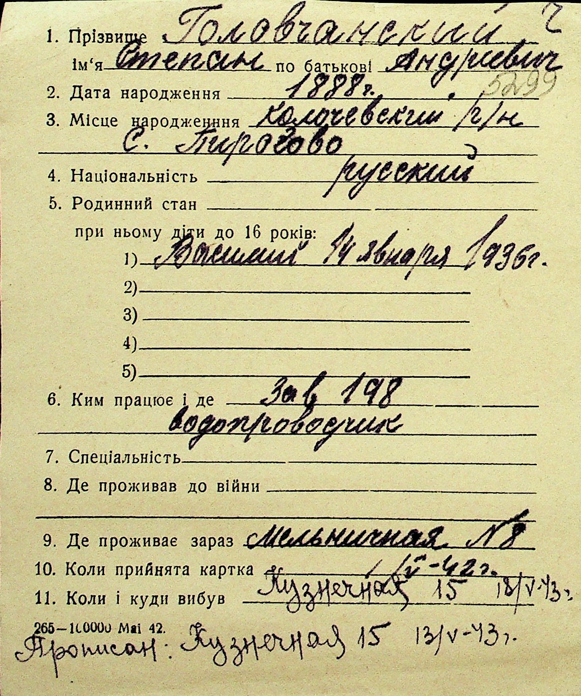 • • Перелік карток до фонду № Н-1016