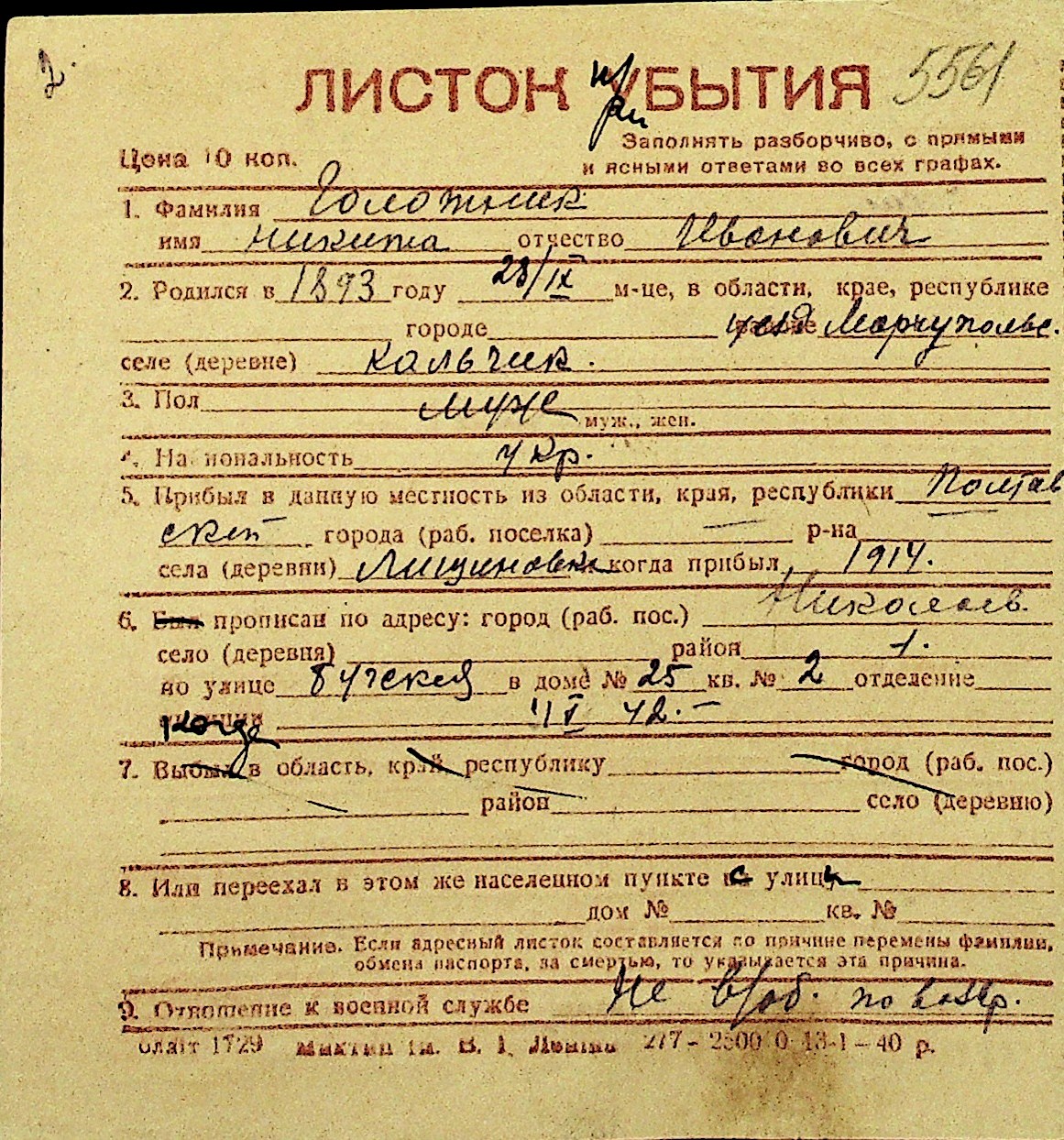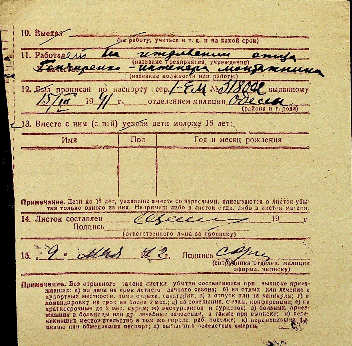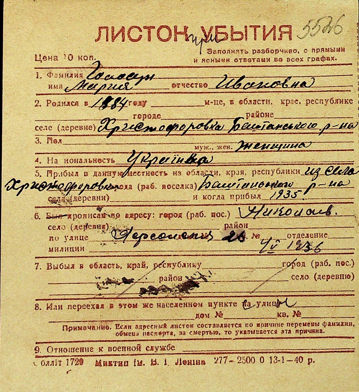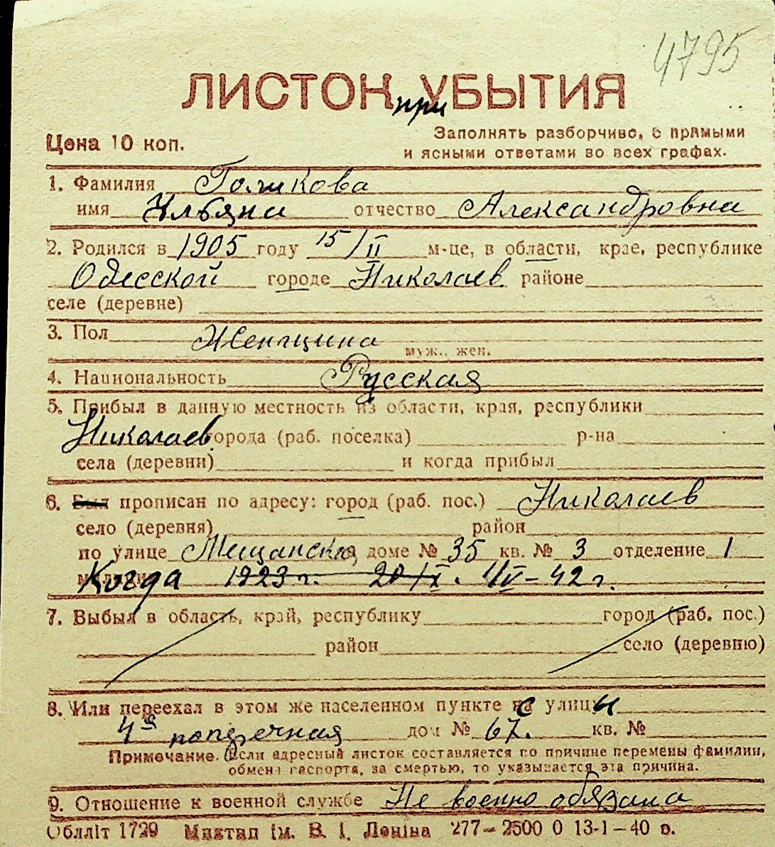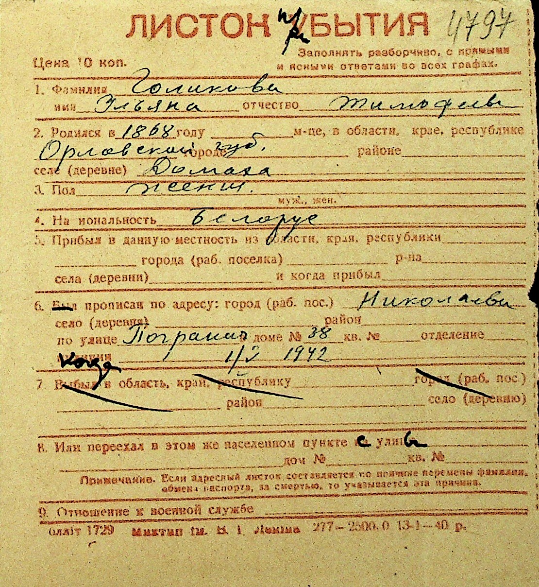 • • Перелік карток до фонду № Н-1016