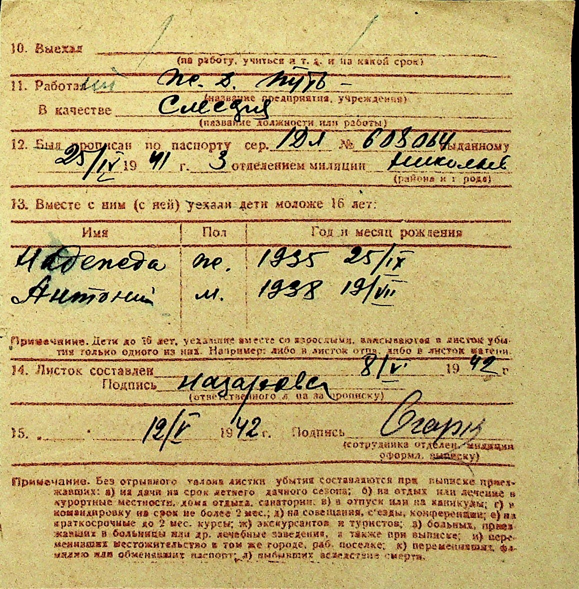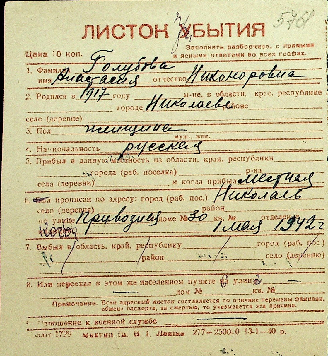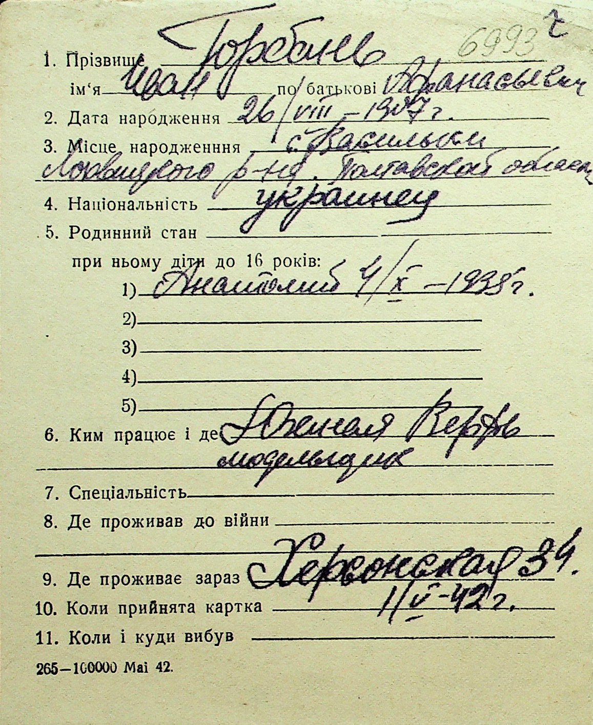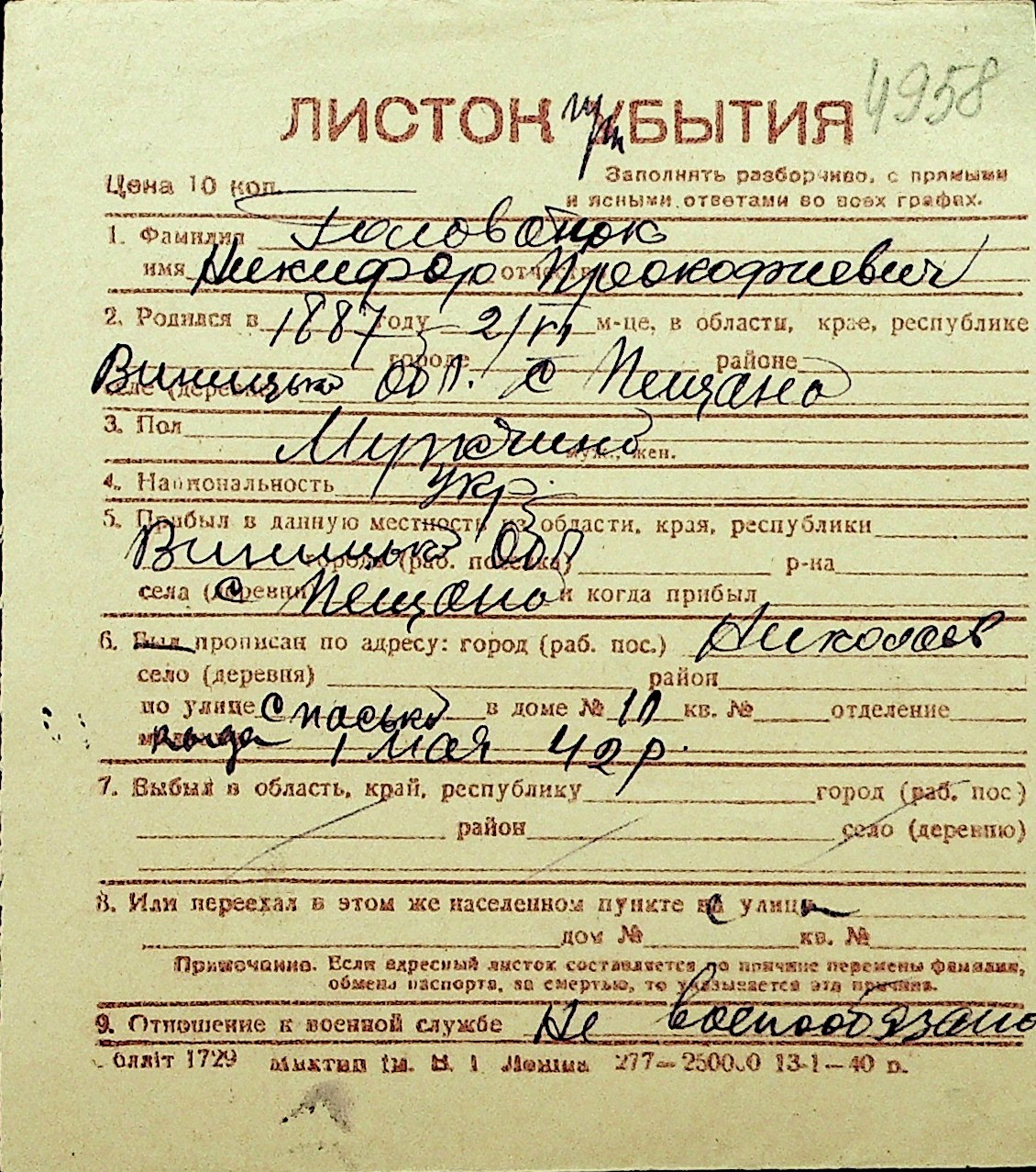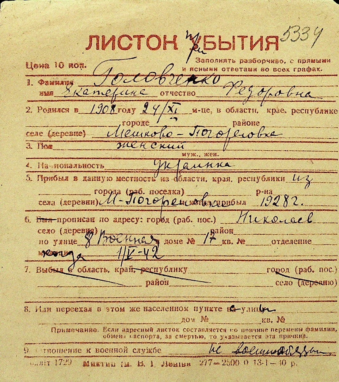 • • Перелік карток до фонду № Н-1016