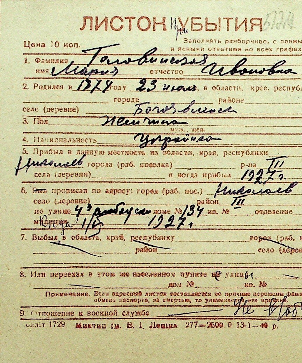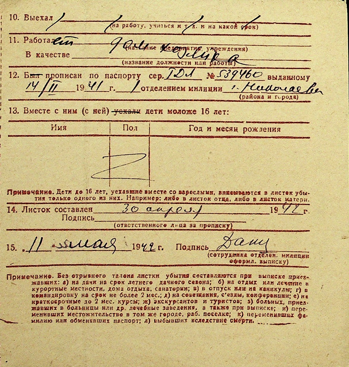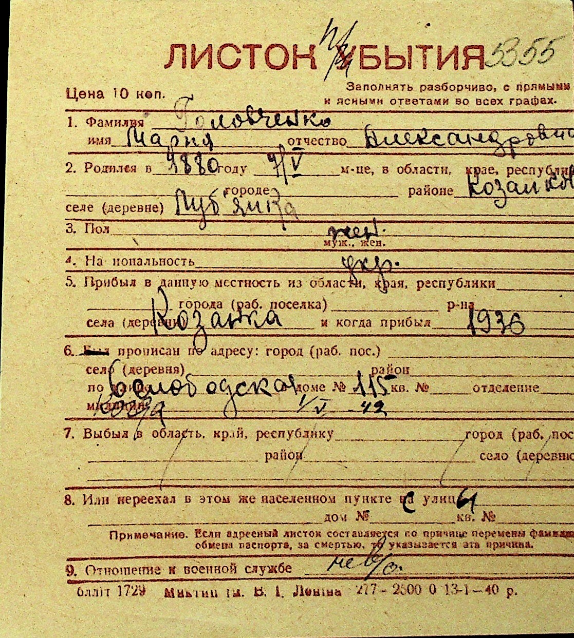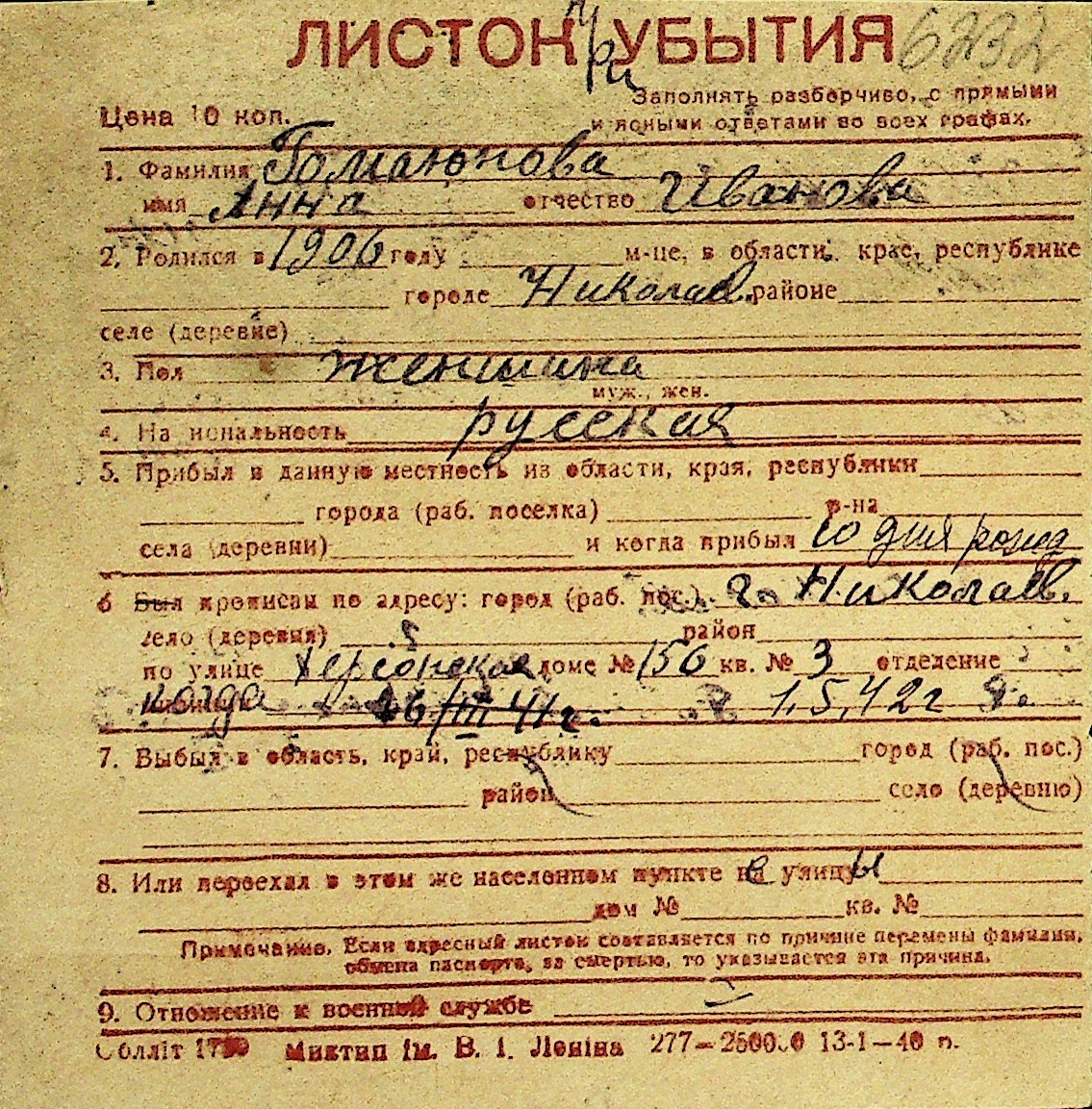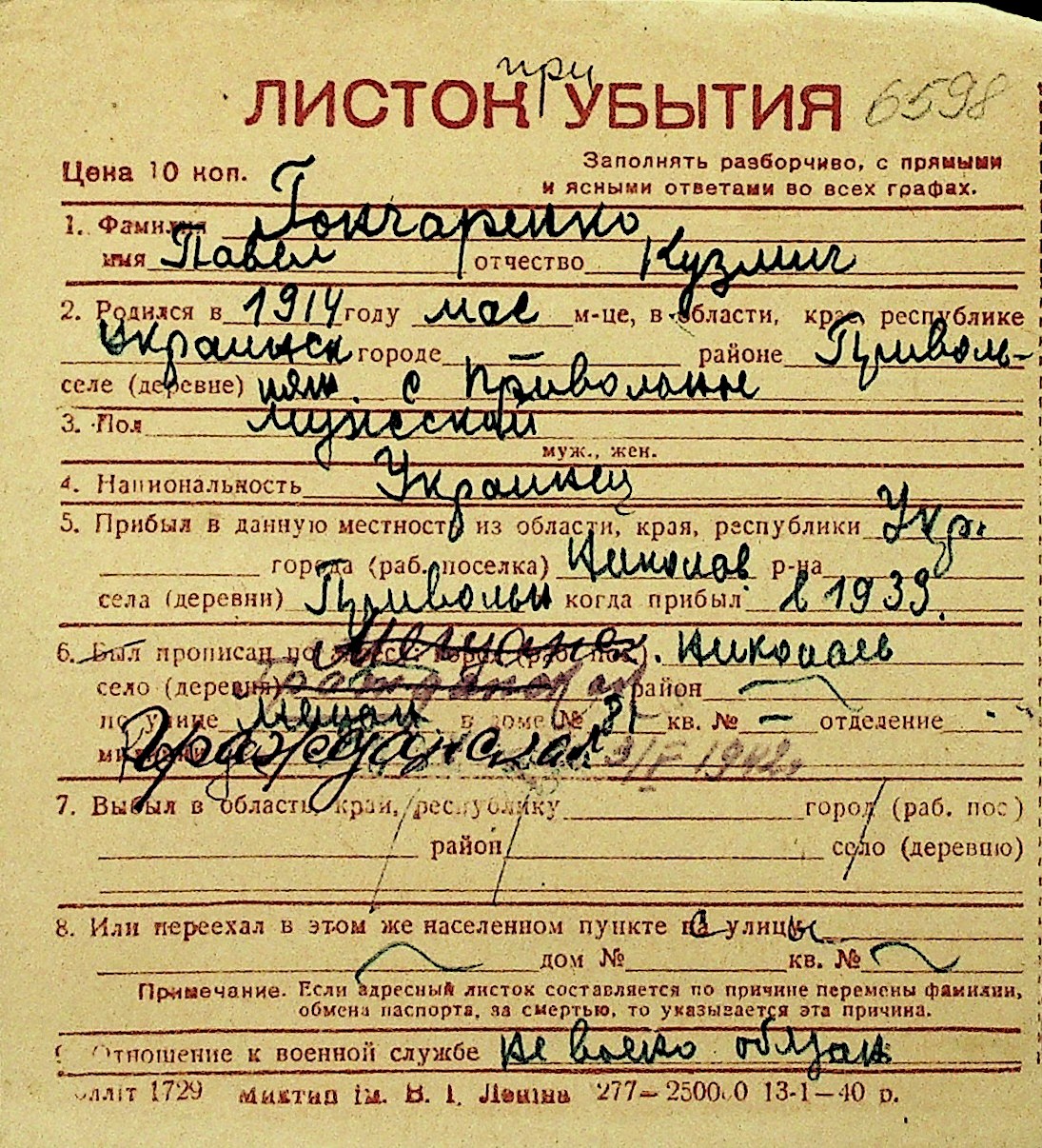 • • Перелік карток до фонду № Н-1016