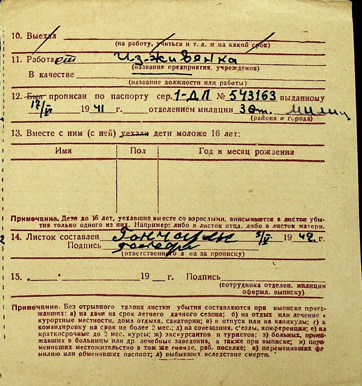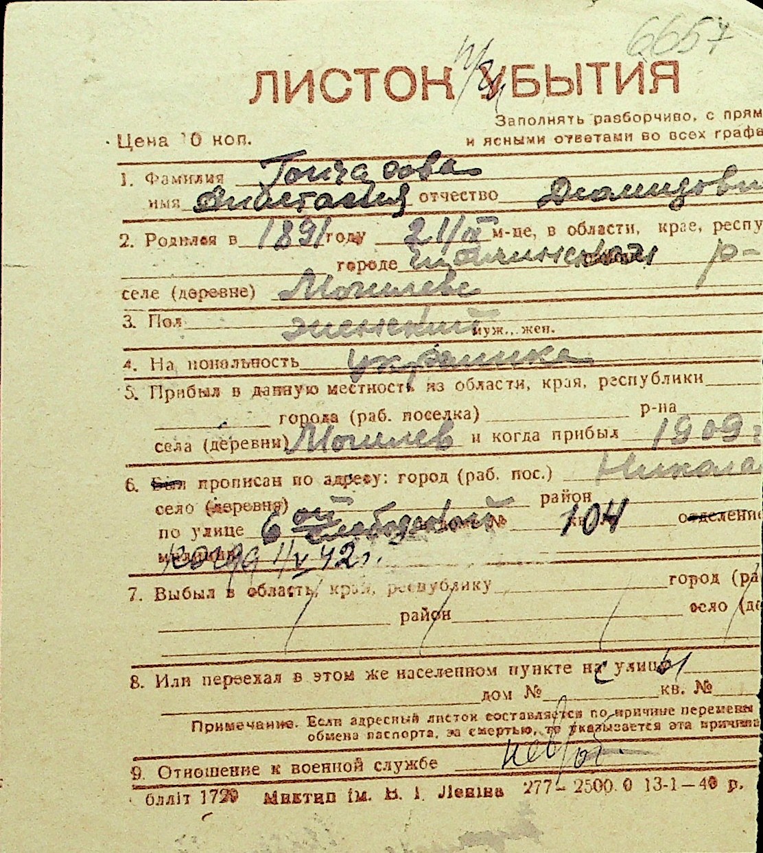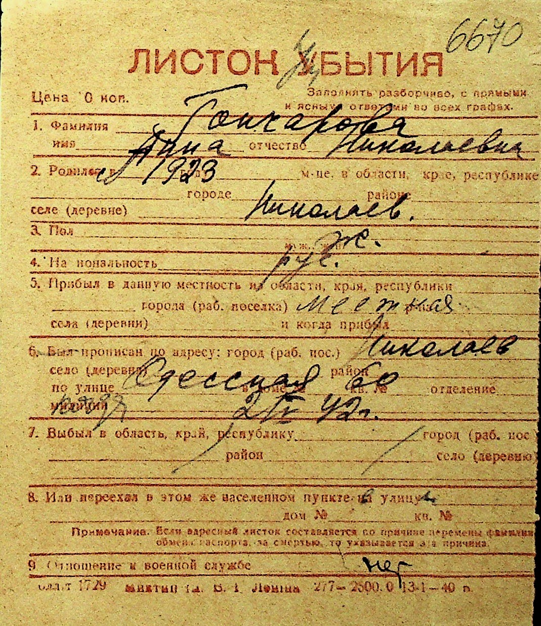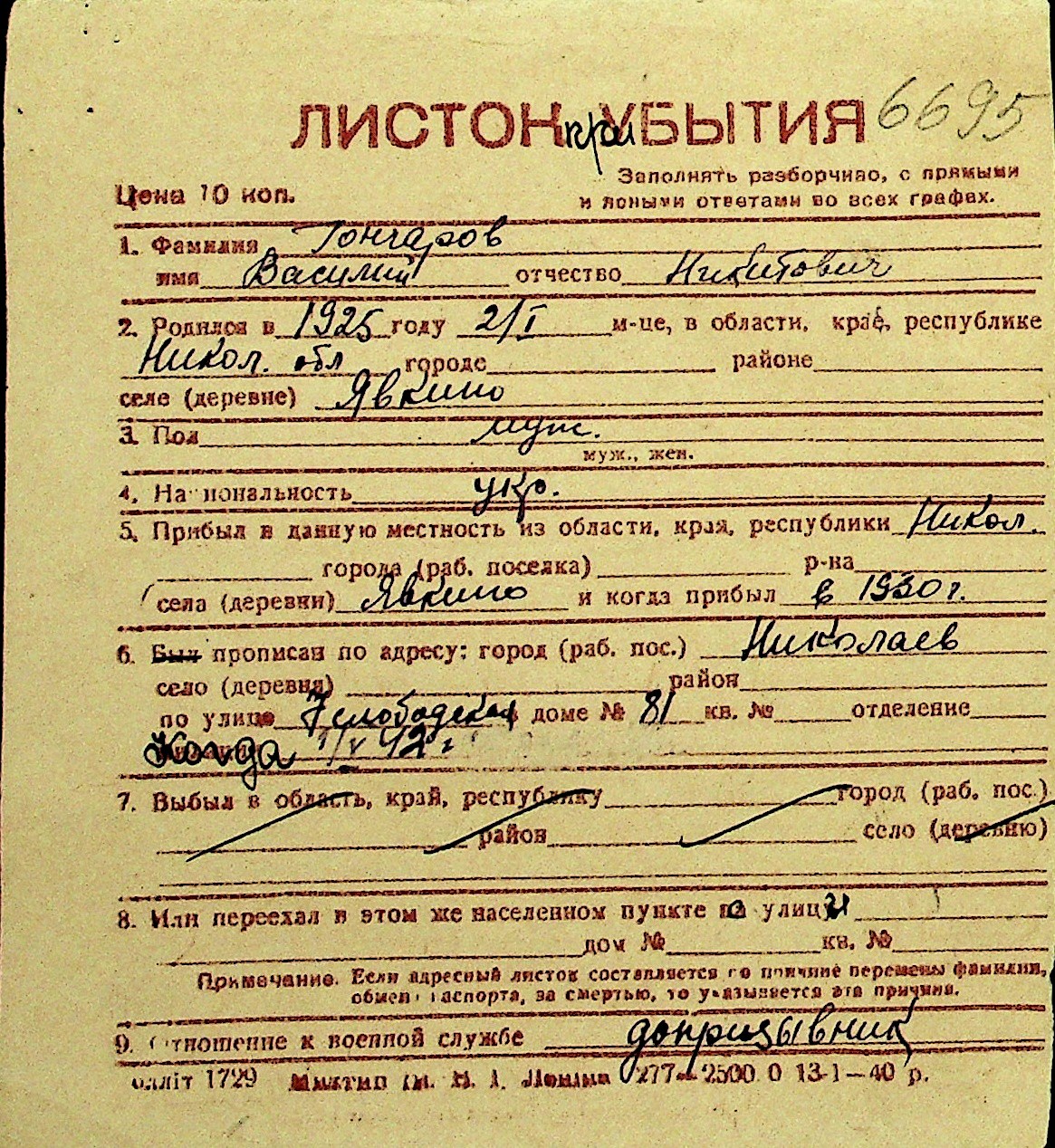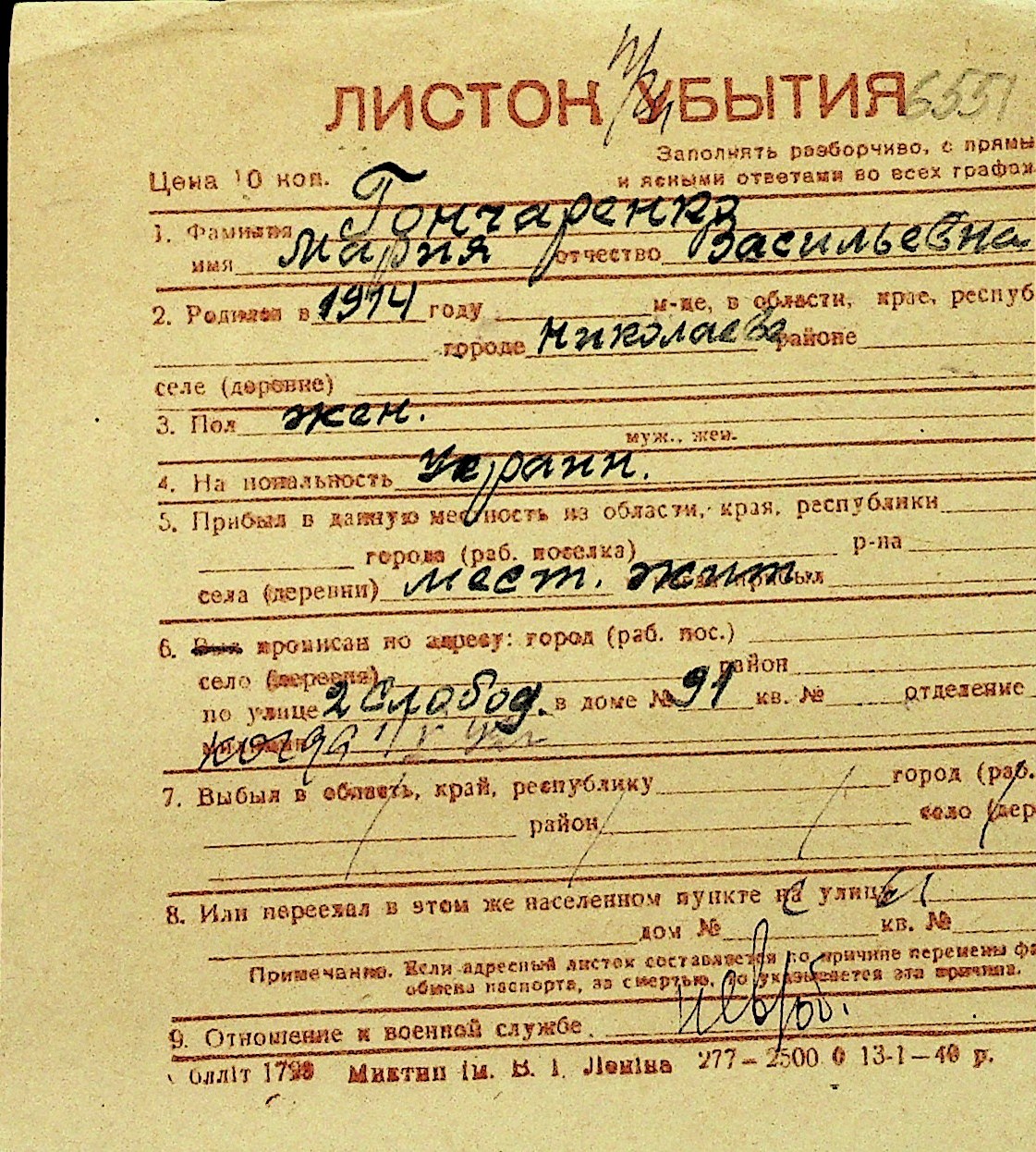 • • Перелік карток до фонду № Н-1016