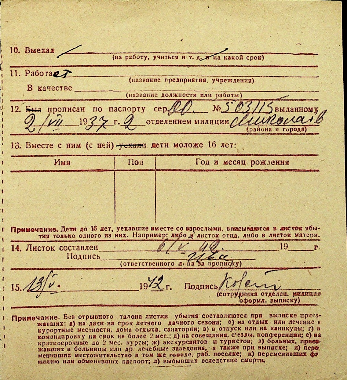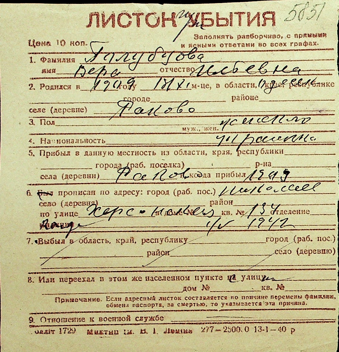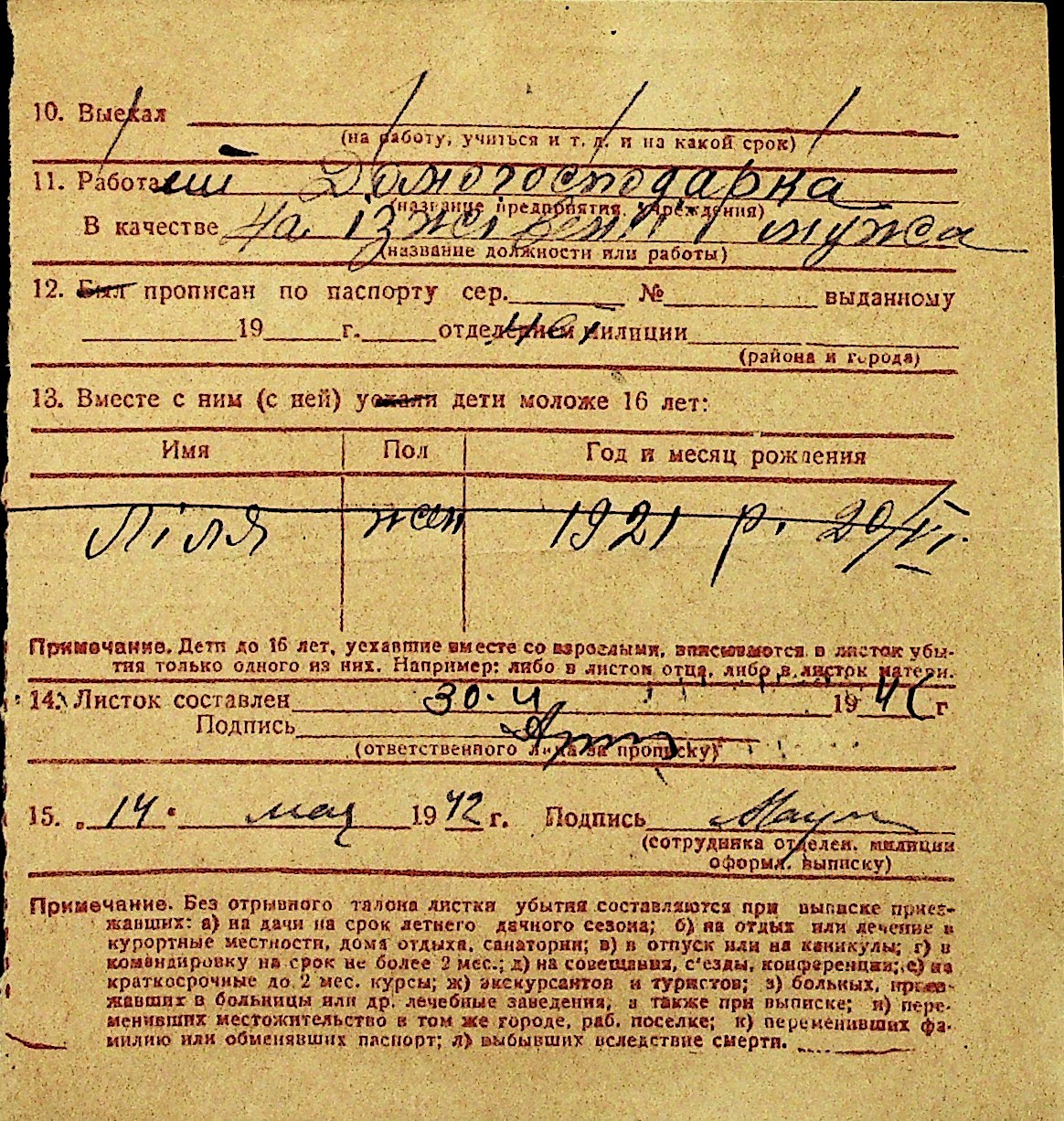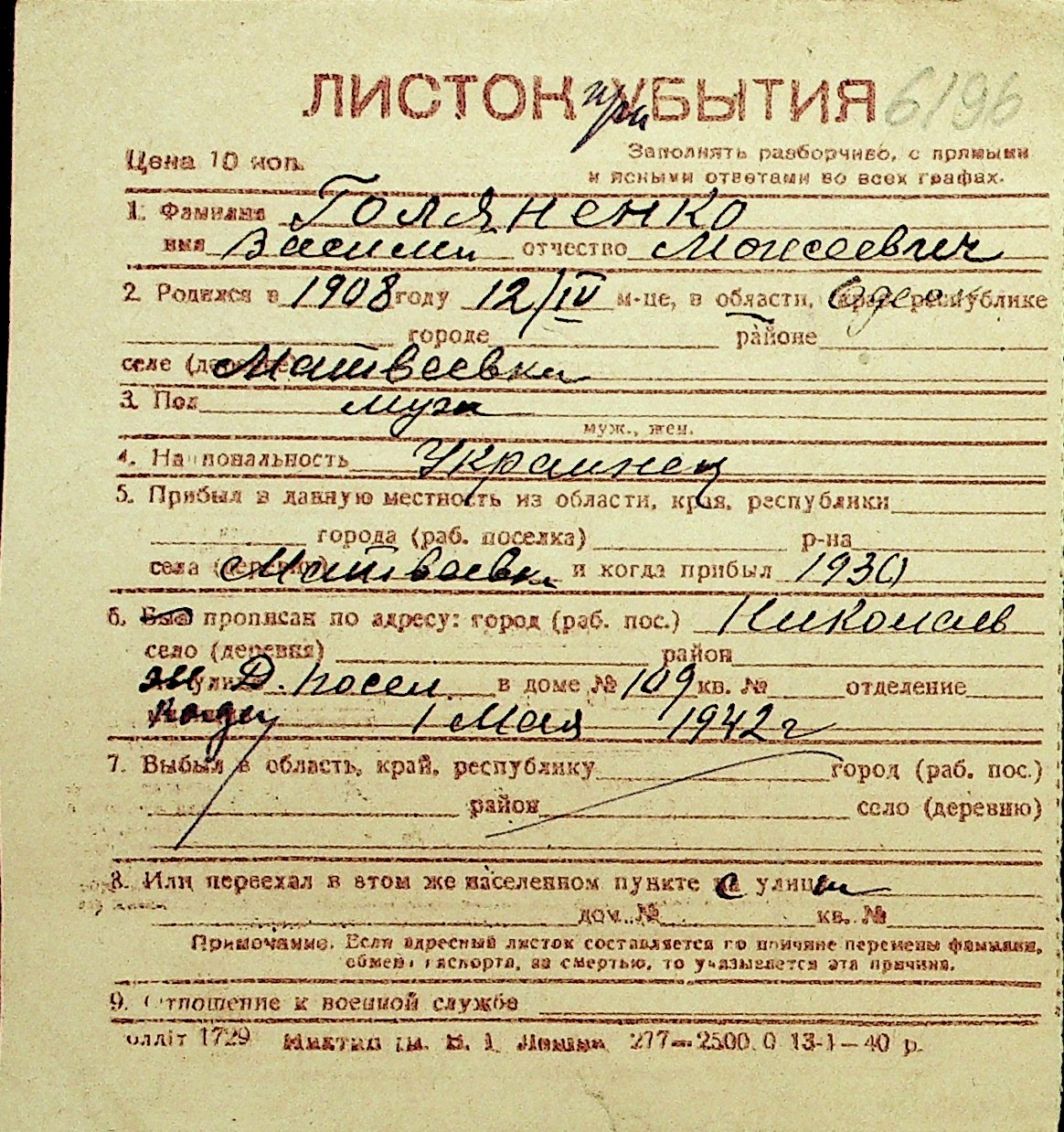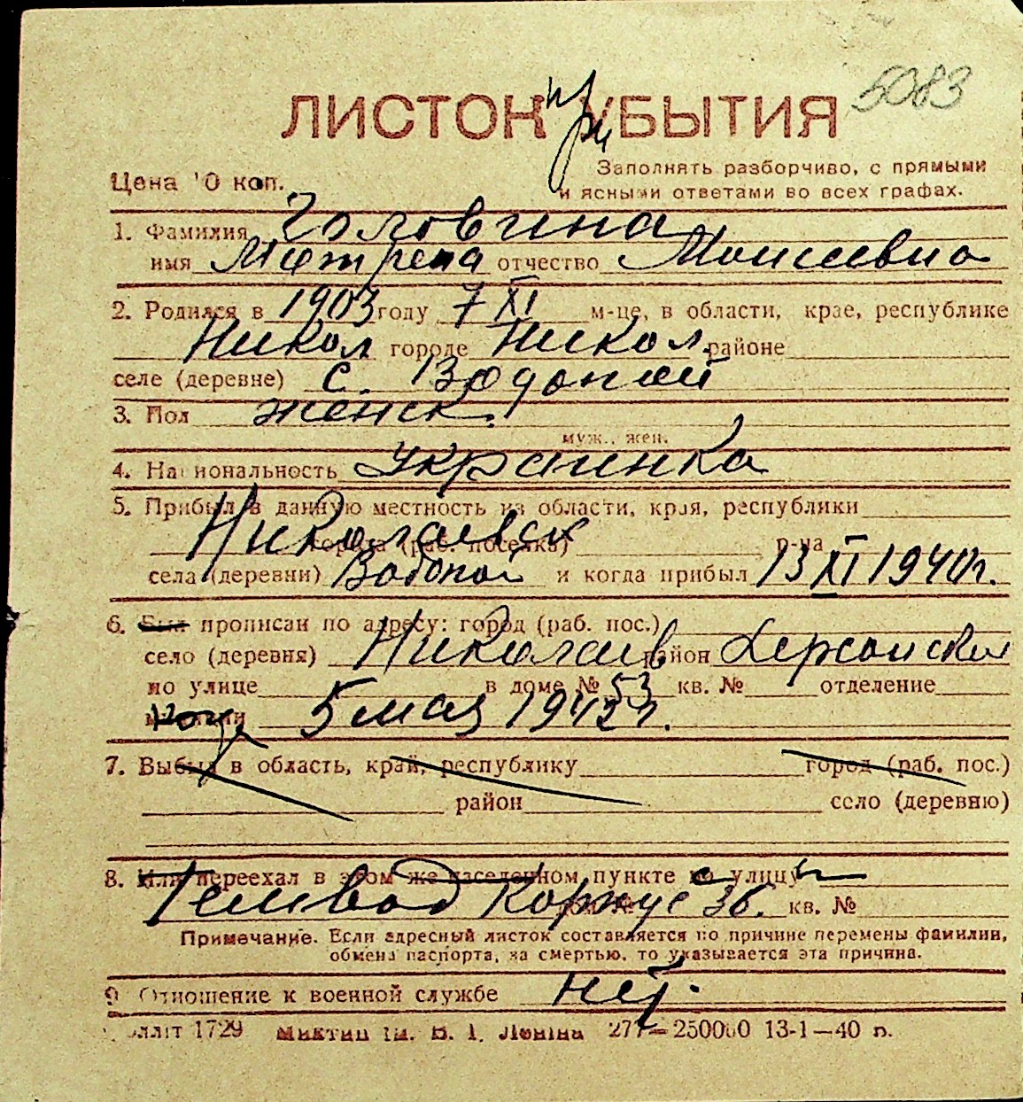 • • Перелік карток до фонду № Н-1016