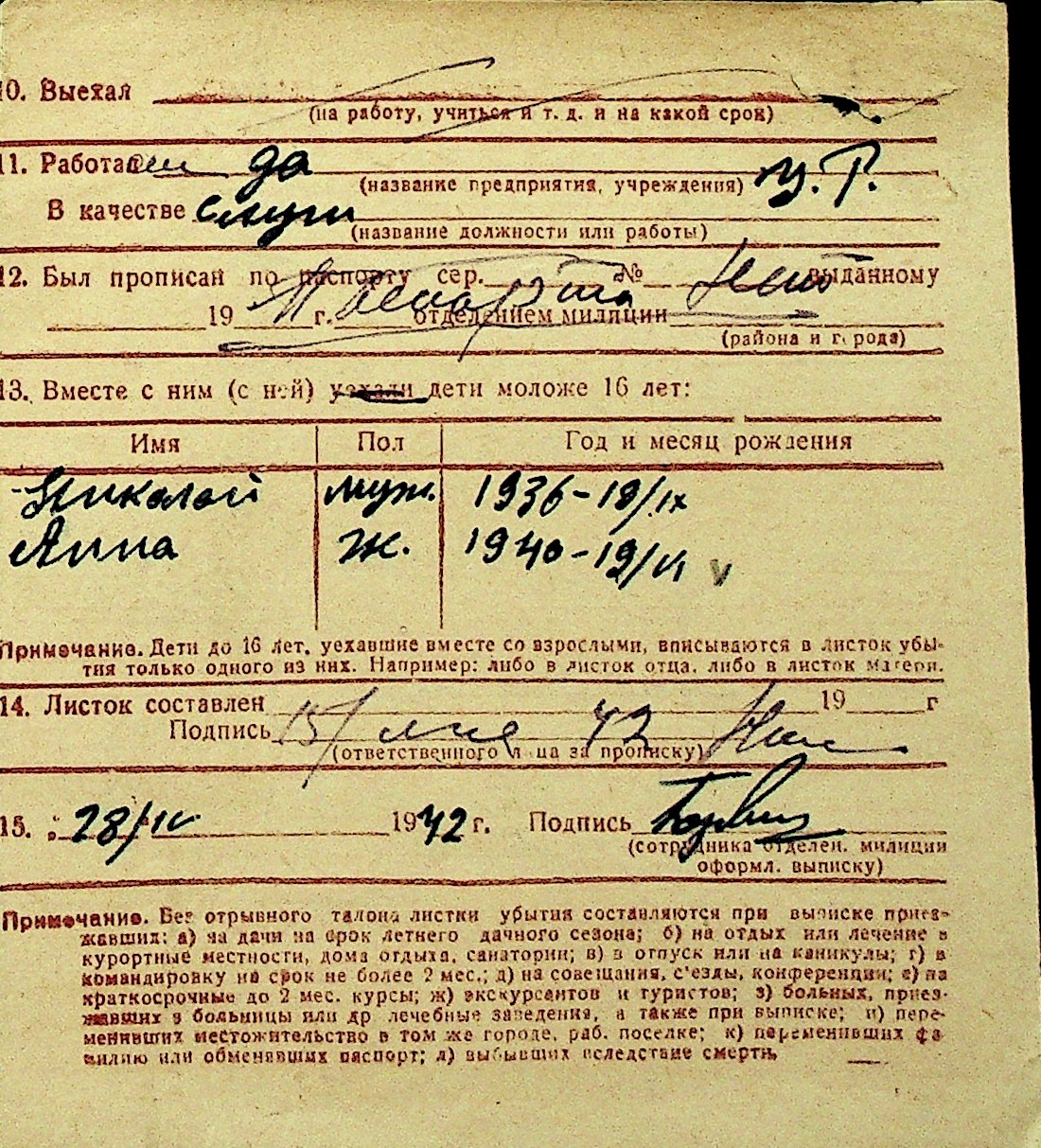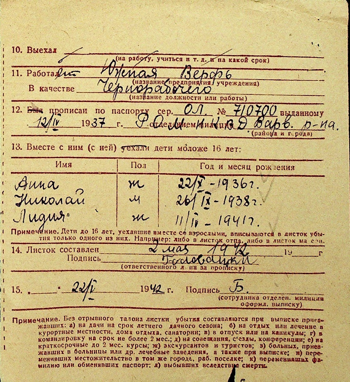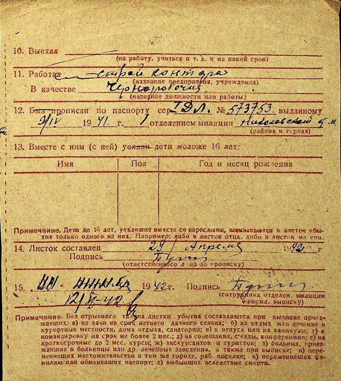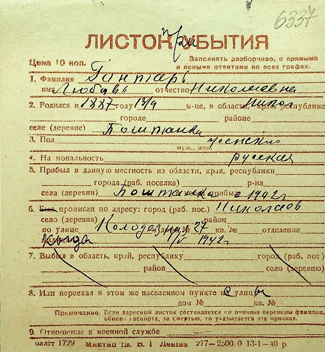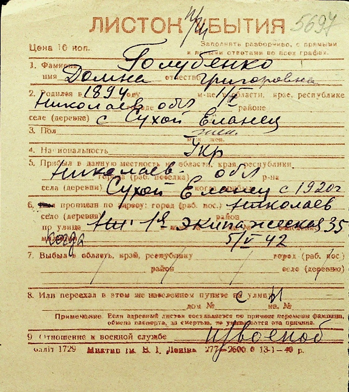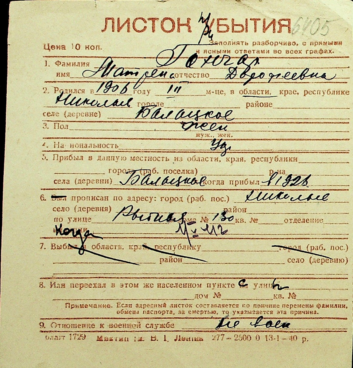 • • Перелік карток до фонду № Н-1016