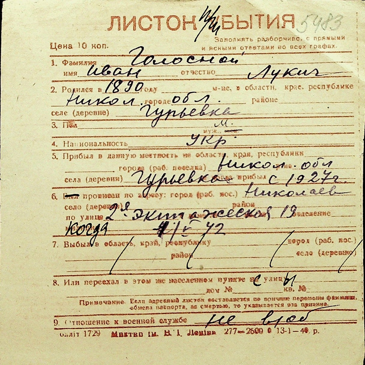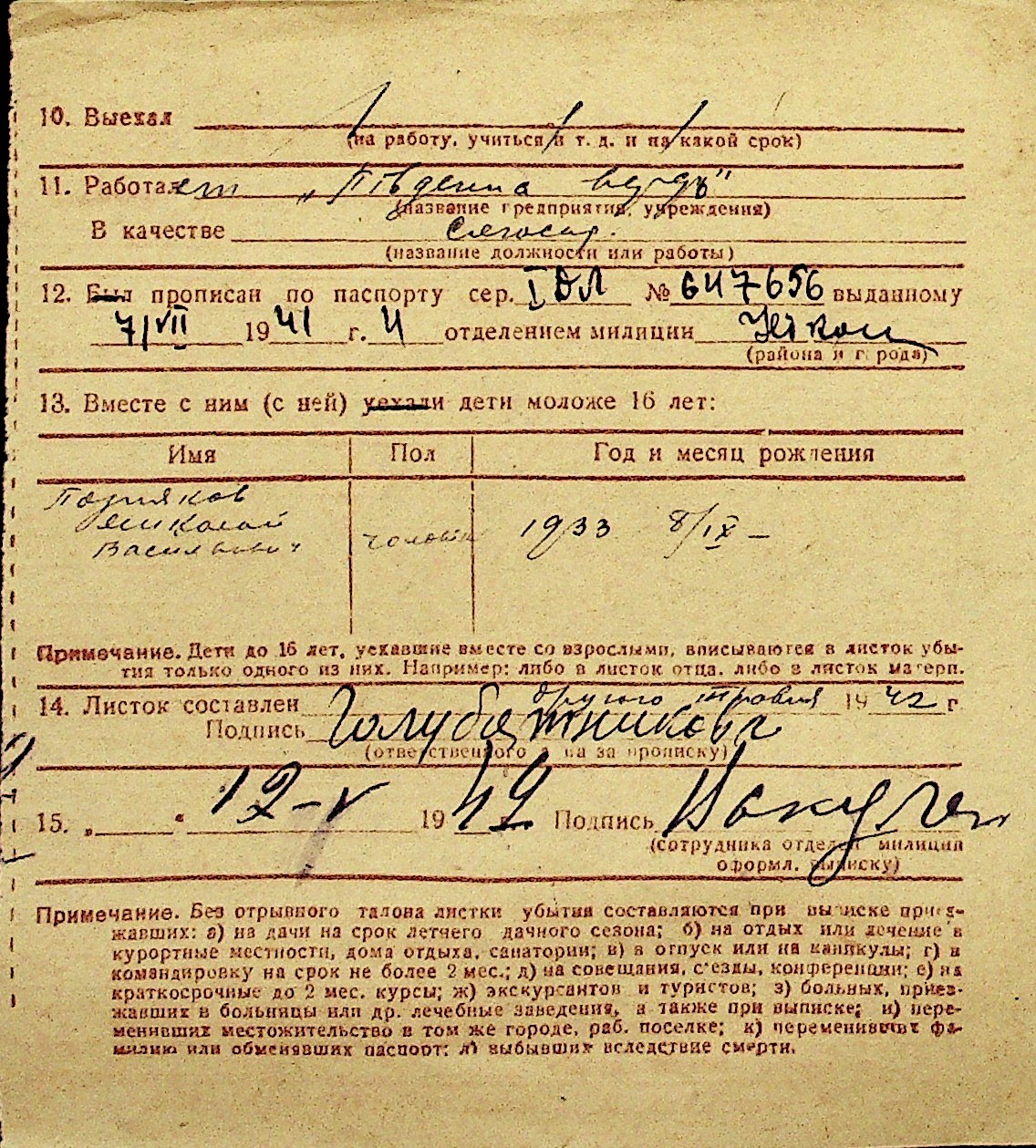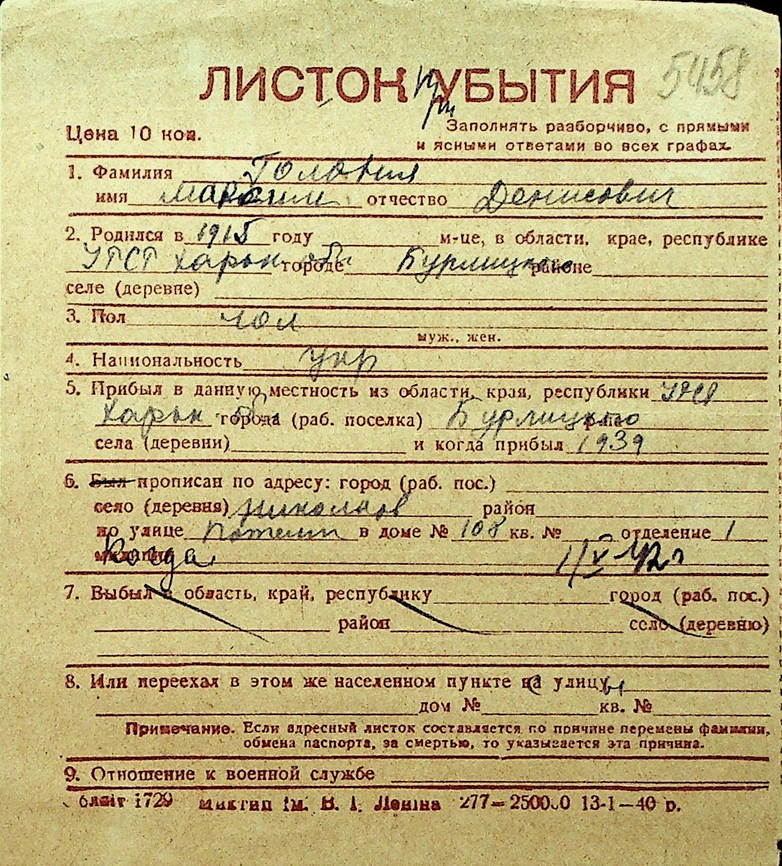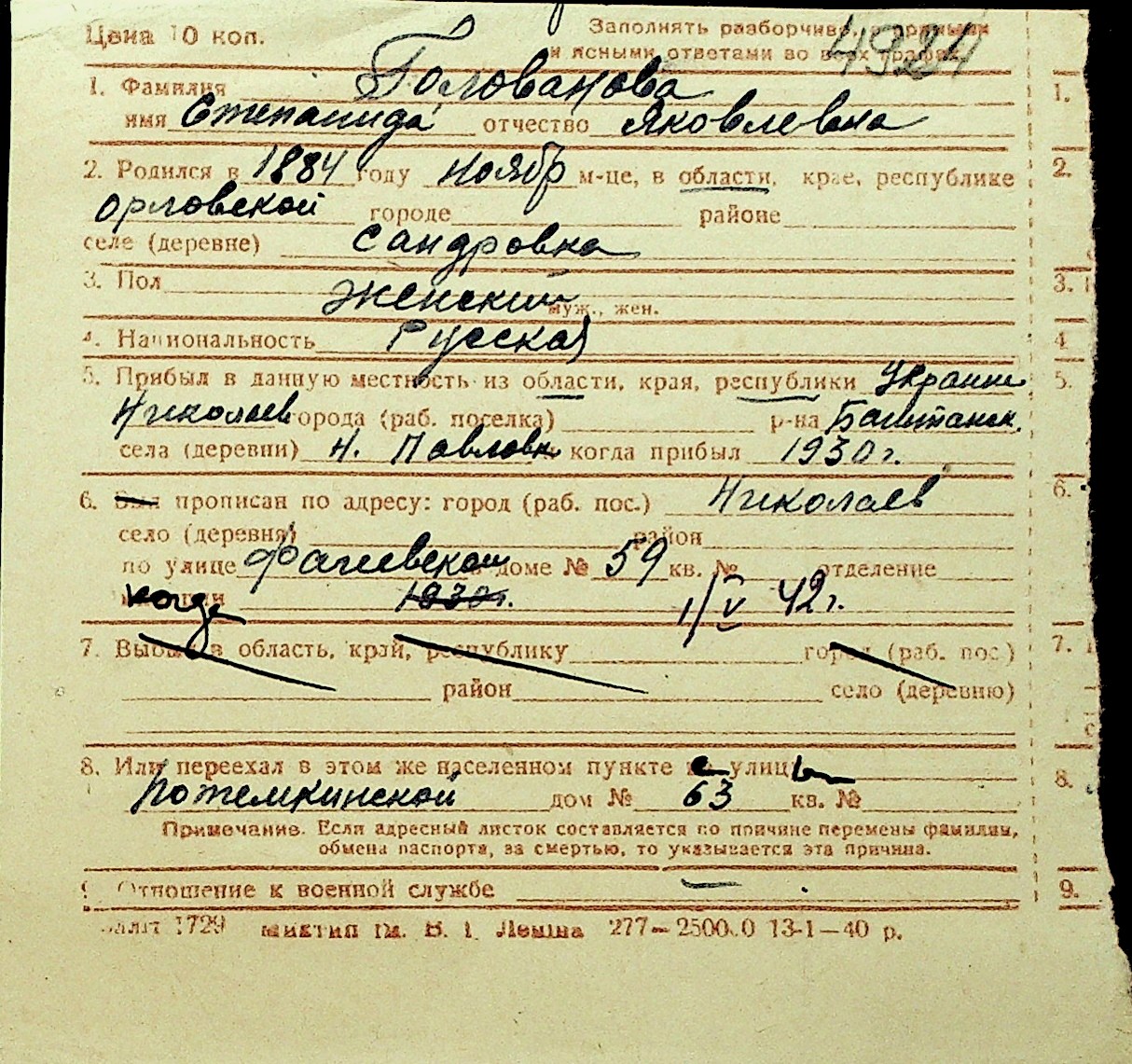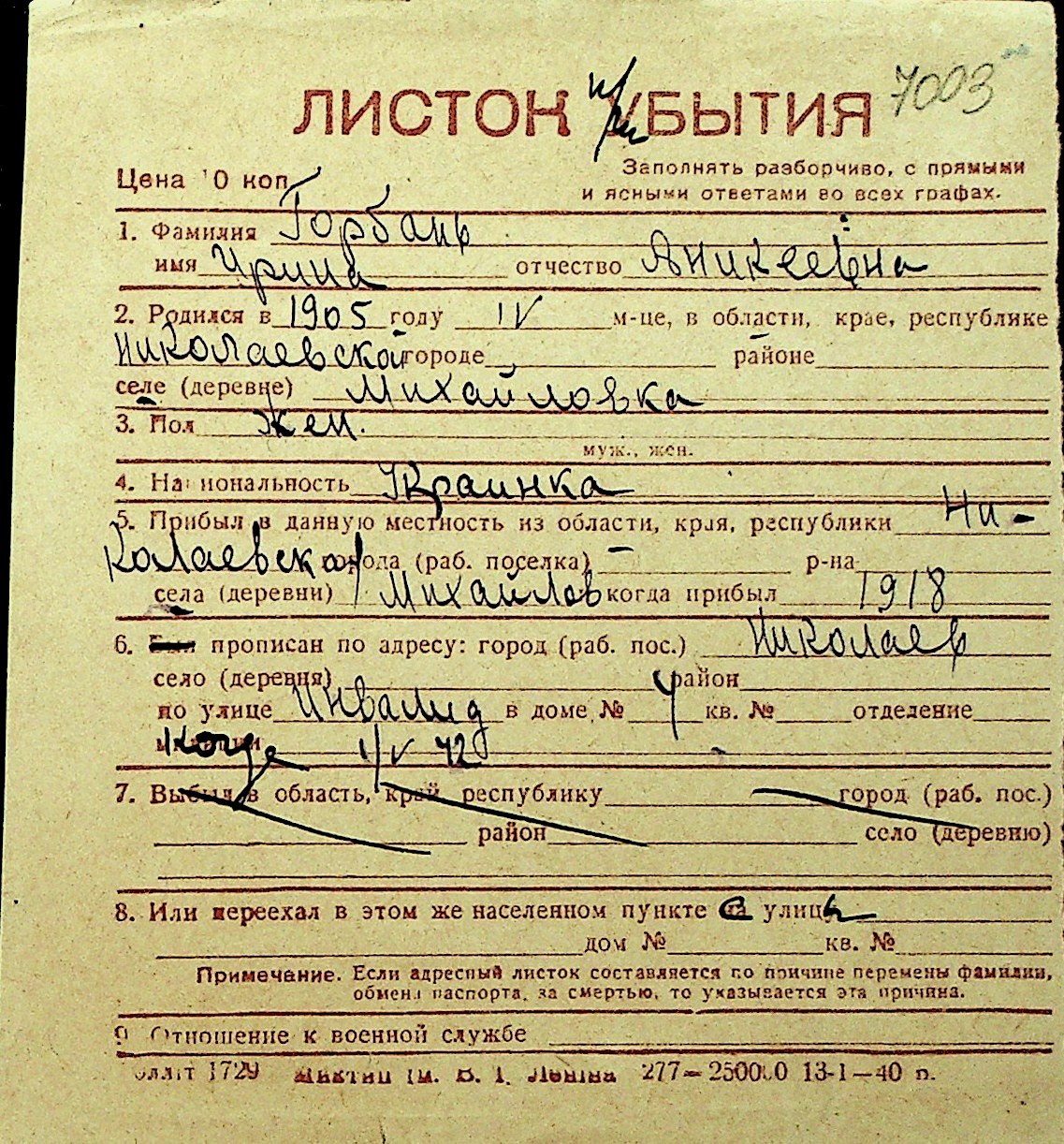 • • Перелік карток до фонду № Н-1016