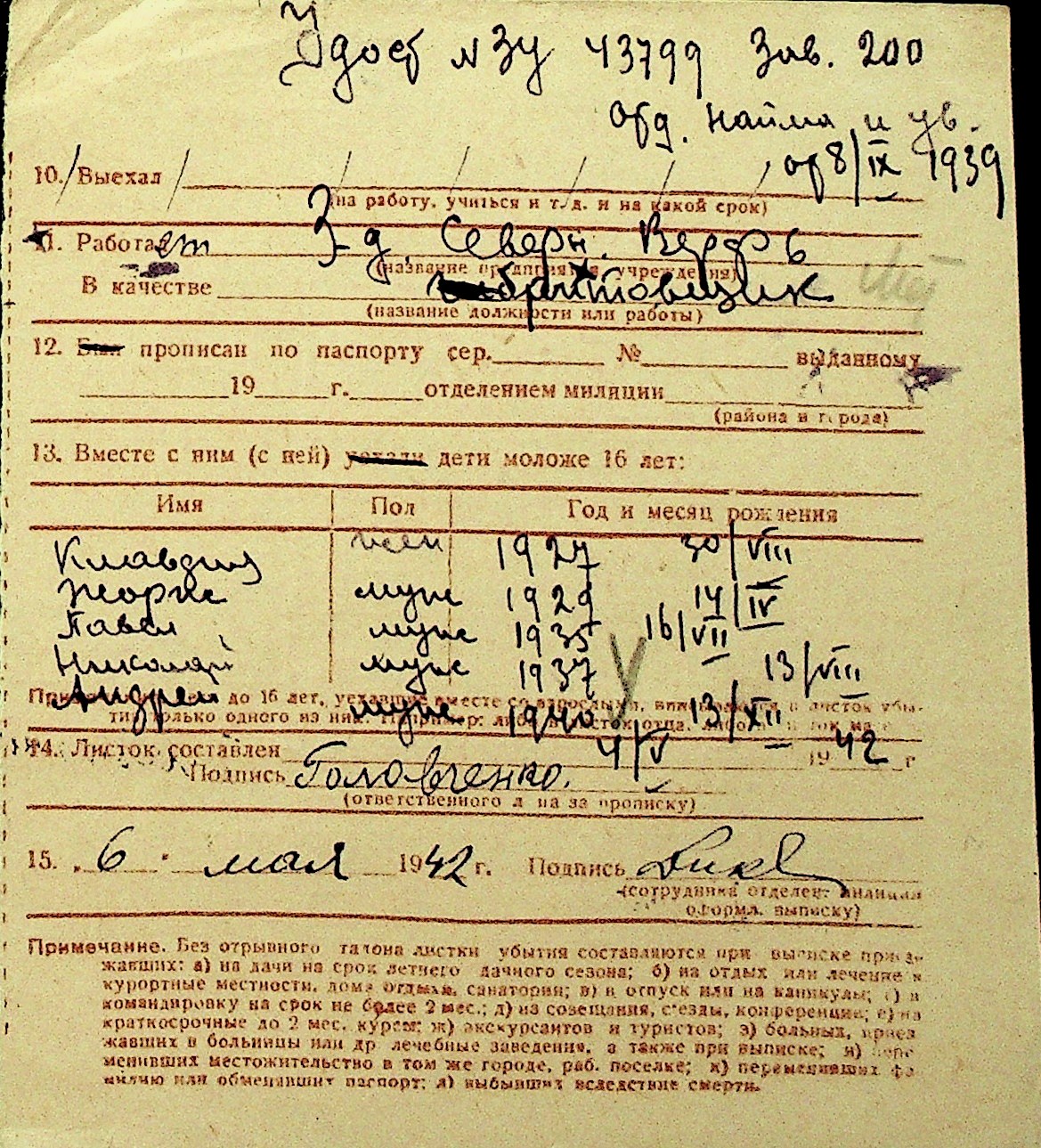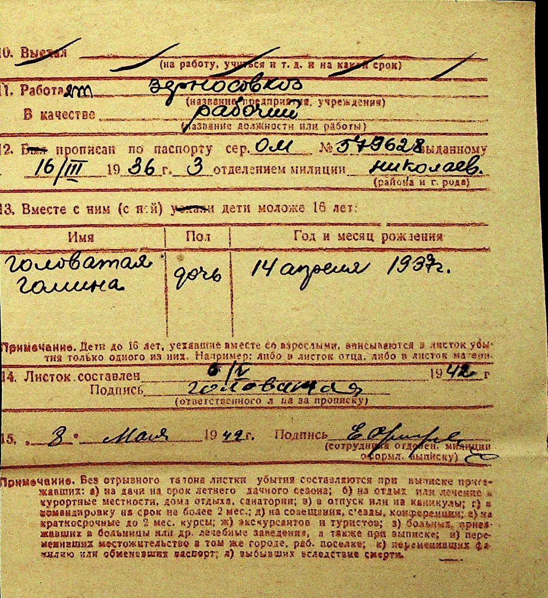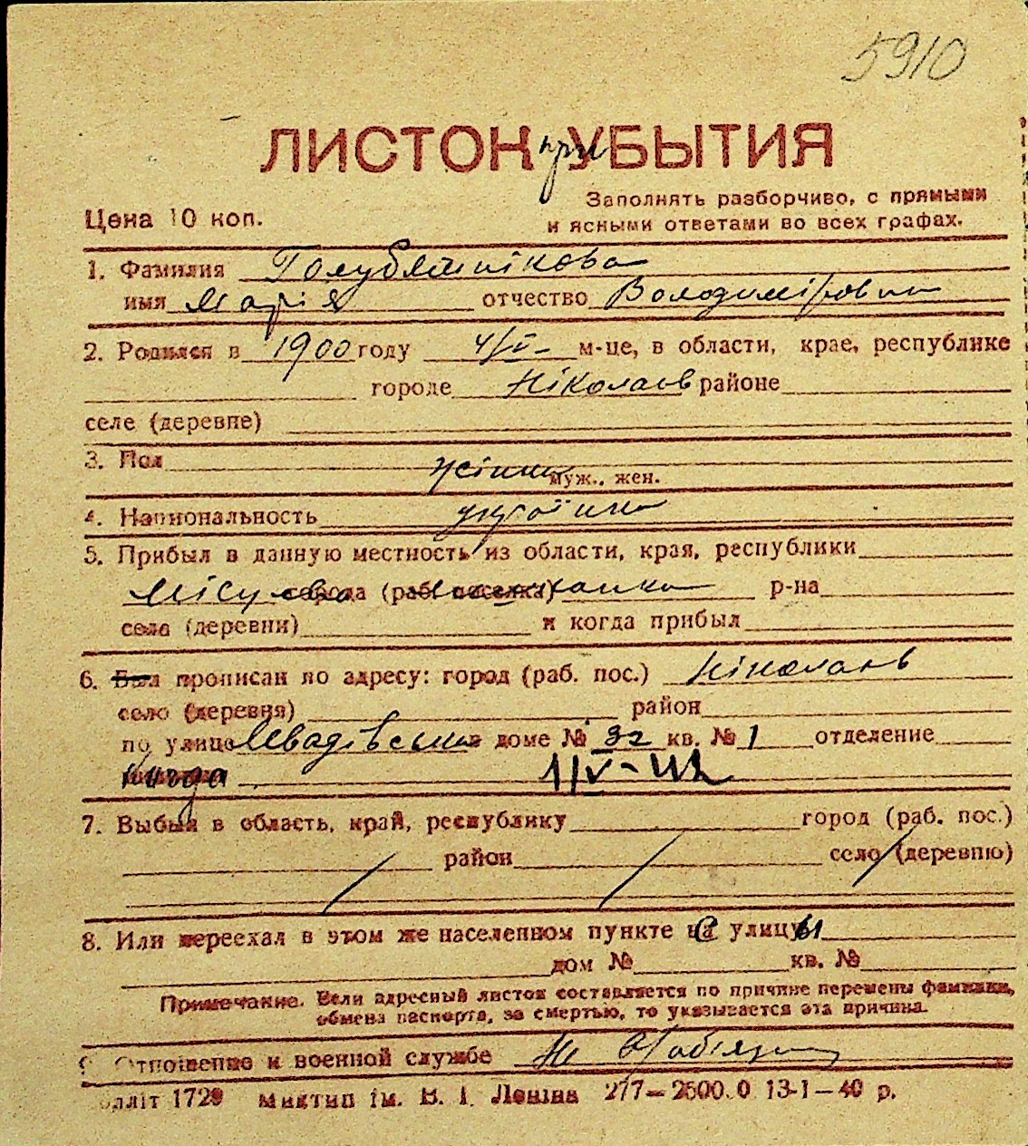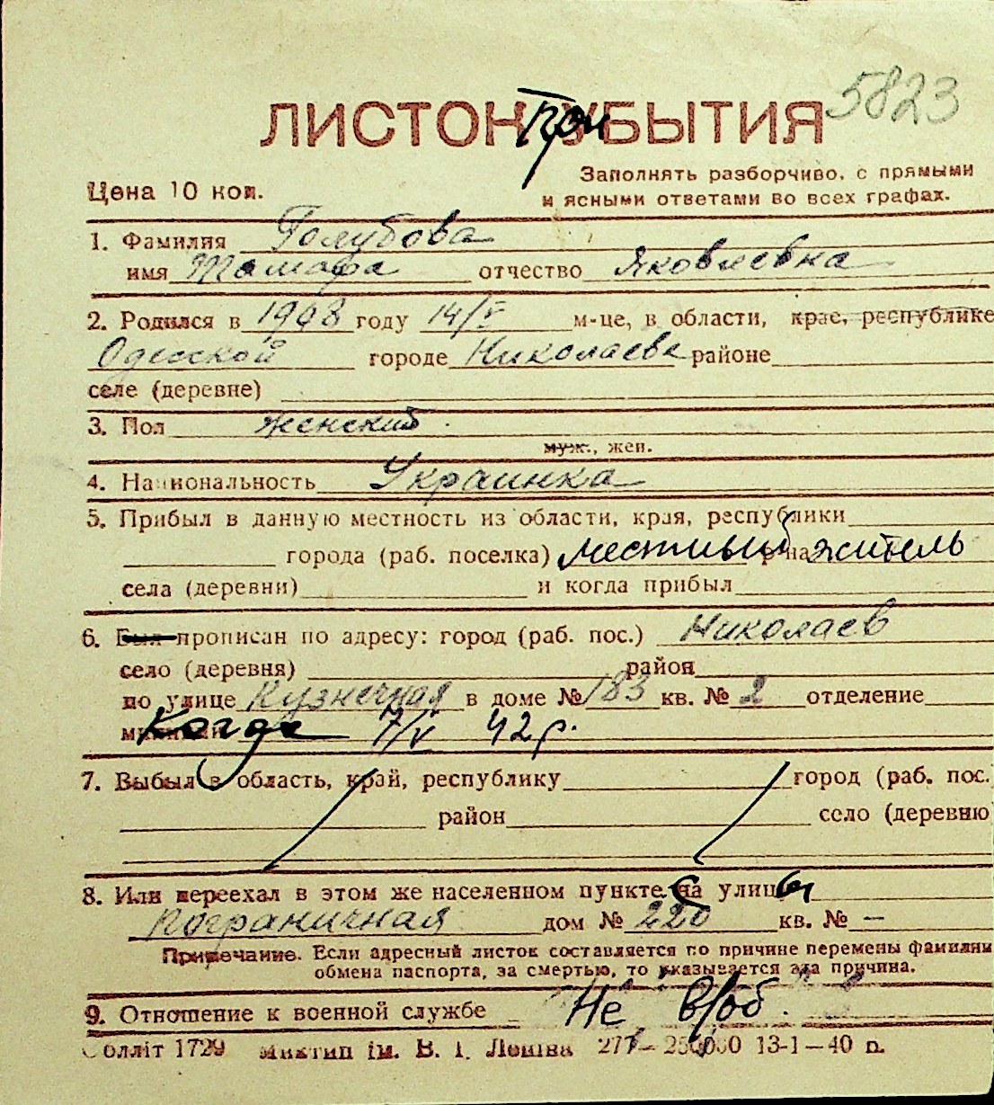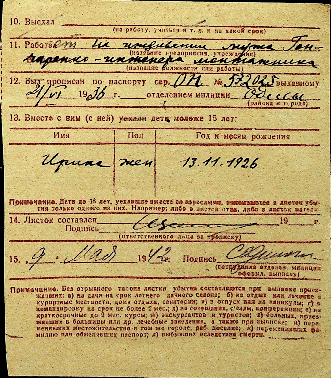 • • Перелік карток до фонду № Н-1016