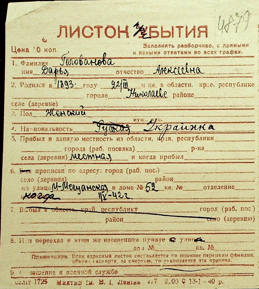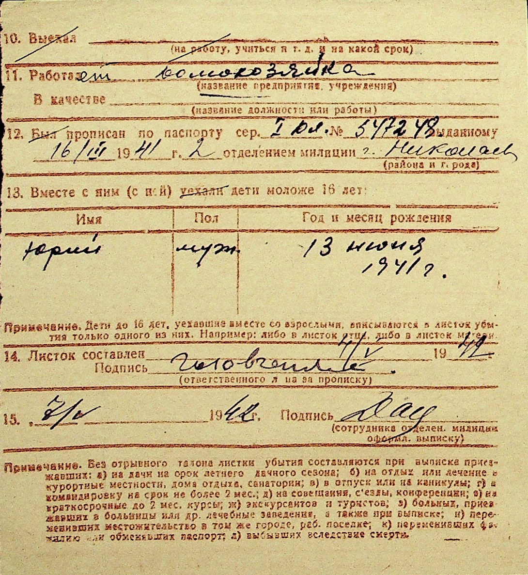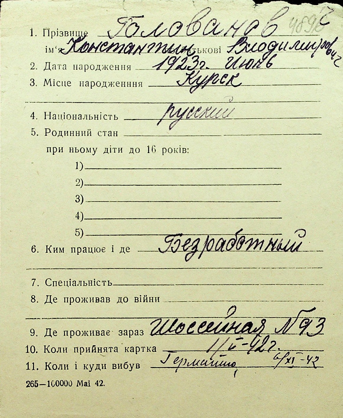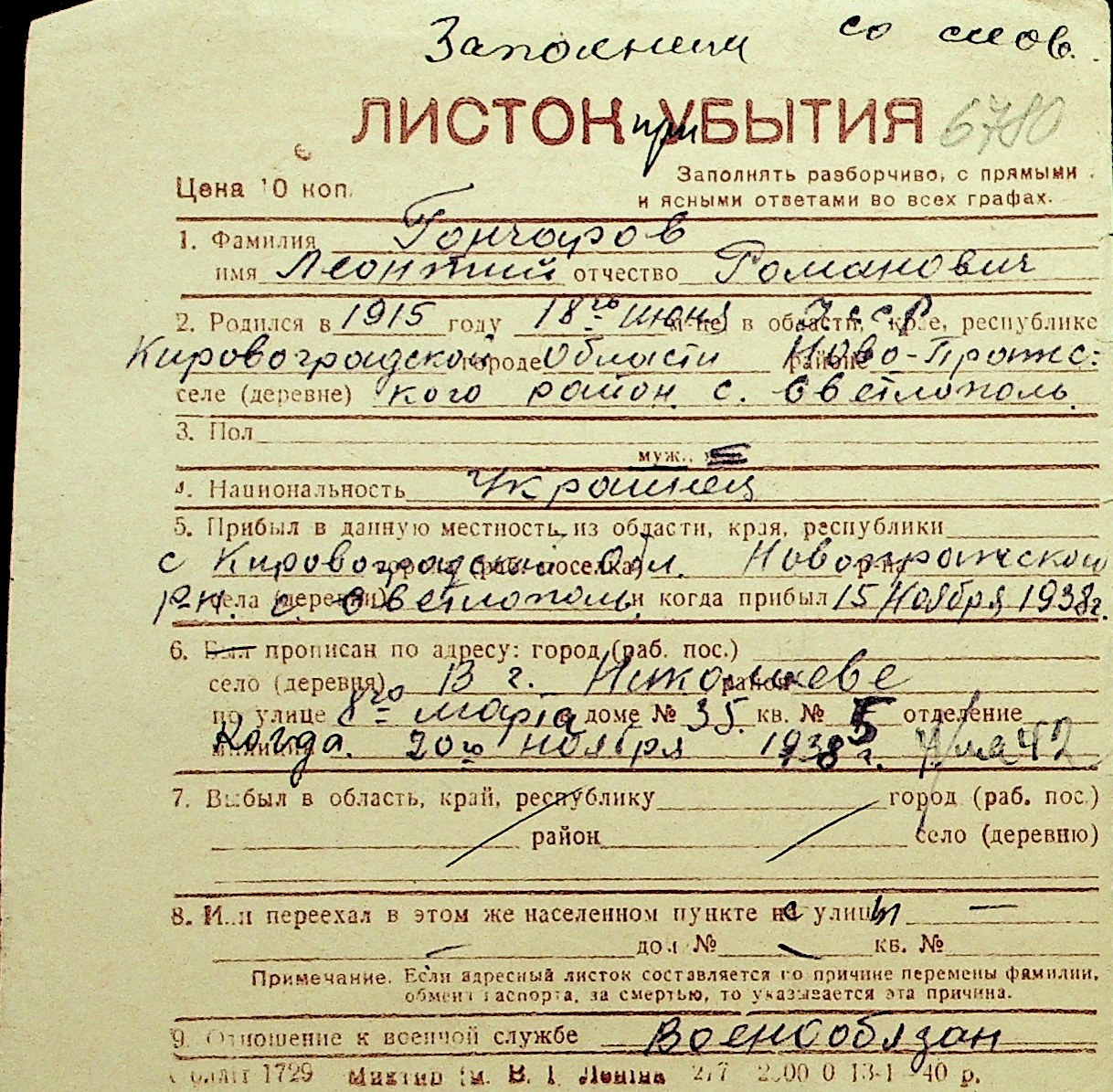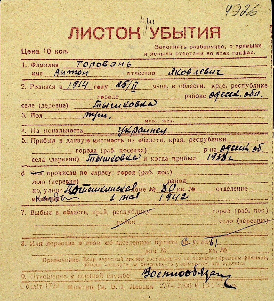 • • Перелік карток до фонду № Н-1016