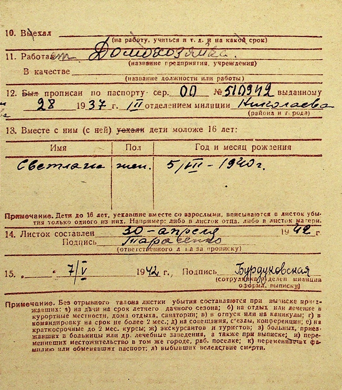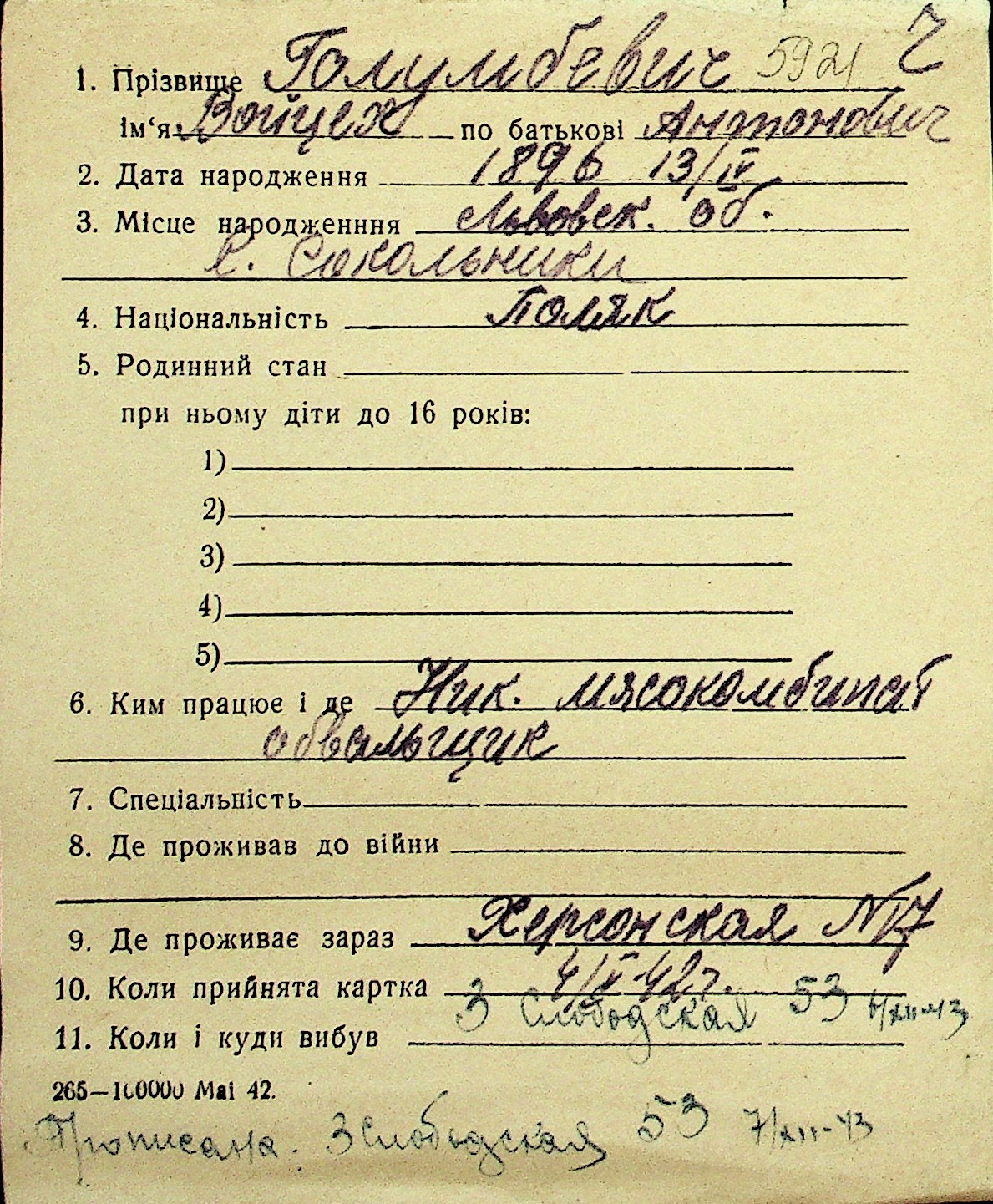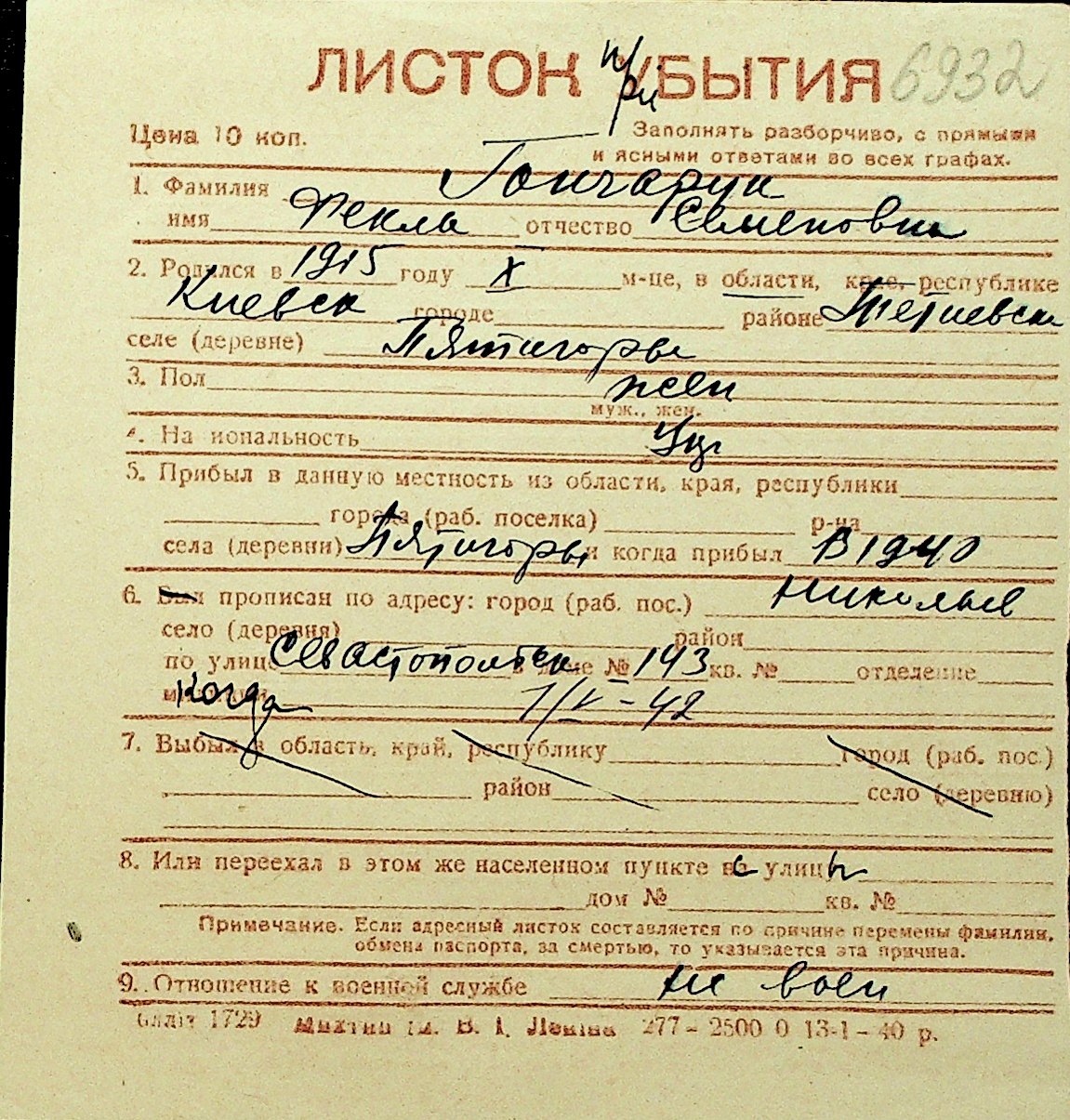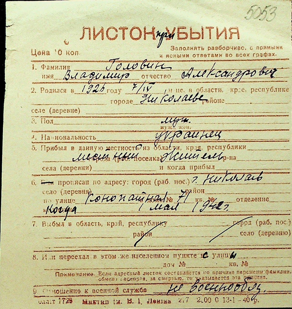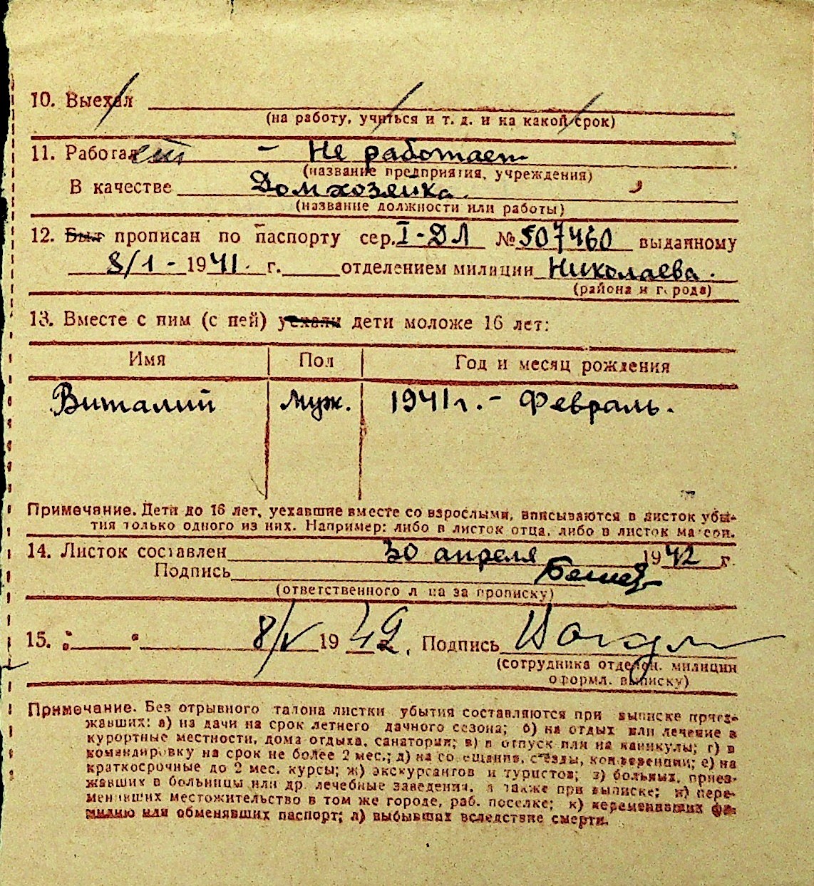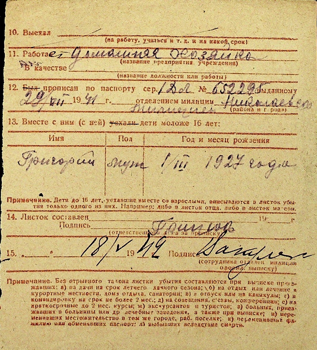 • • Перелік карток до фонду № Н-1016