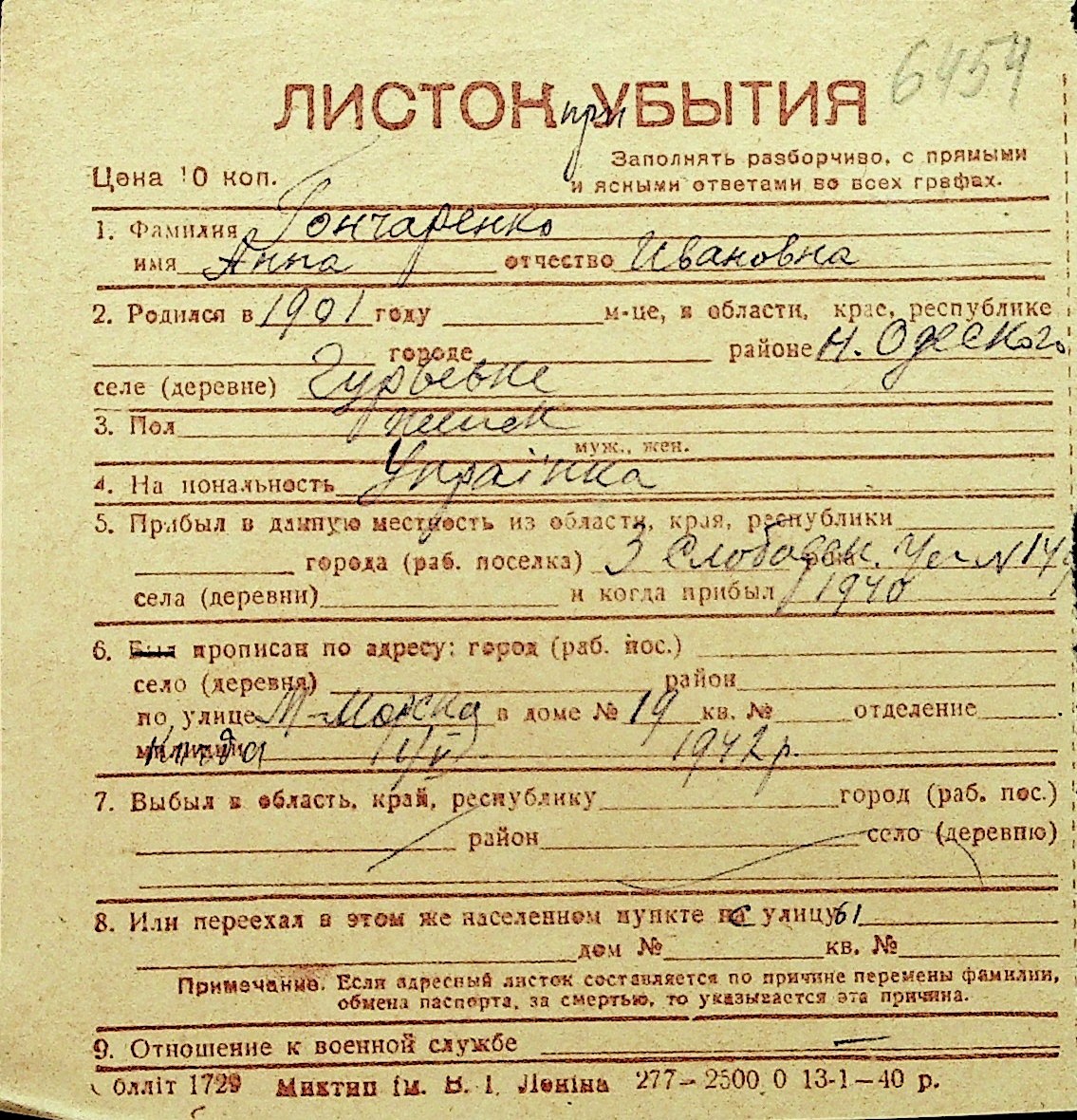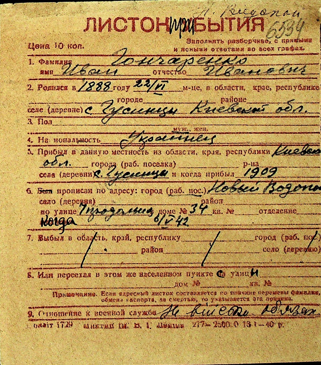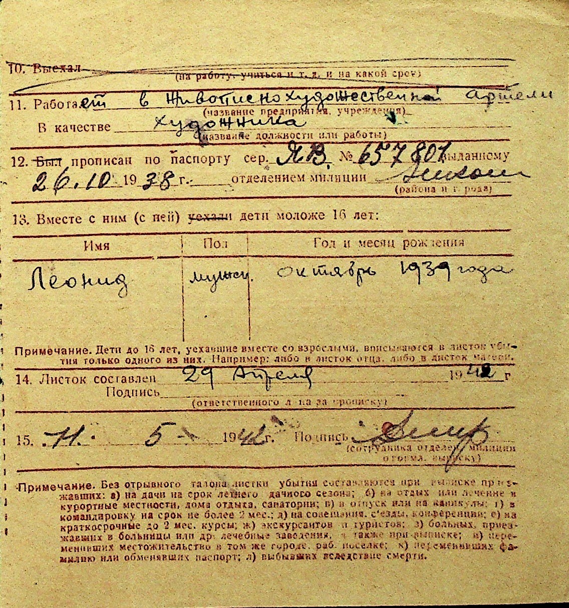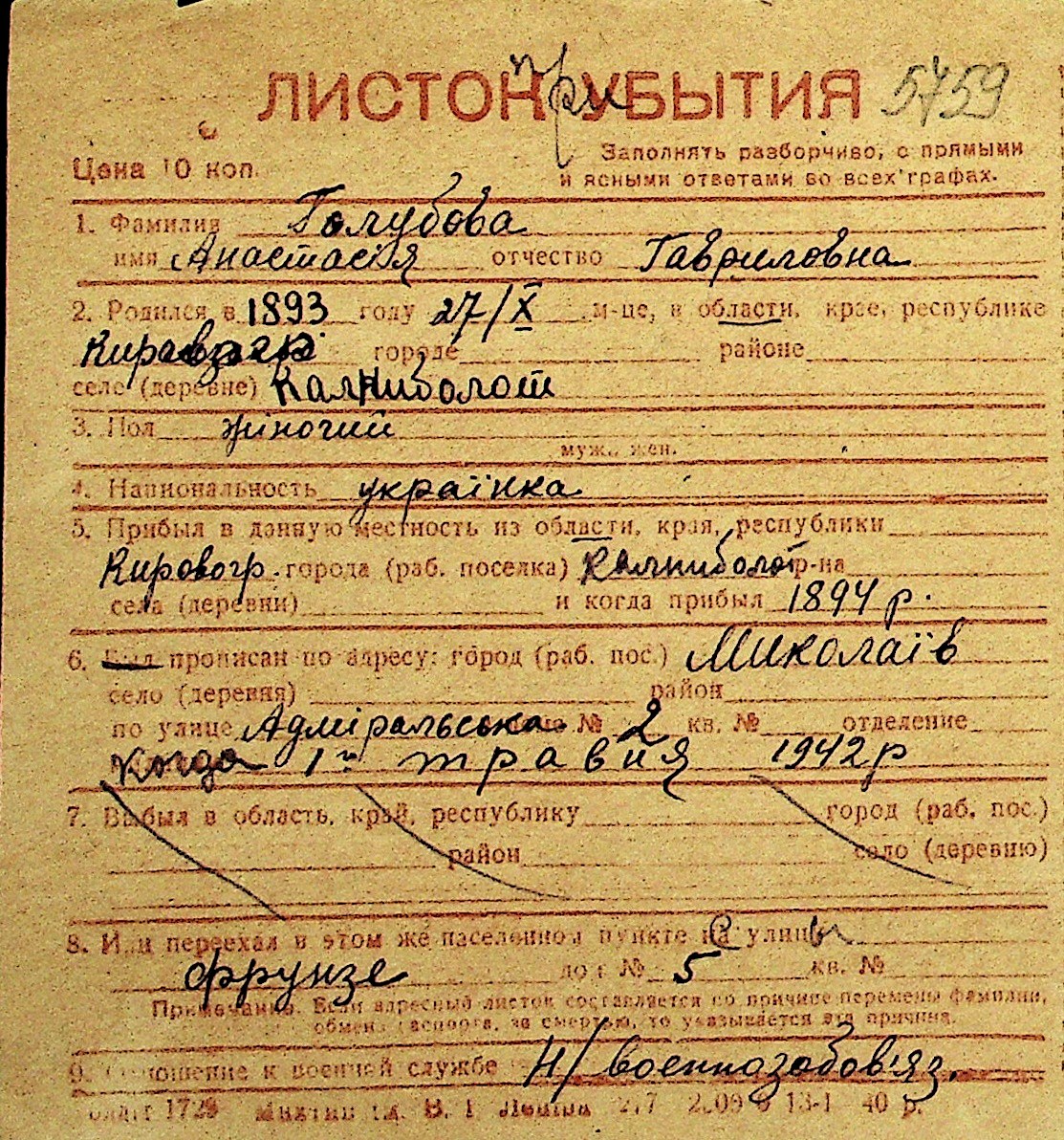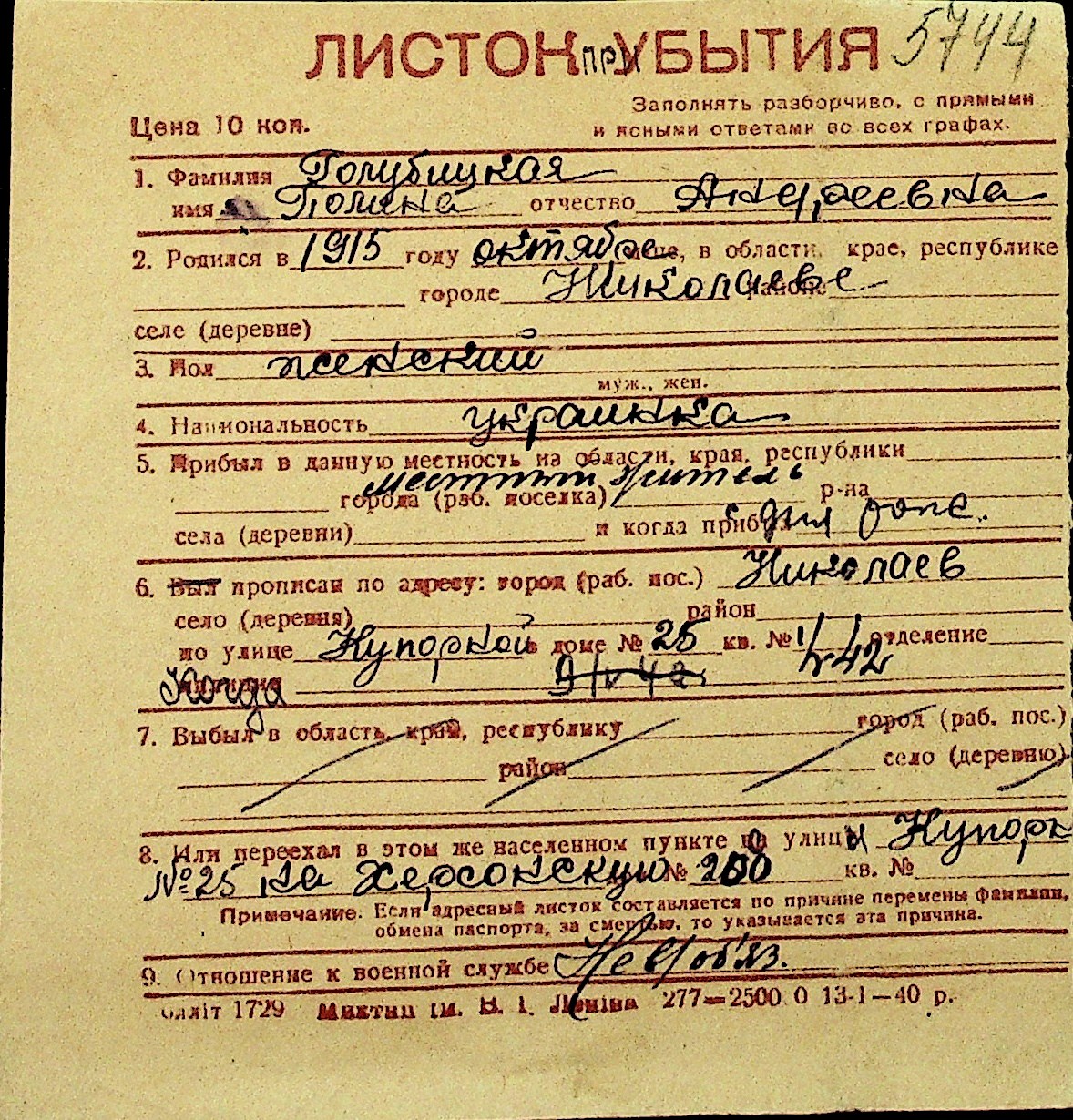 • • Перелік карток до фонду № Н-1016