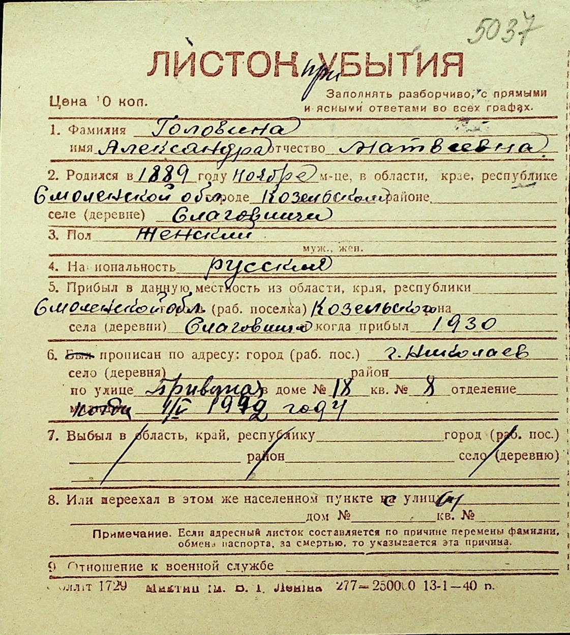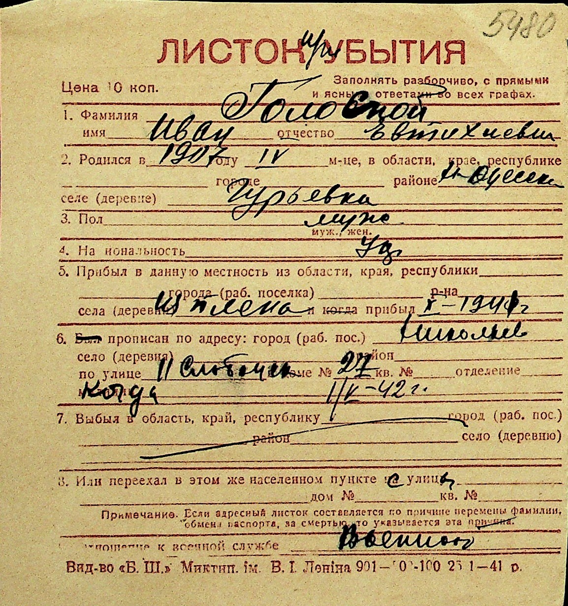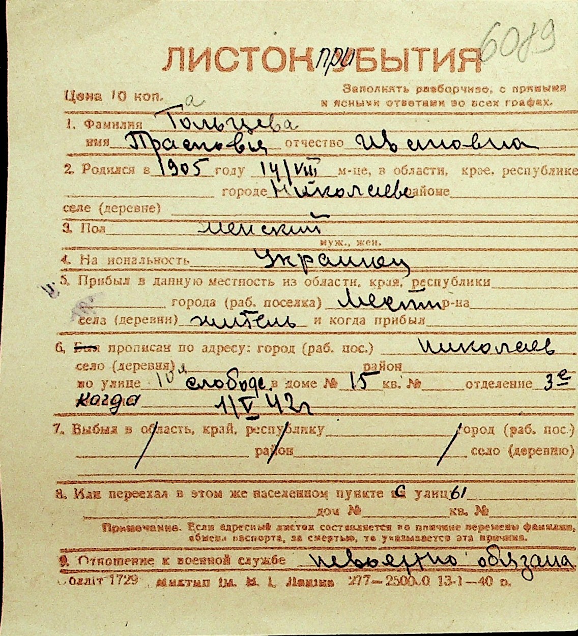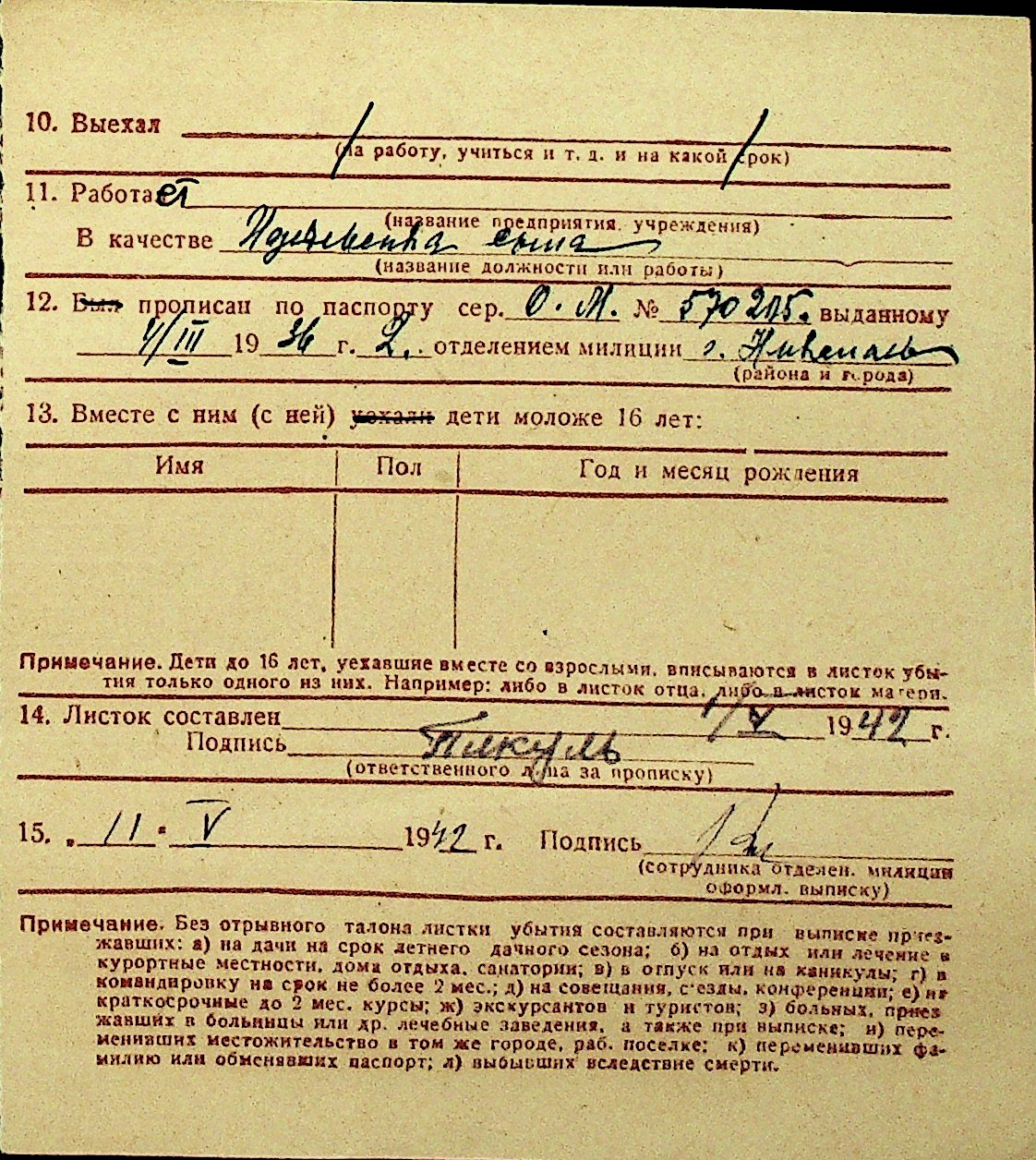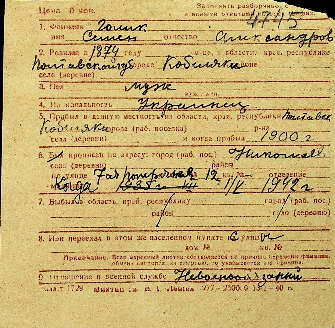 • • Перелік карток до фонду № Н-1016