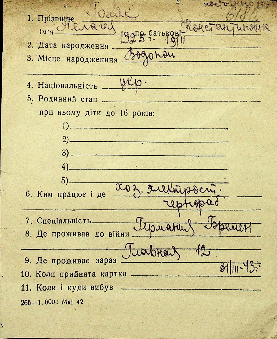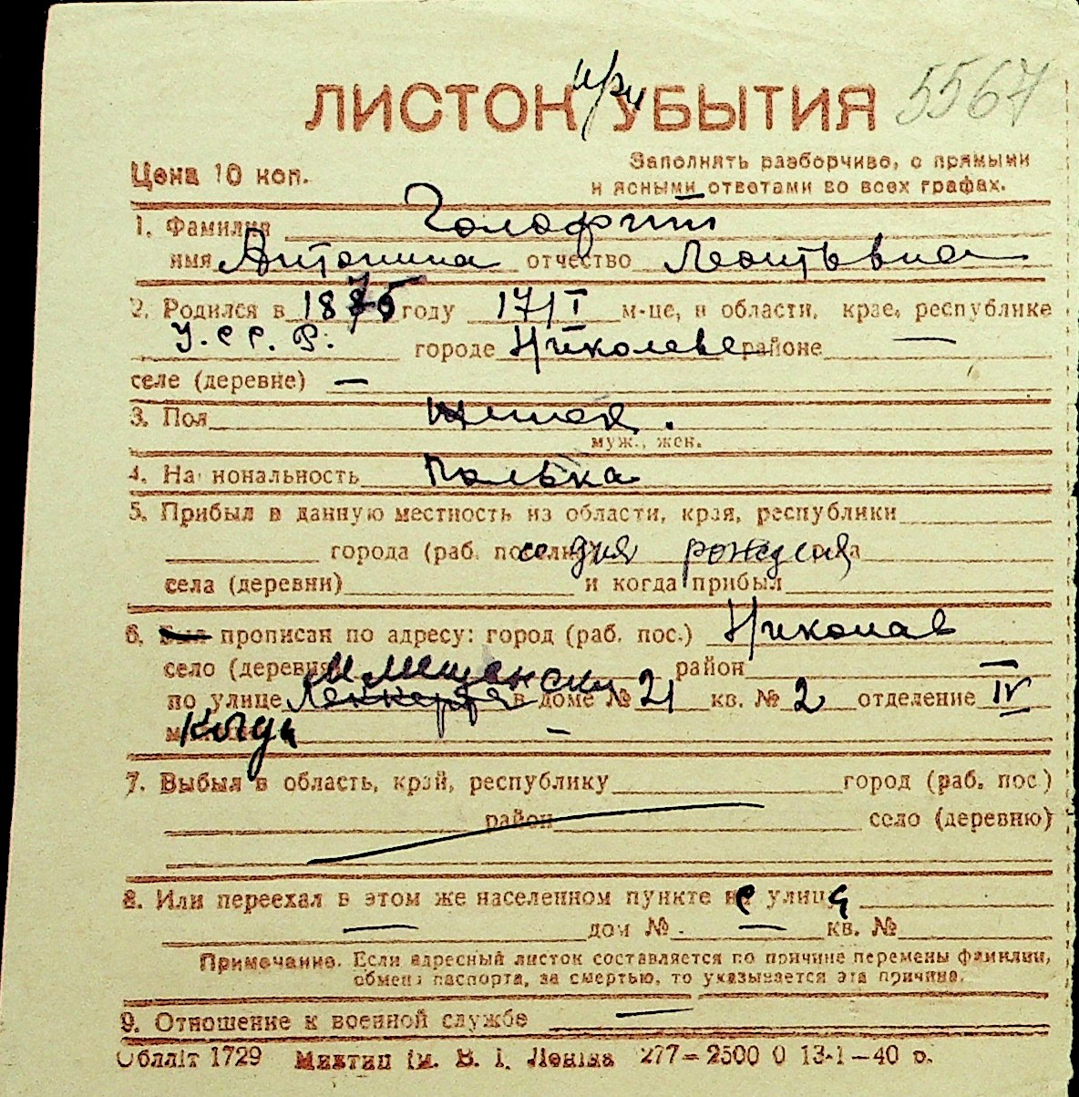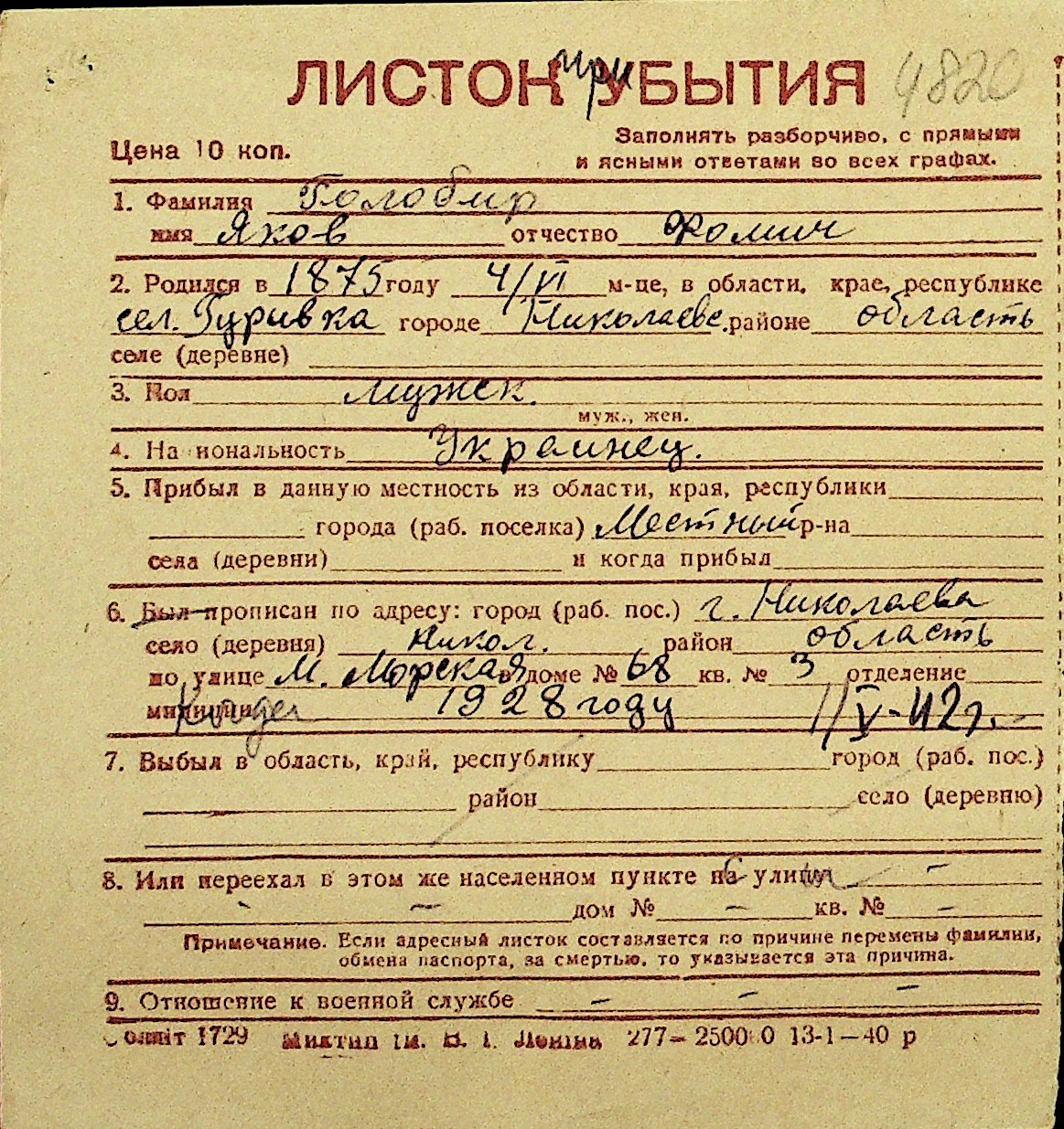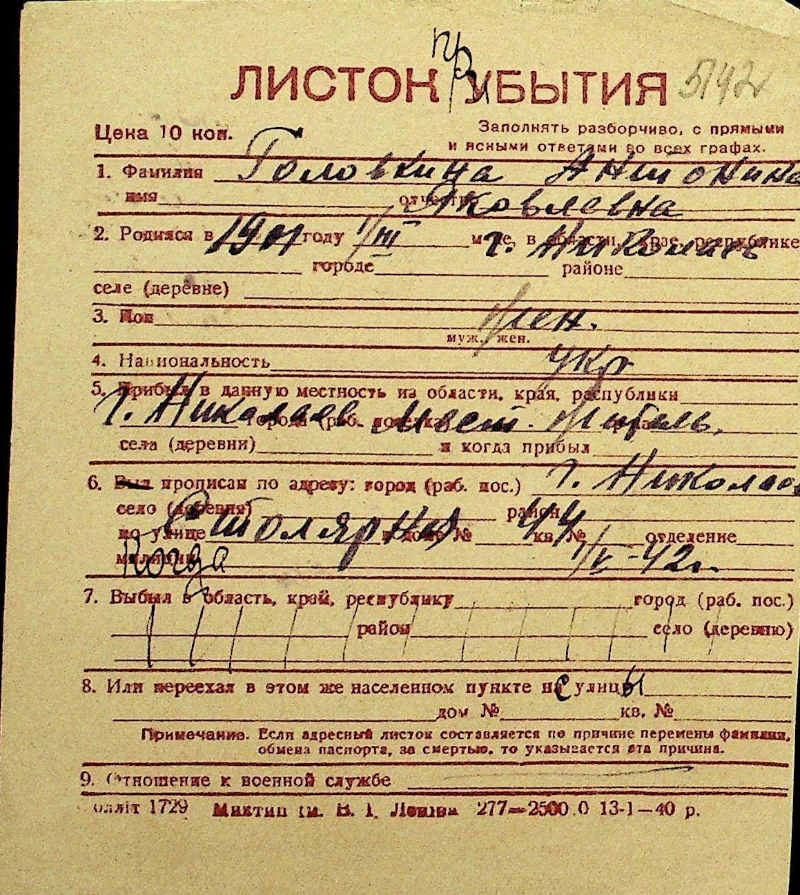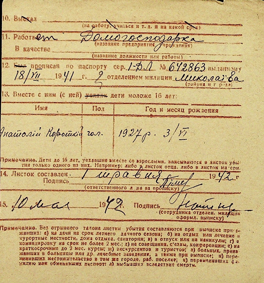 • • Перелік карток до фонду № Н-1016