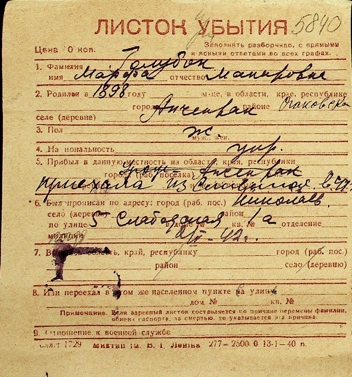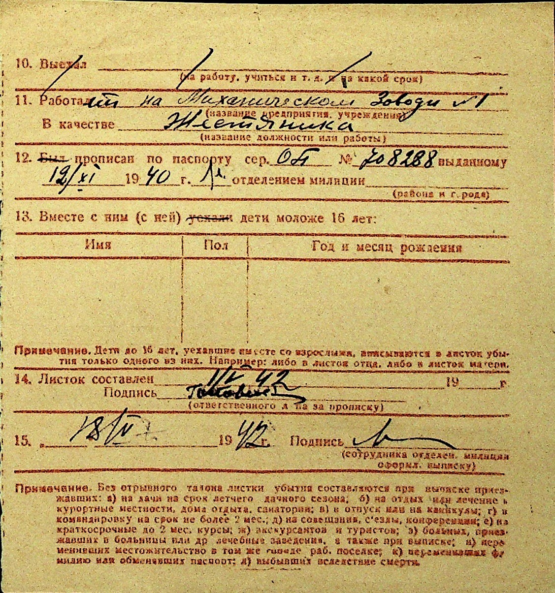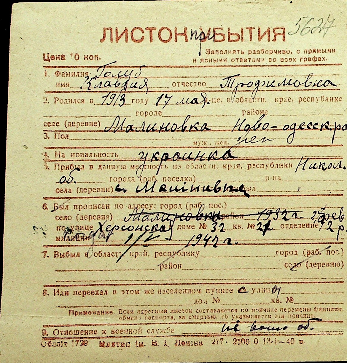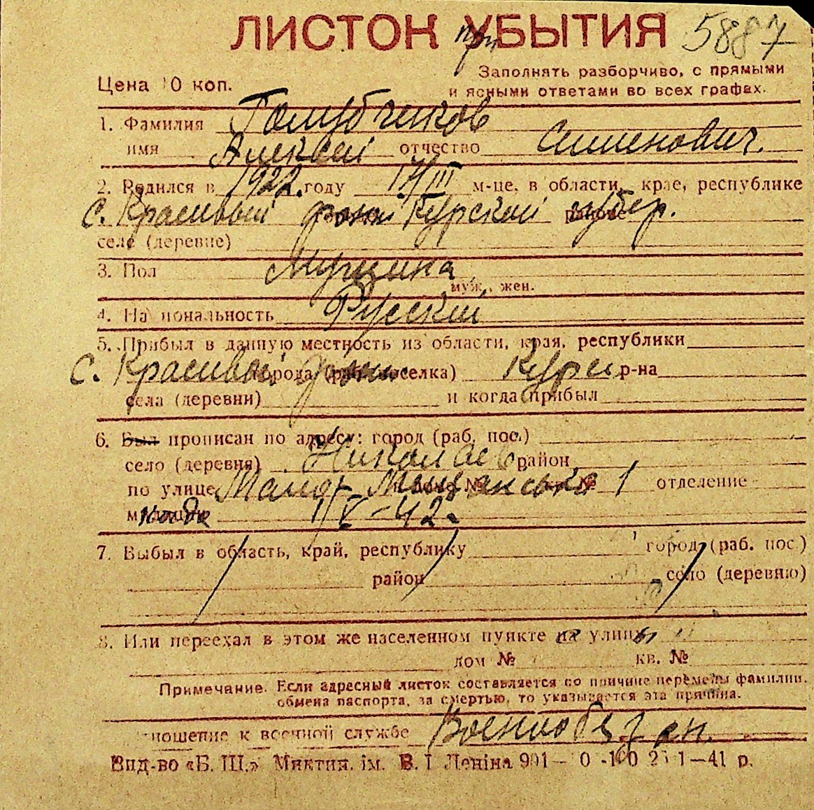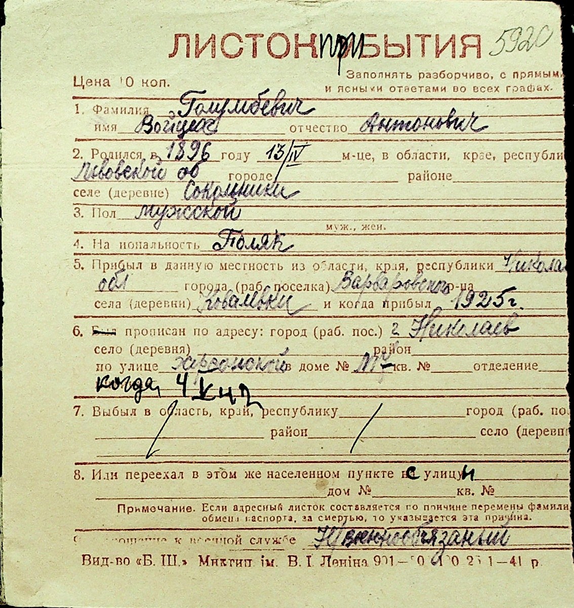 • • Перелік карток до фонду № Н-1016