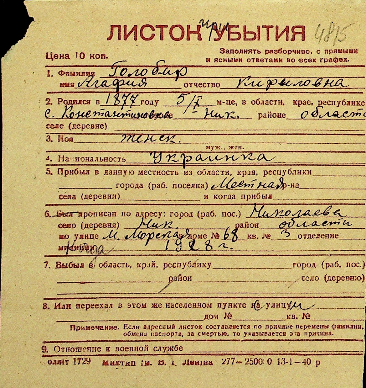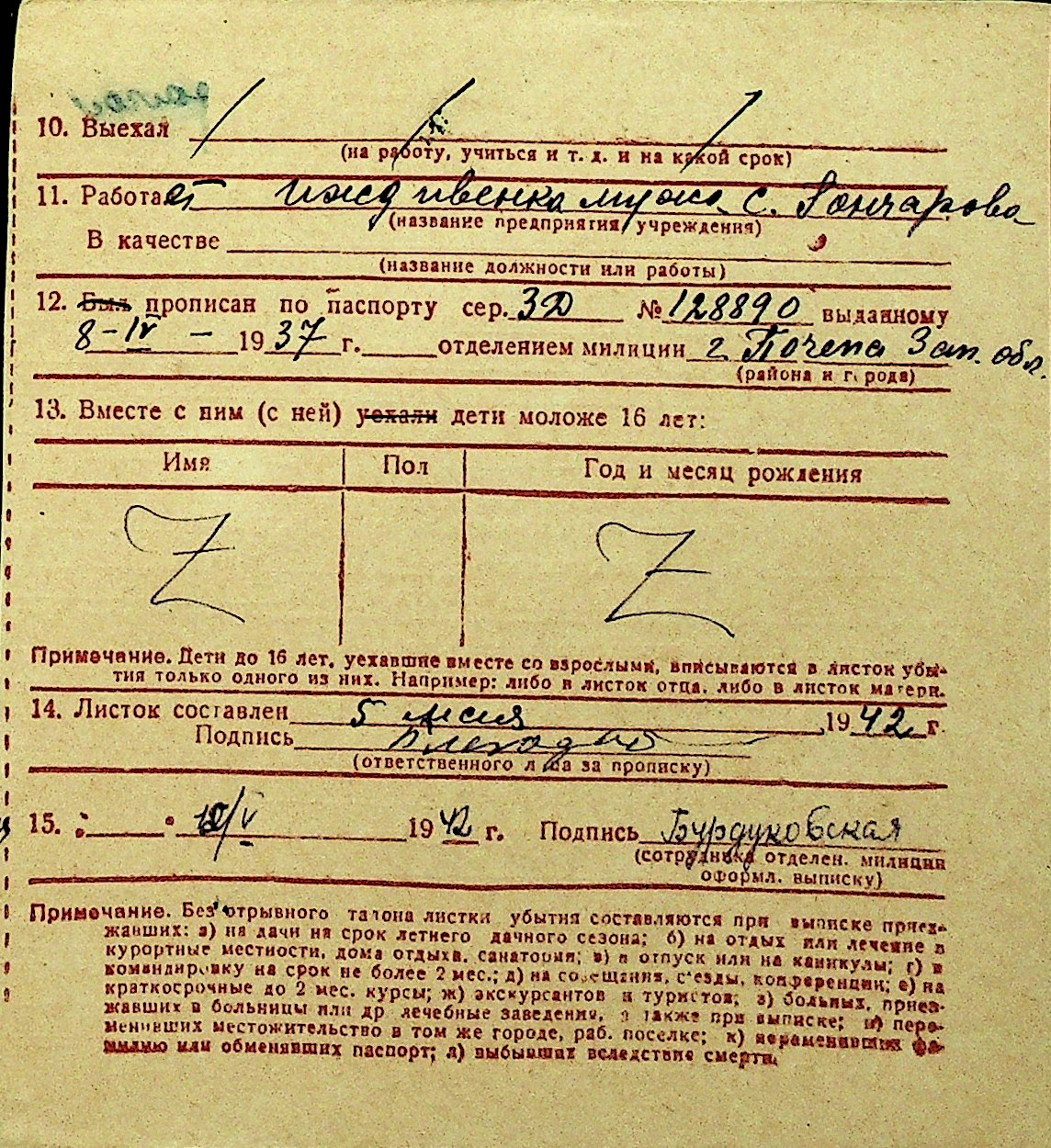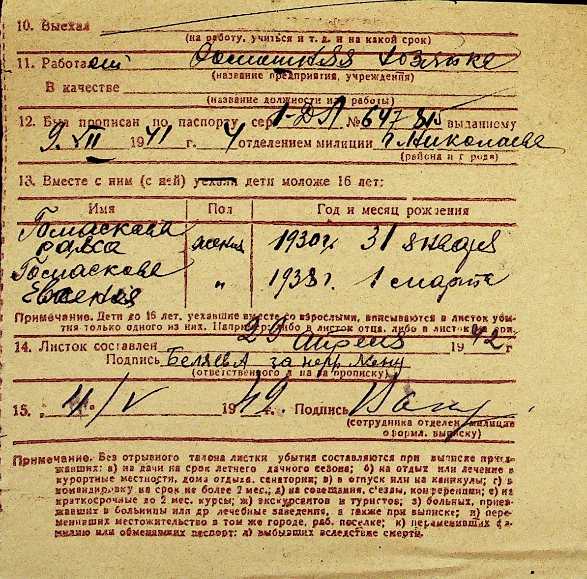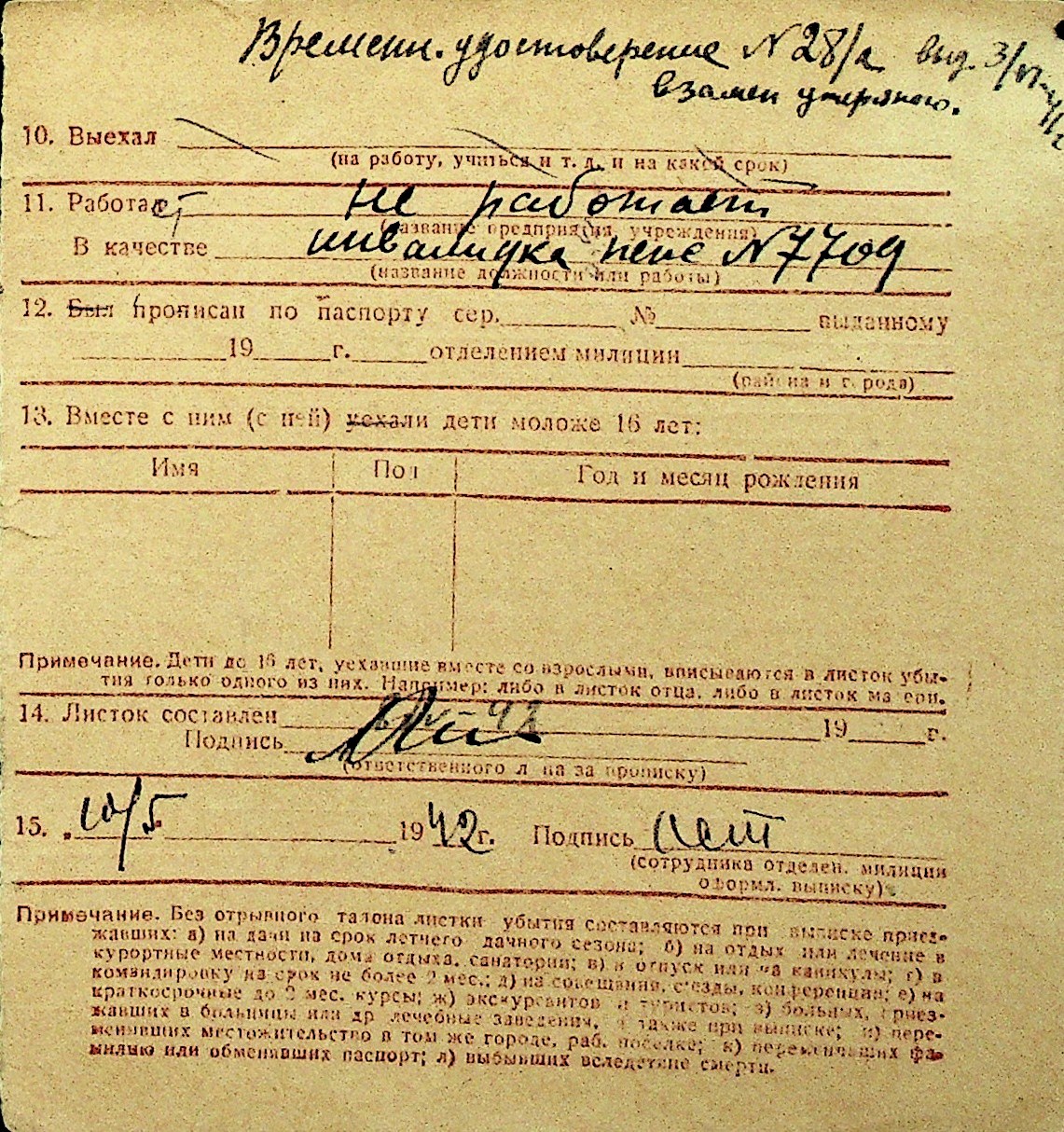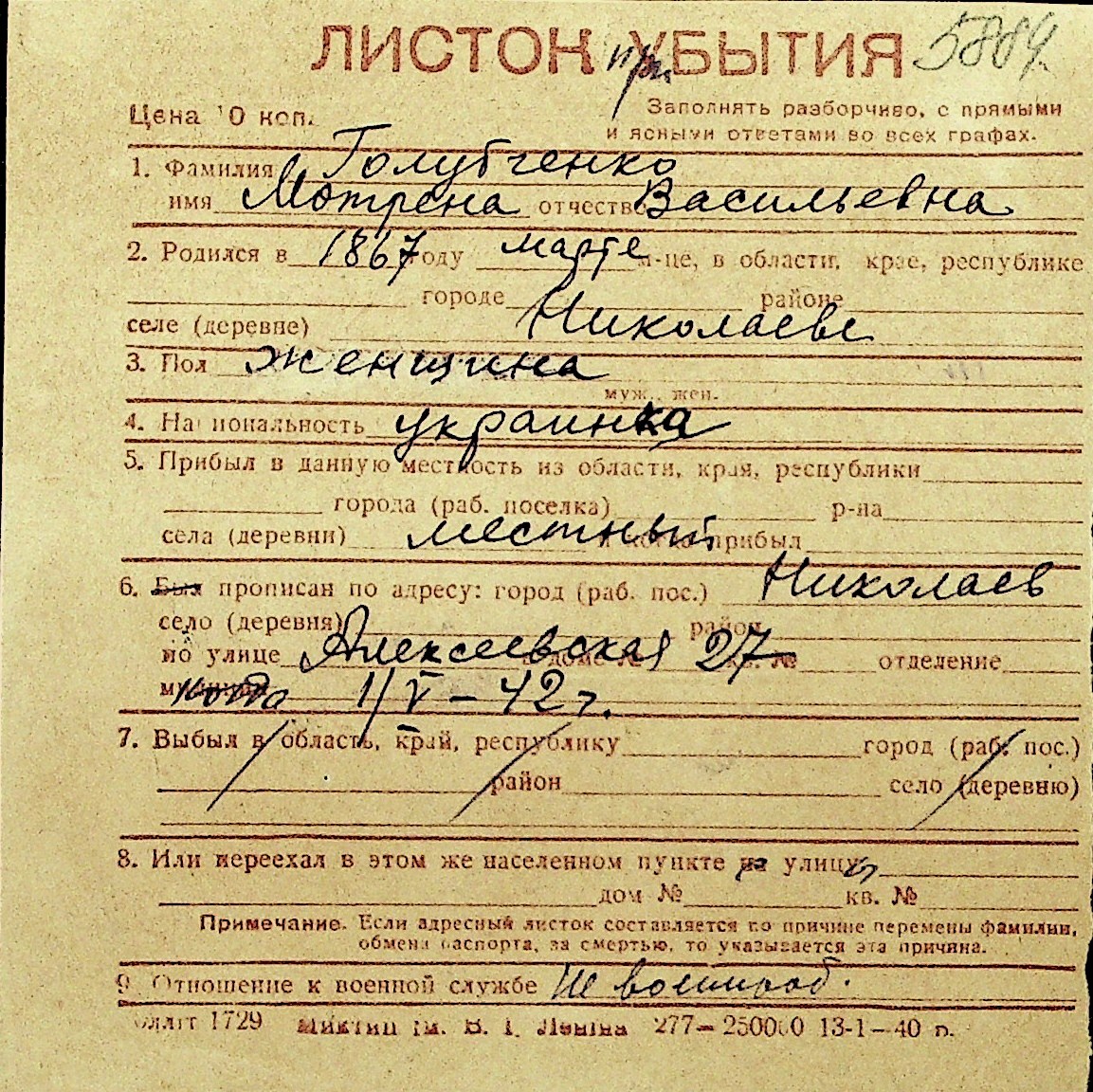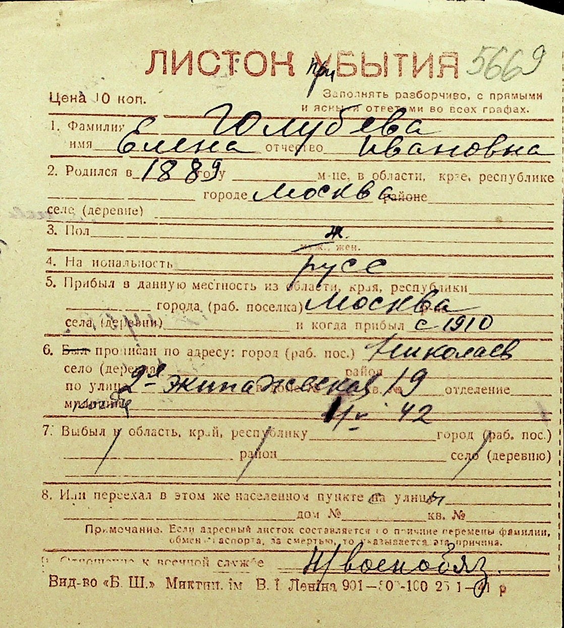 • • Перелік карток до фонду № Н-1016