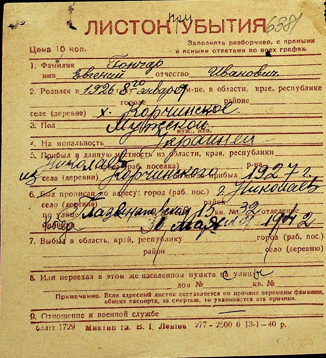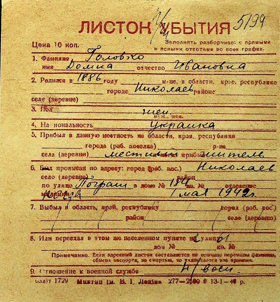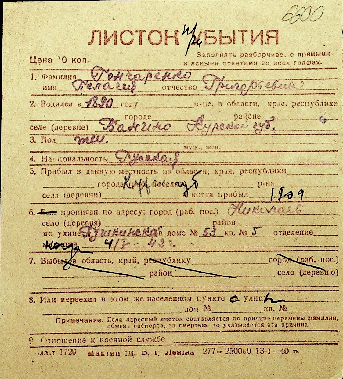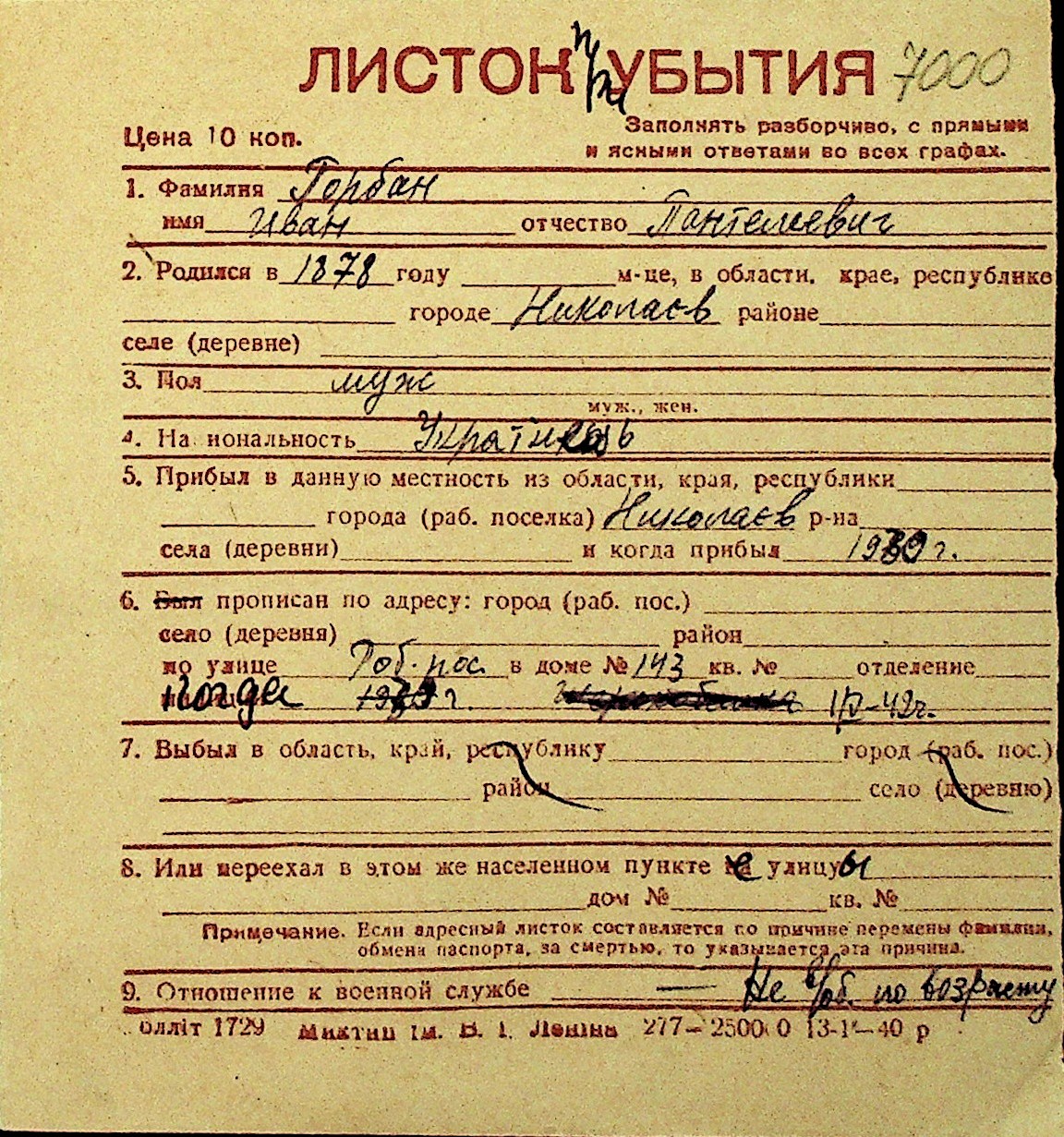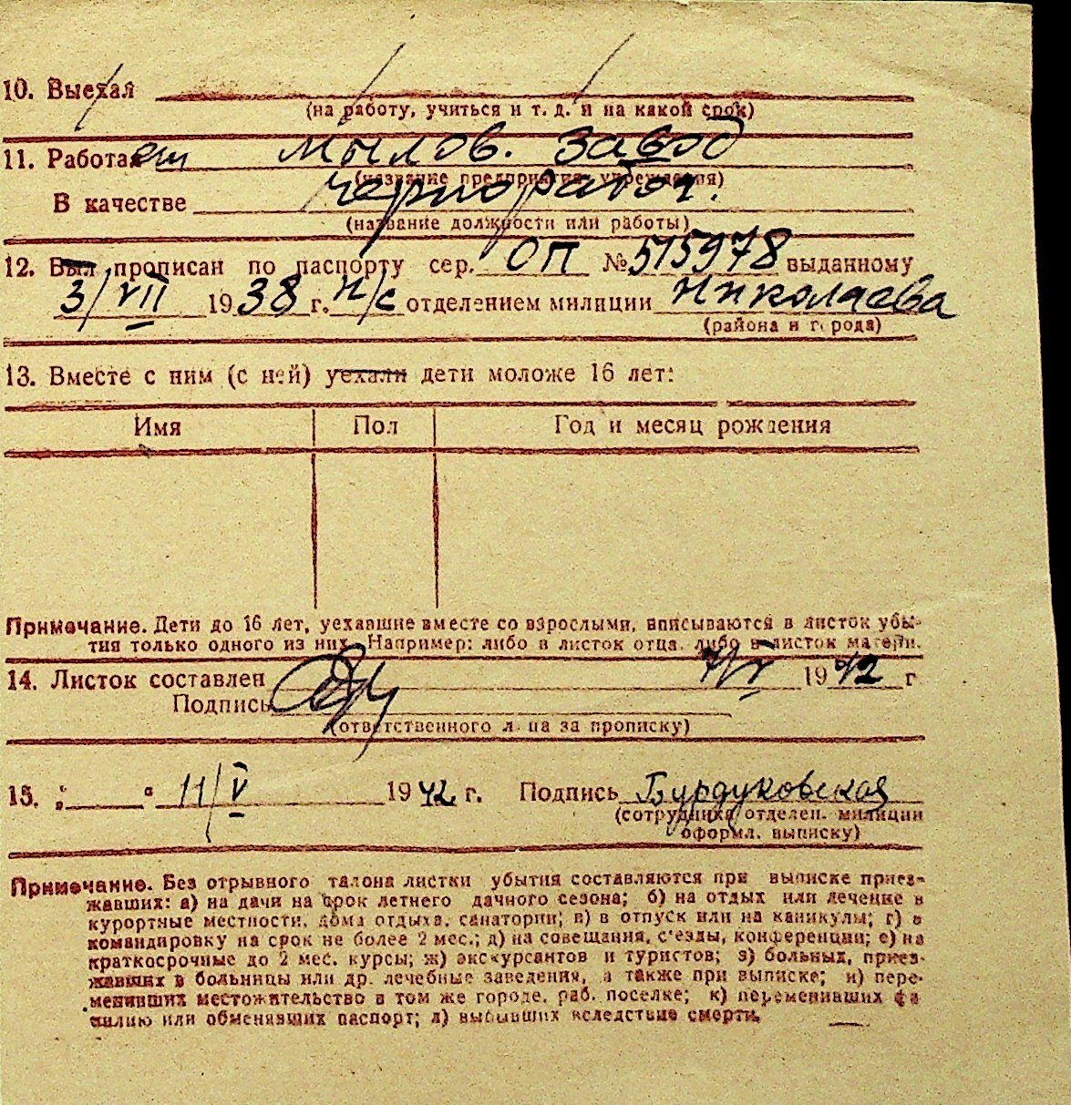 • • Перелік карток до фонду № Н-1016