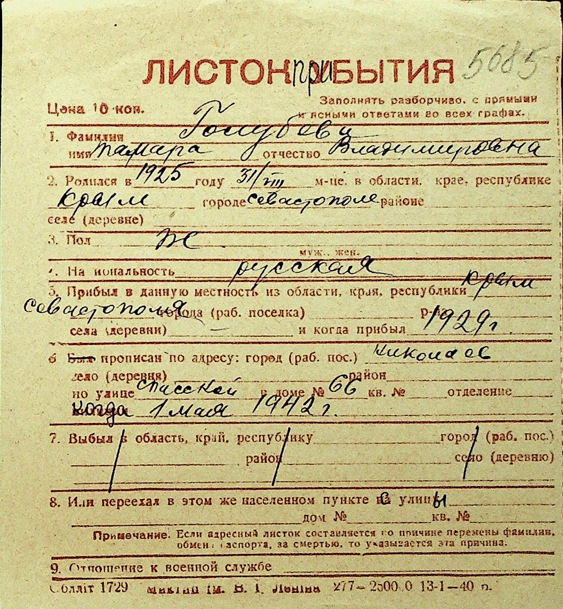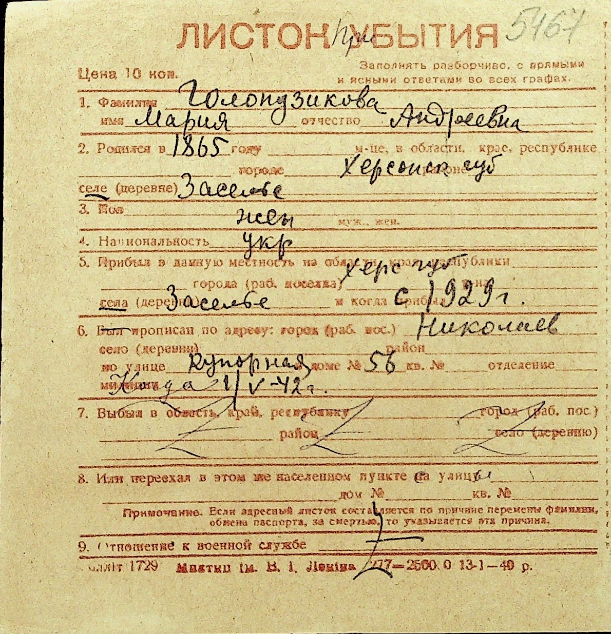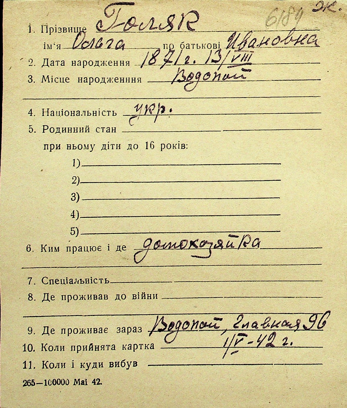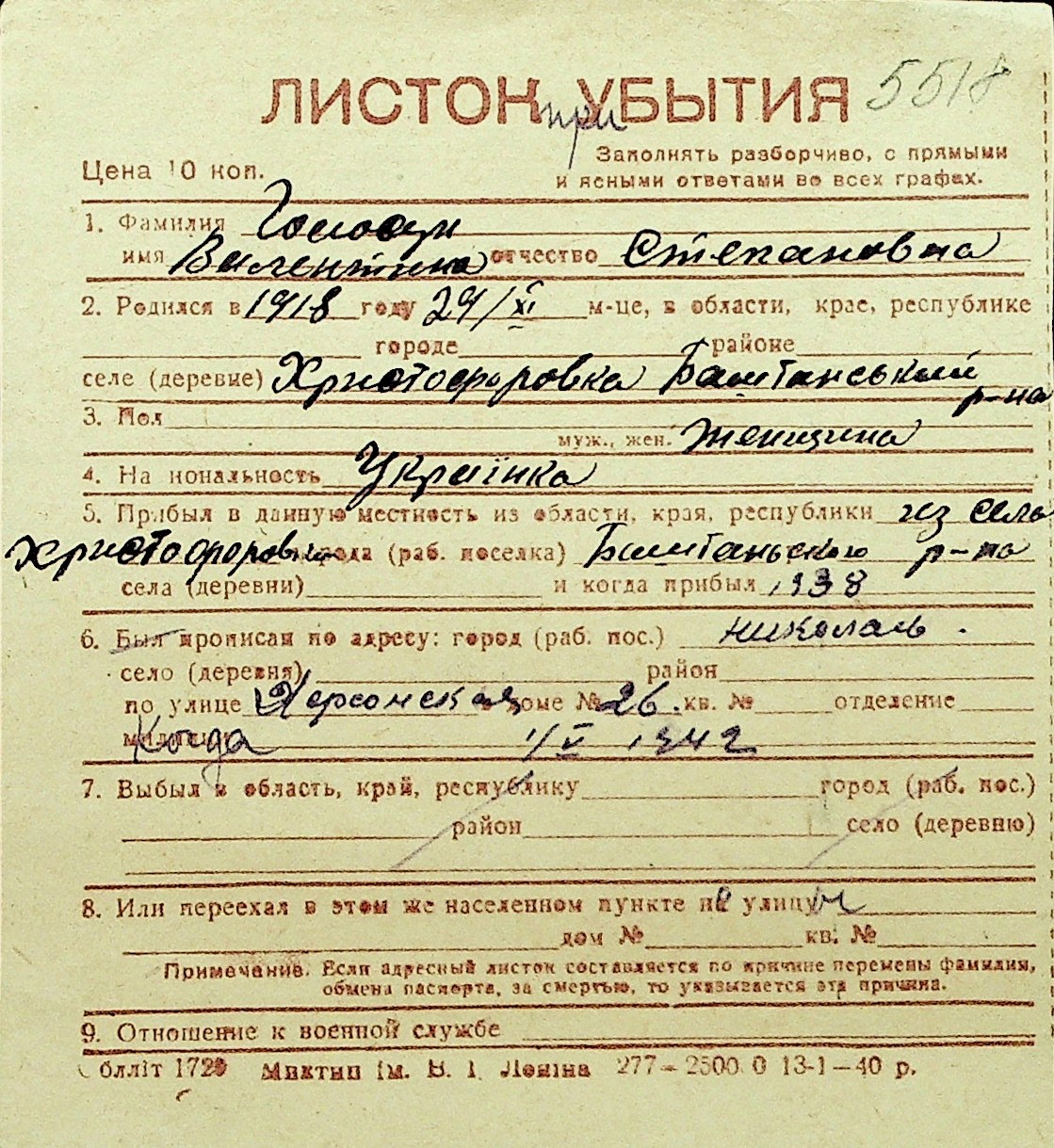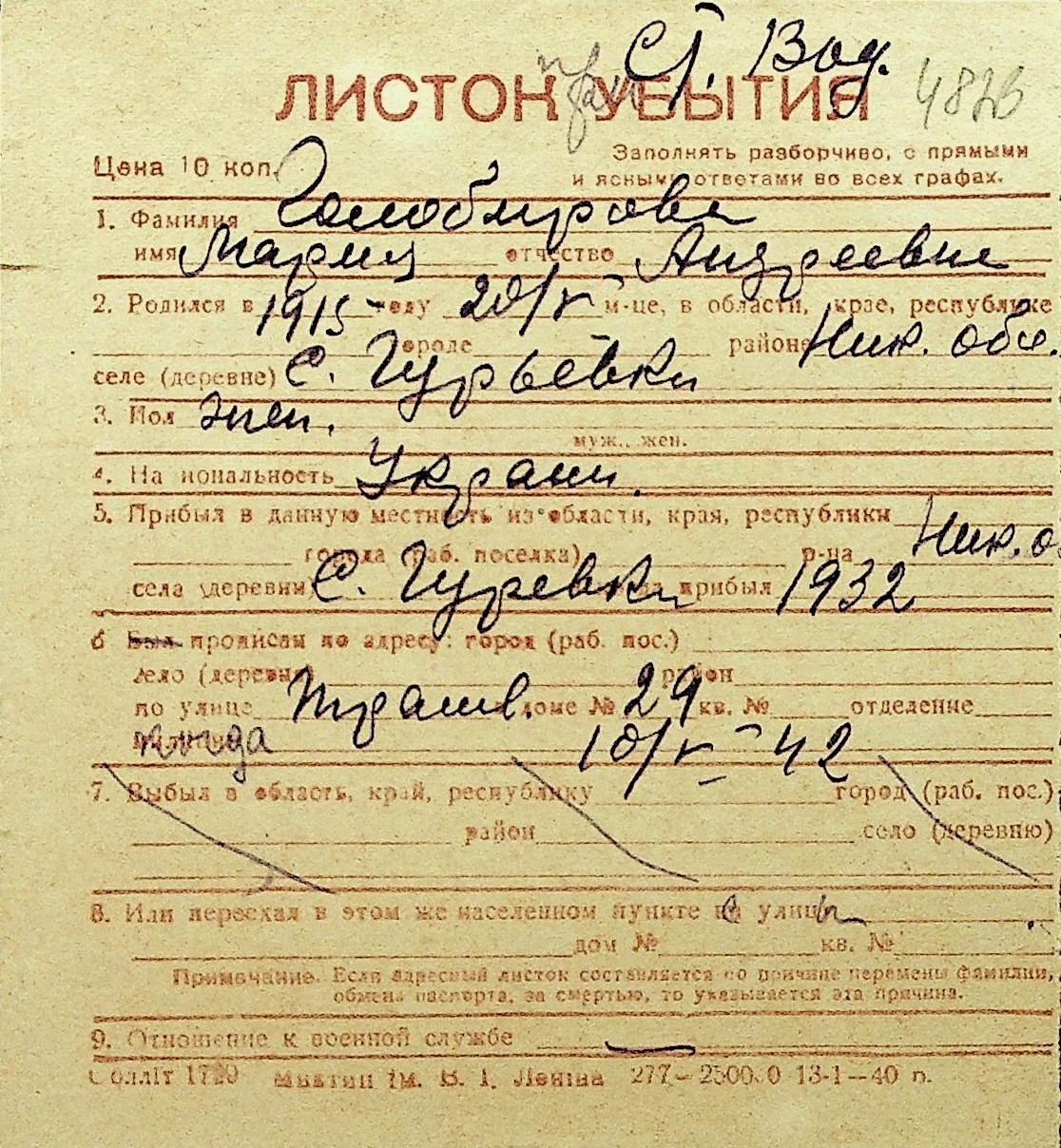 • • Перелік карток до фонду № Н-1016