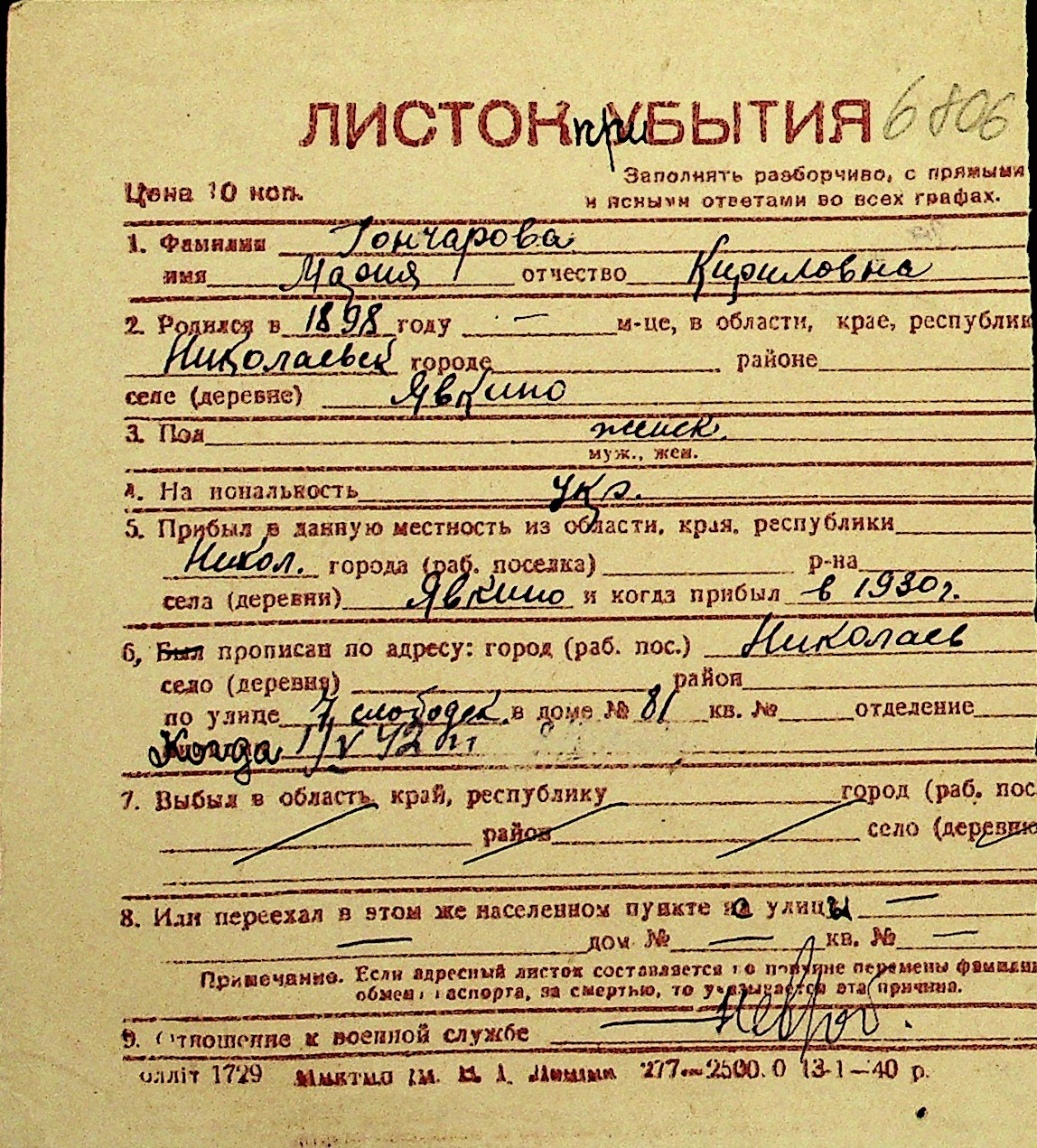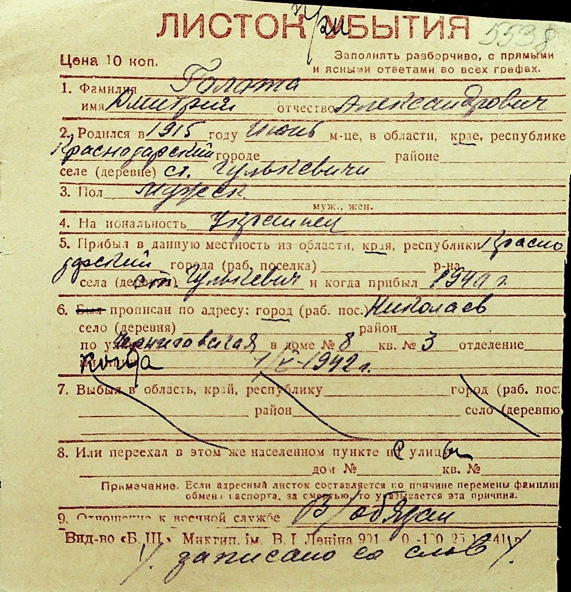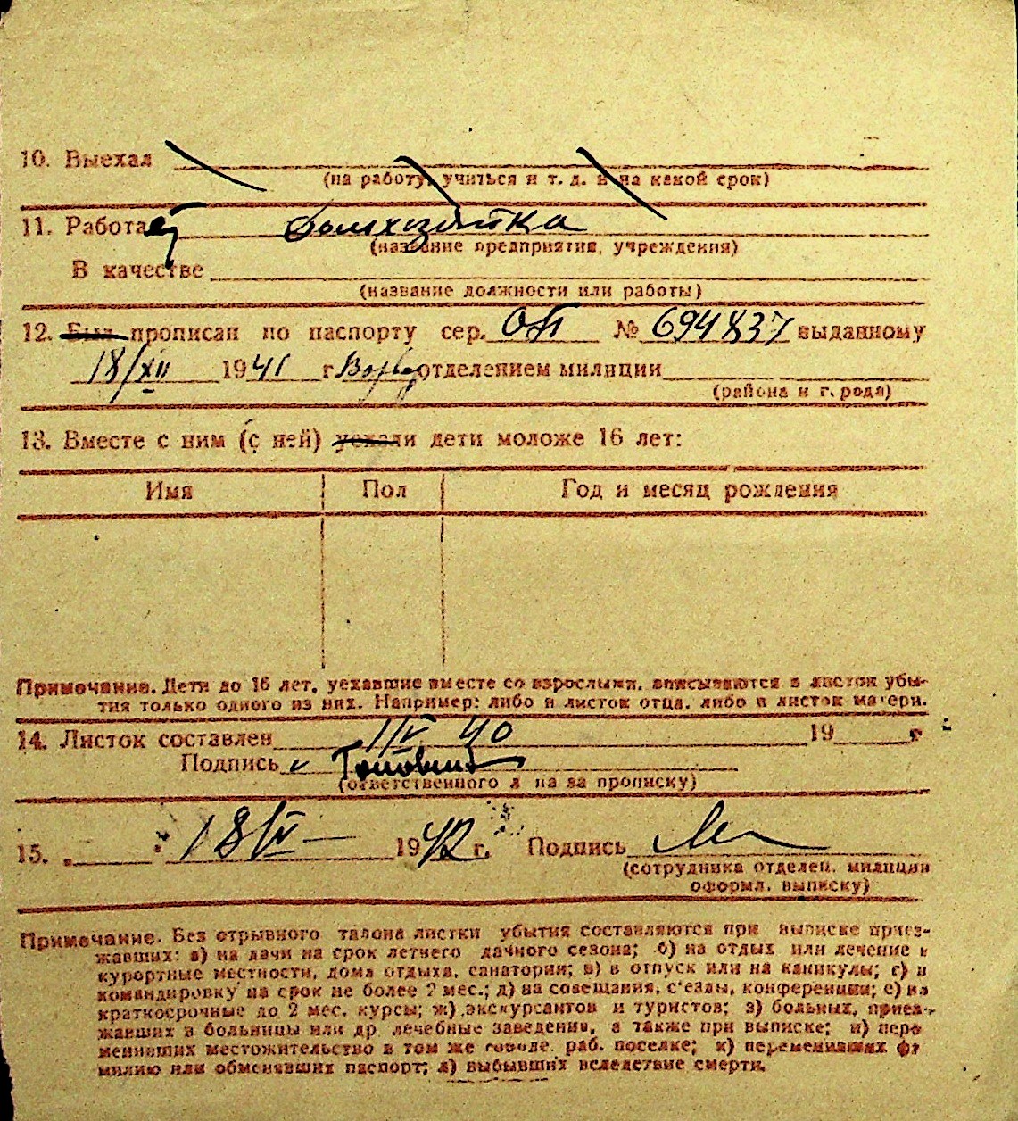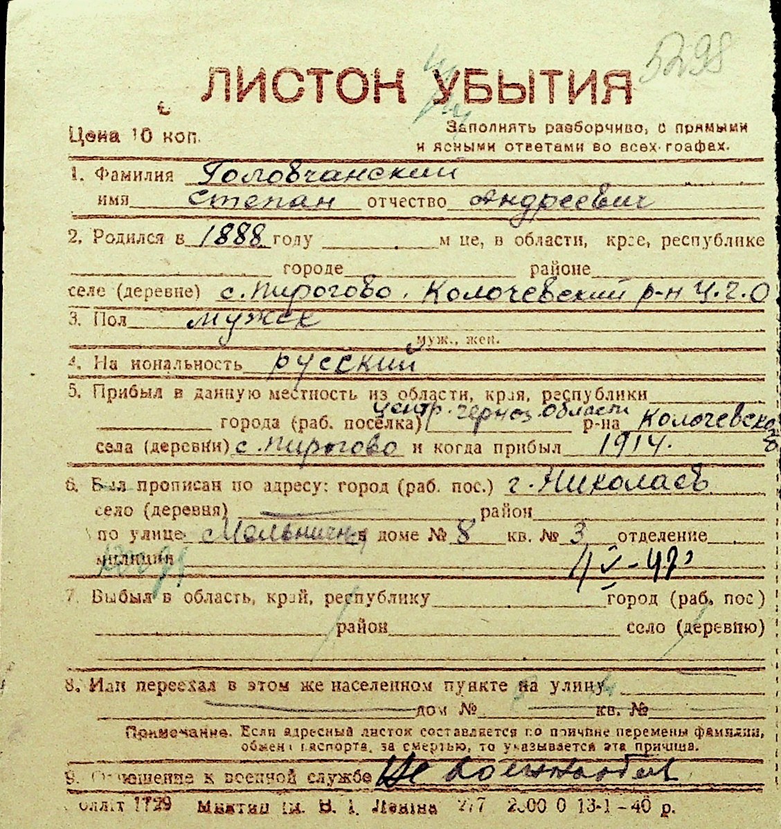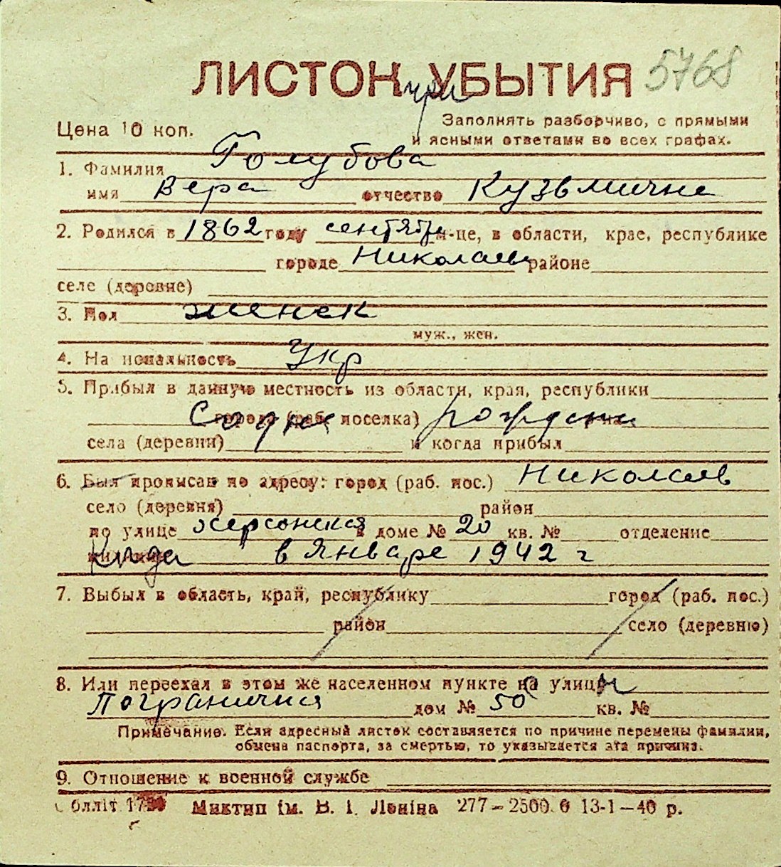 • • Перелік карток до фонду № Н-1016