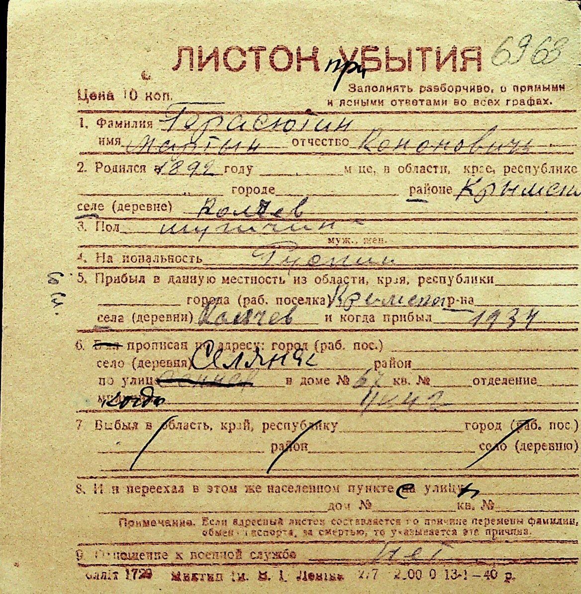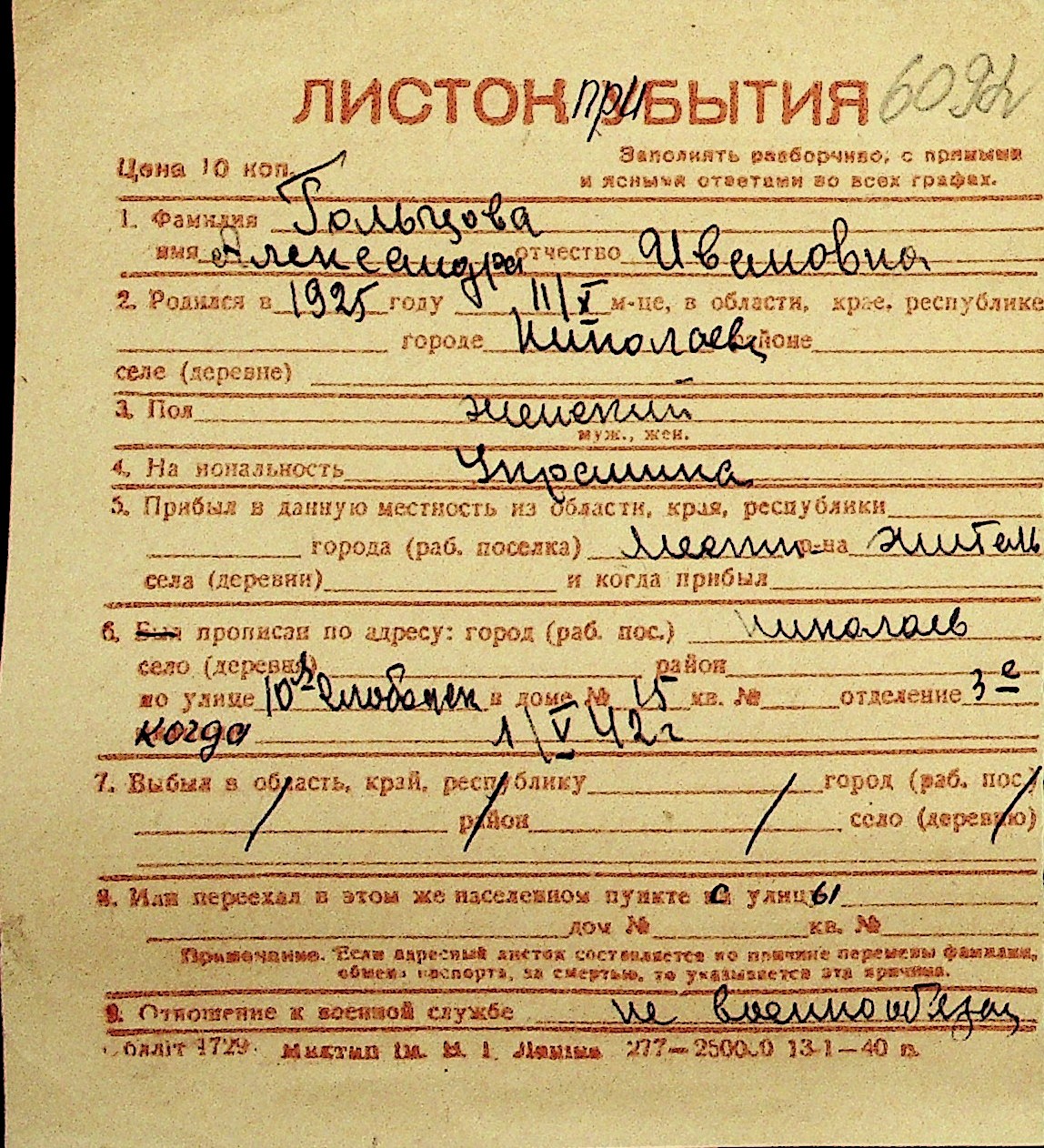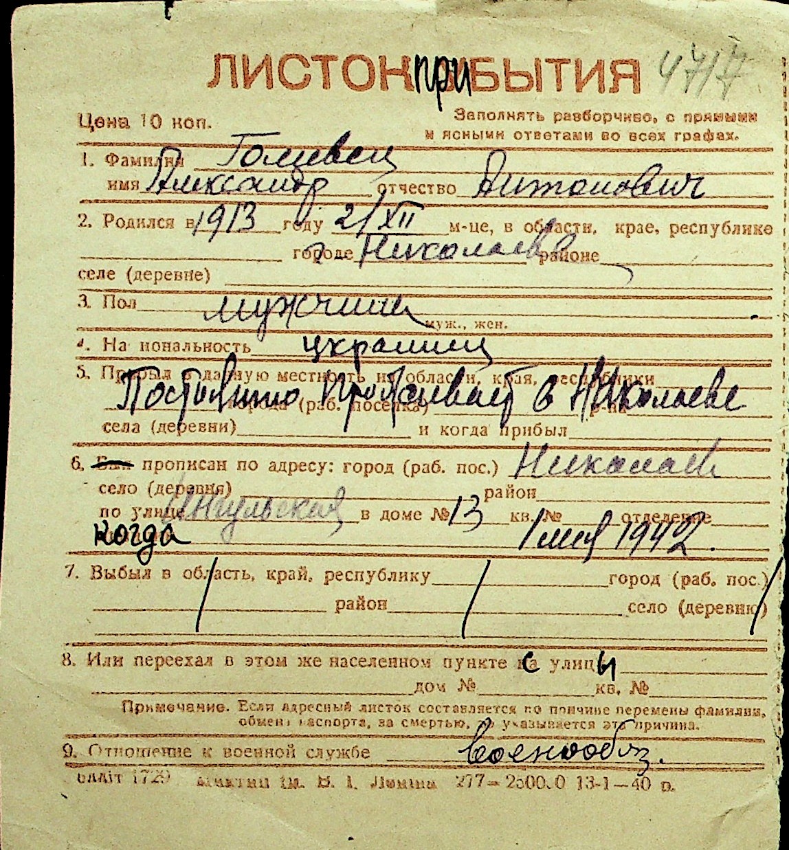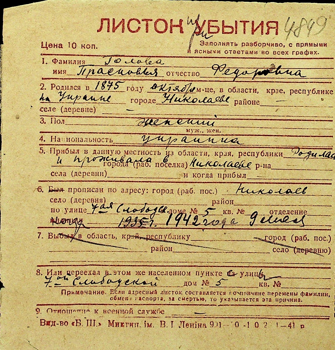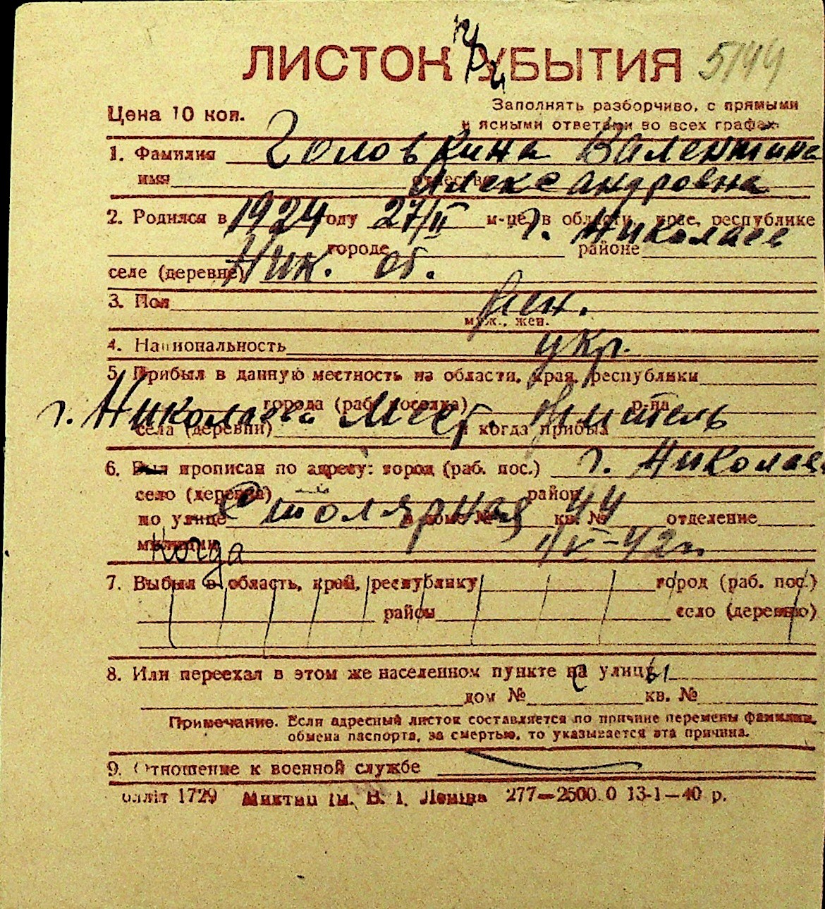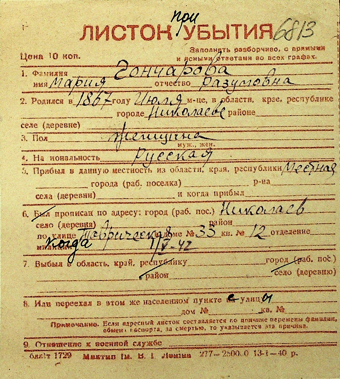 • • Перелік карток до фонду № Н-1016