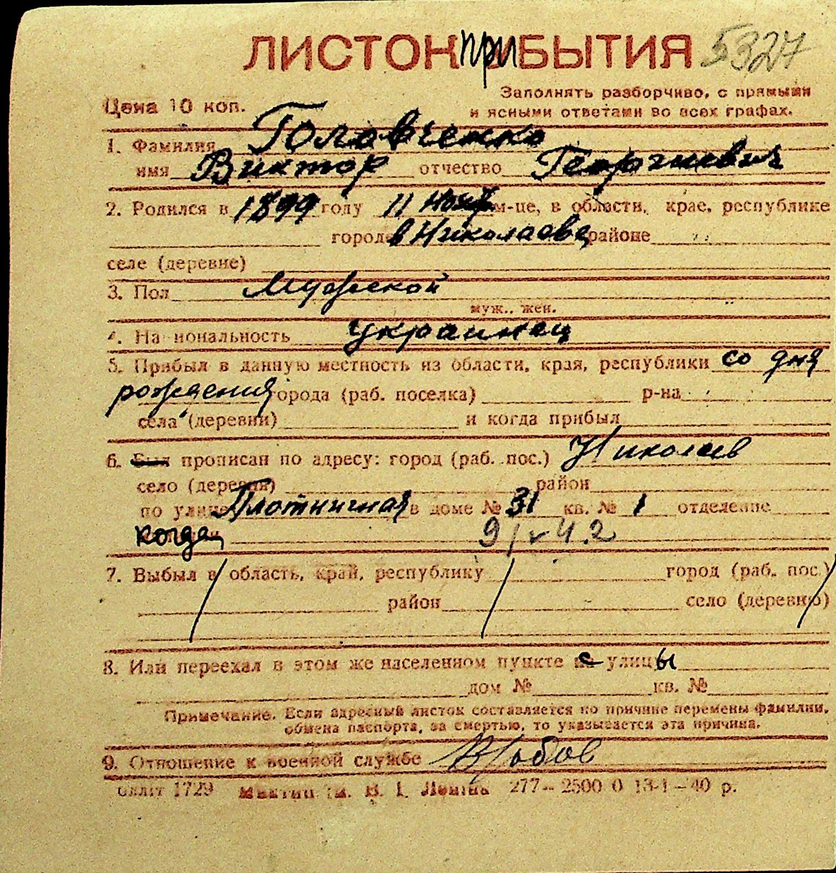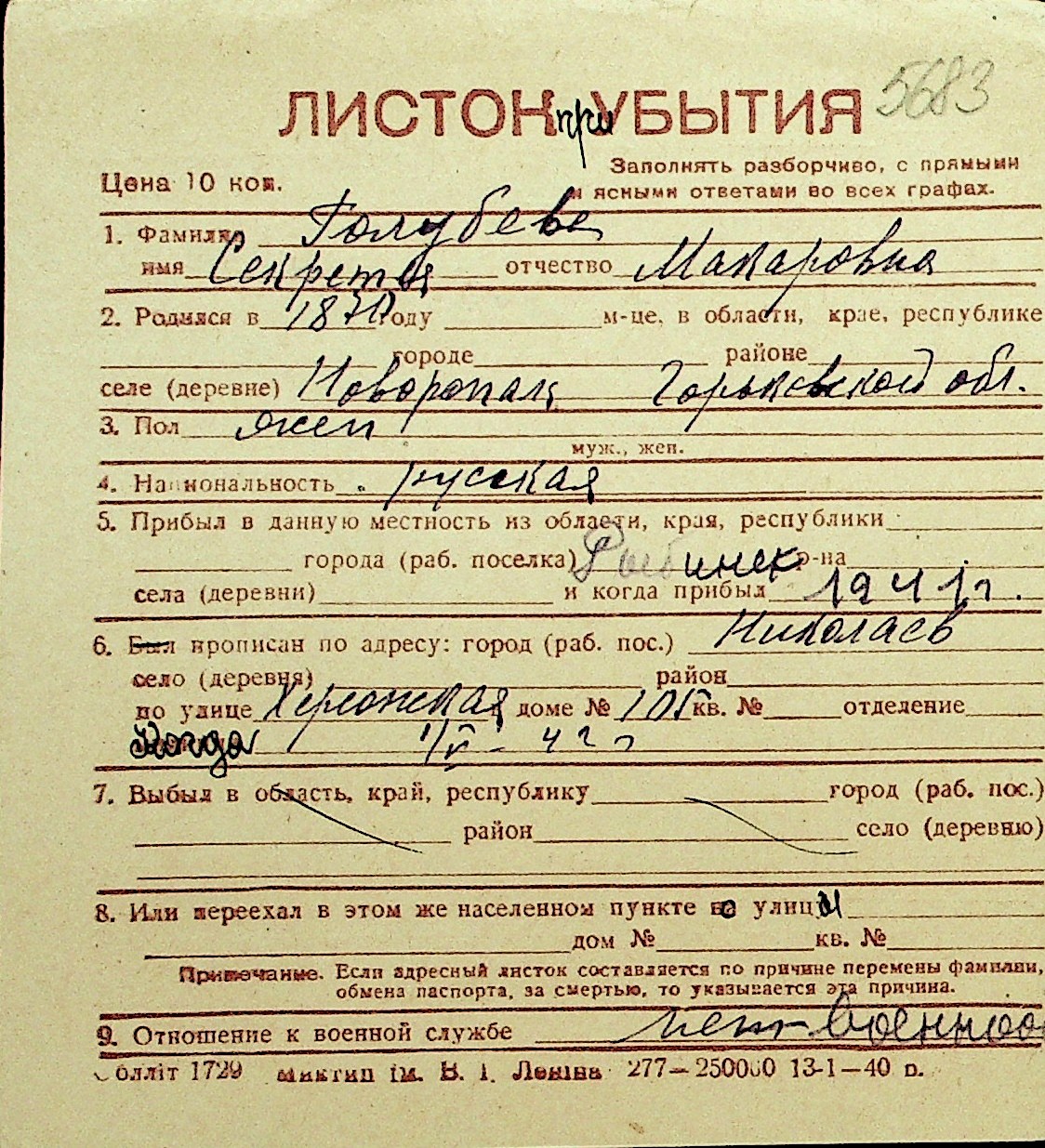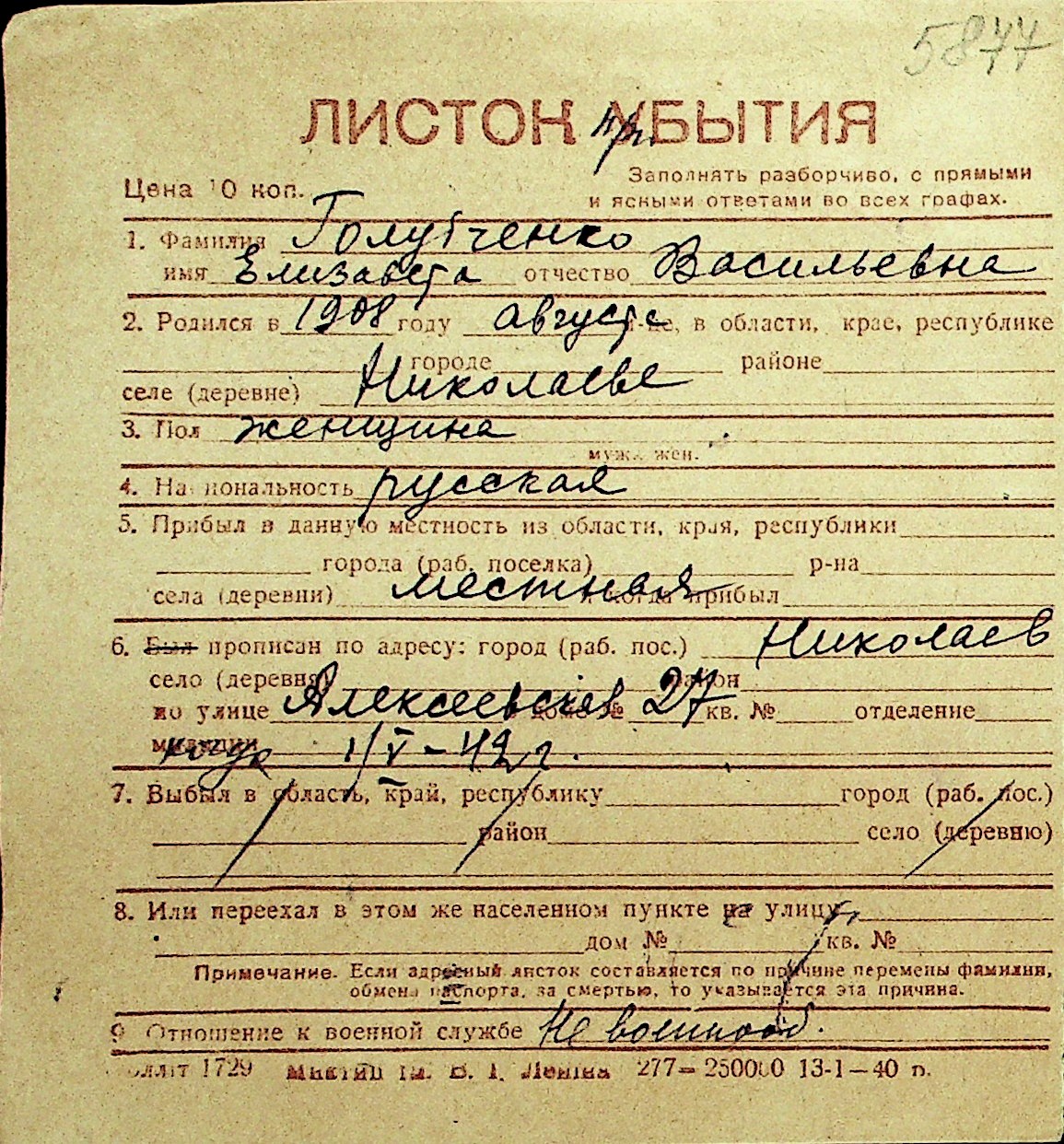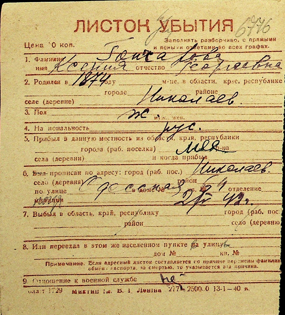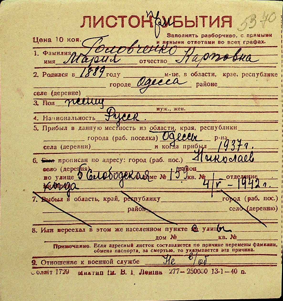 • • Перелік карток до фонду № Н-1016