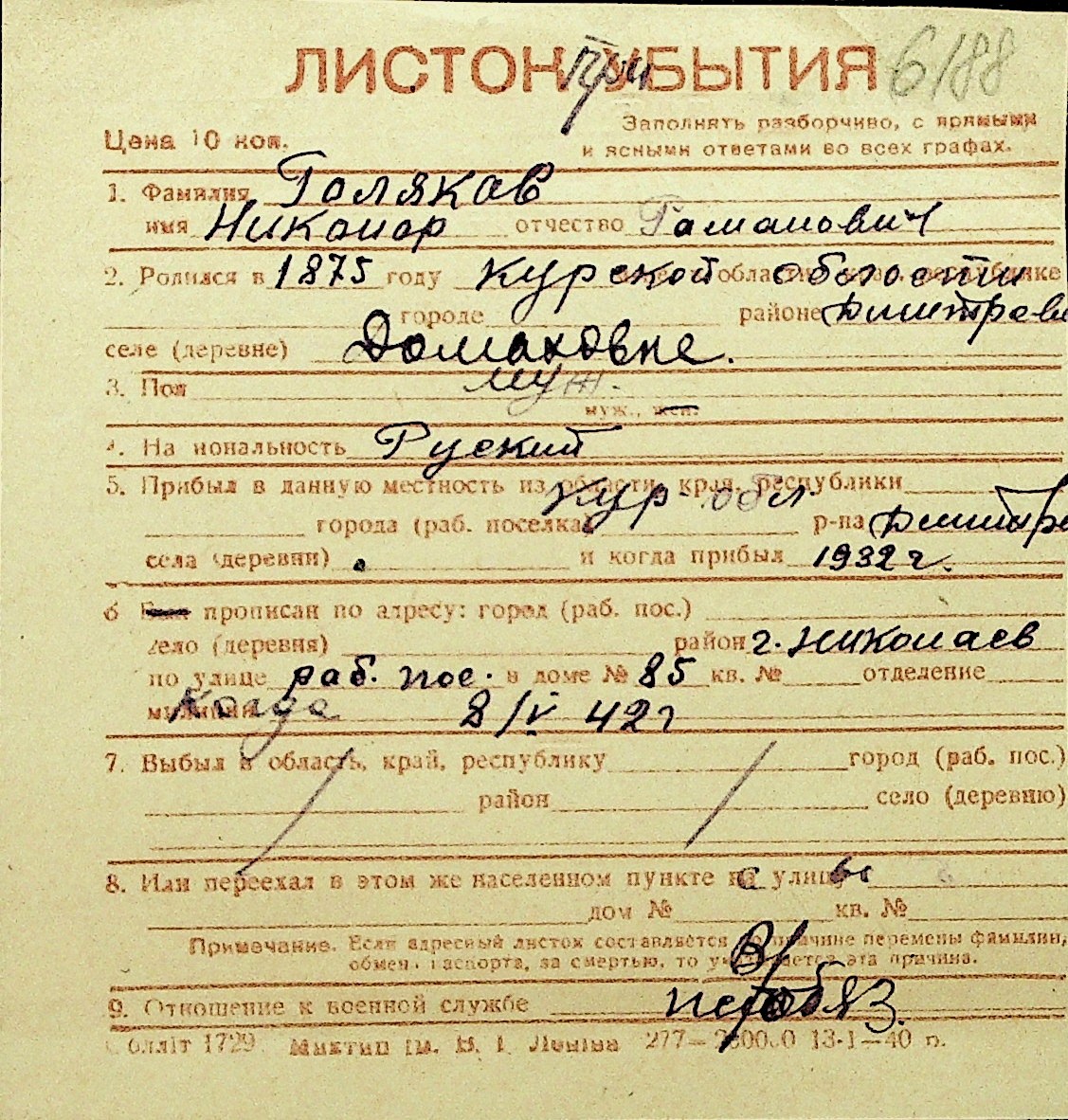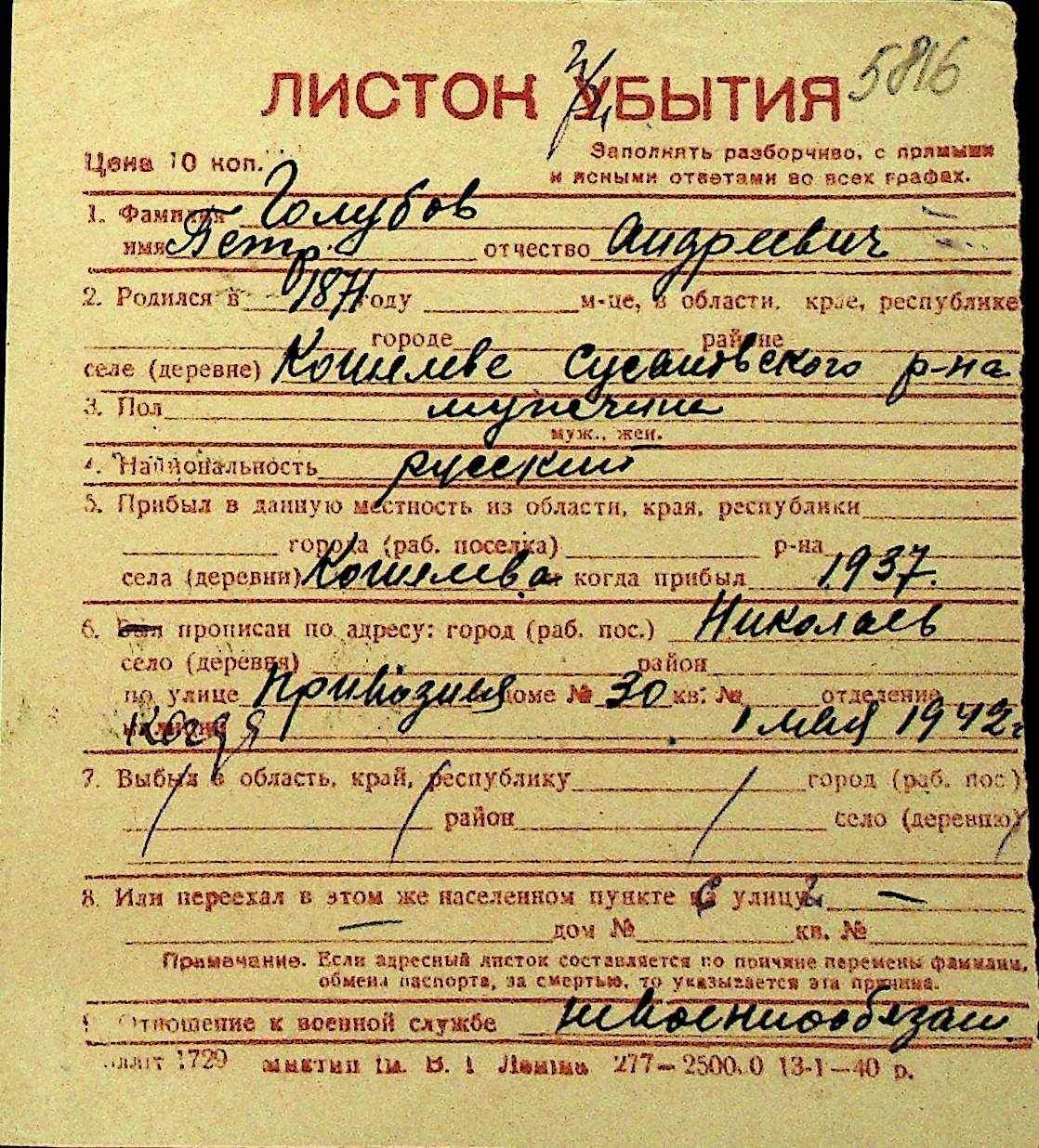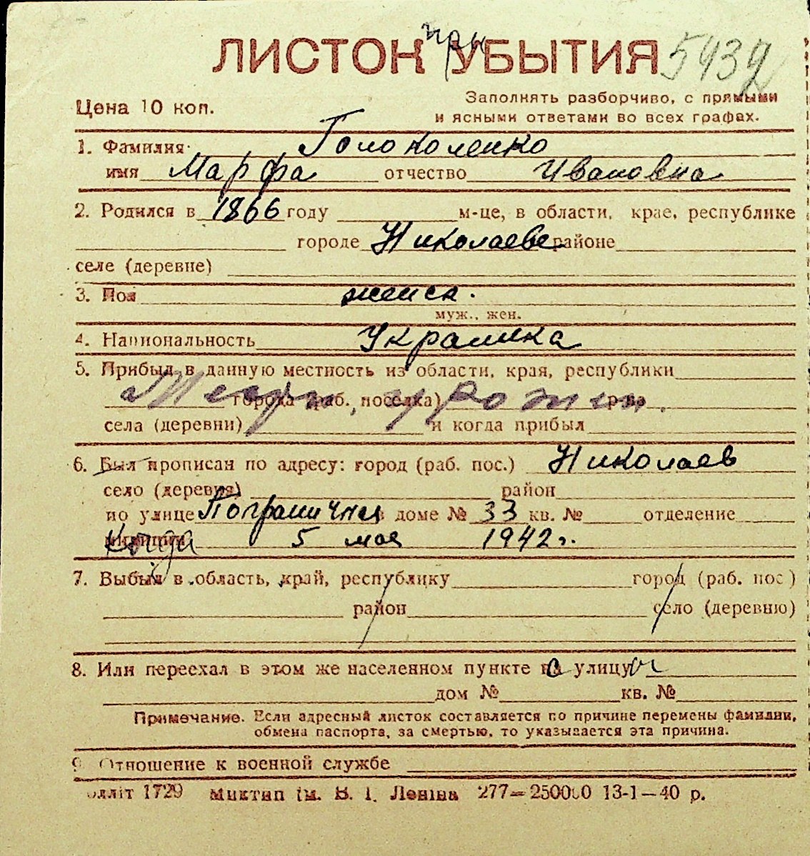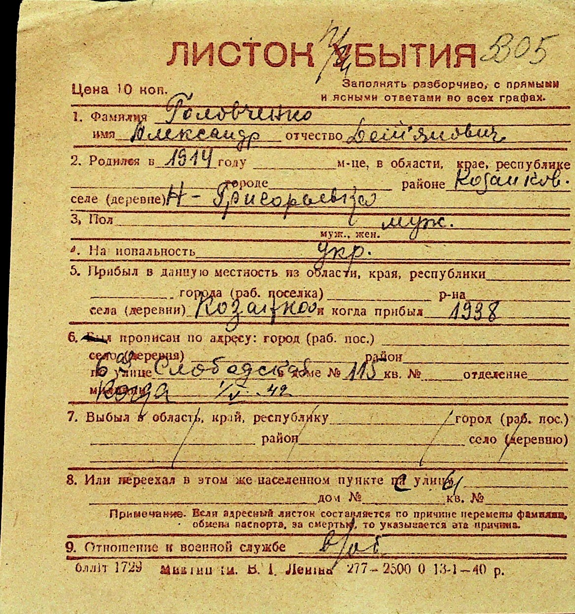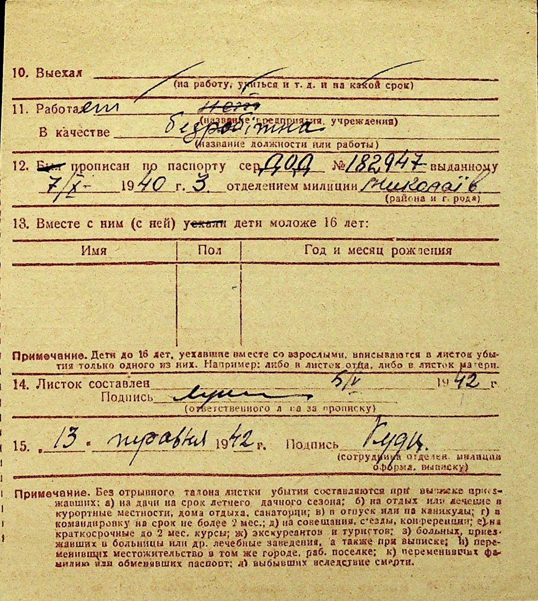 • • Перелік карток до фонду № Н-1016
