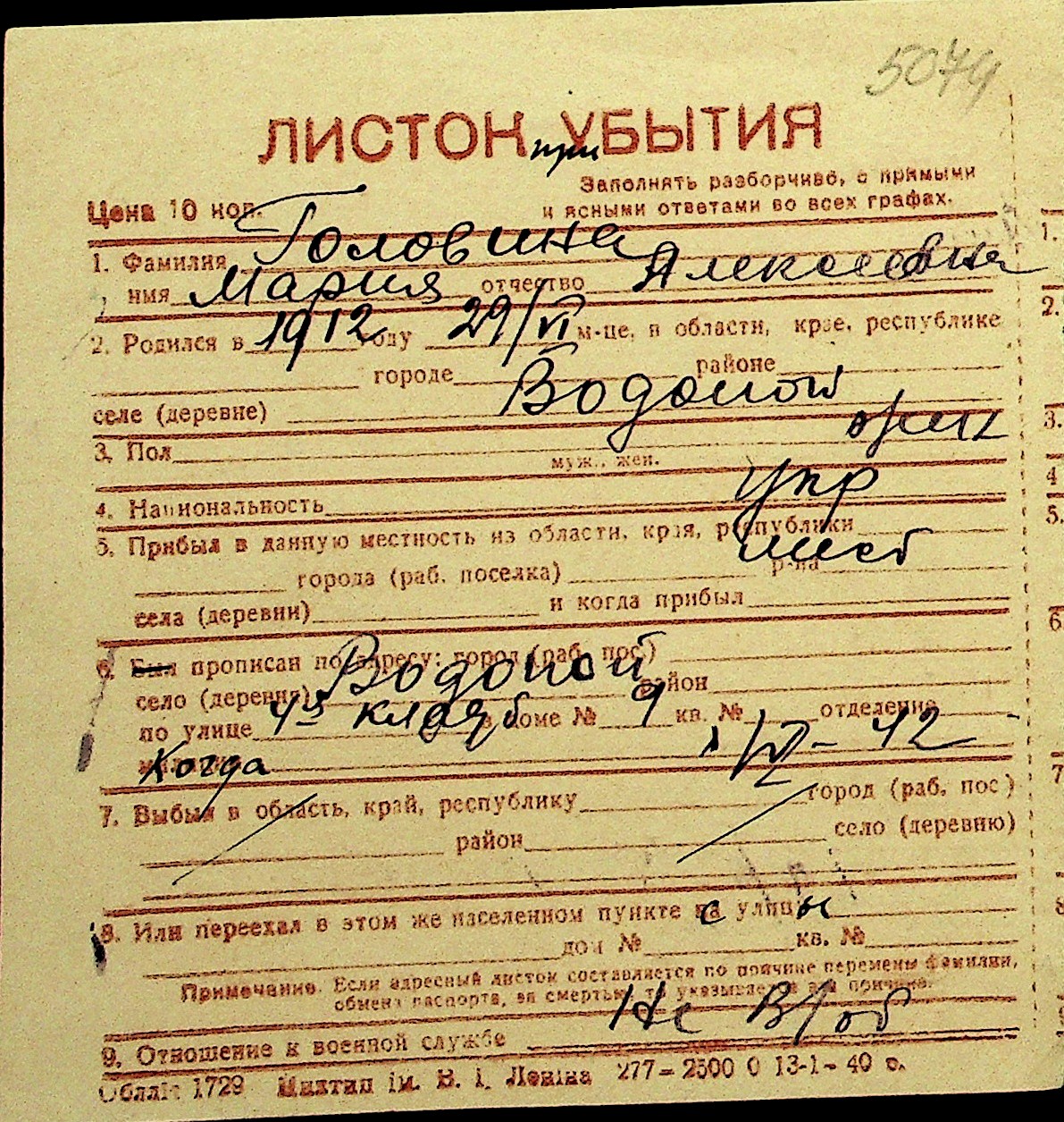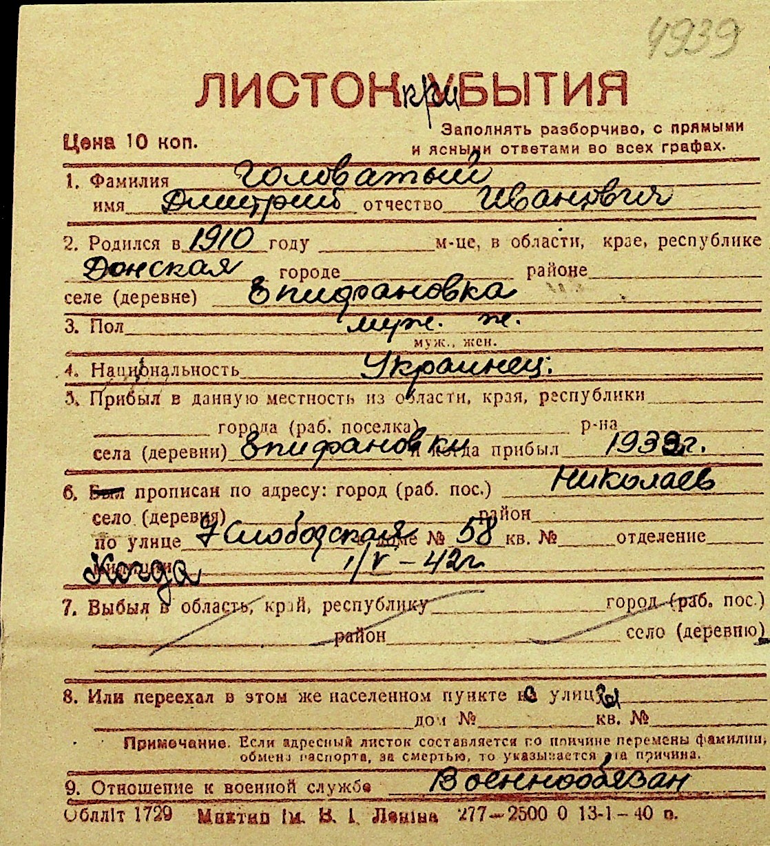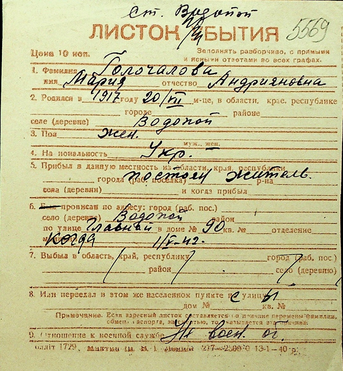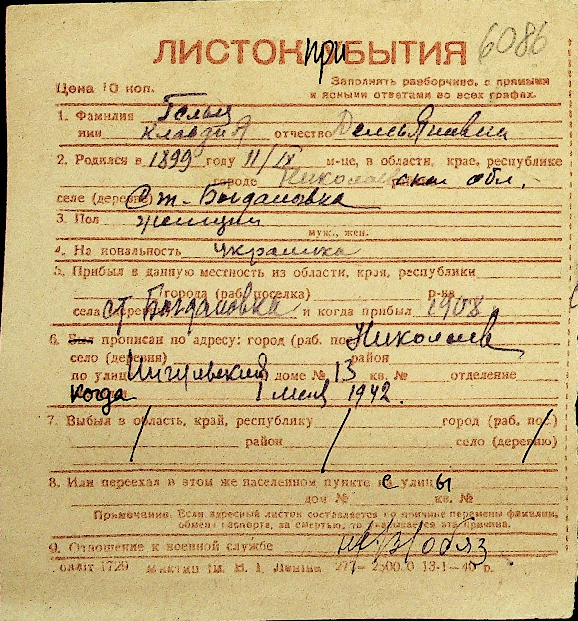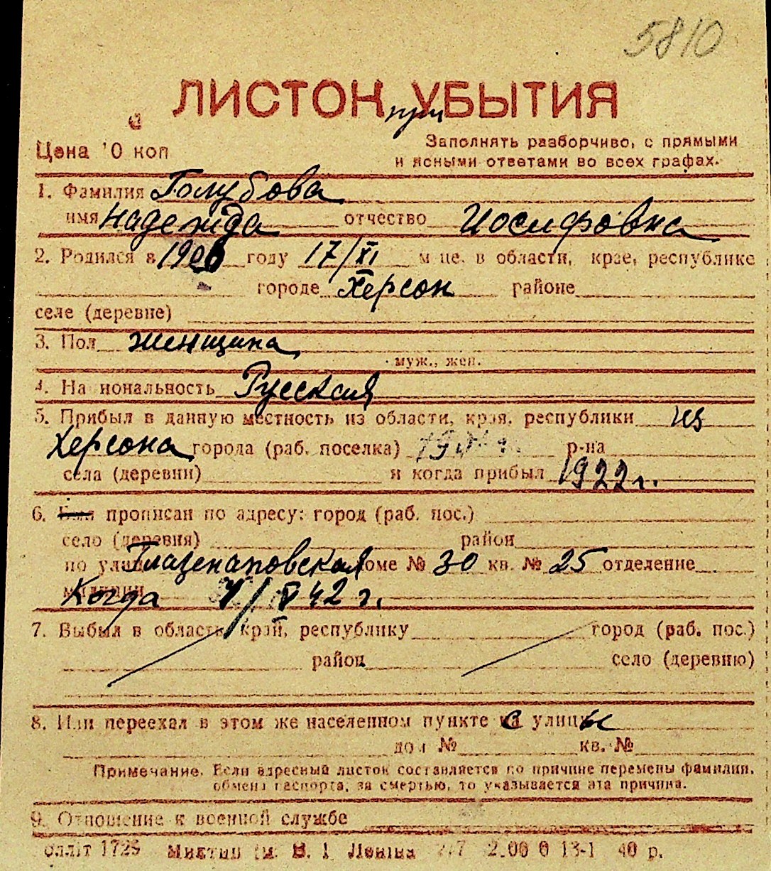 • • Перелік карток до фонду № Н-1016