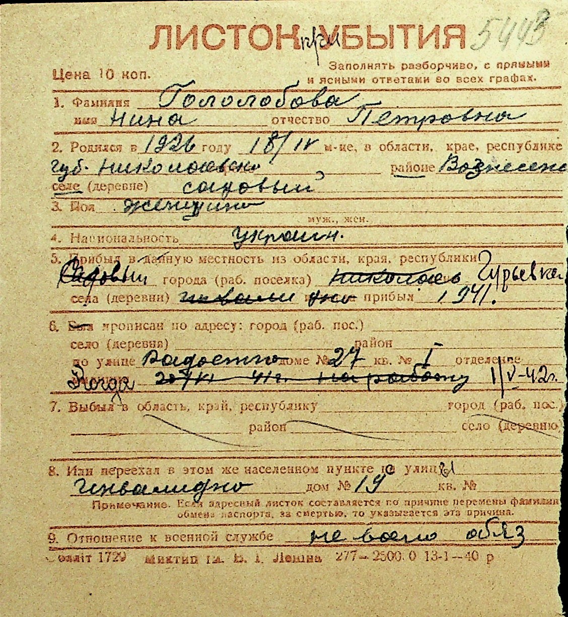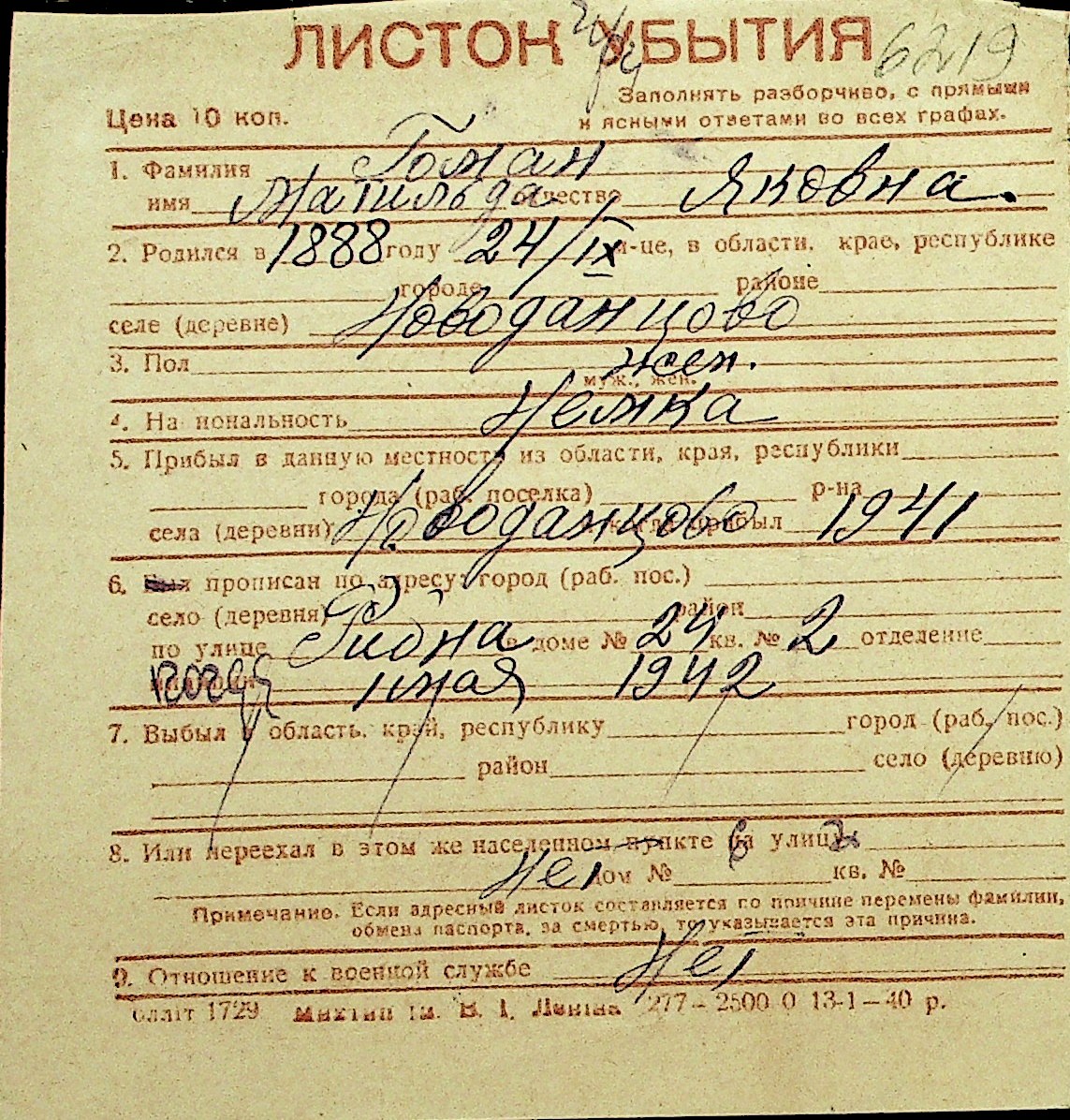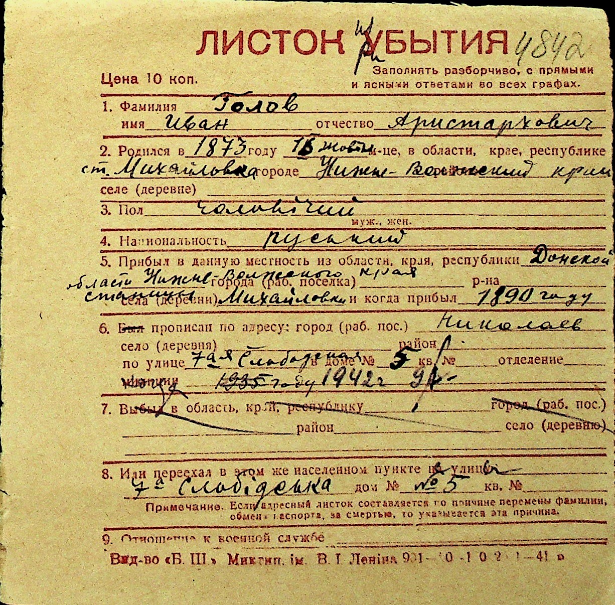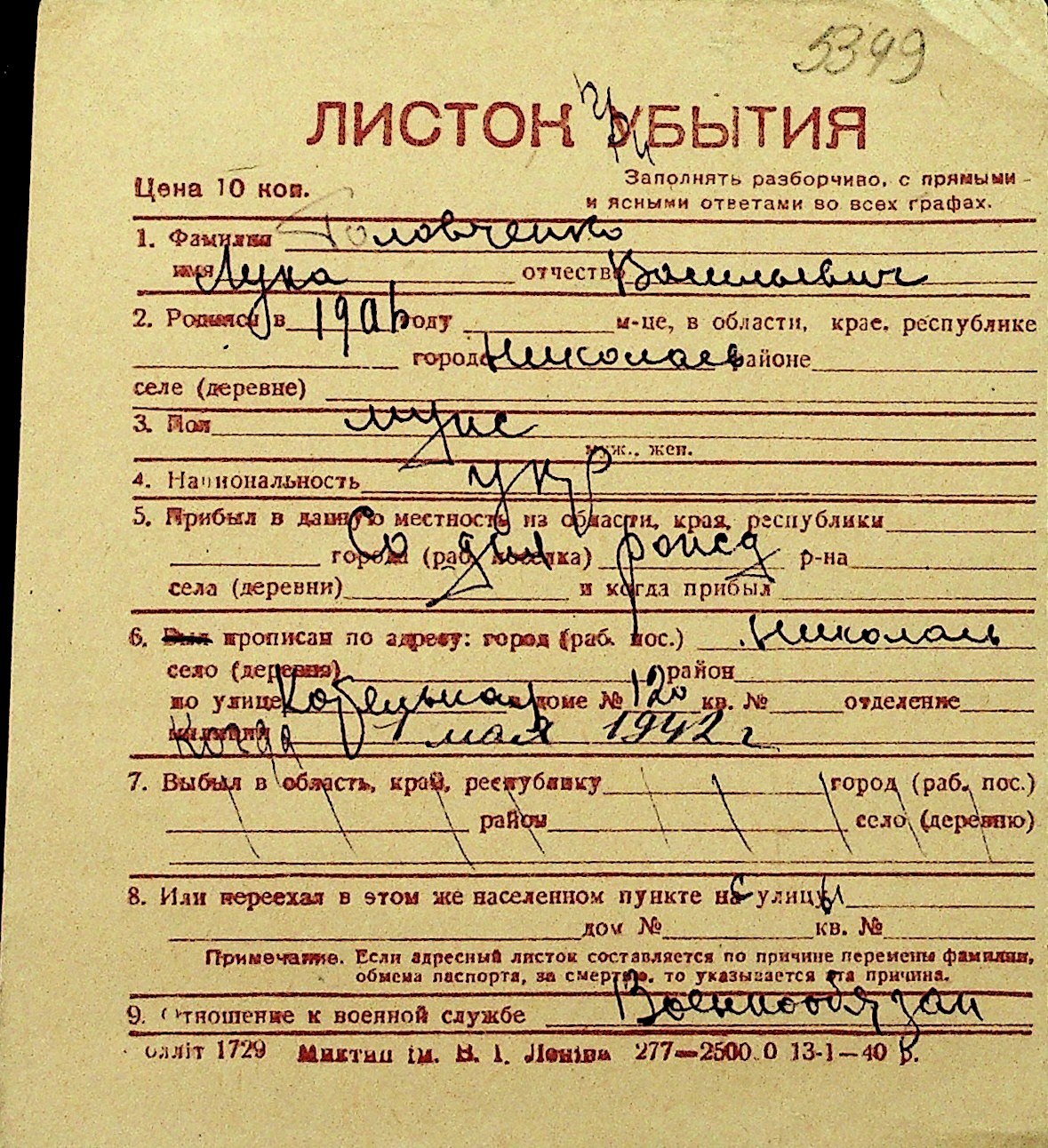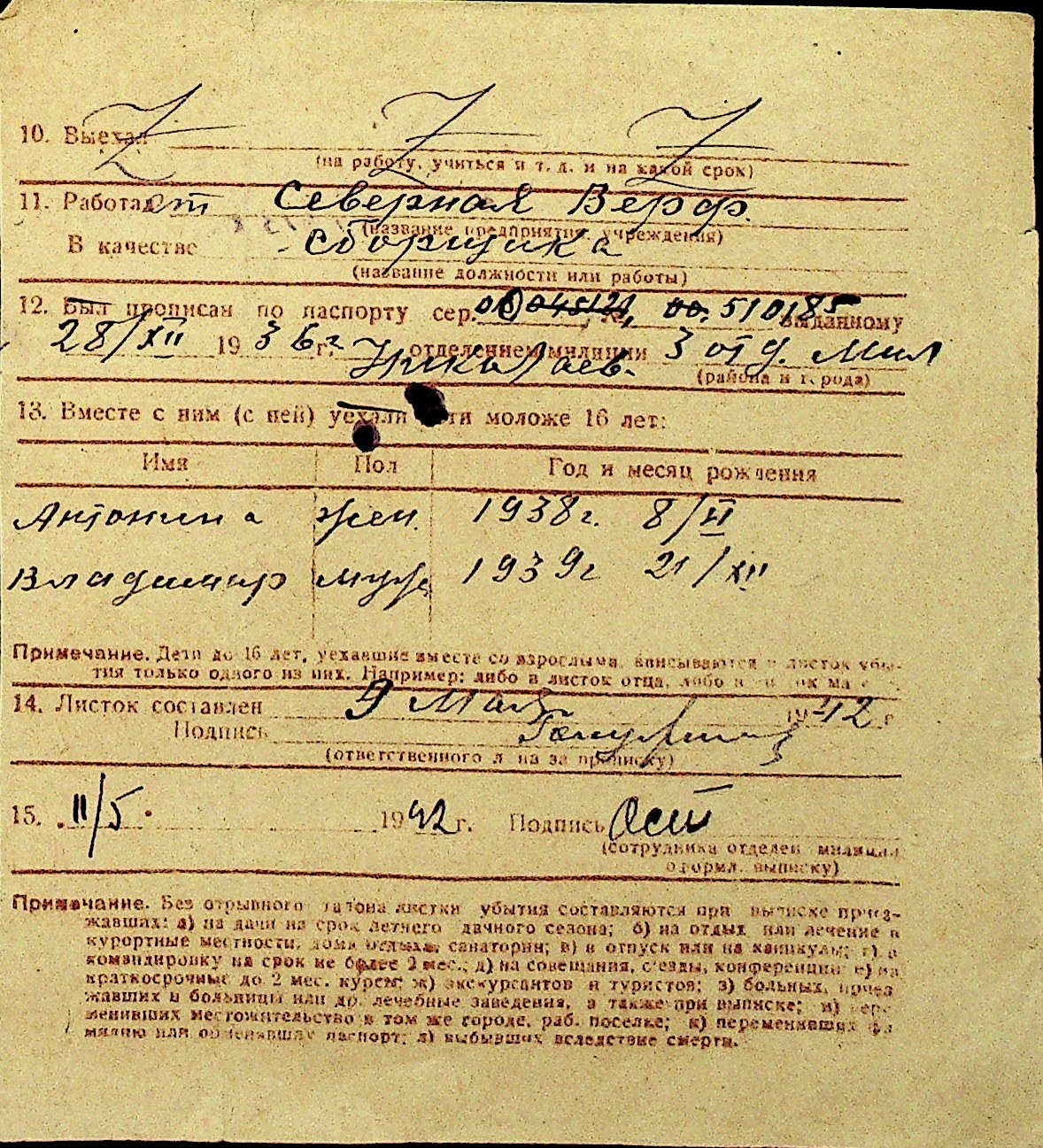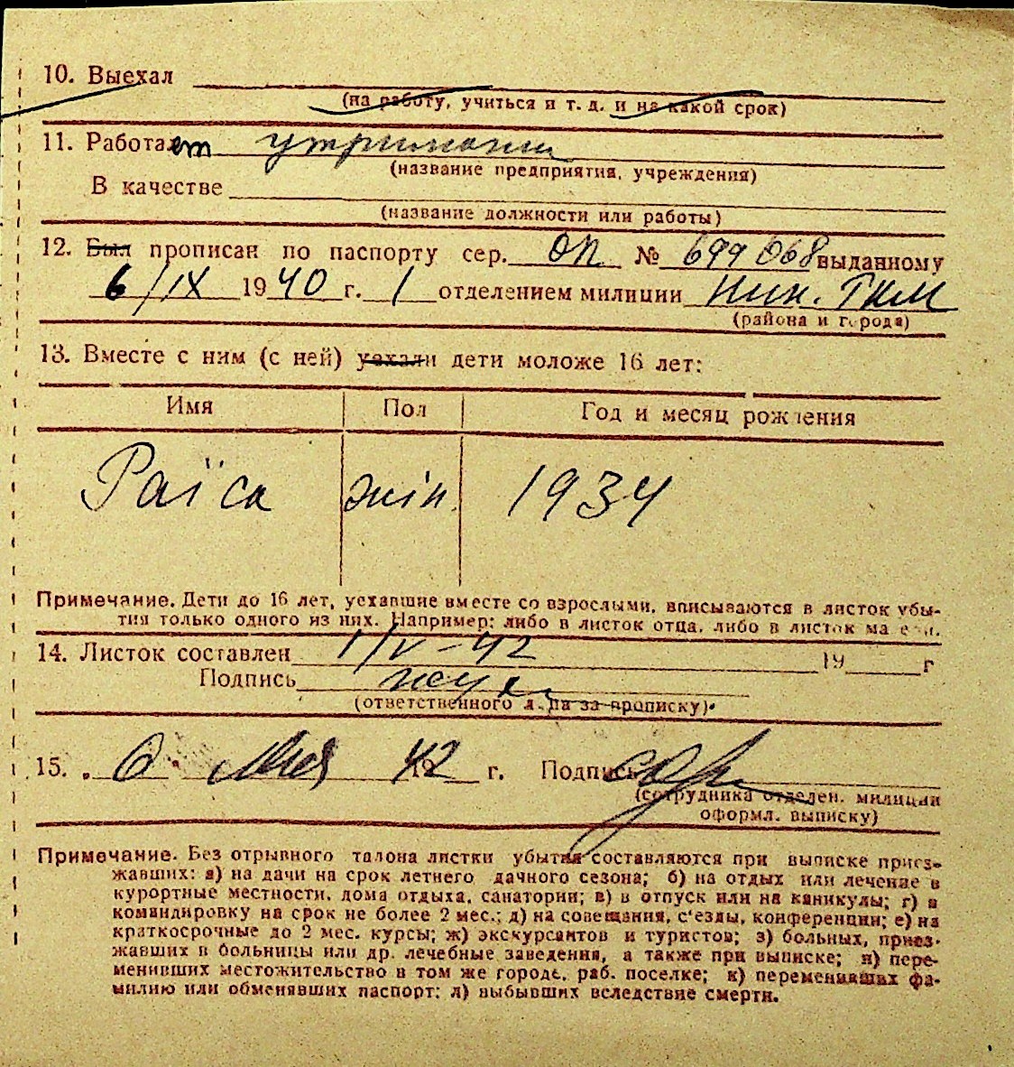 • • Перелік карток до фонду № Н-1016