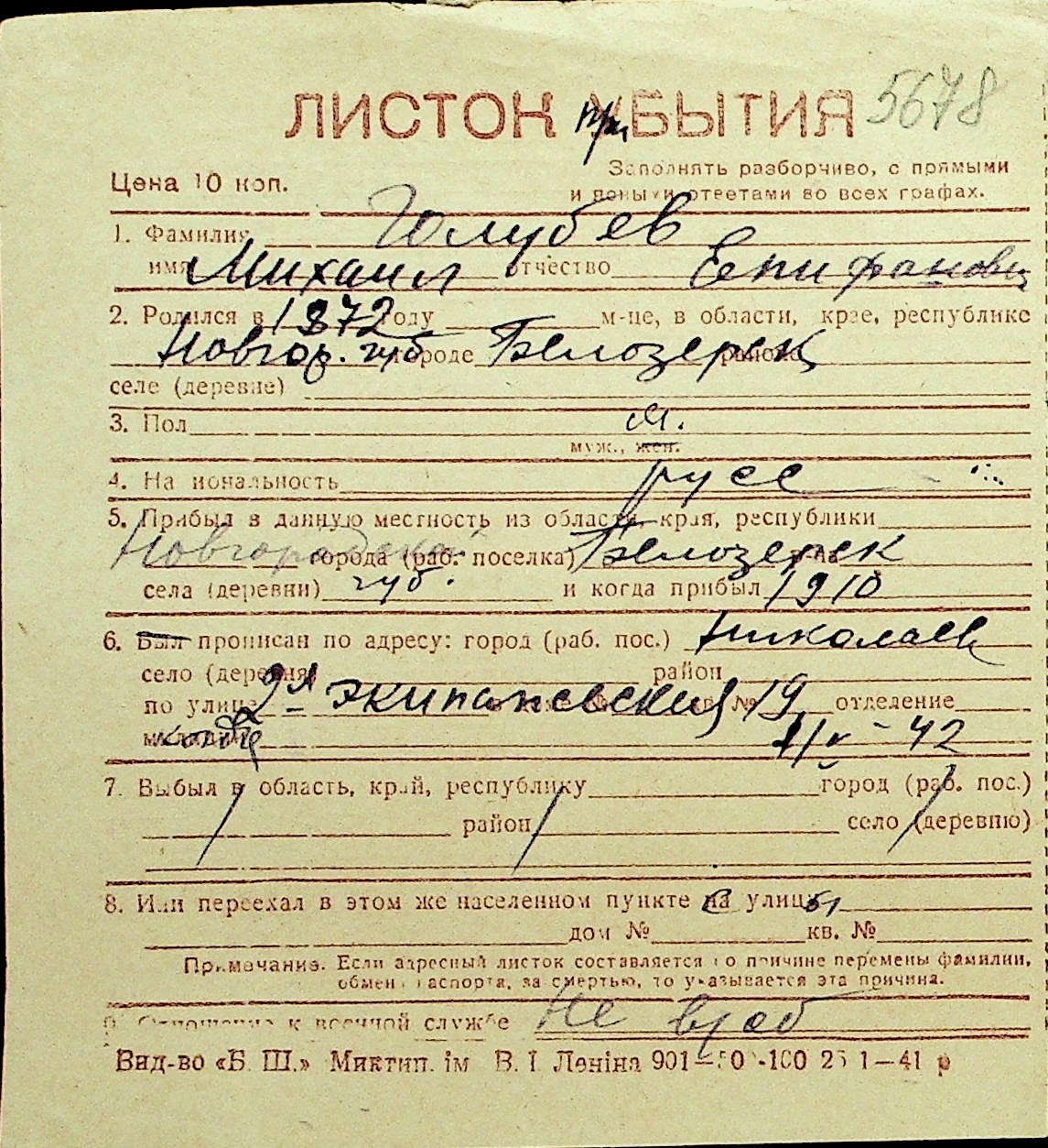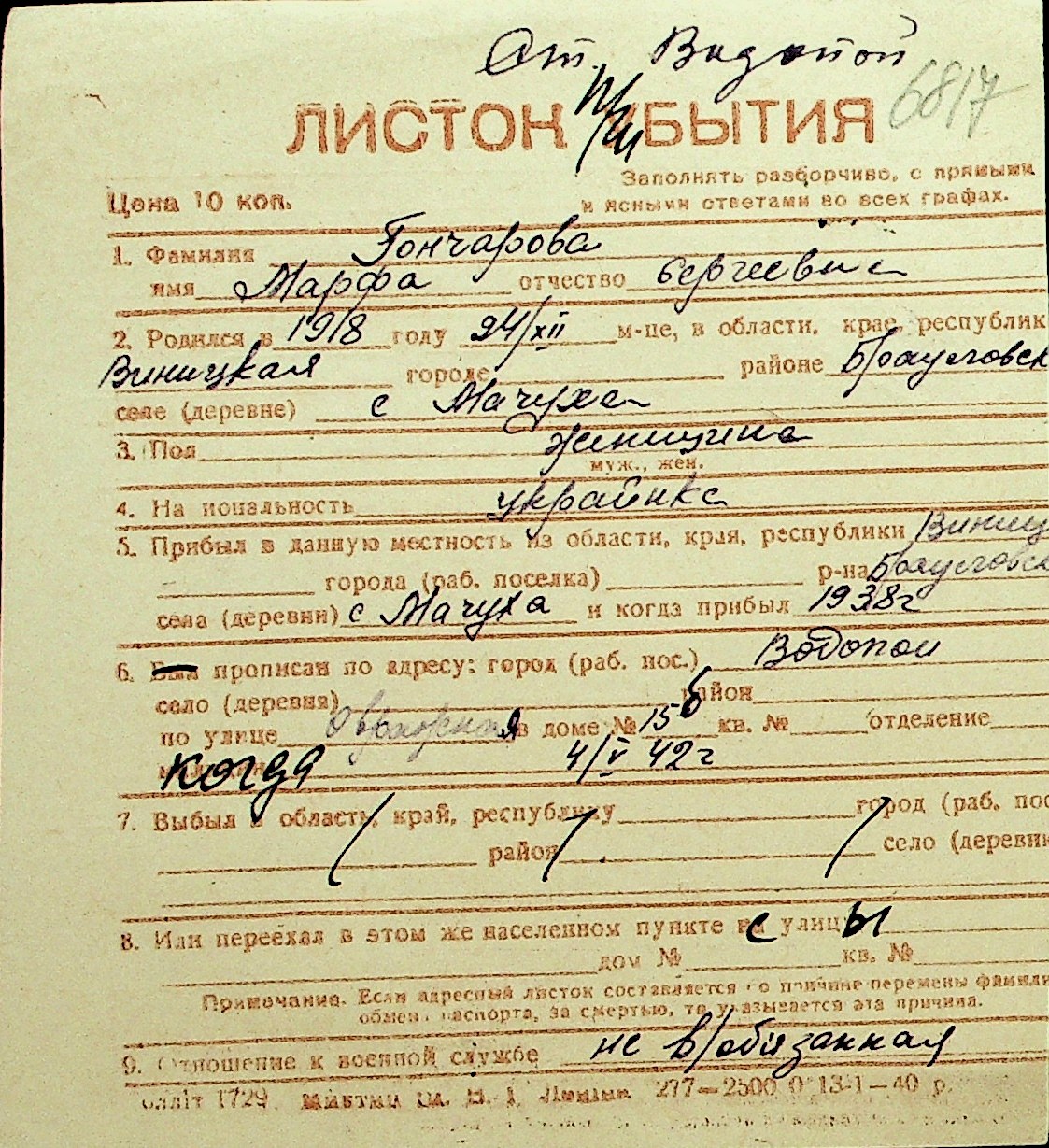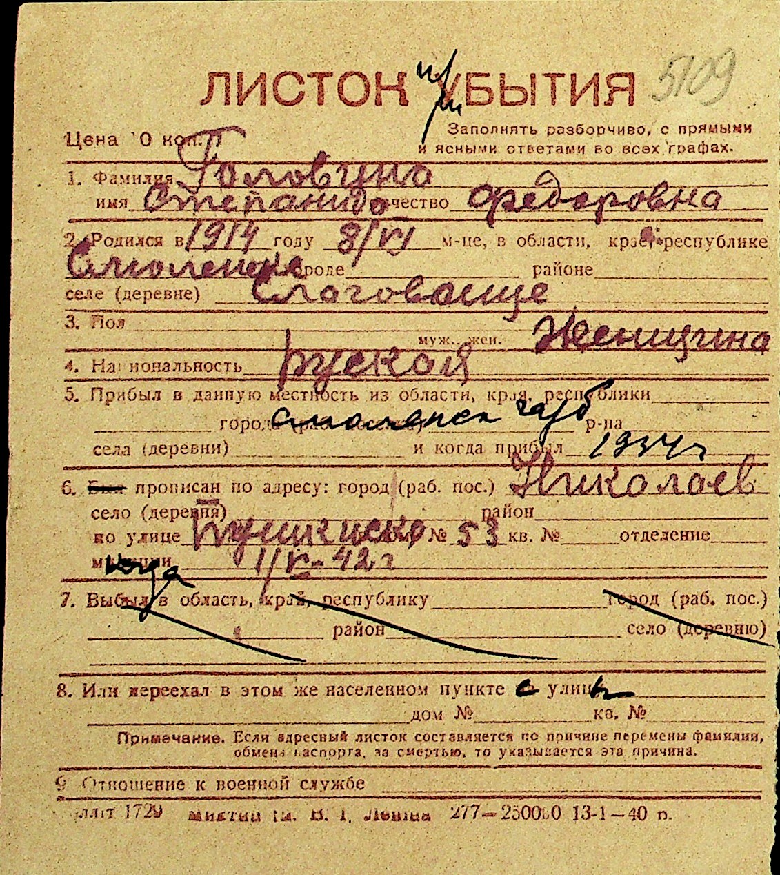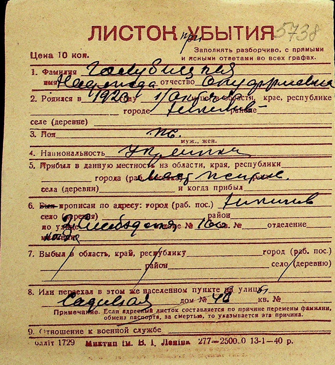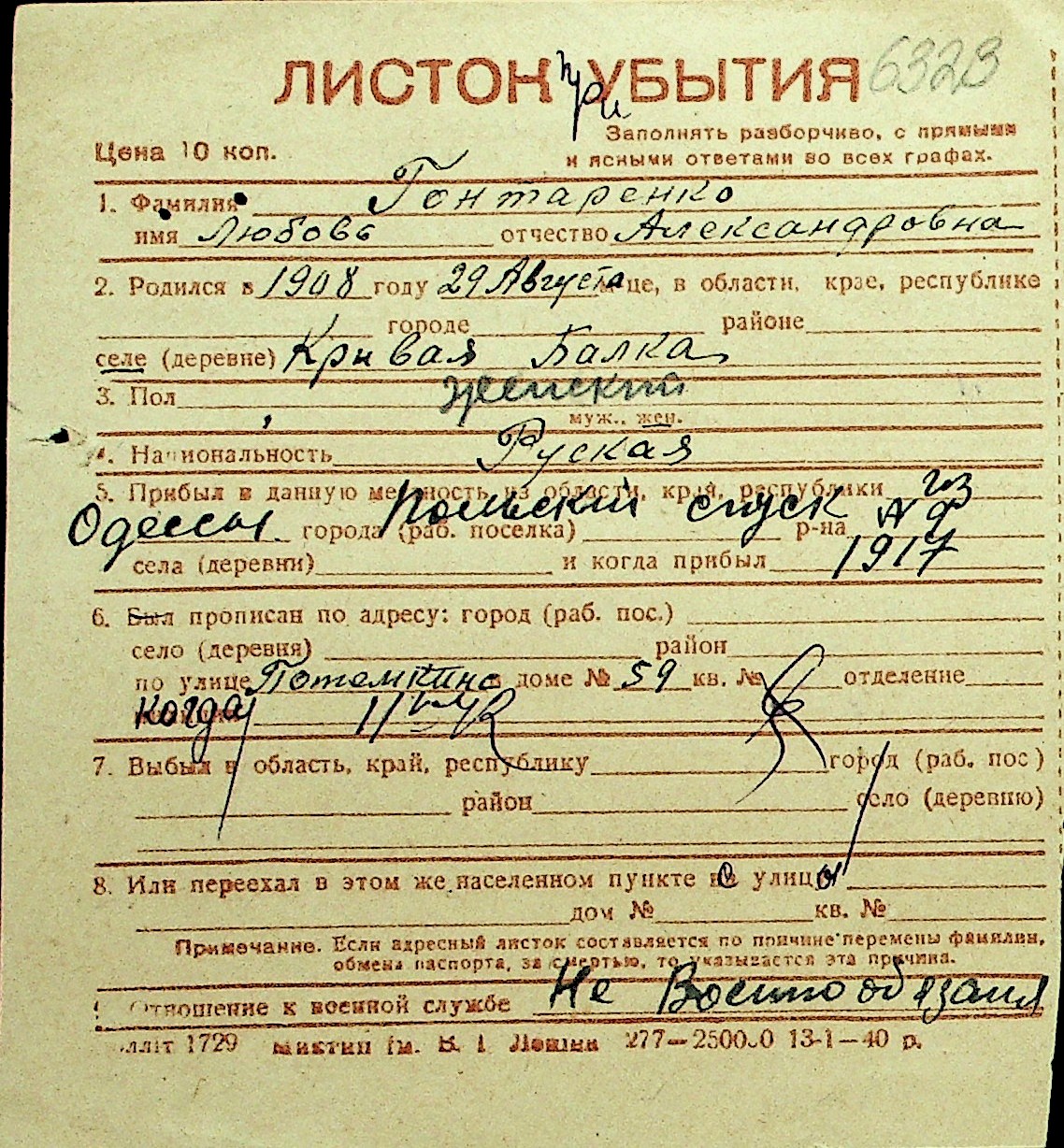 • • Перелік карток до фонду № Н-1016