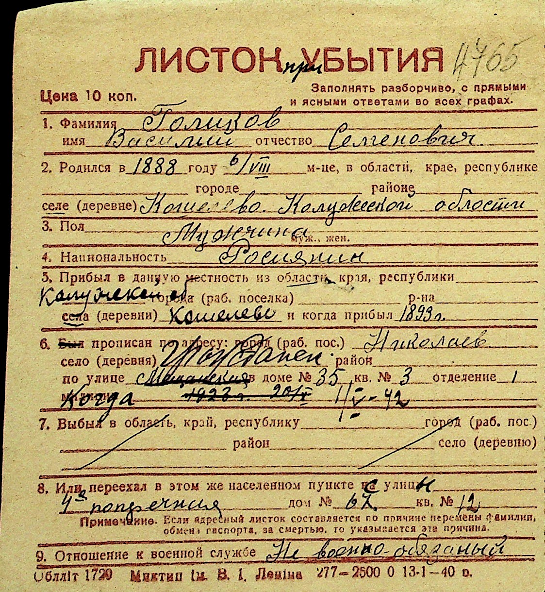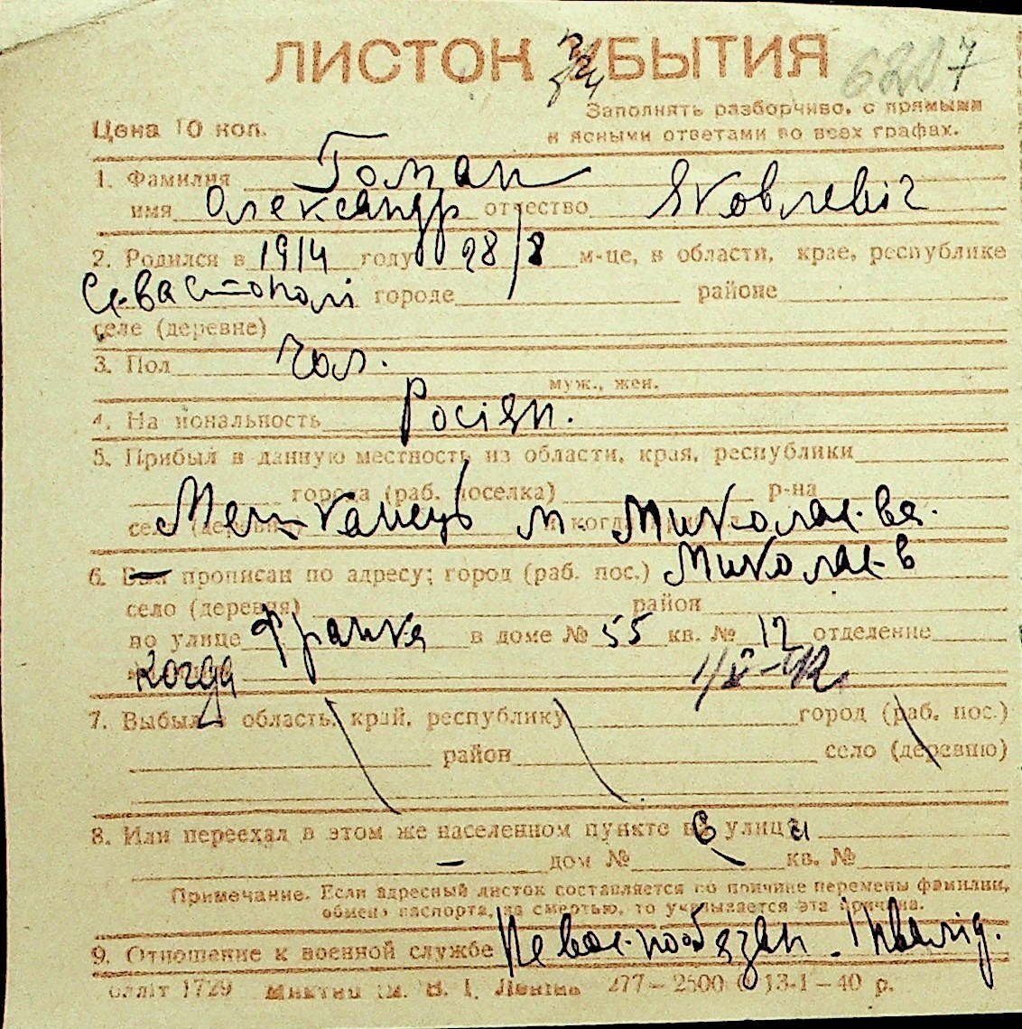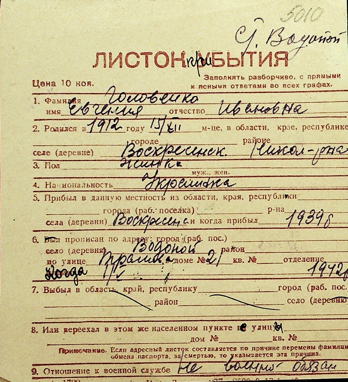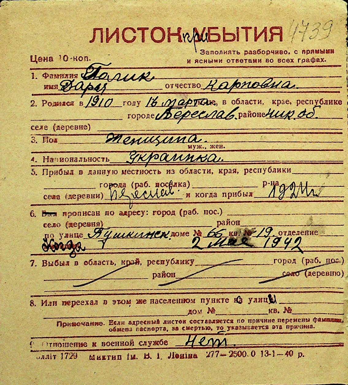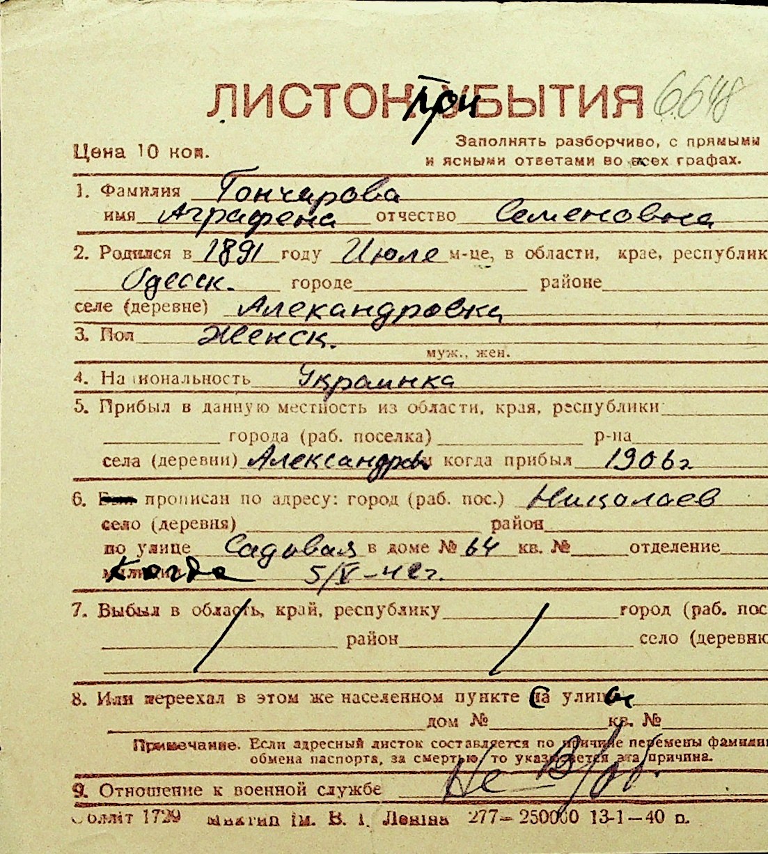 • • Перелік карток до фонду № Н-1016