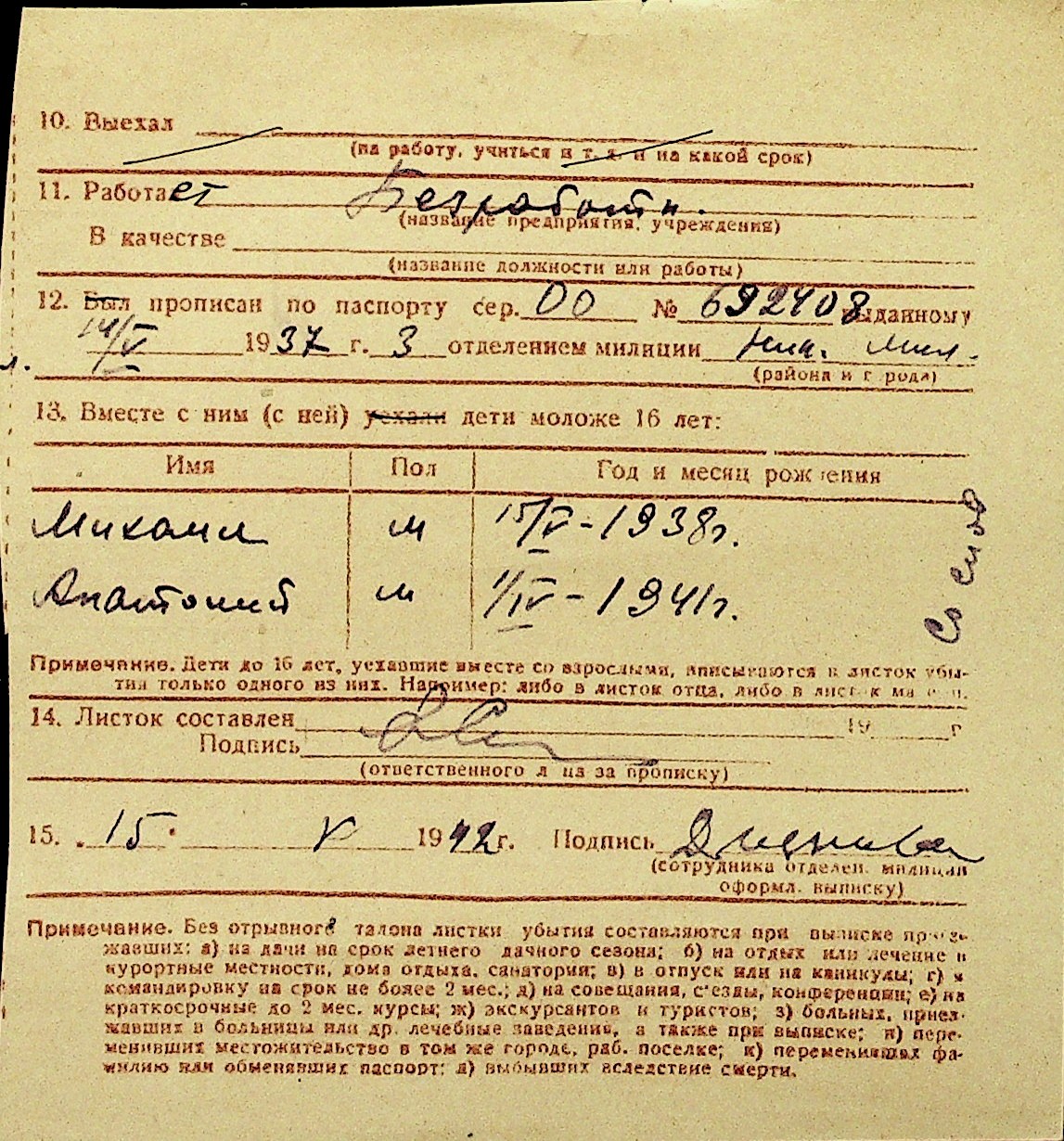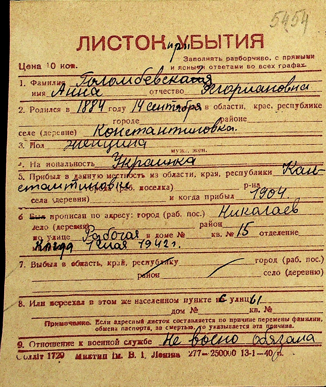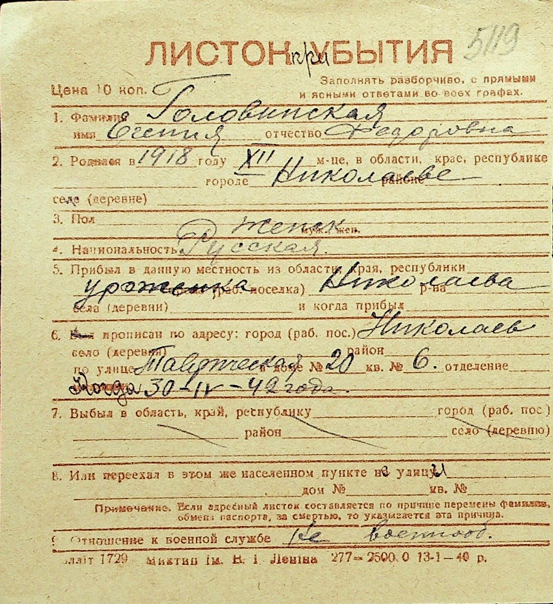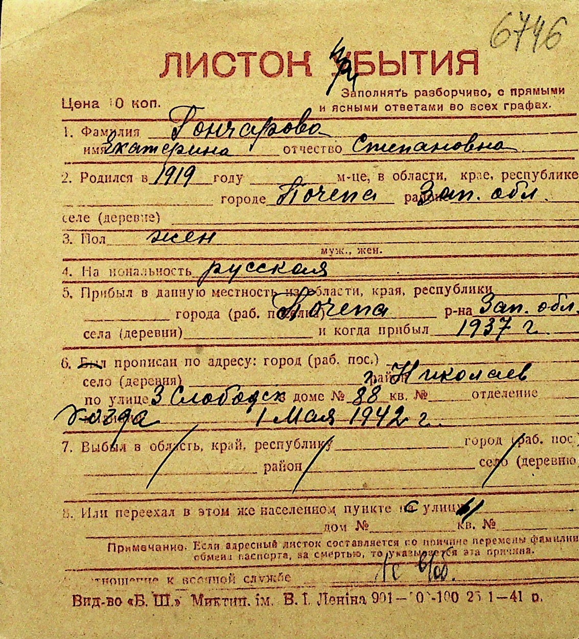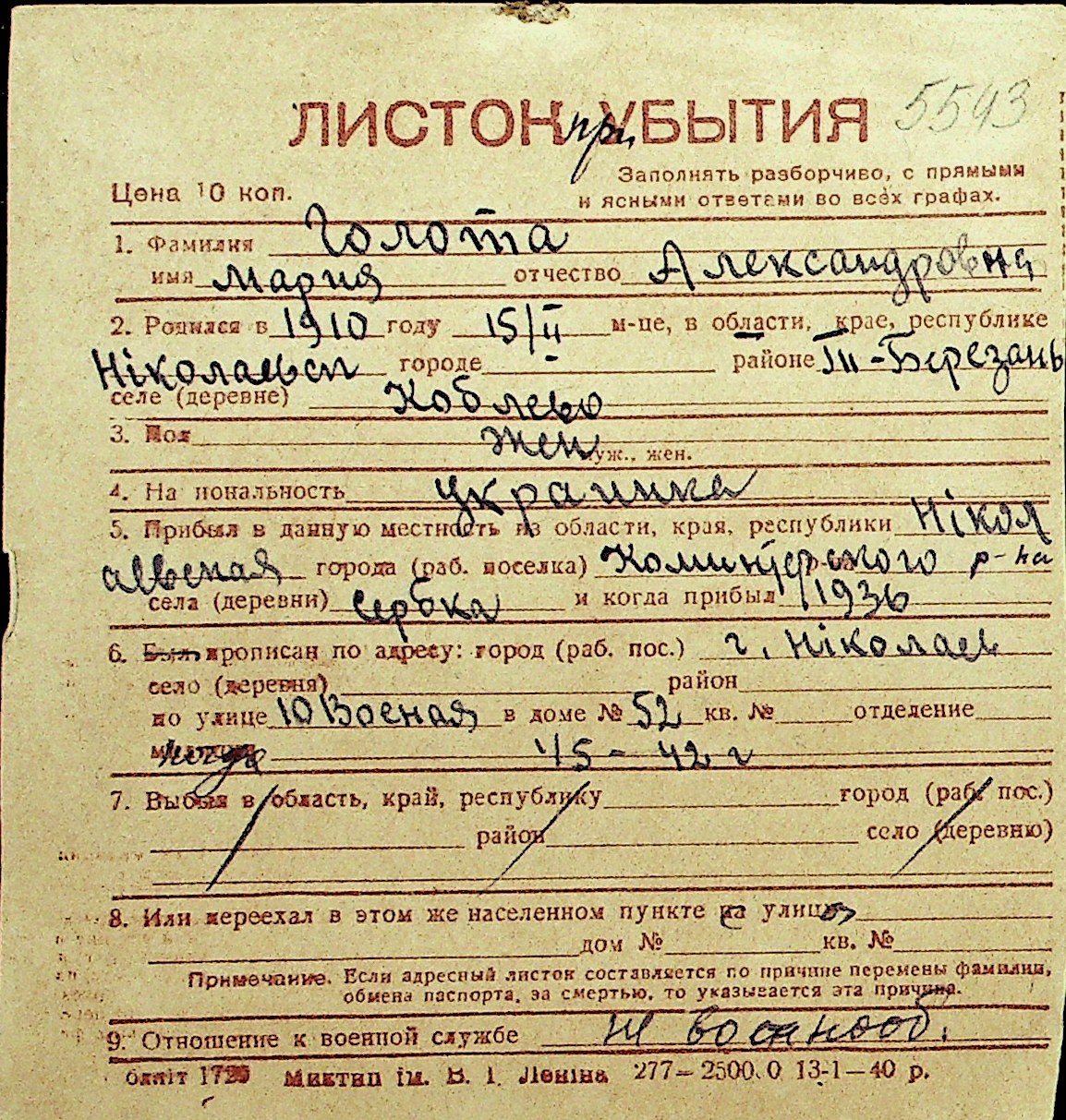 • • Перелік карток до фонду № Н-1016