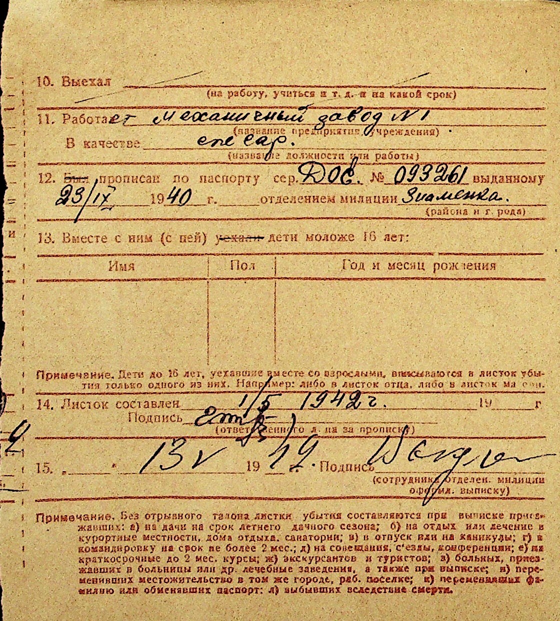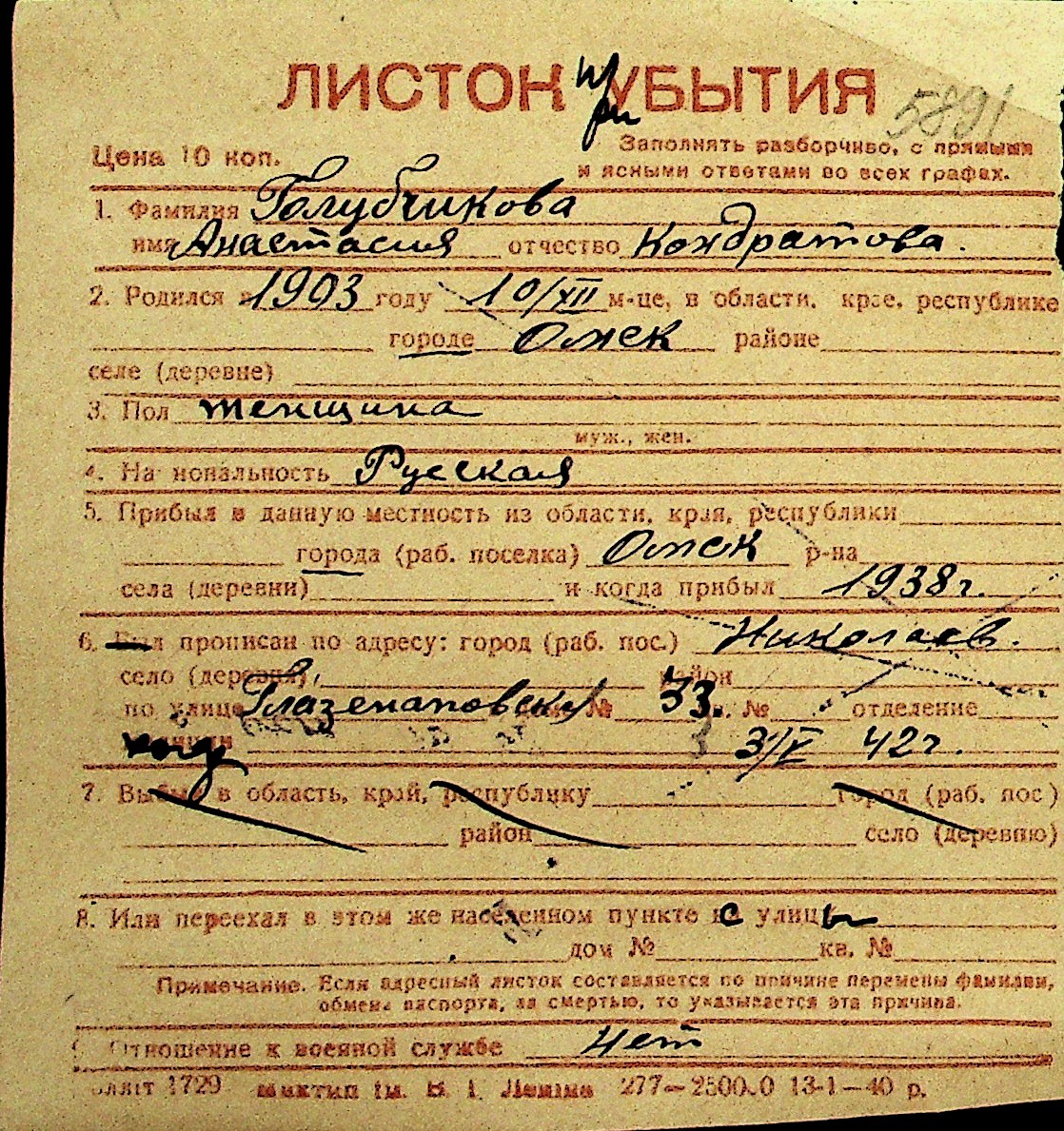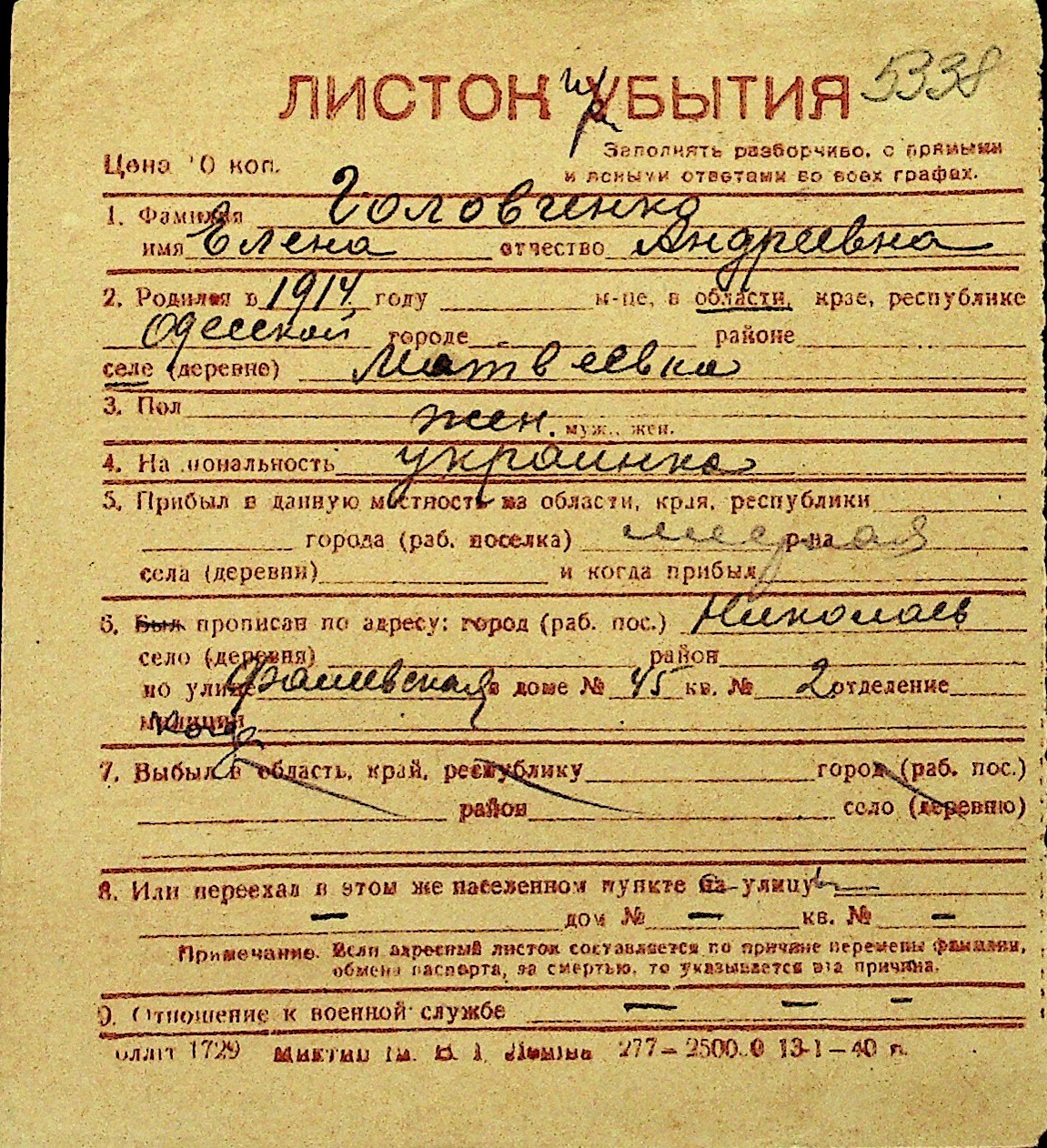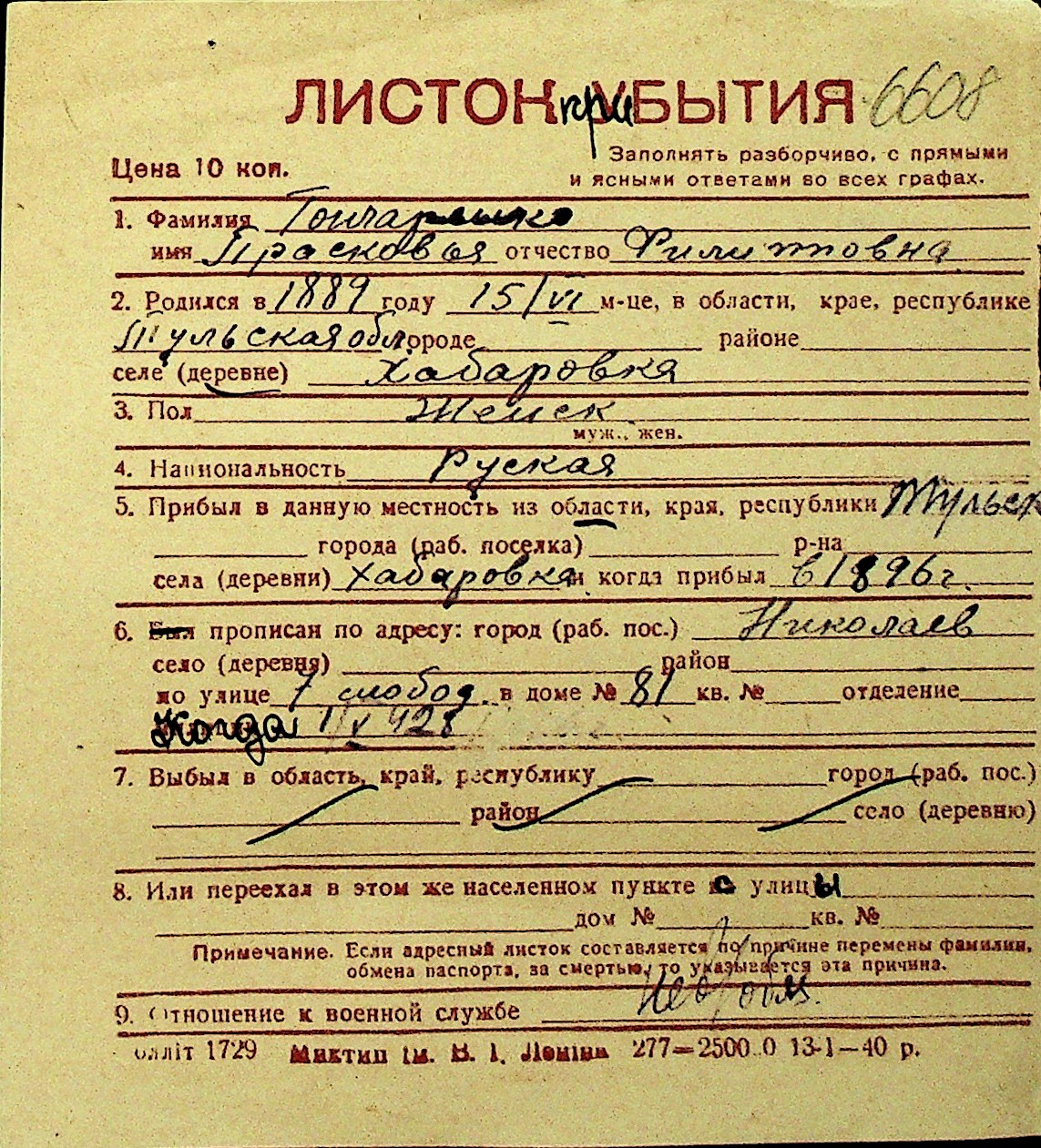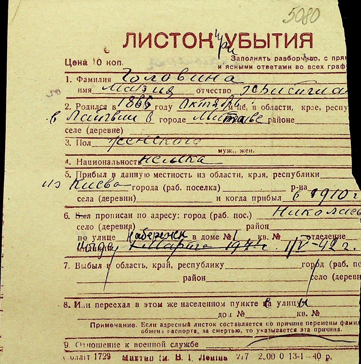 • • Перелік карток до фонду № Н-1016