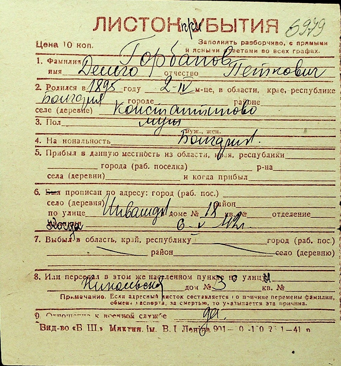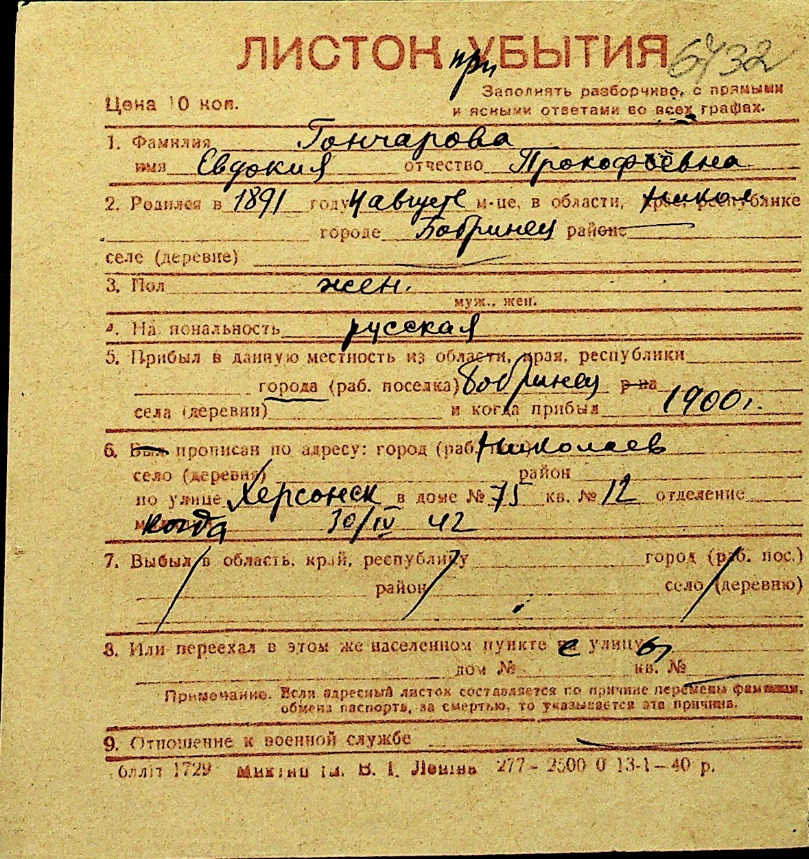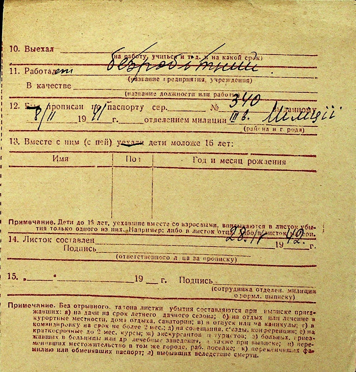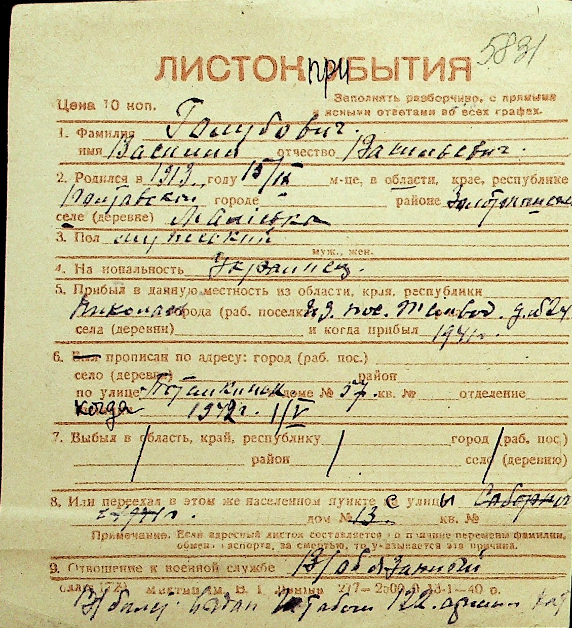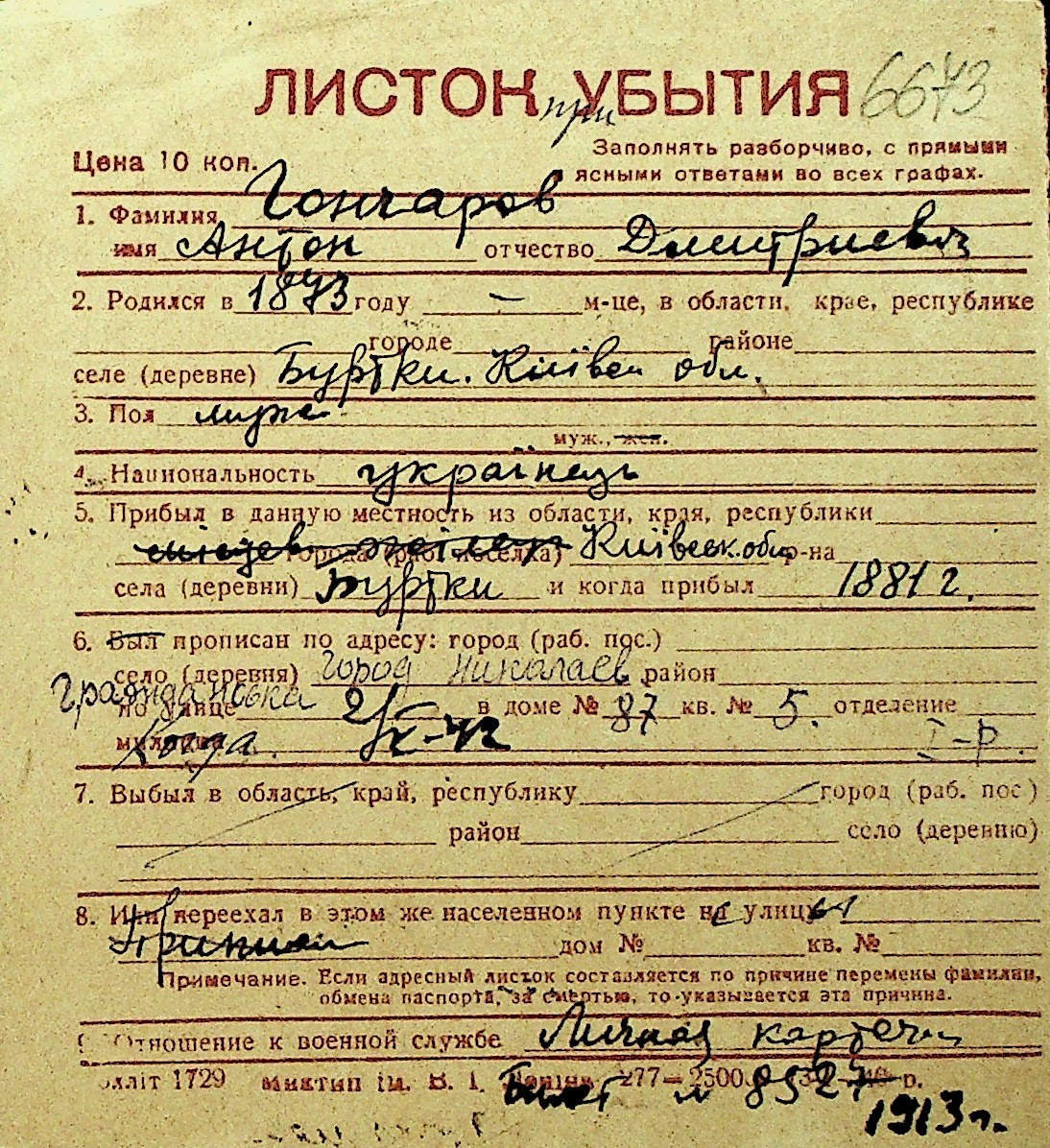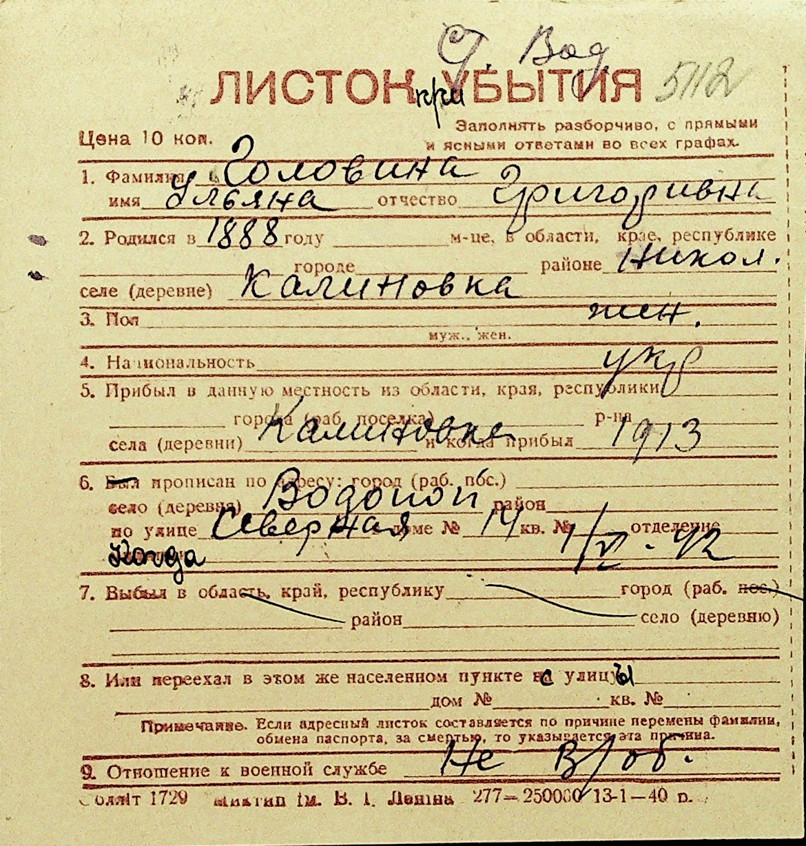 • • Перелік карток до фонду № Н-1016