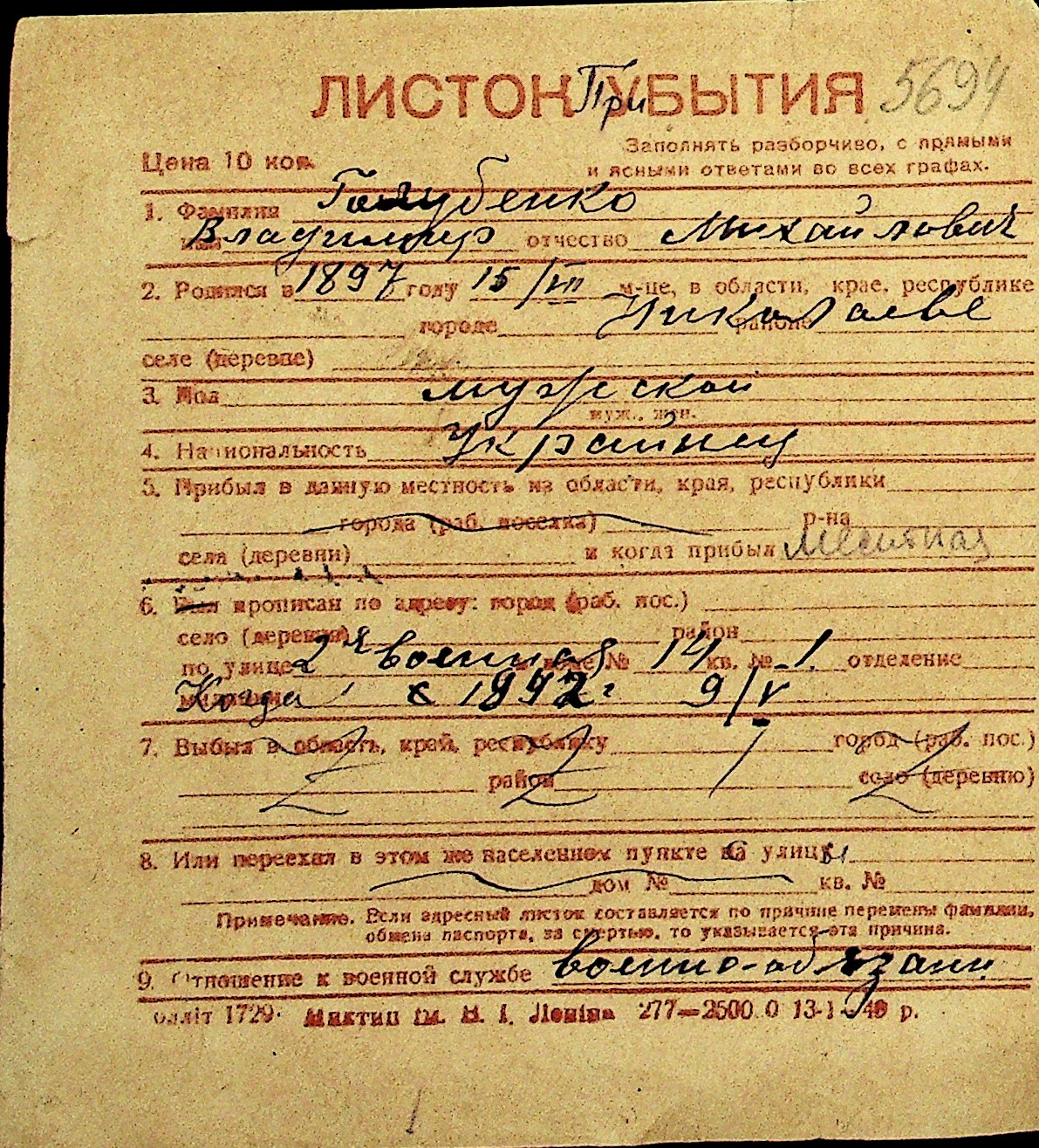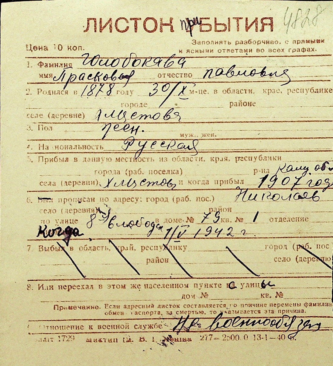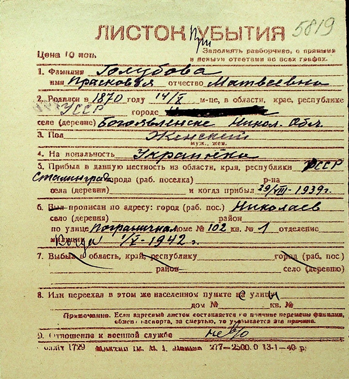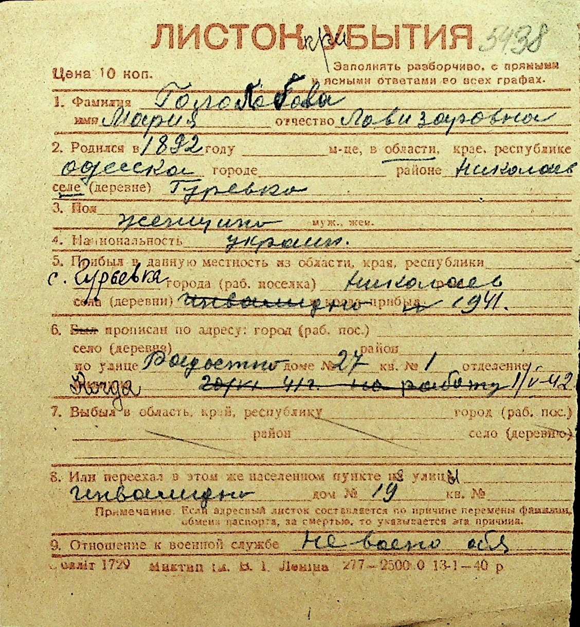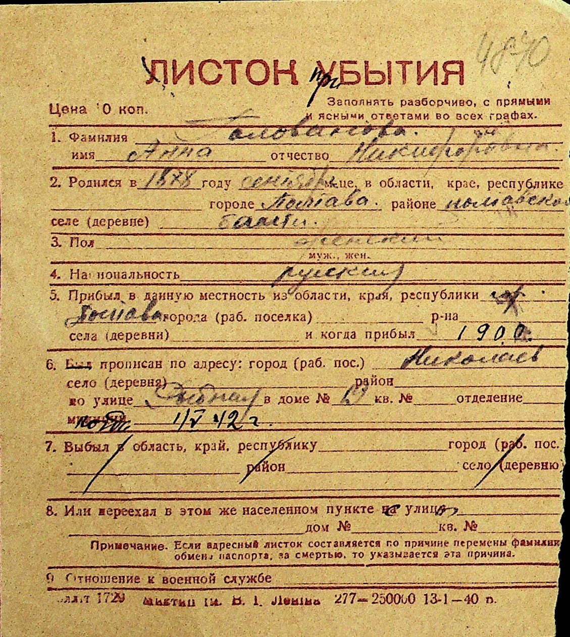 • • Перелік карток до фонду № Н-1016