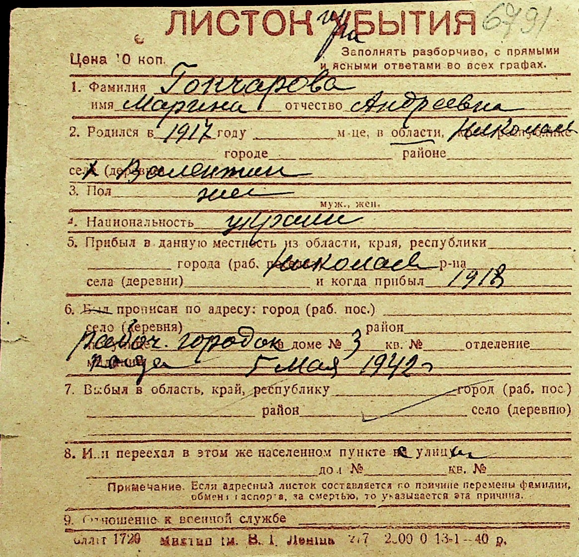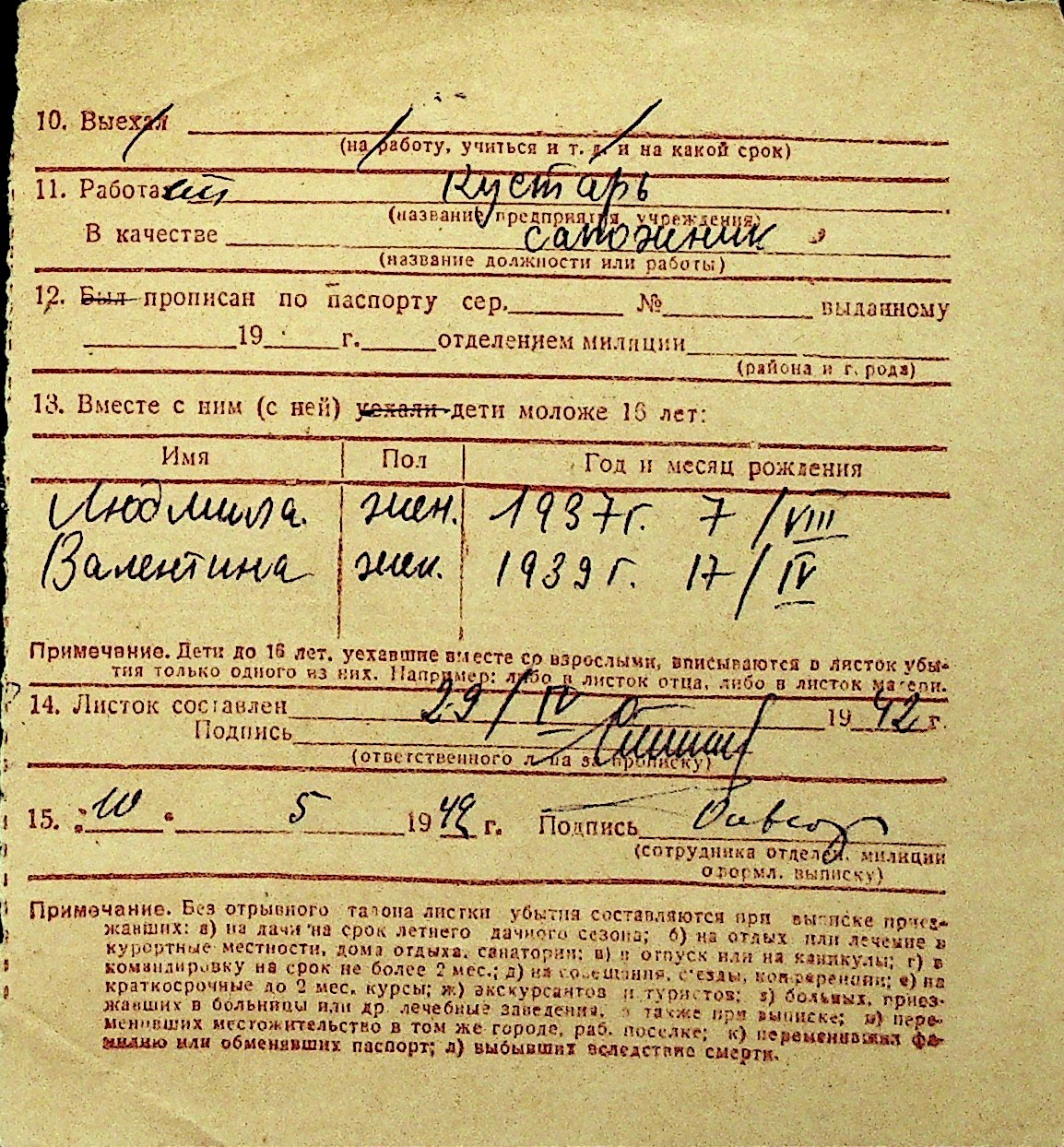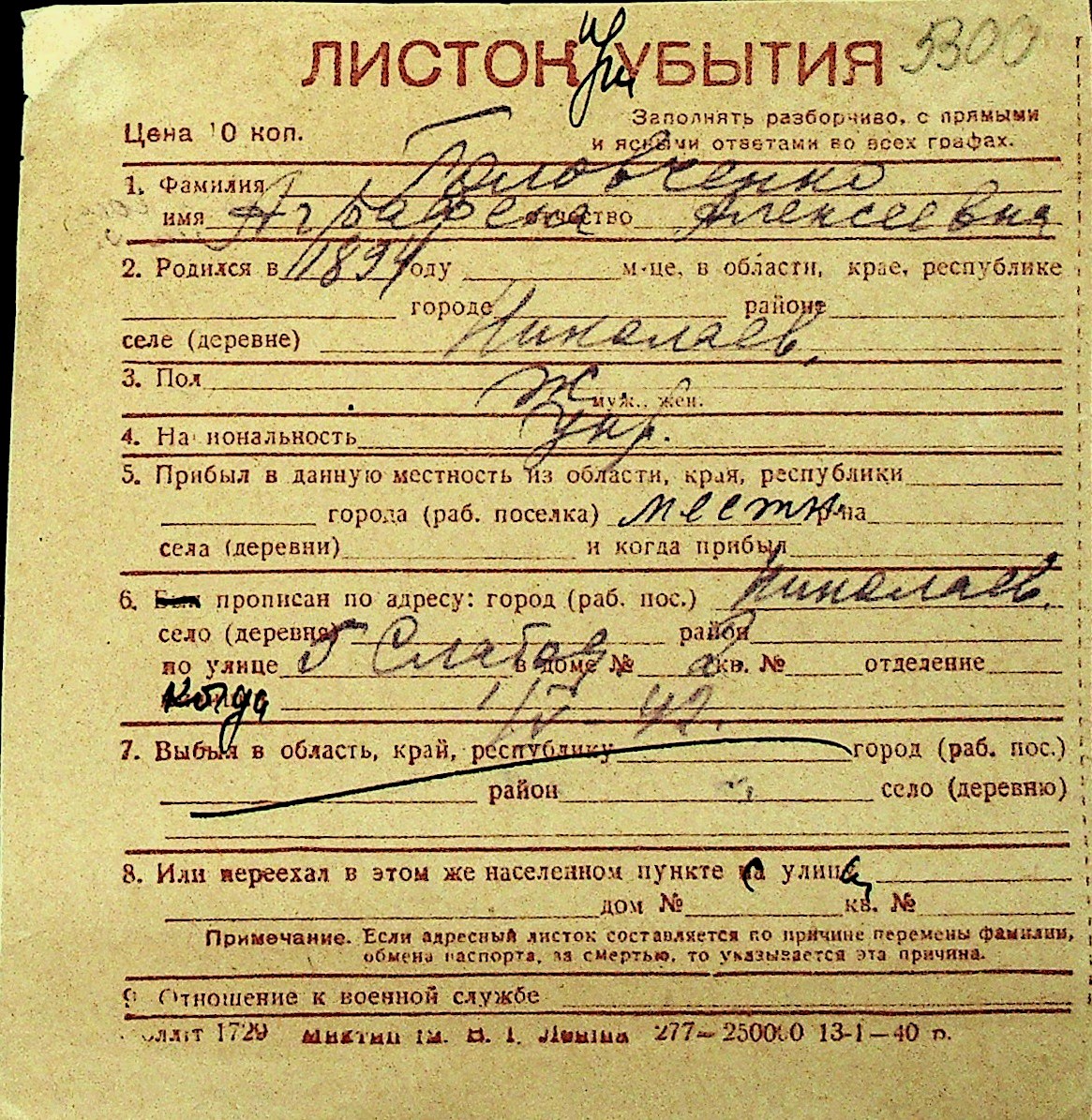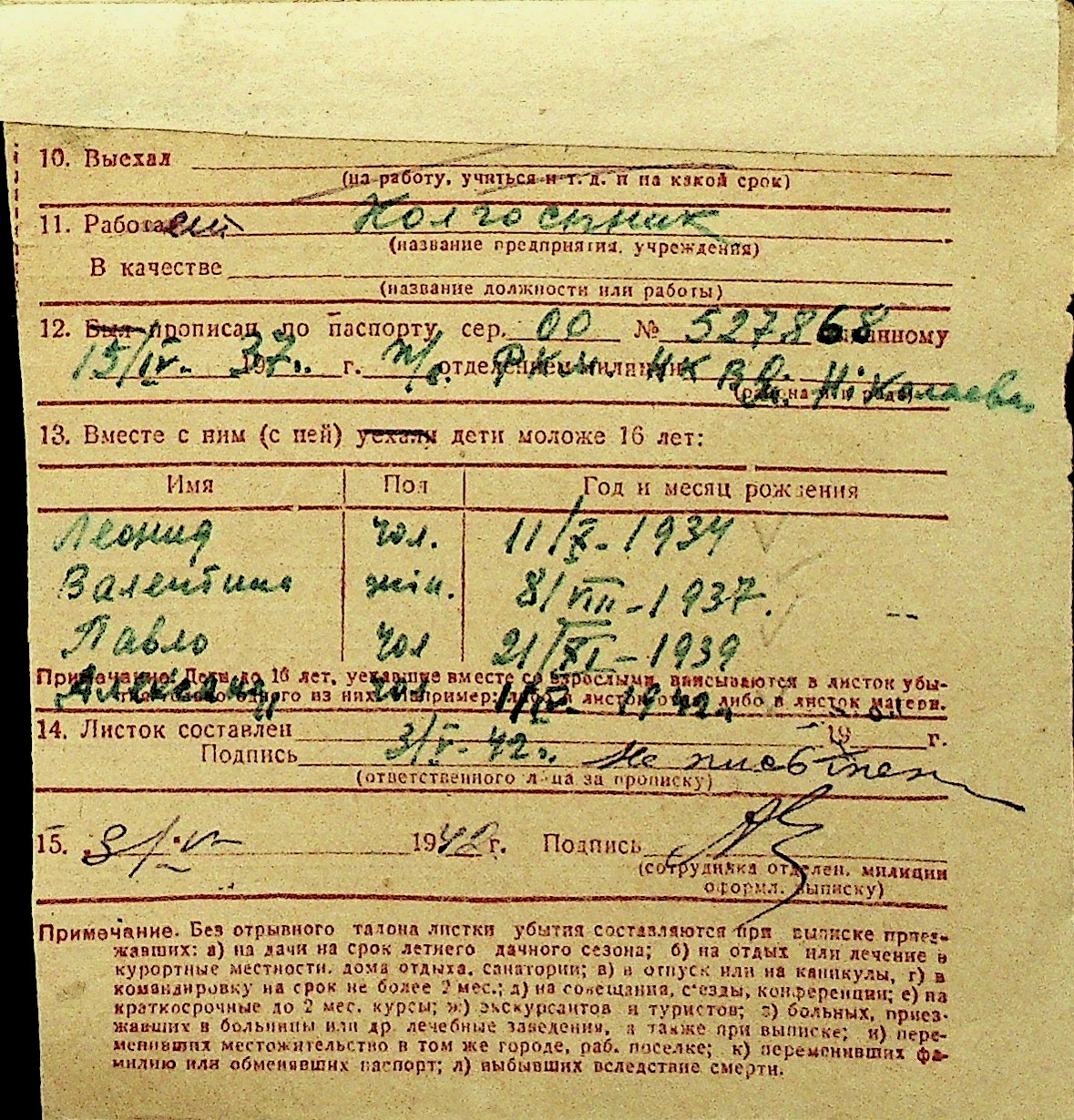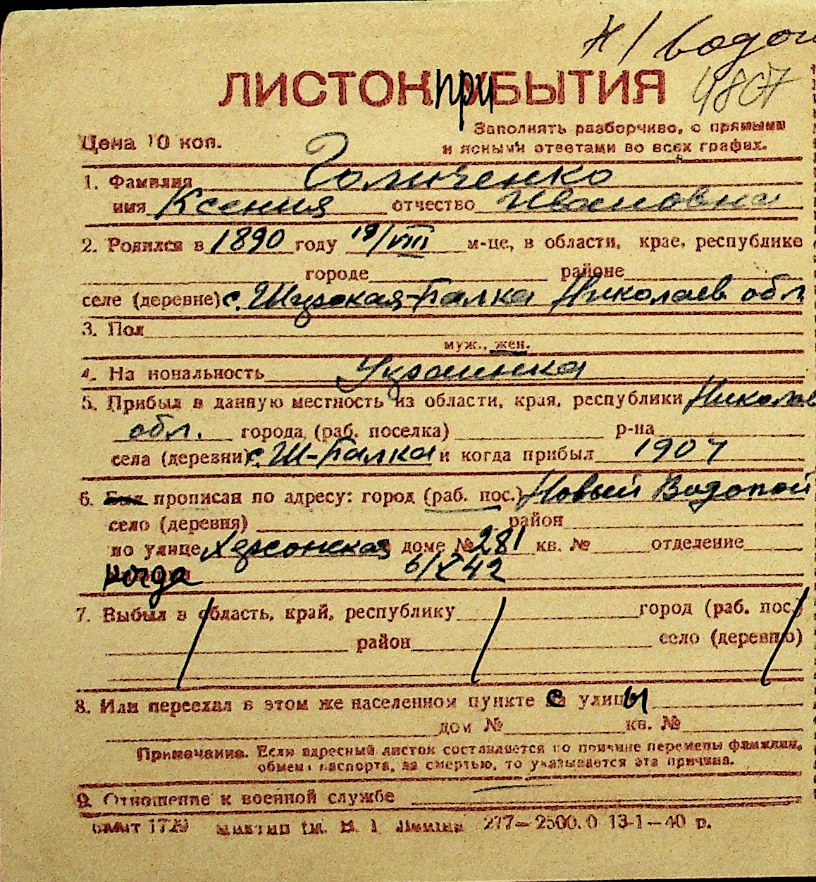 • • Перелік карток до фонду № Н-1016