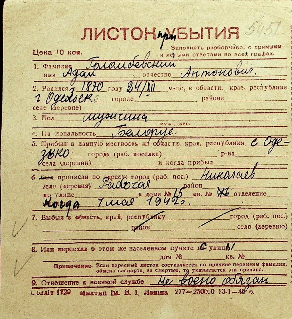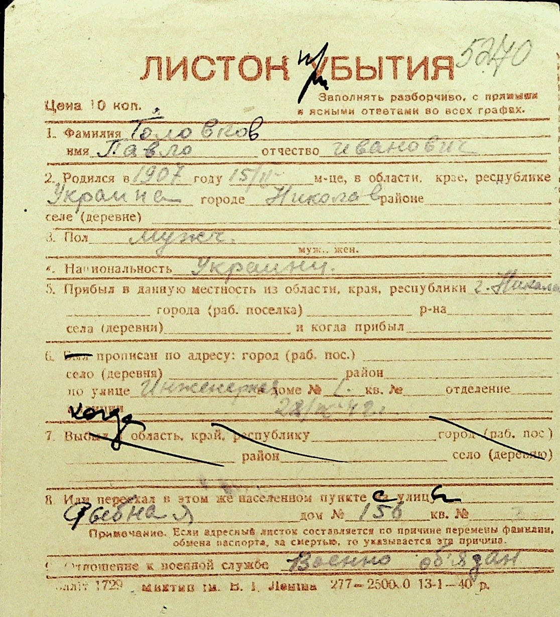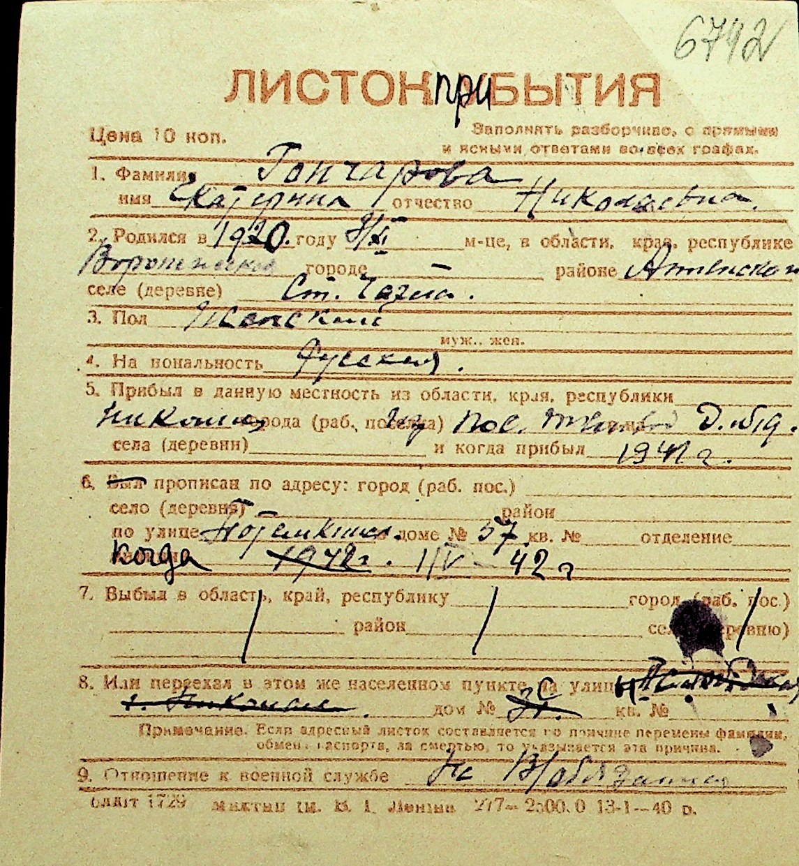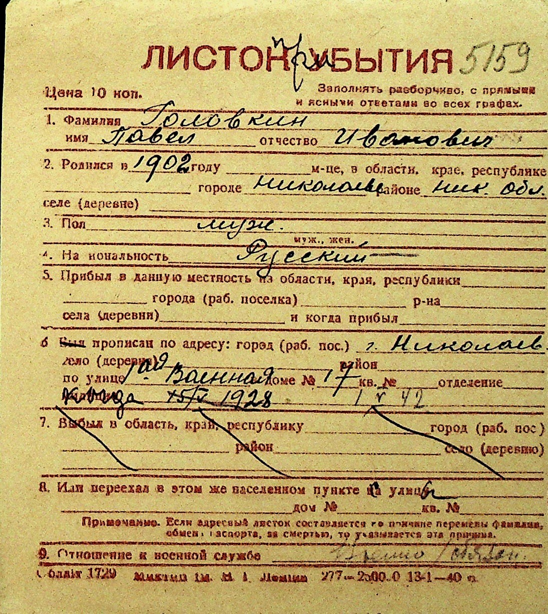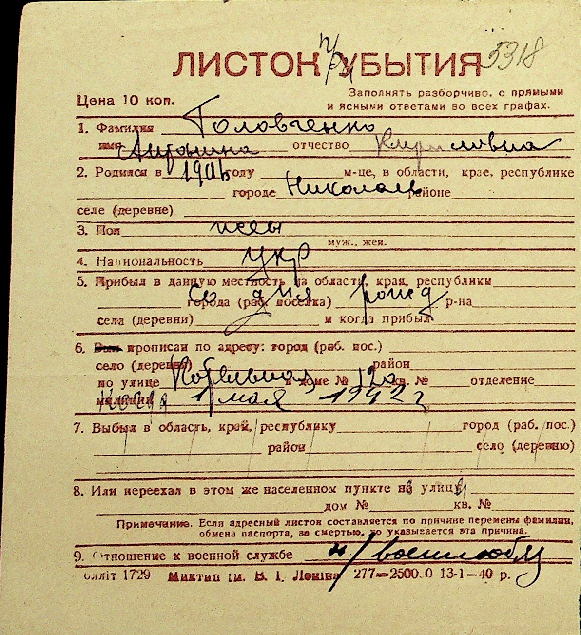• • Перелік карток до фонду № Н-1016