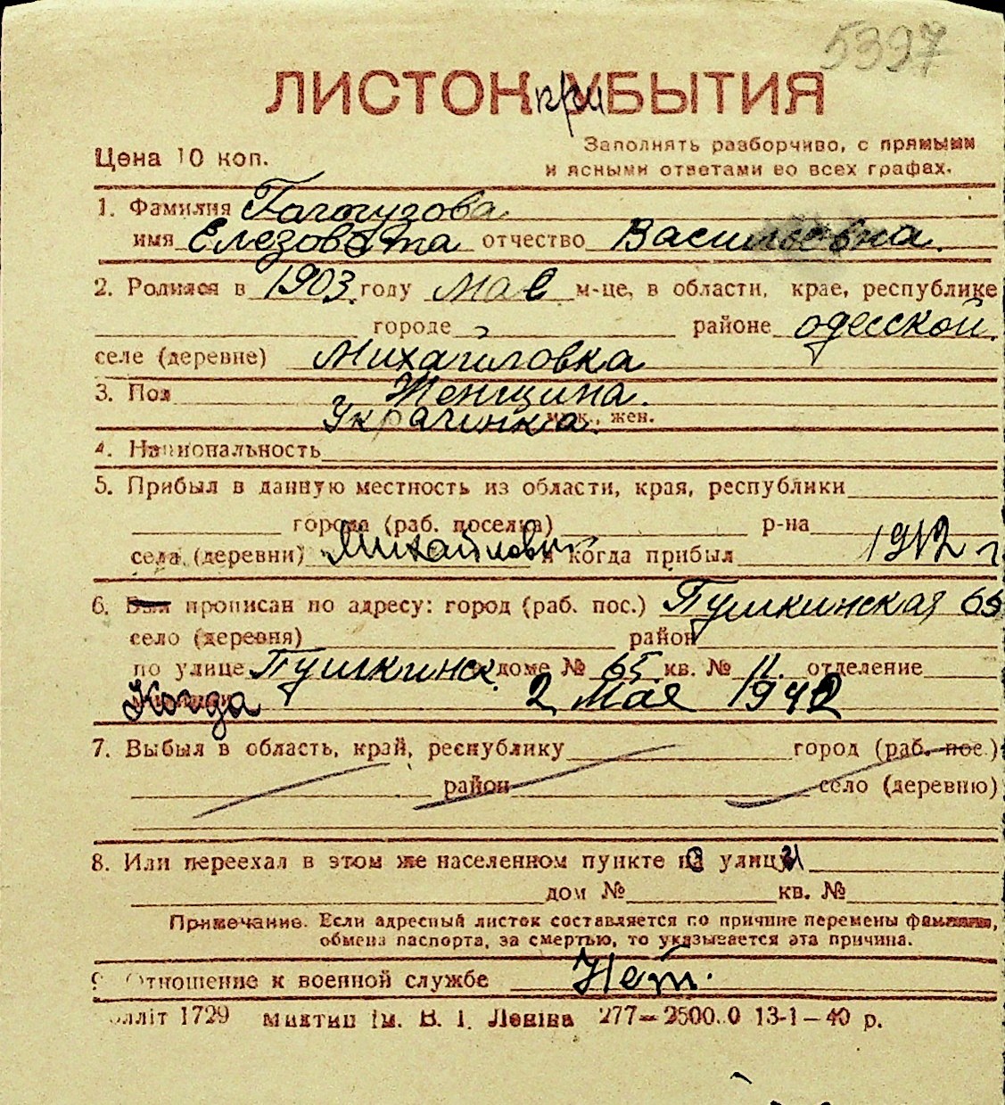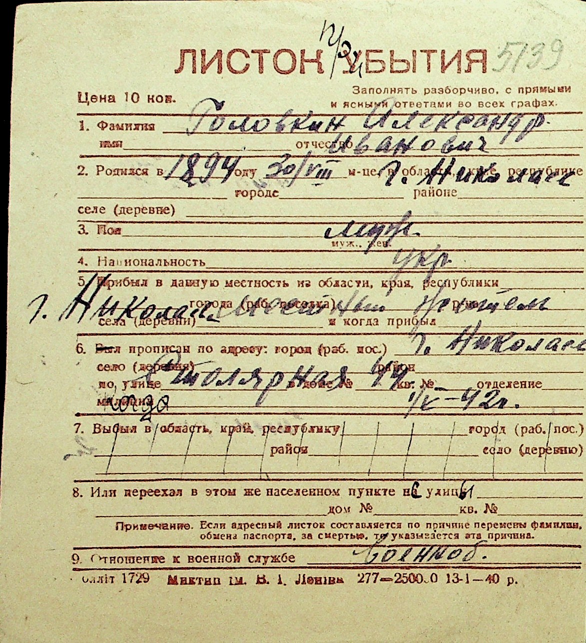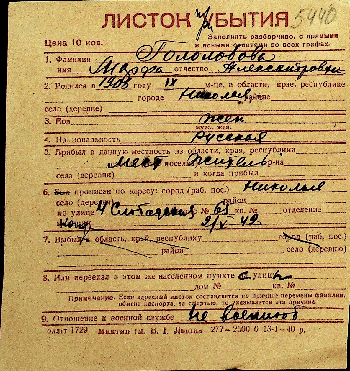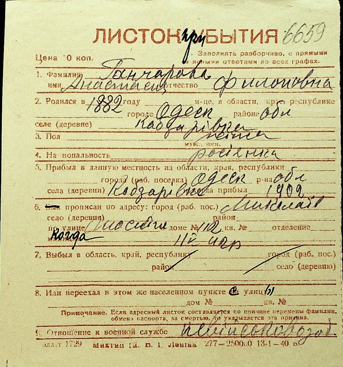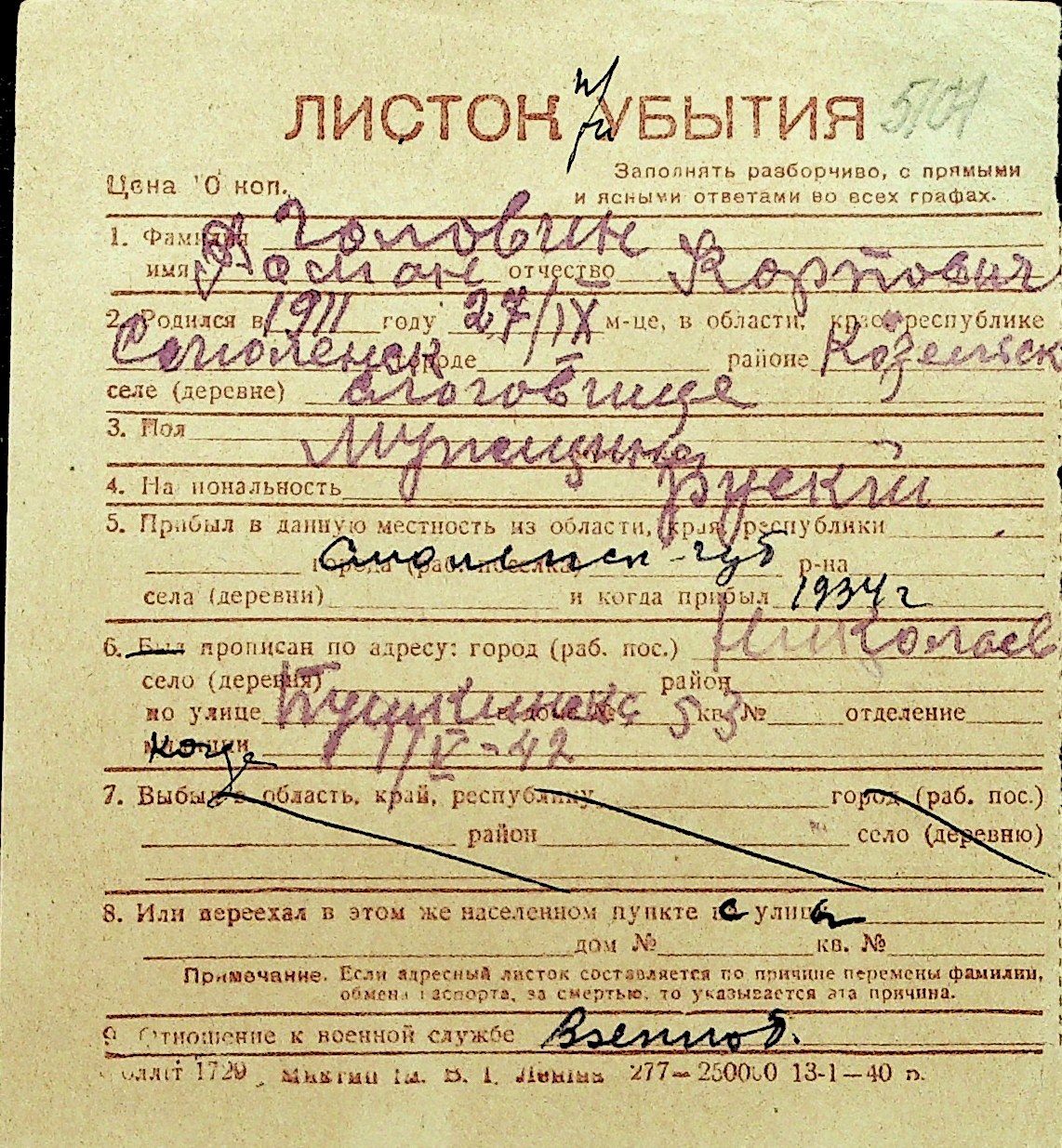 • • Перелік карток до фонду № Н-1016