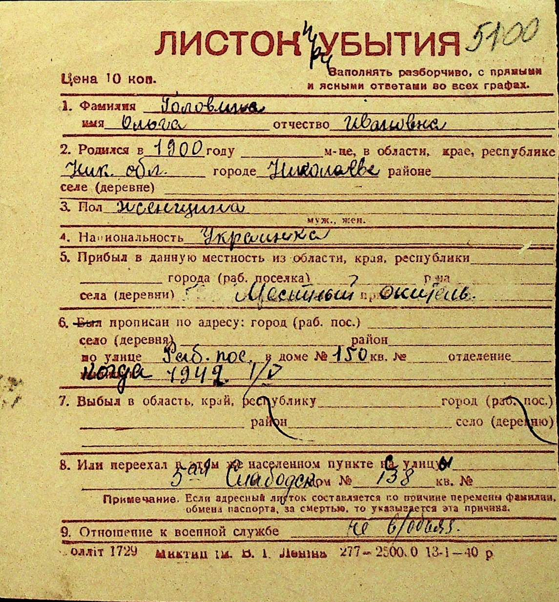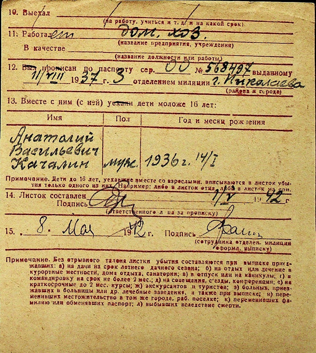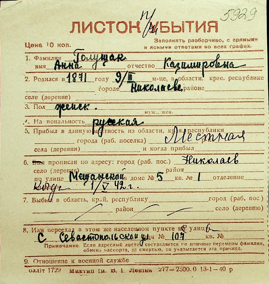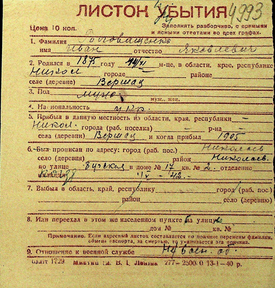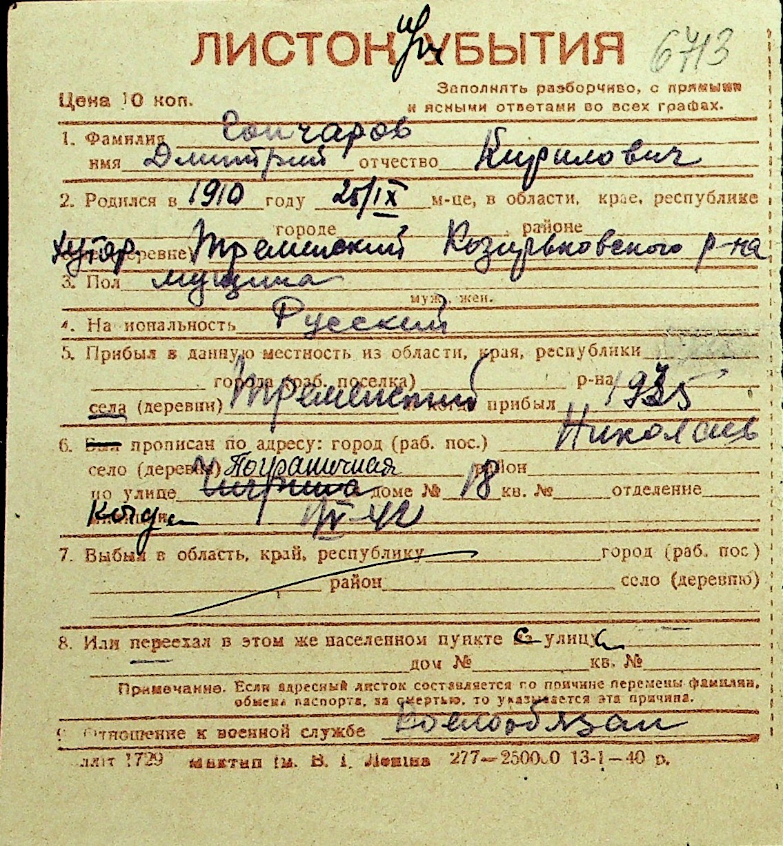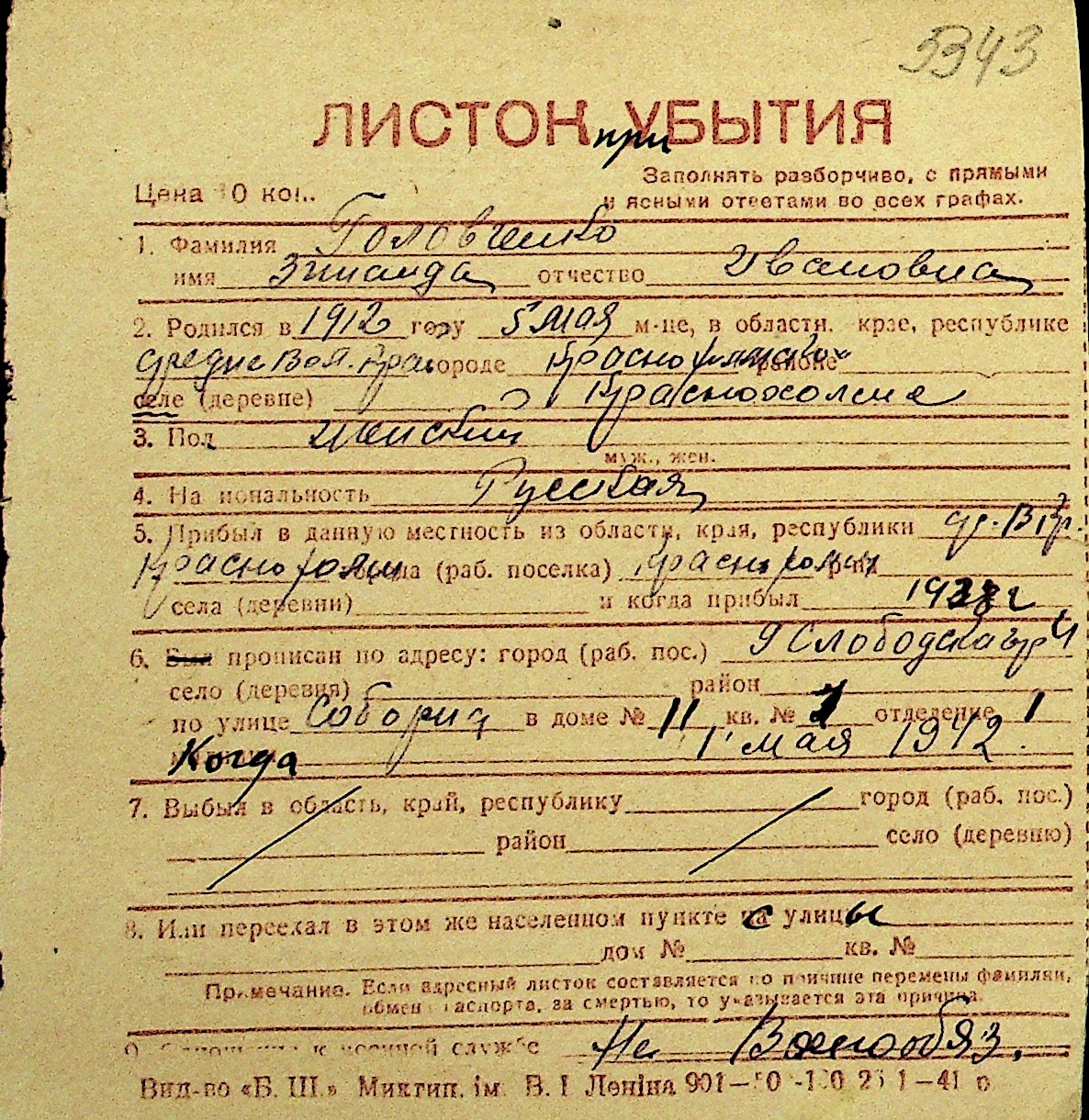 • • Перелік карток до фонду № Н-1016