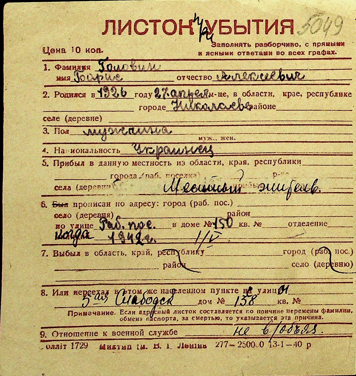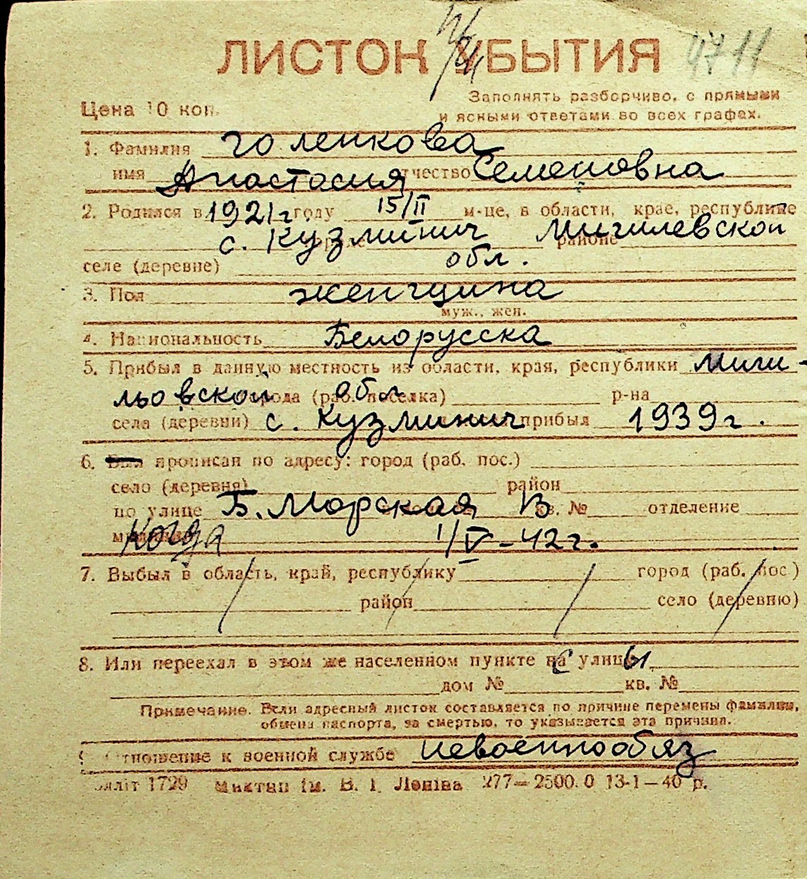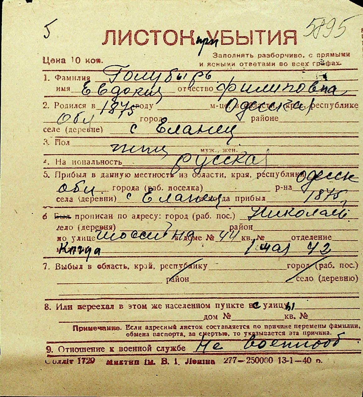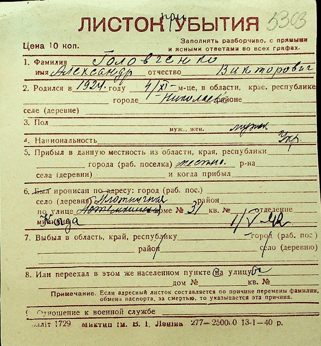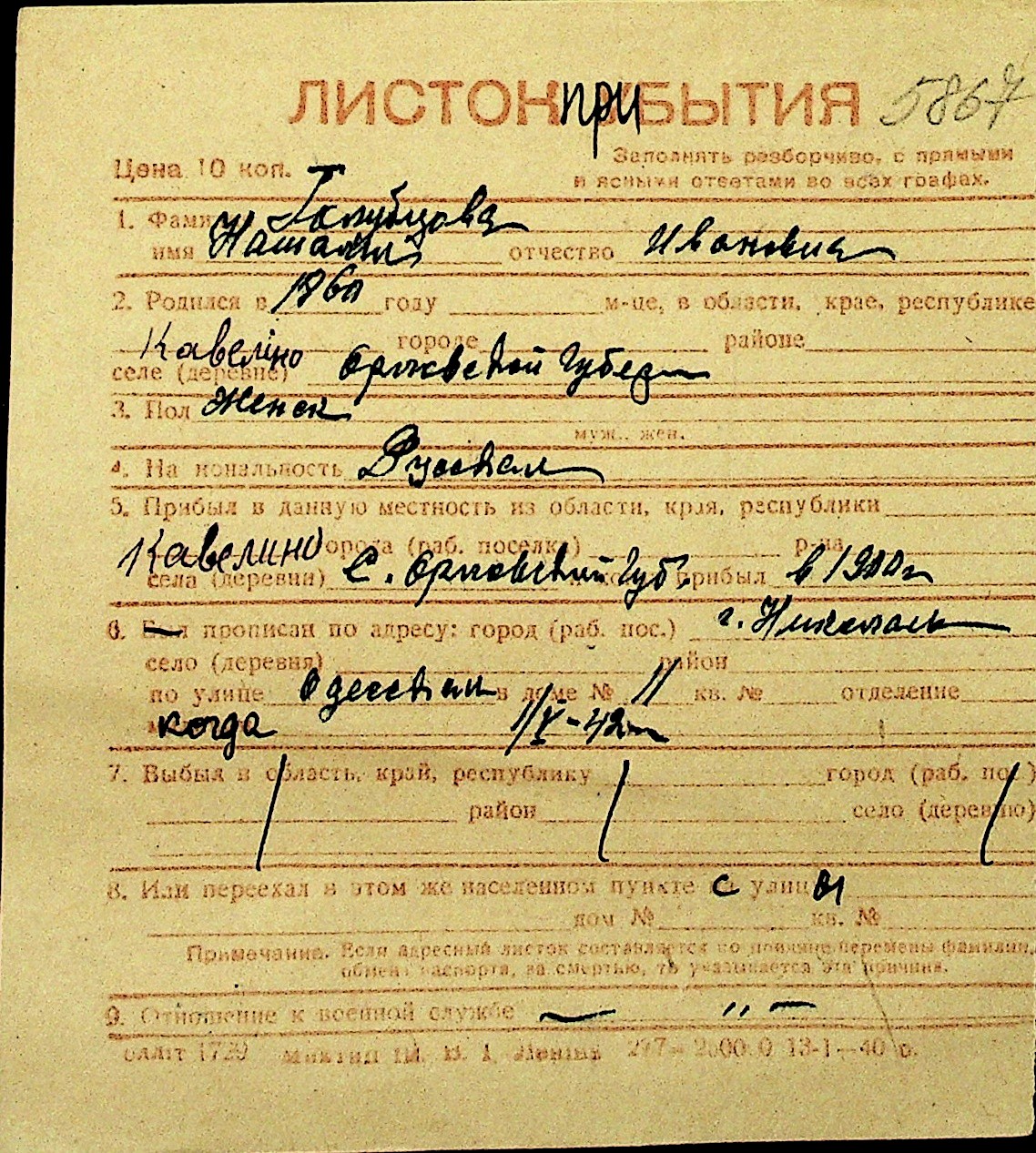 • • Перелік карток до фонду № Н-1016
