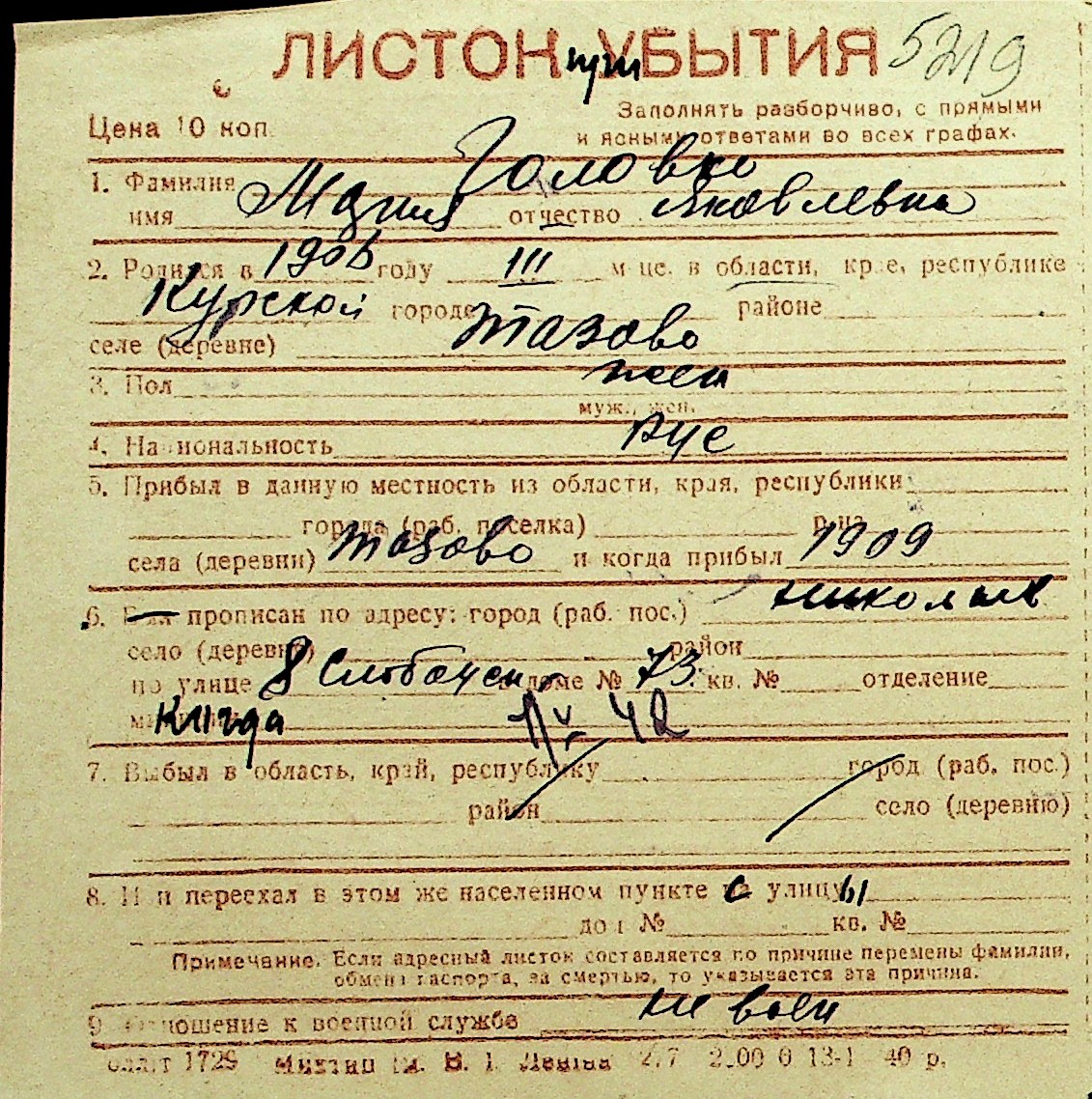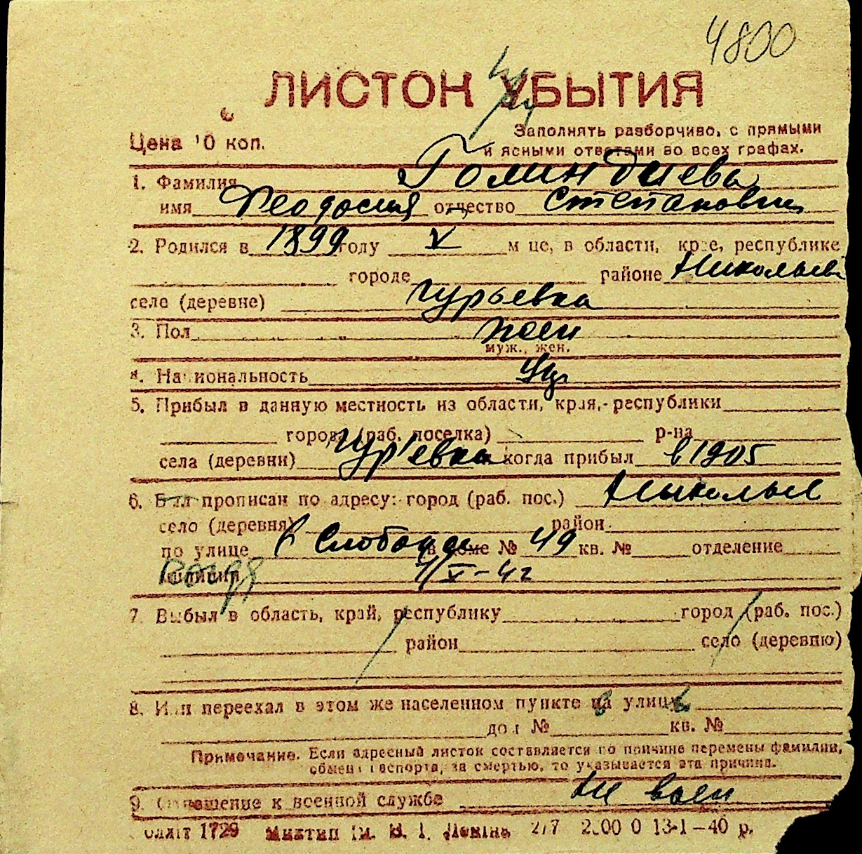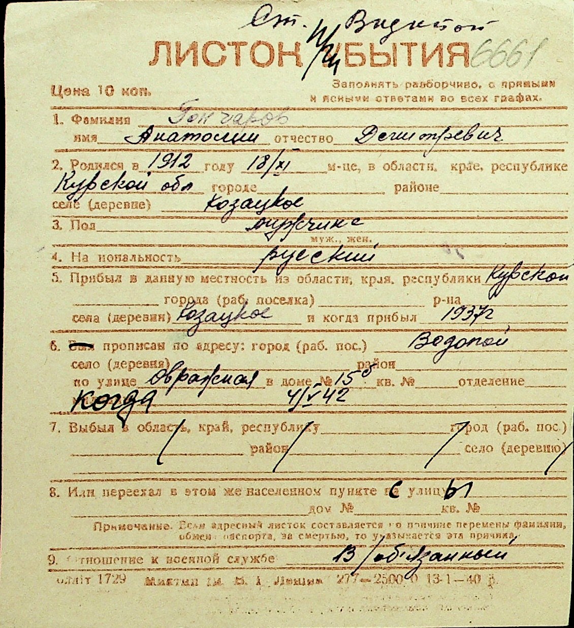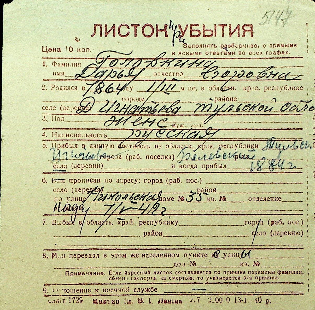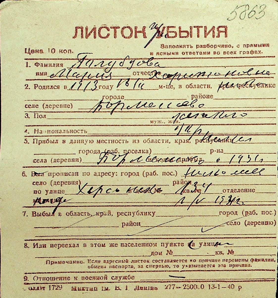 • • Перелік карток до фонду № Н-1016