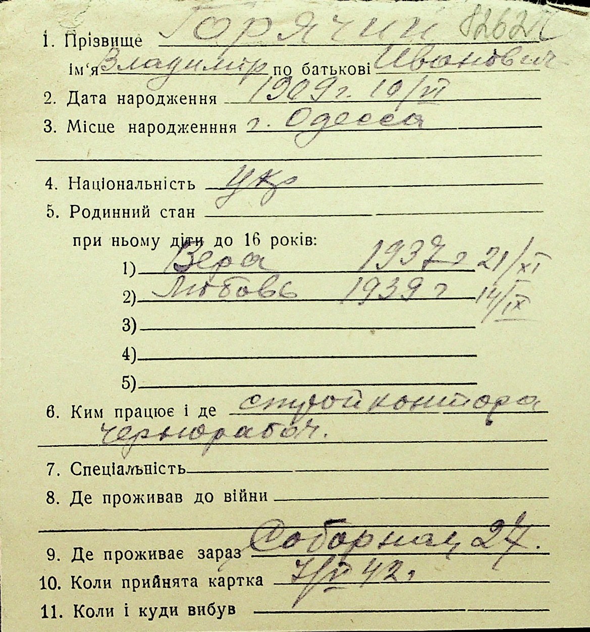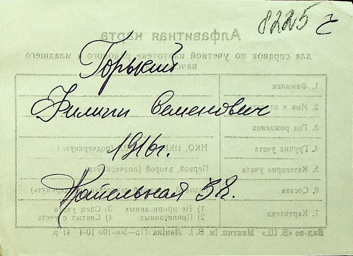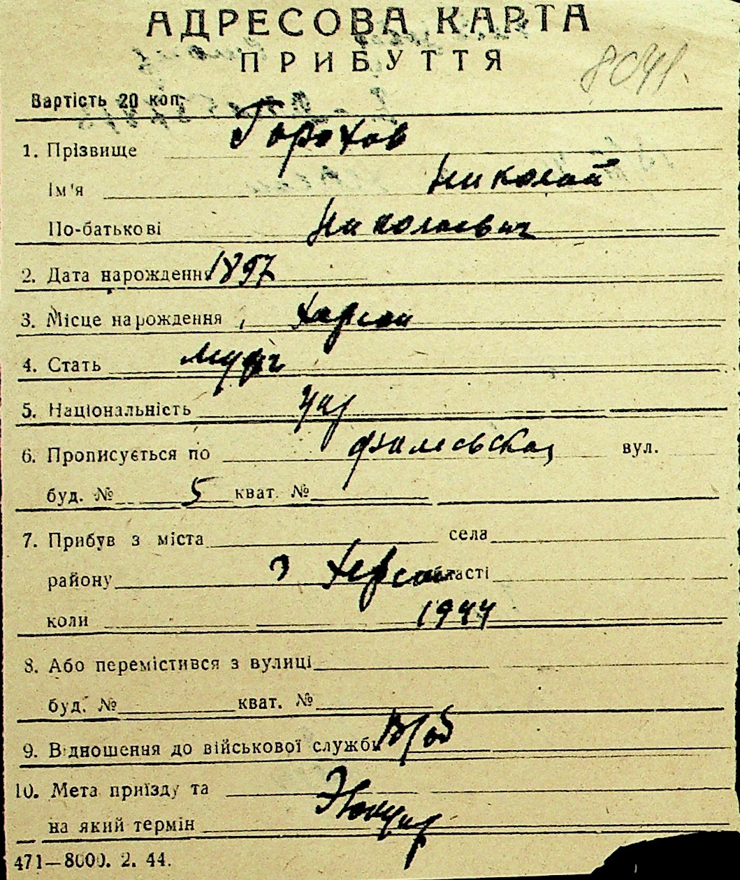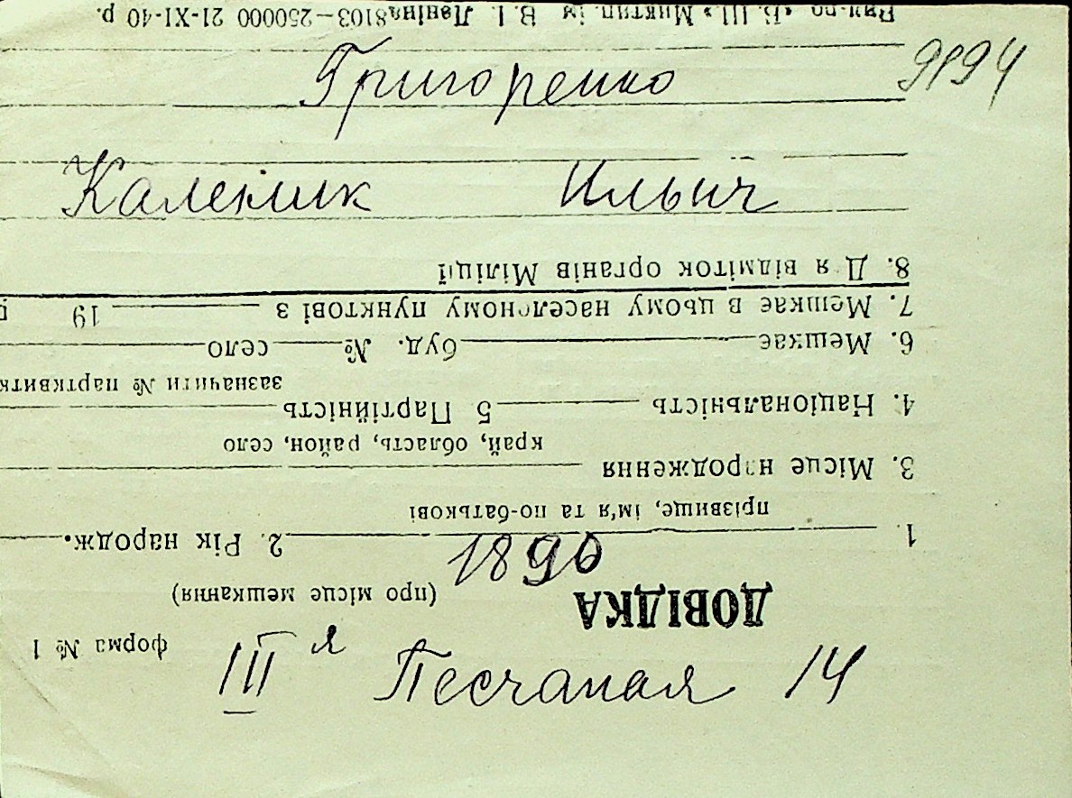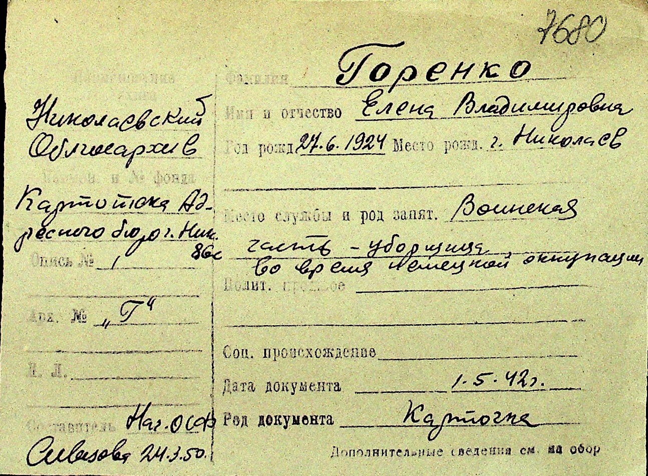 • • Перелік карток до фонду № Н-1016