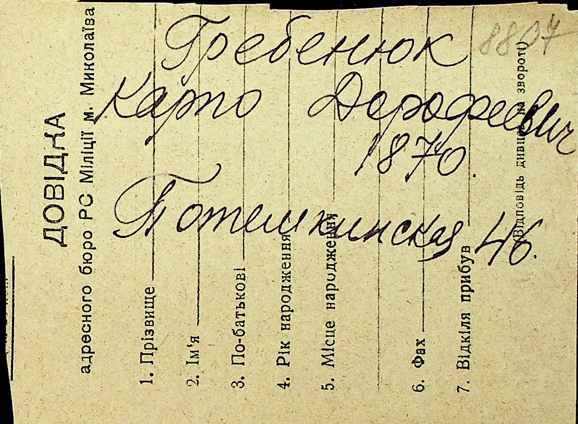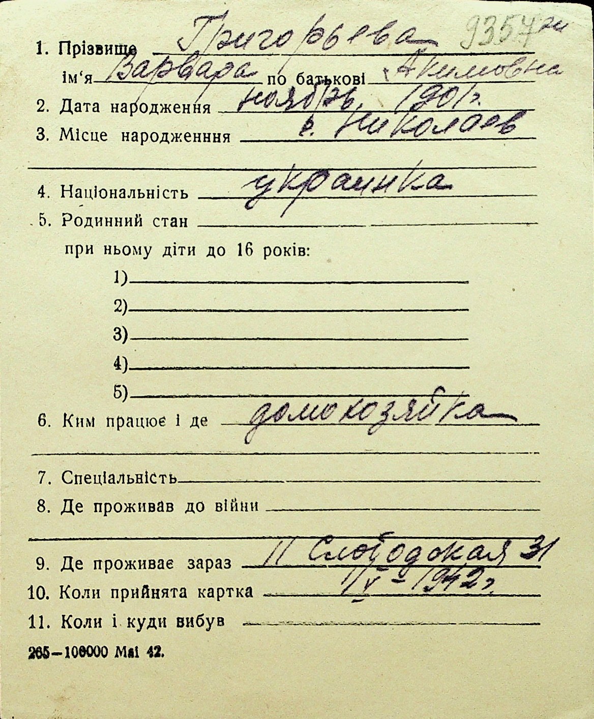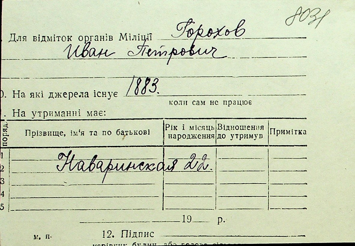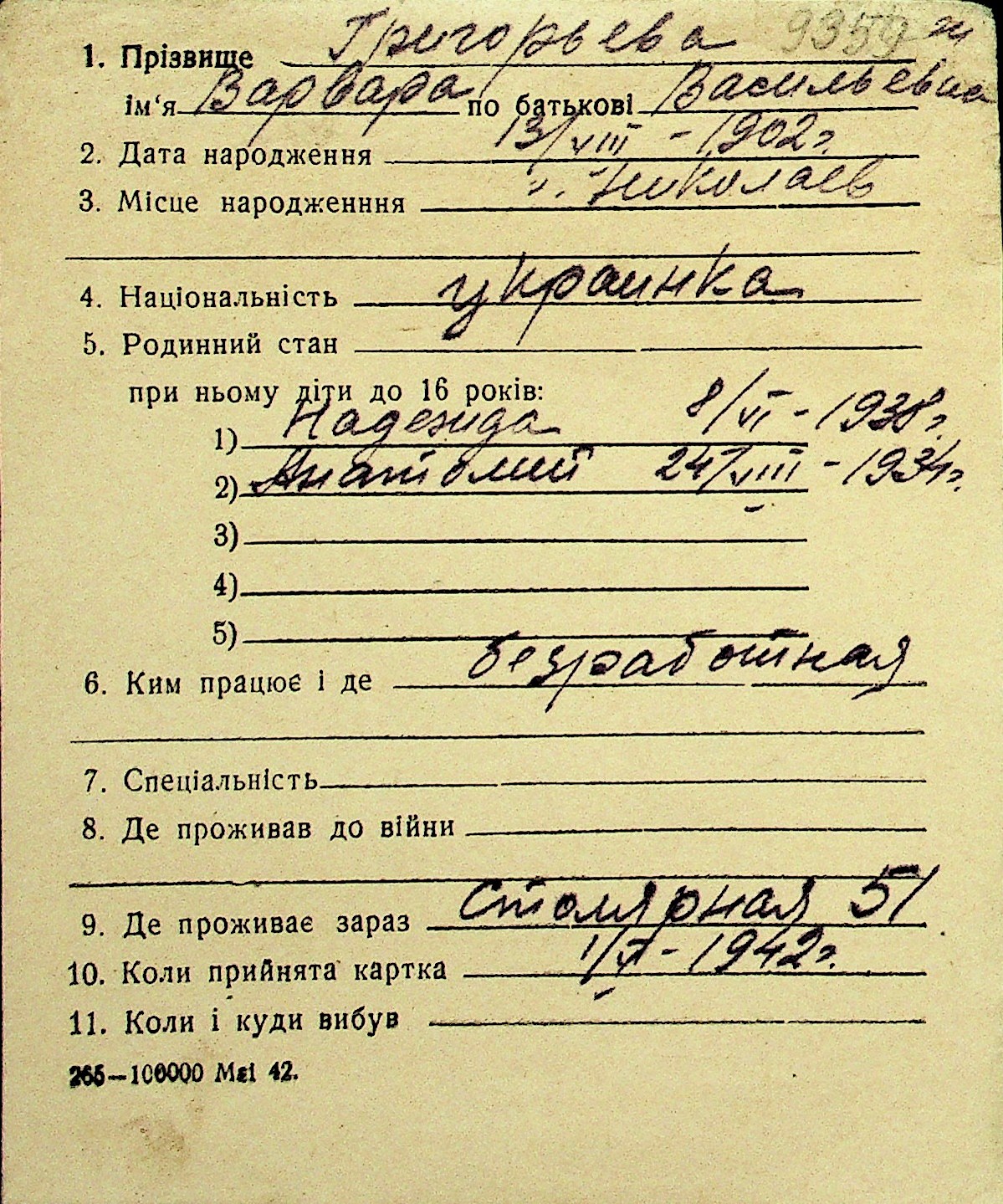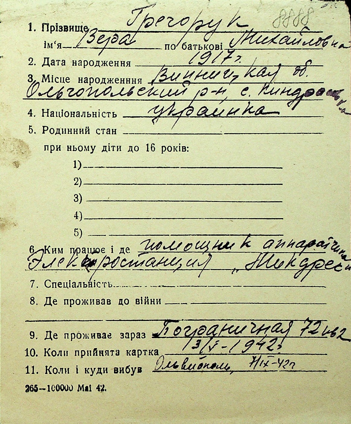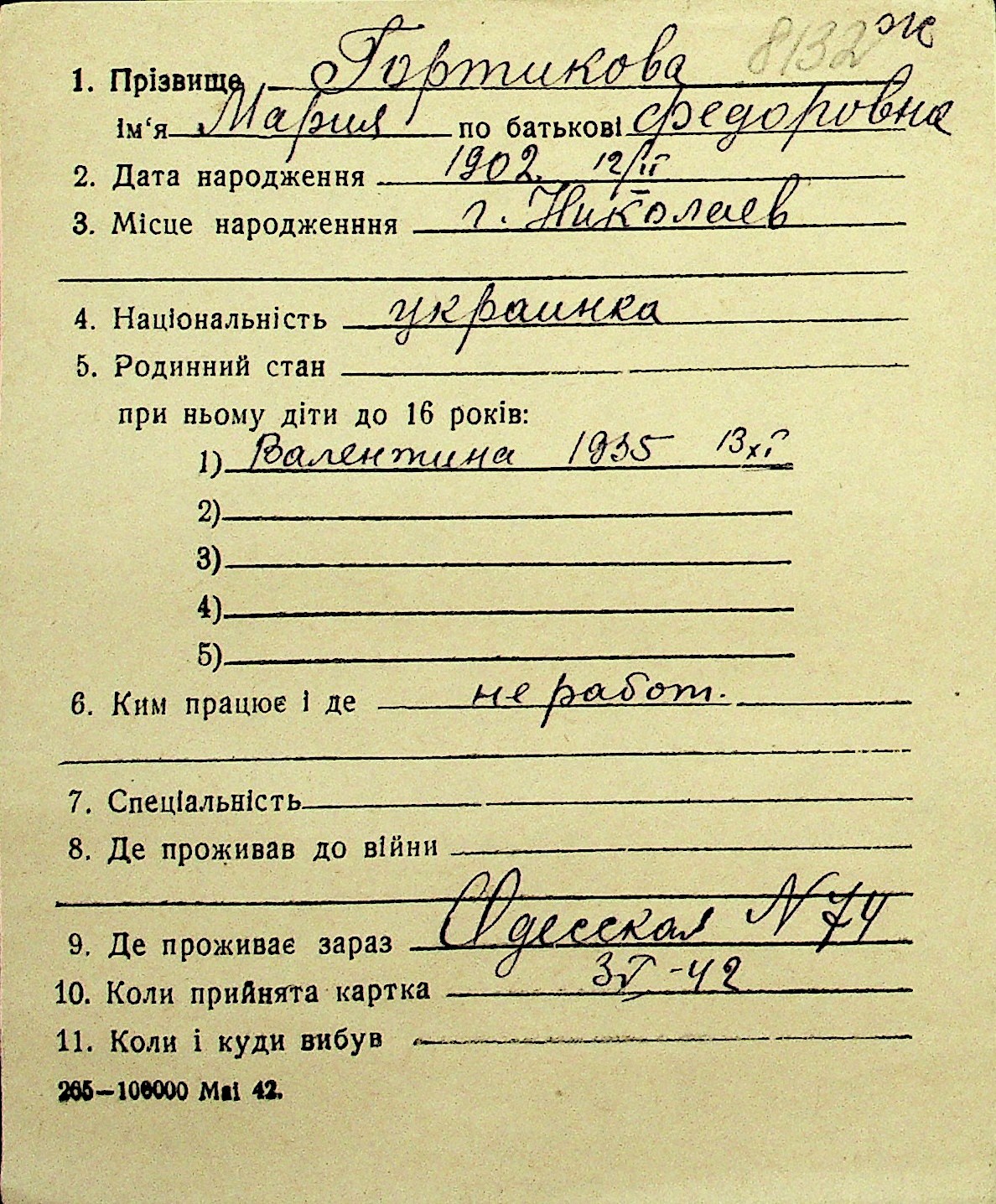 • • Перелік карток до фонду № Н-1016