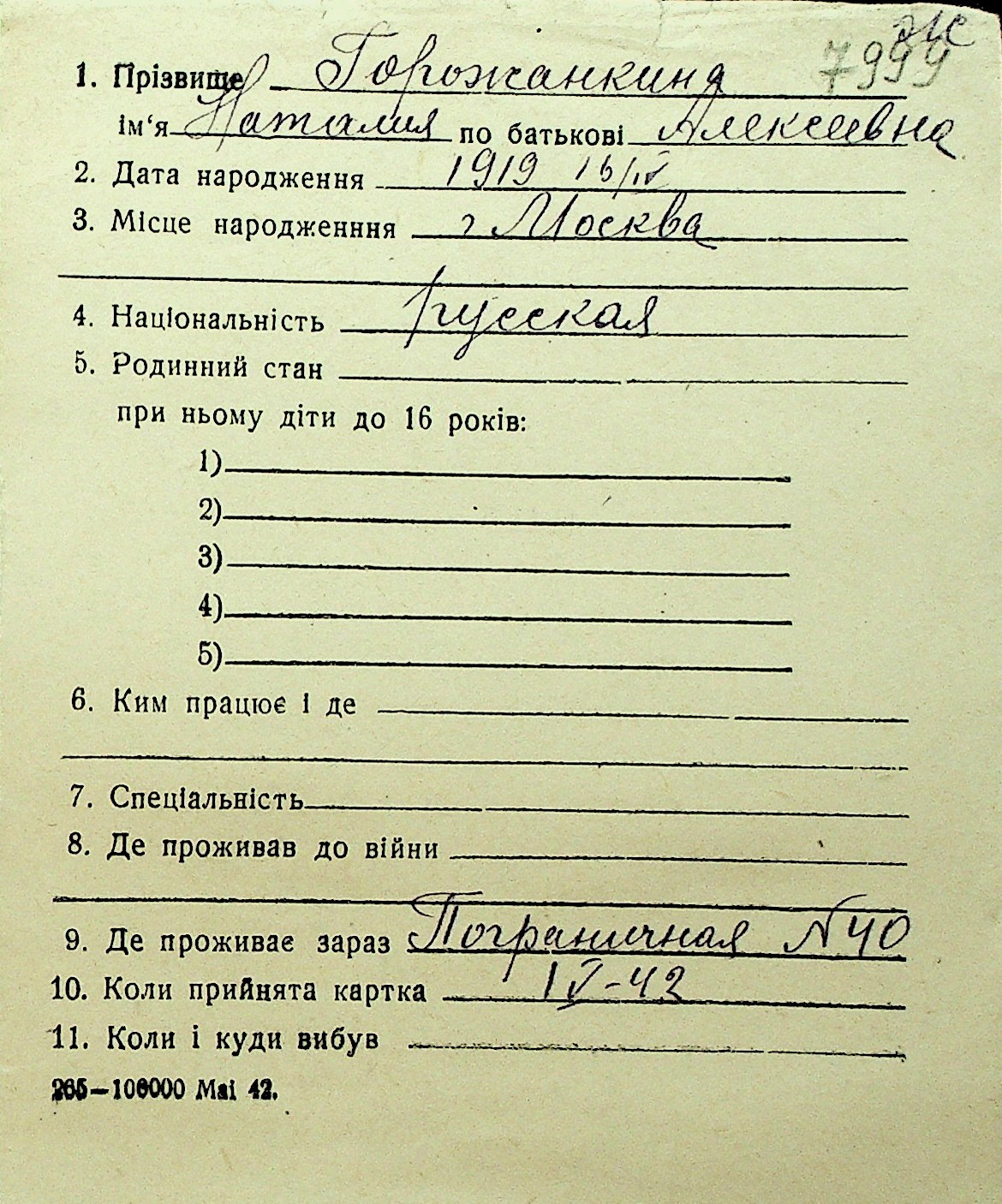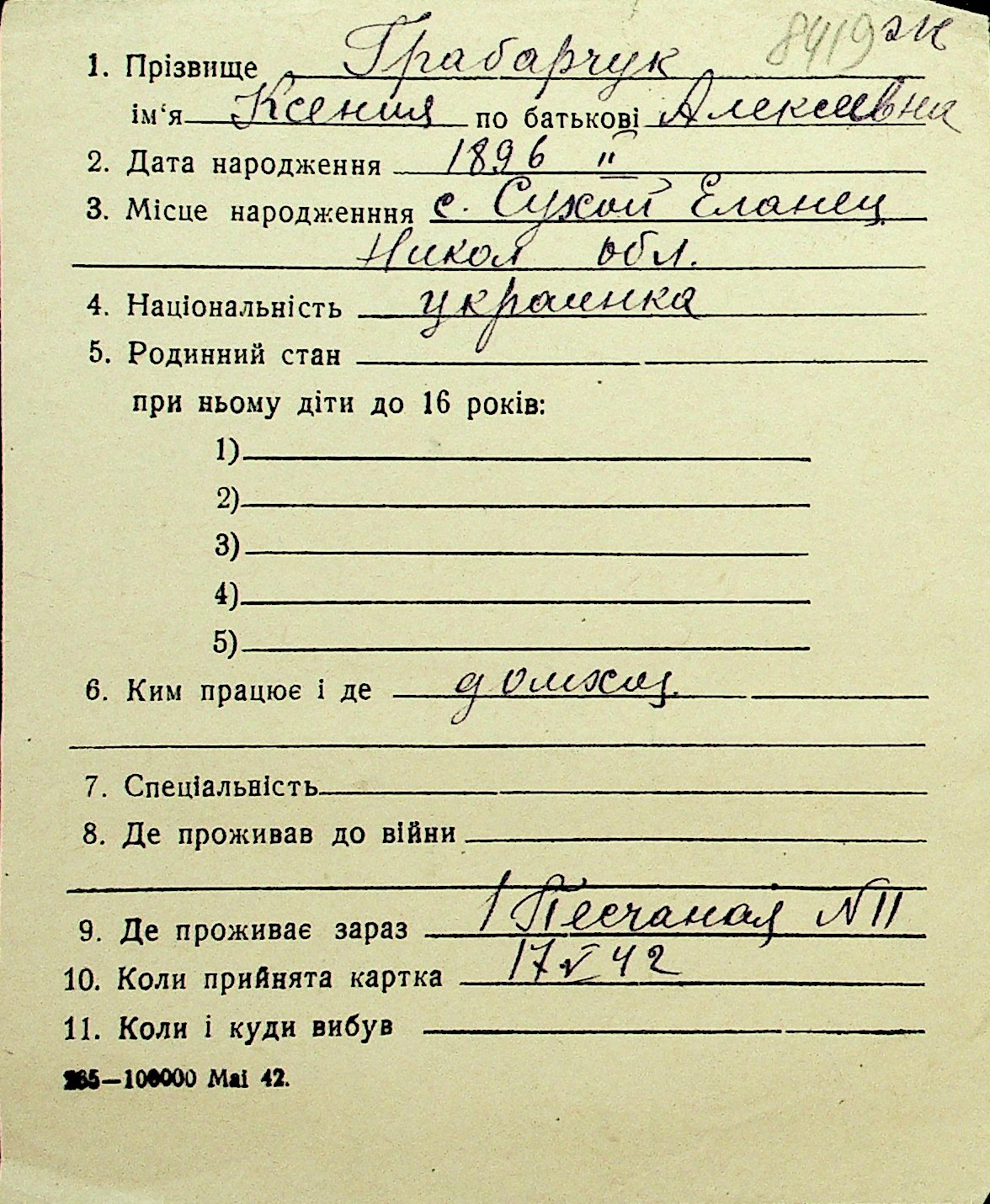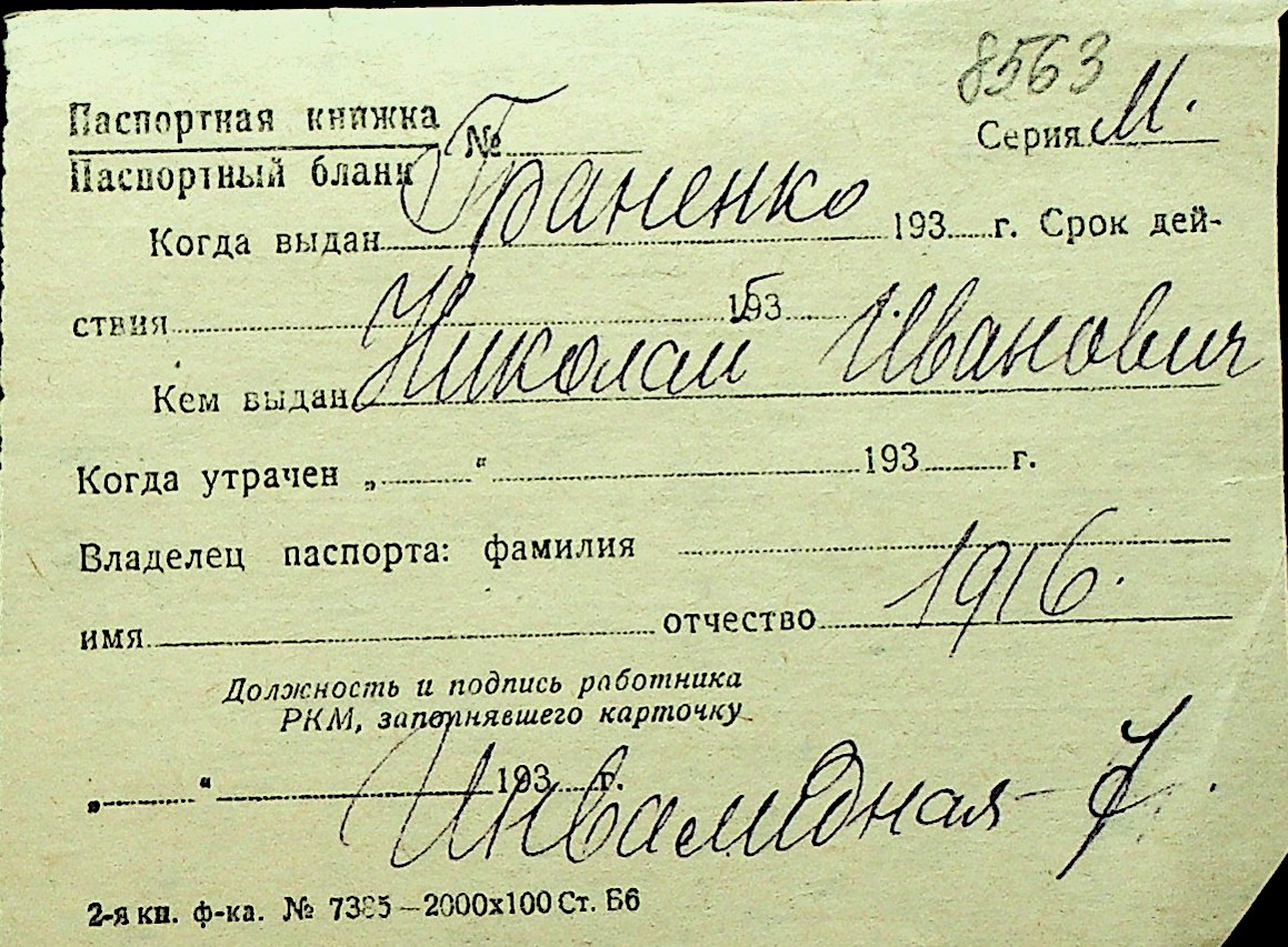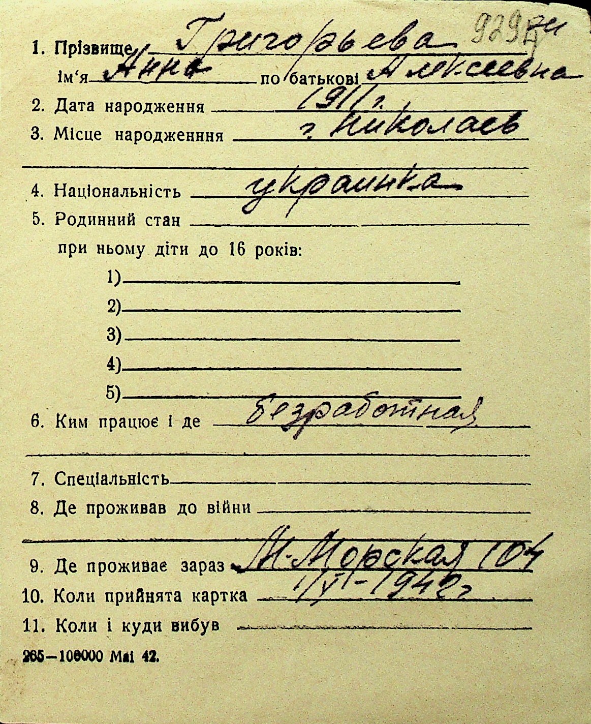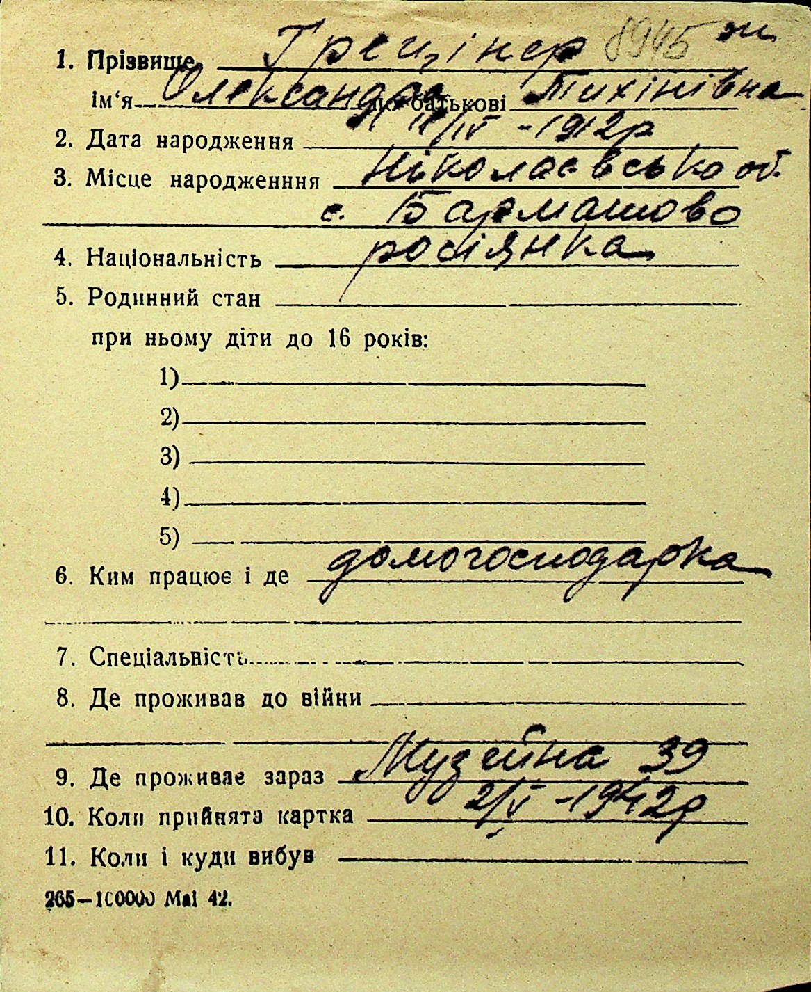 • • Перелік карток до фонду № Н-1016