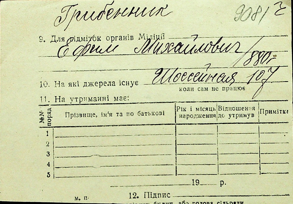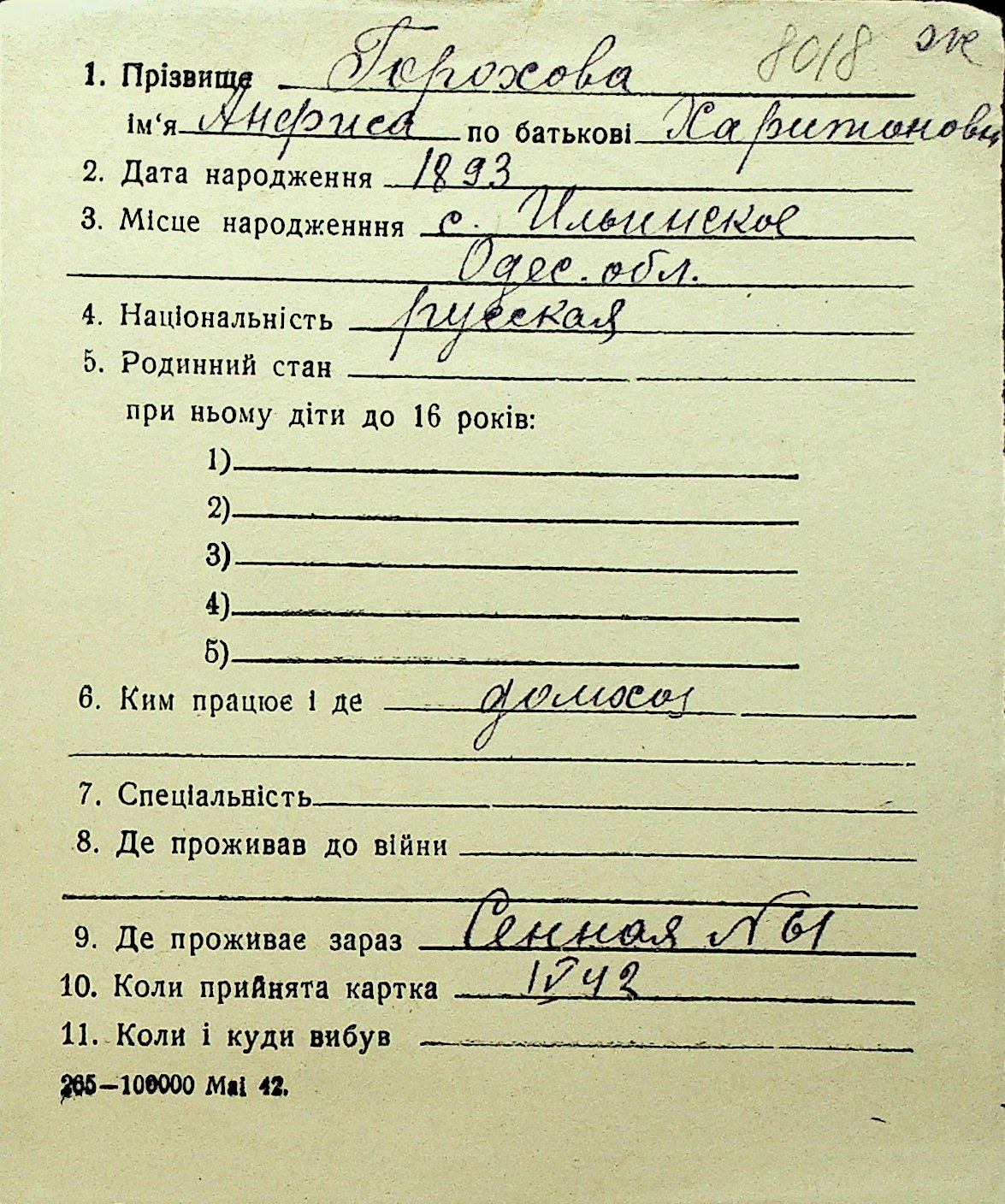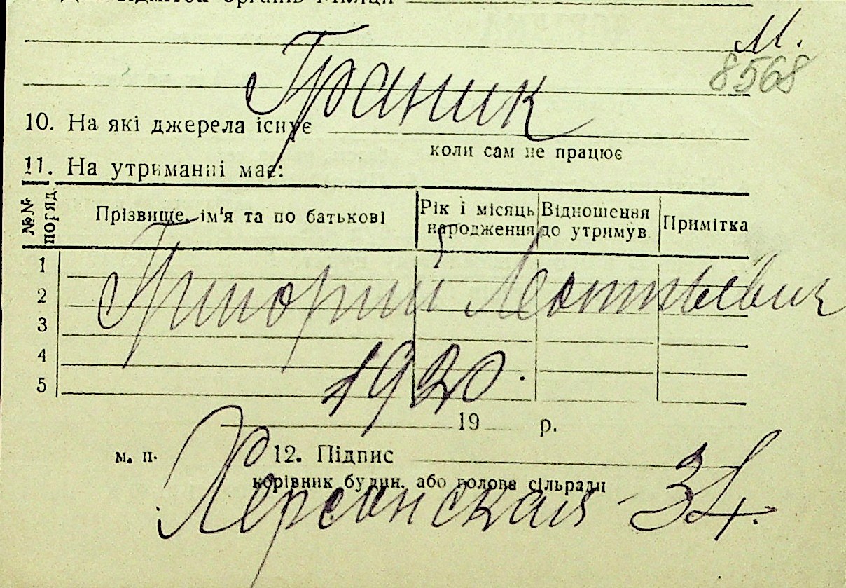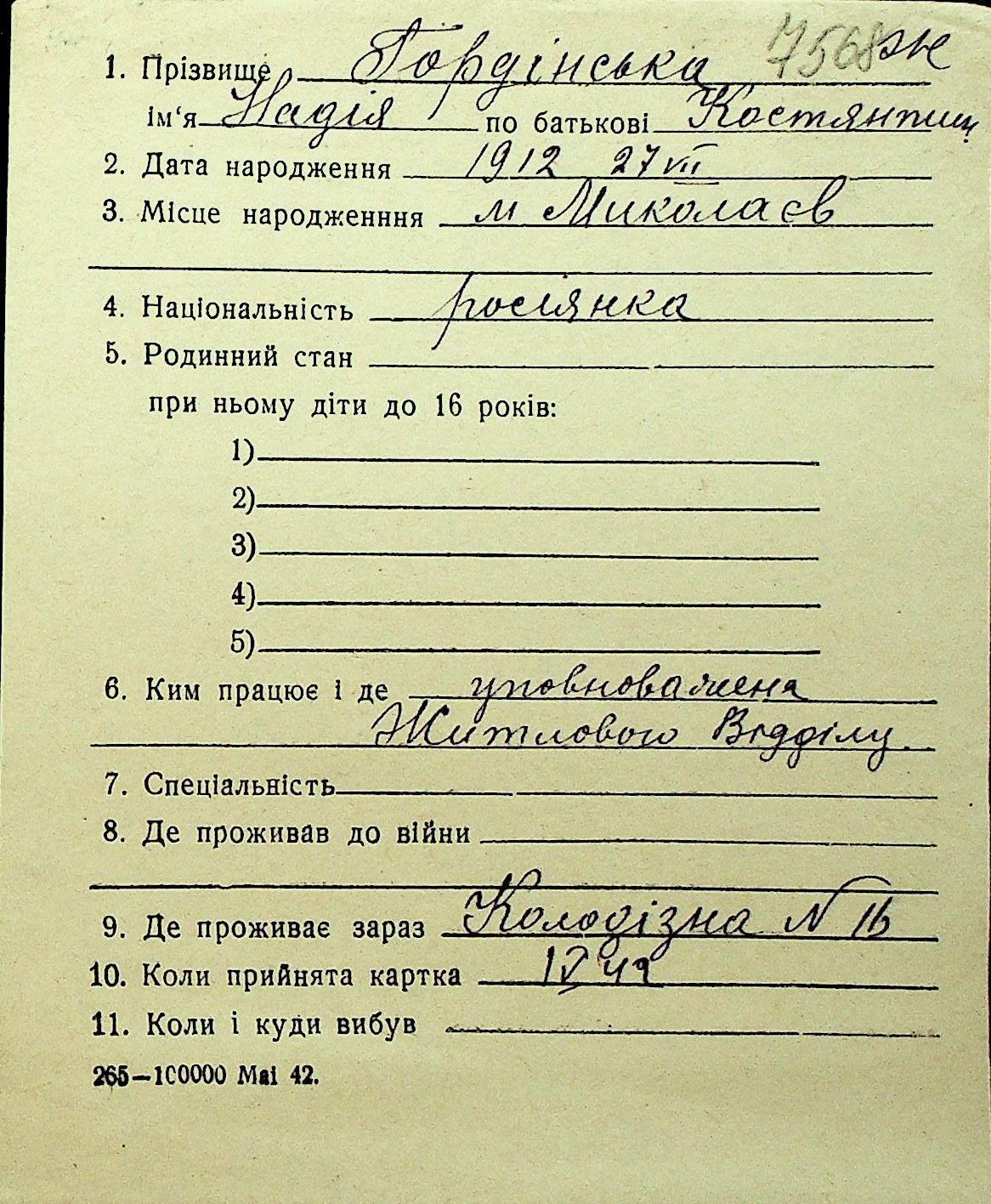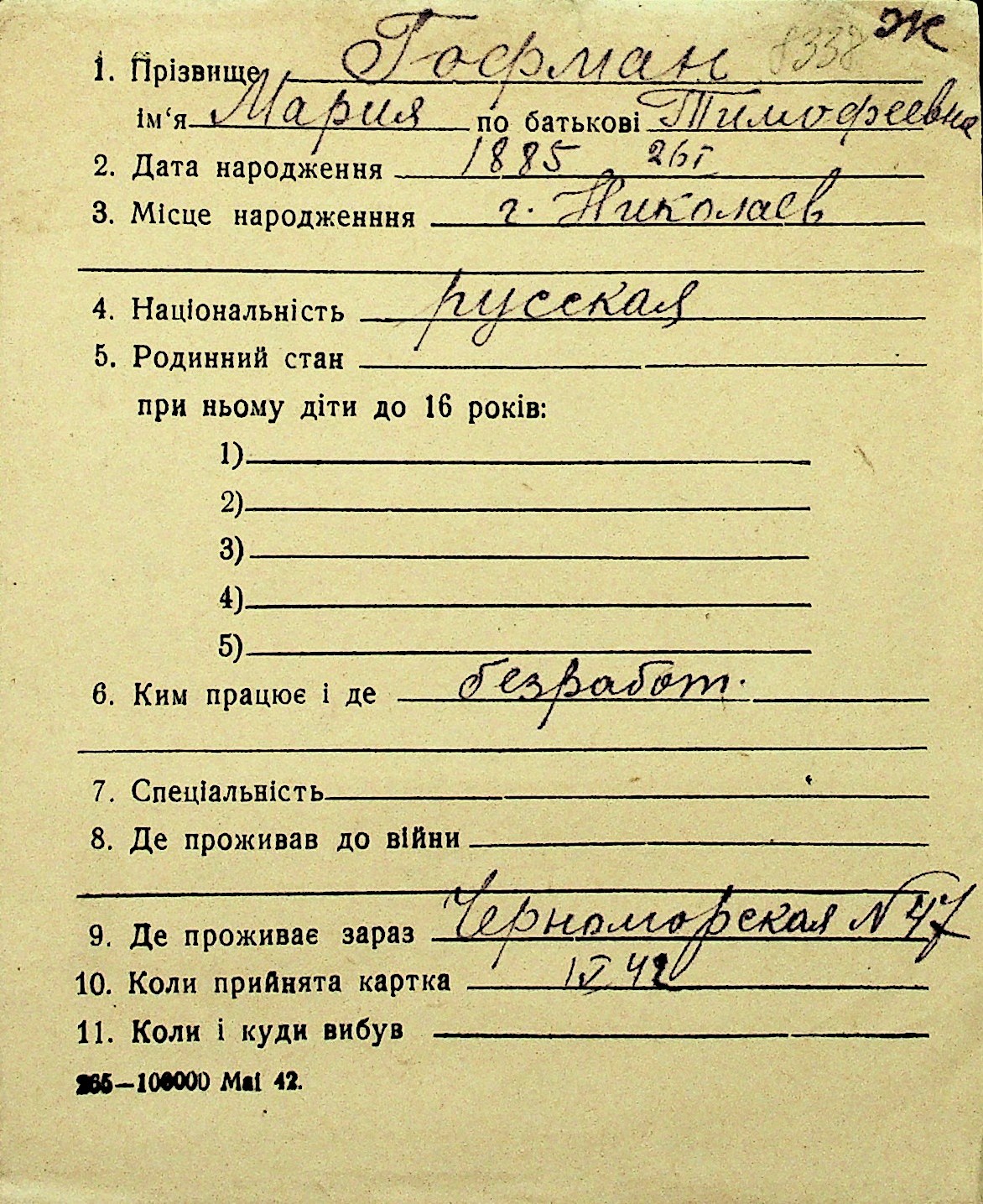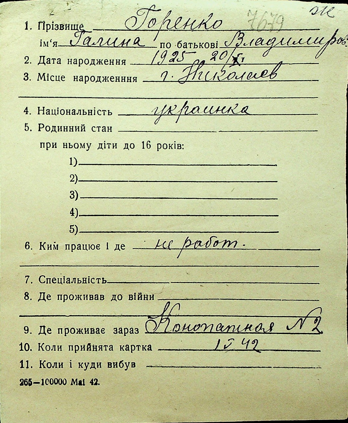 • • Перелік карток до фонду № Н-1016