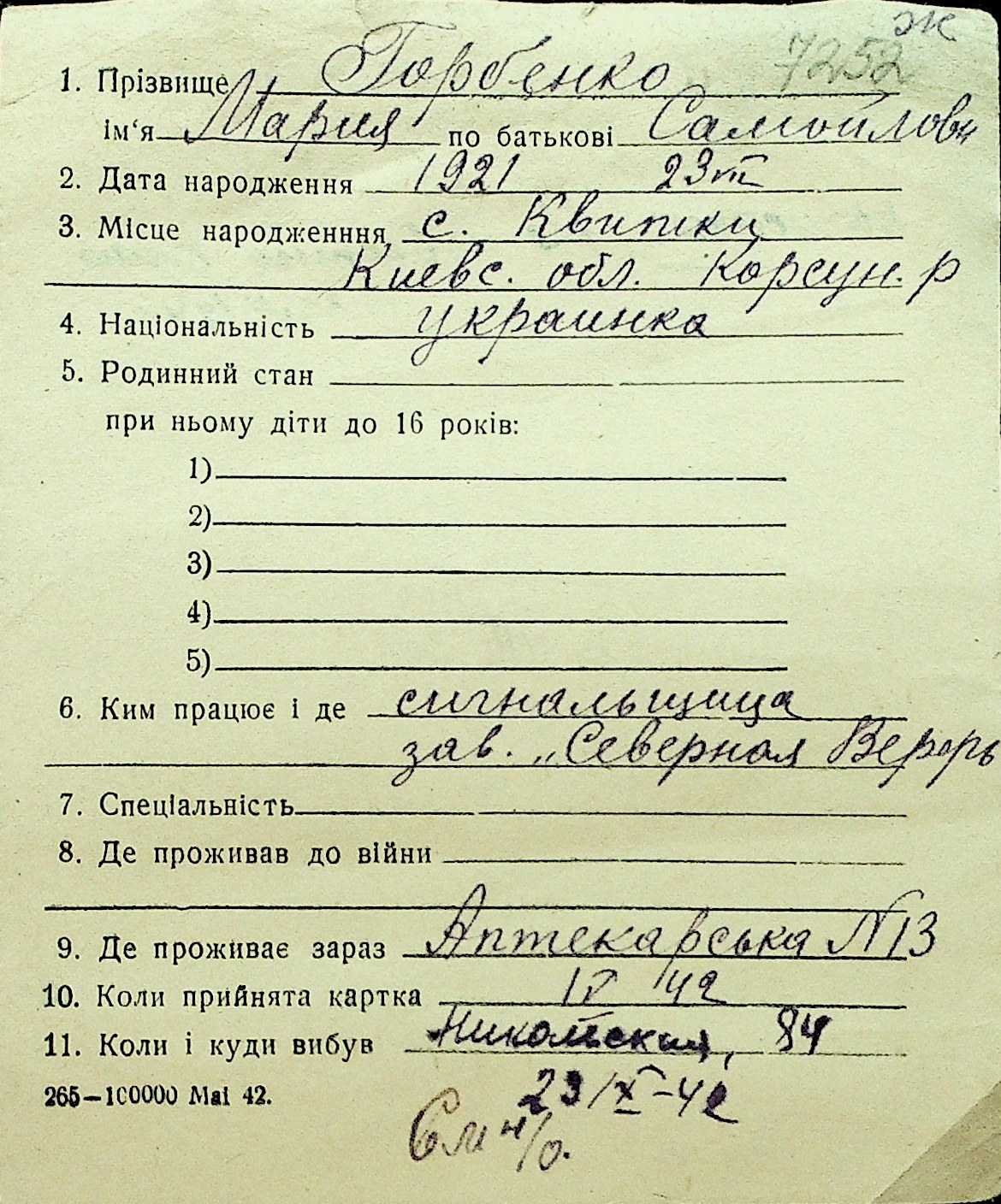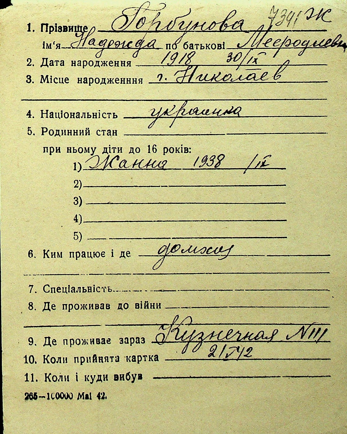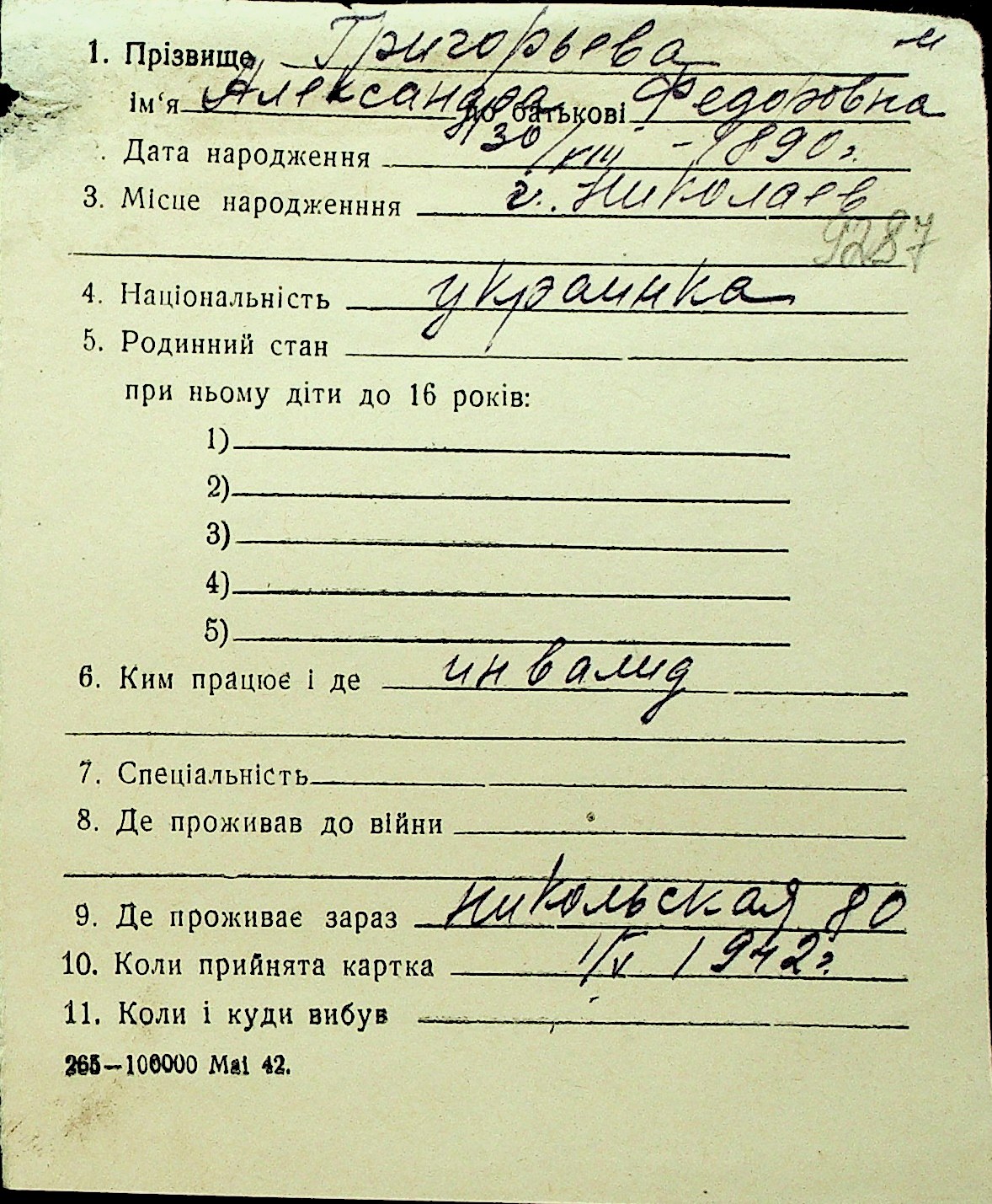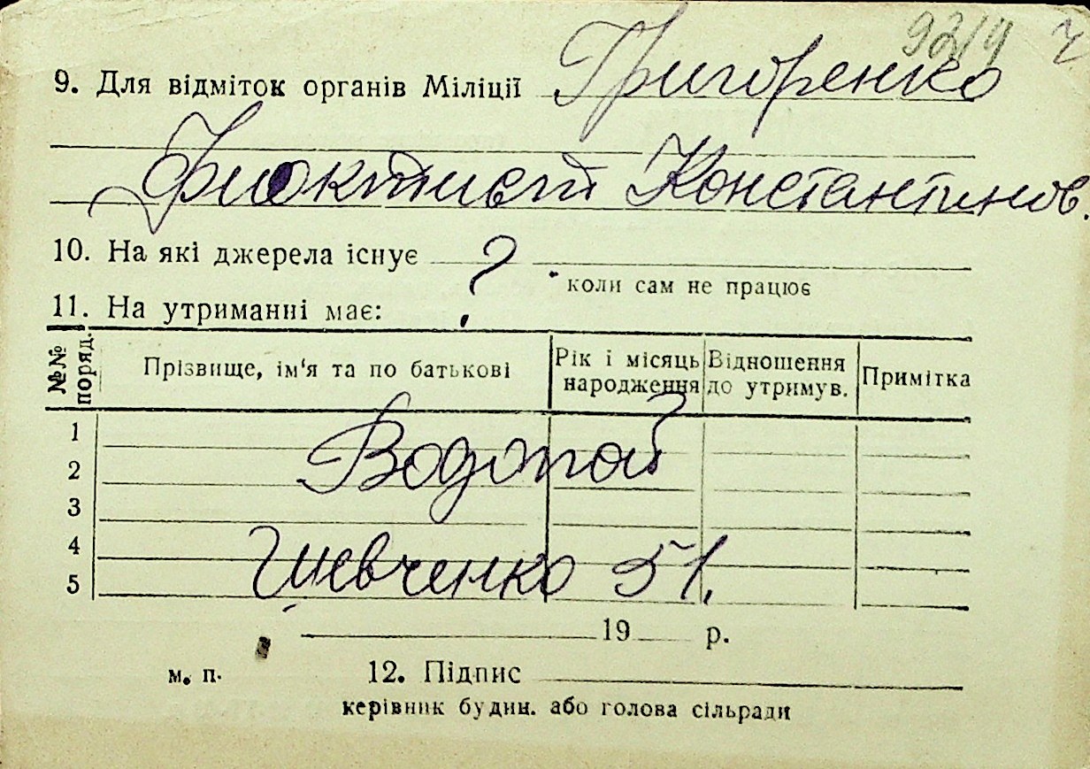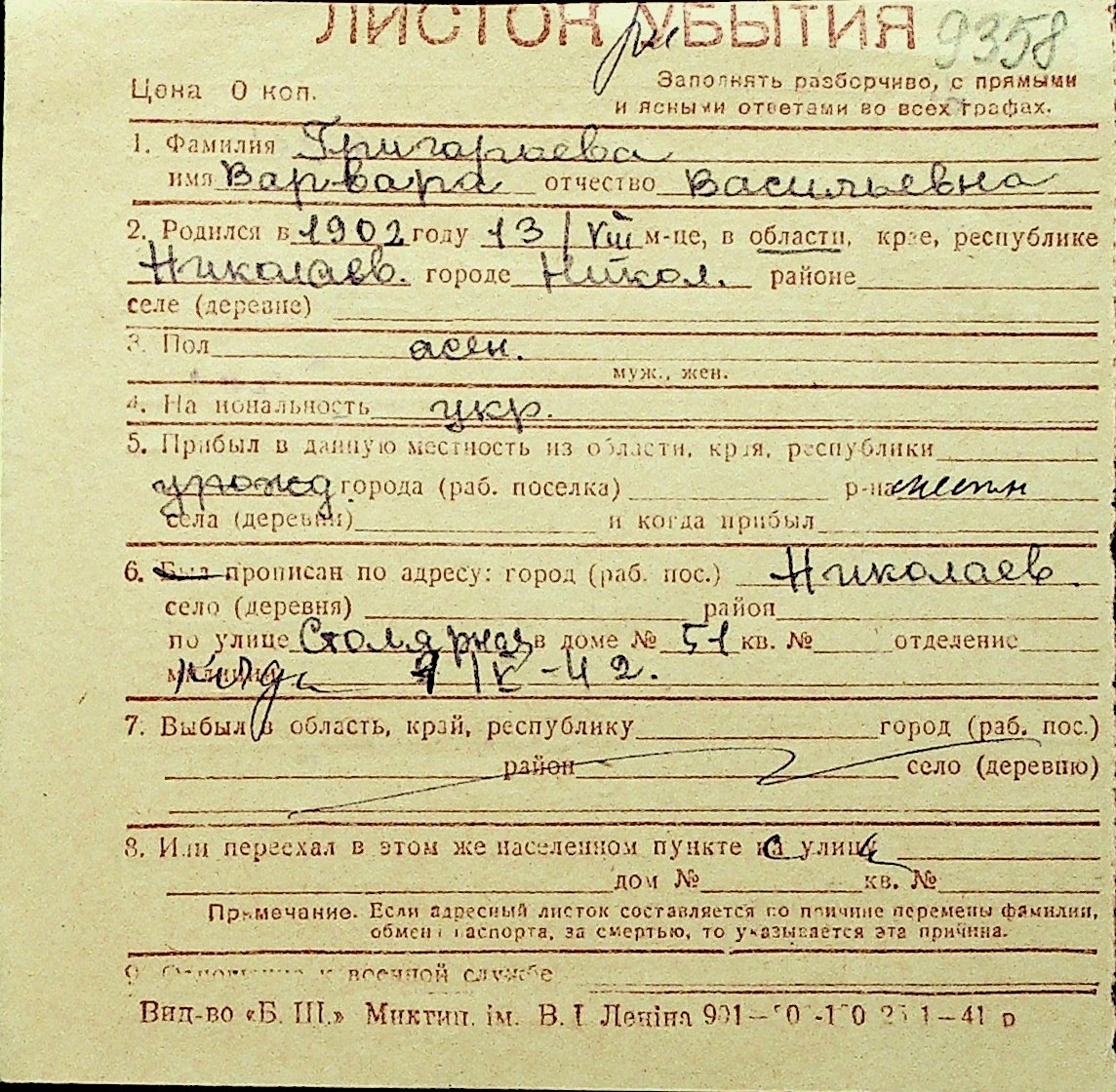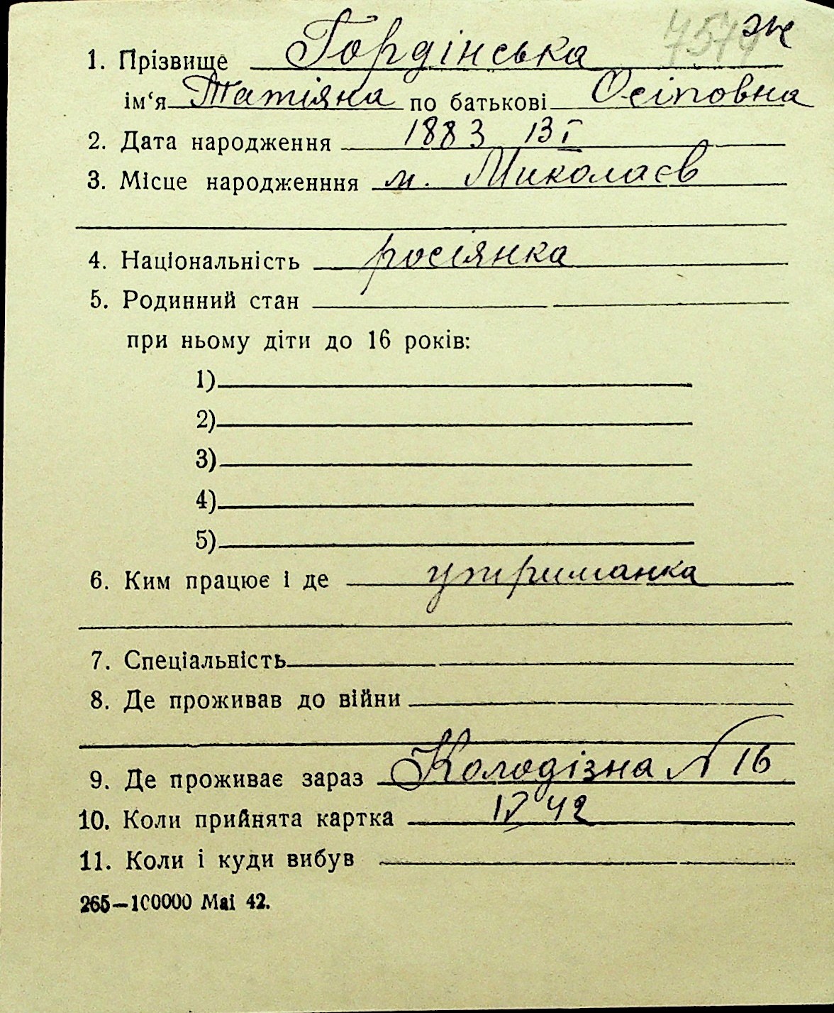 • • Перелік карток до фонду № Н-1016
