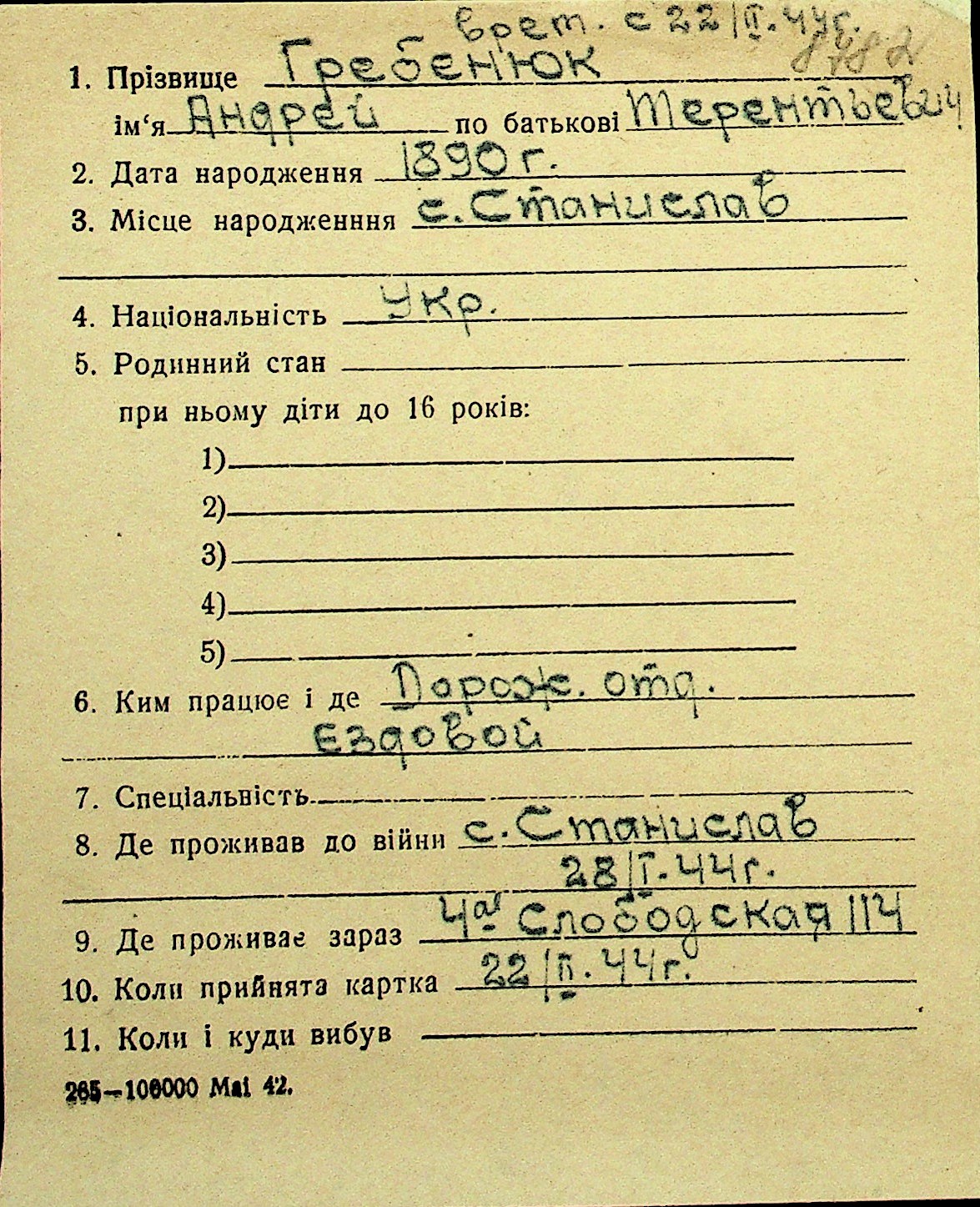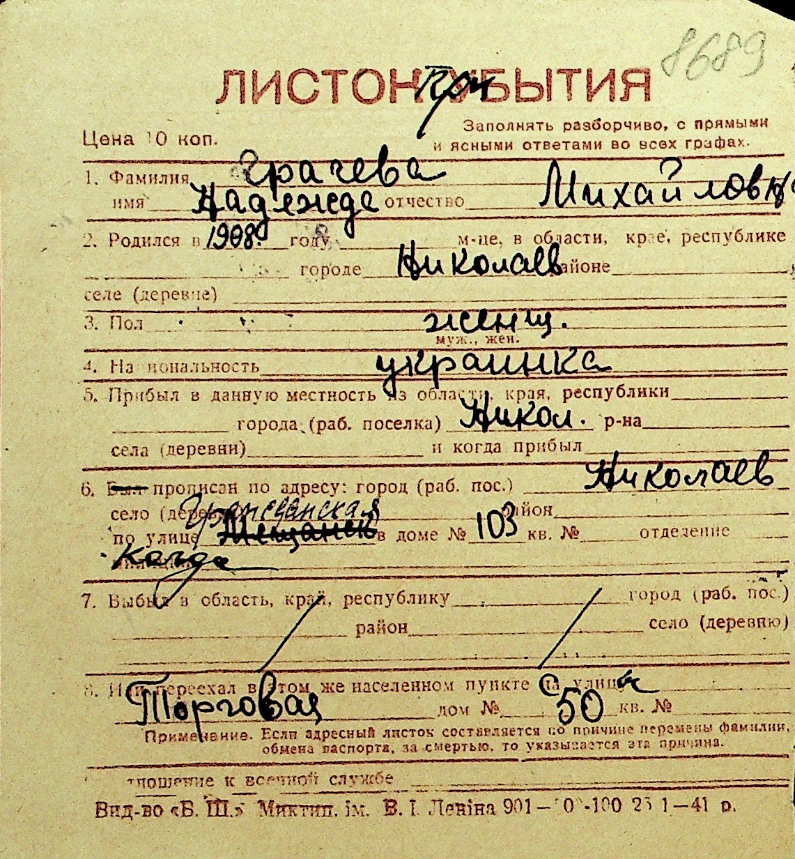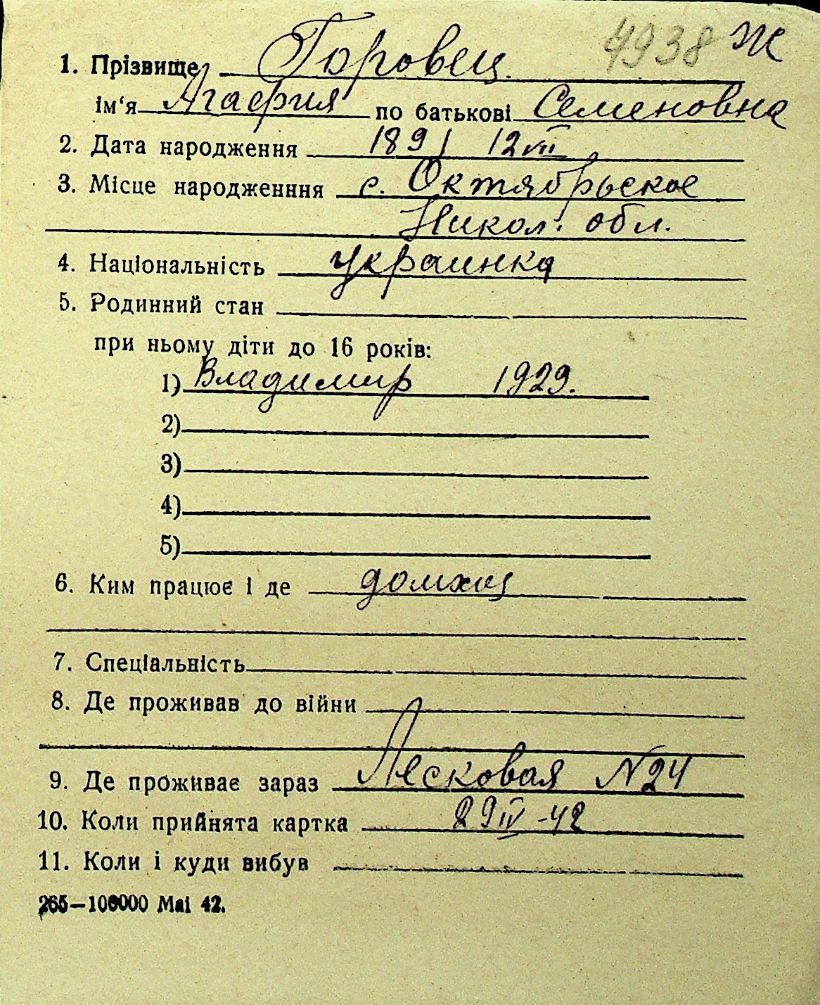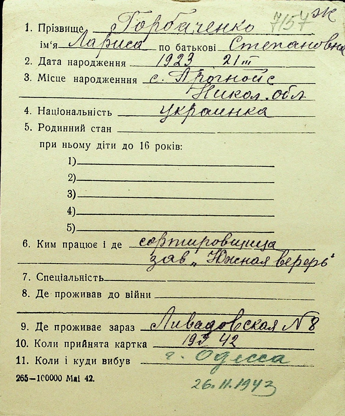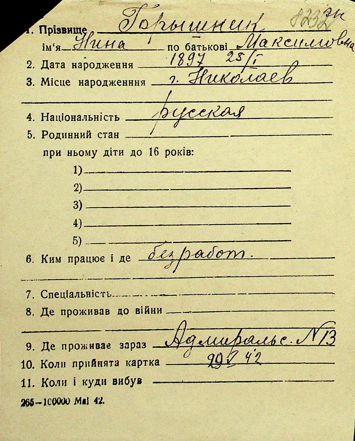 • • Перелік карток до фонду № Н-1016