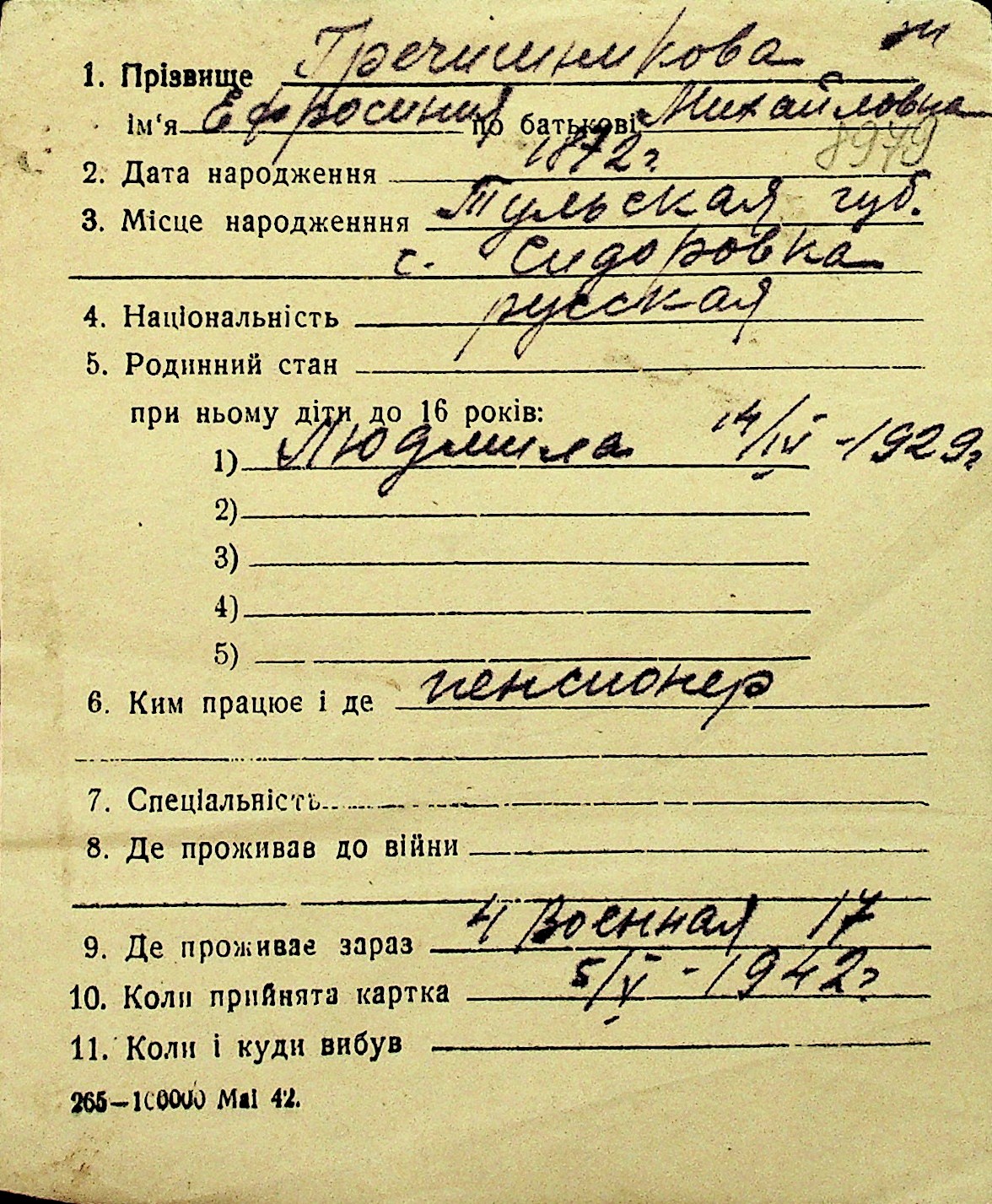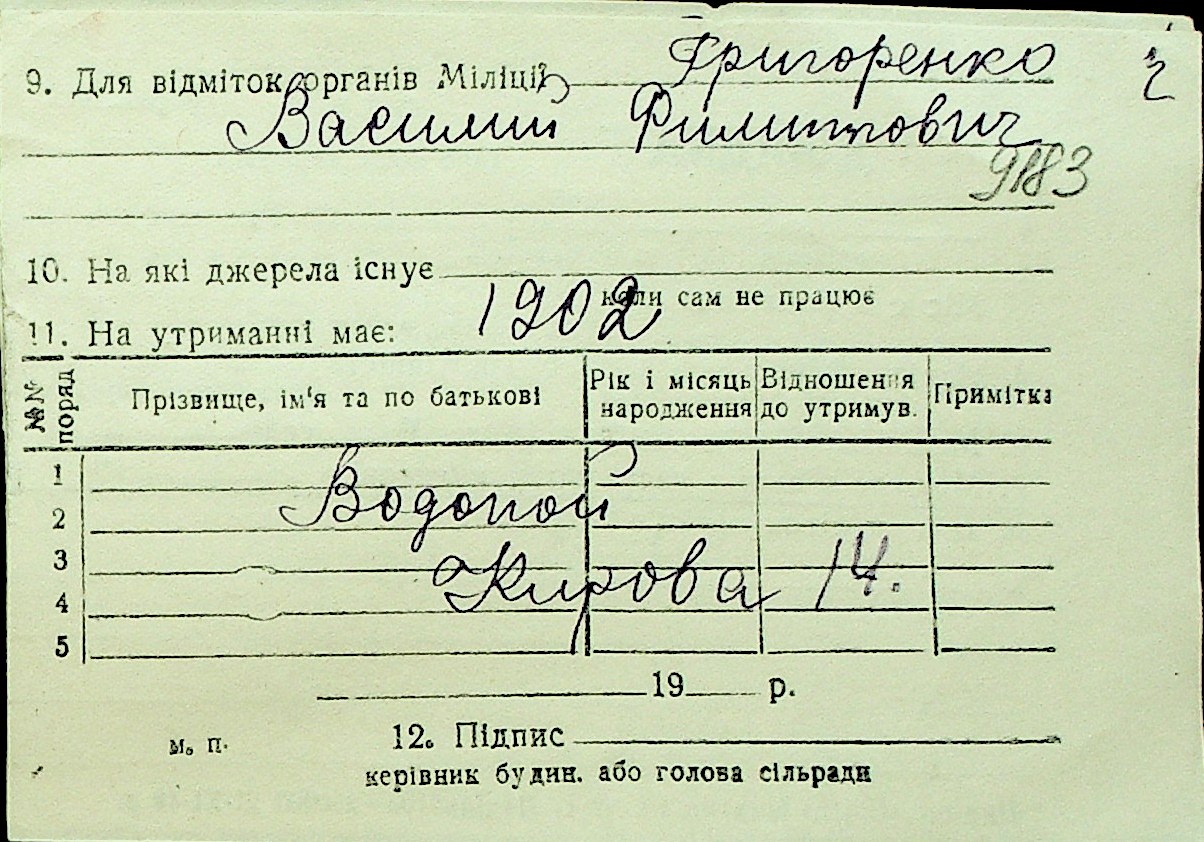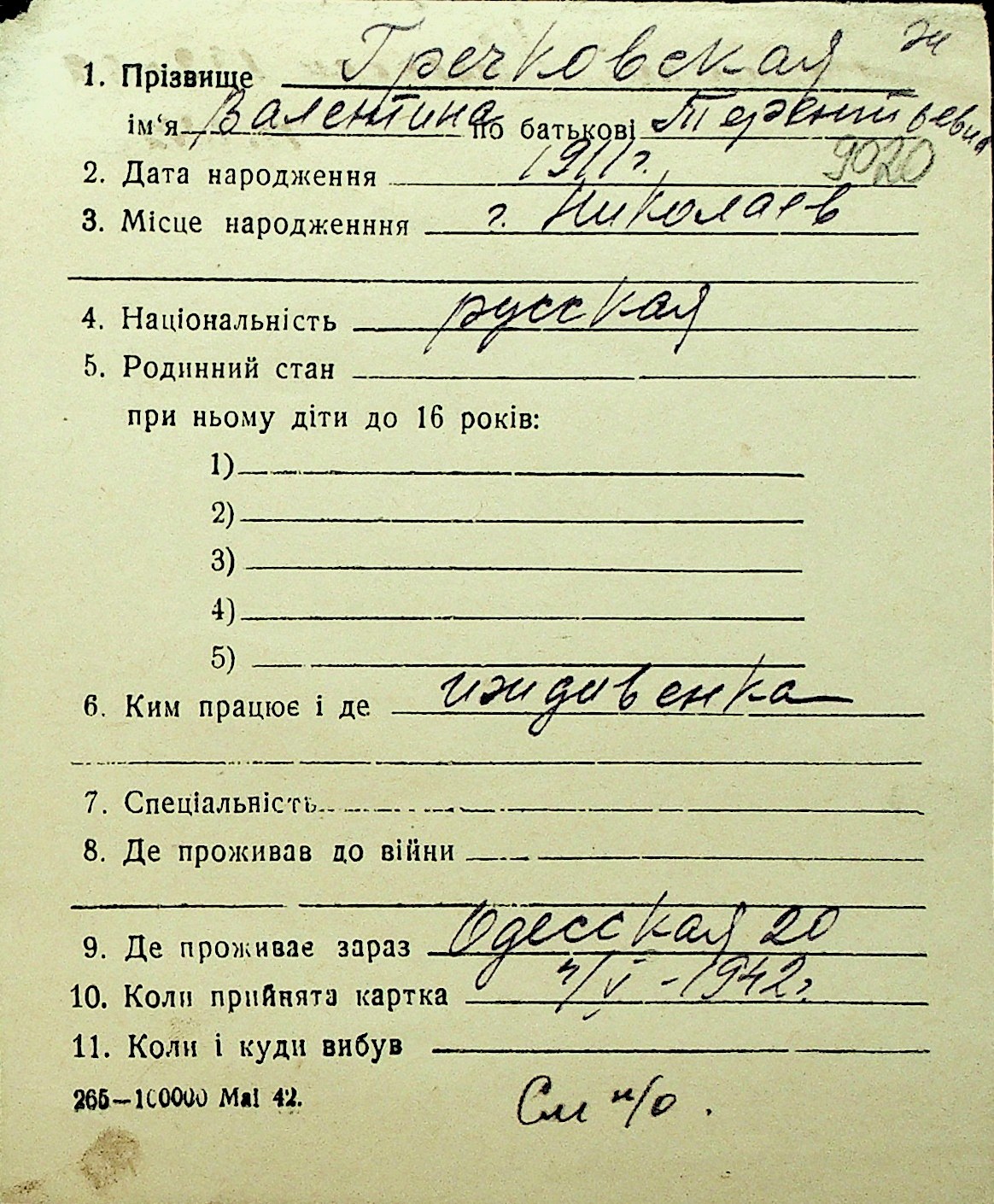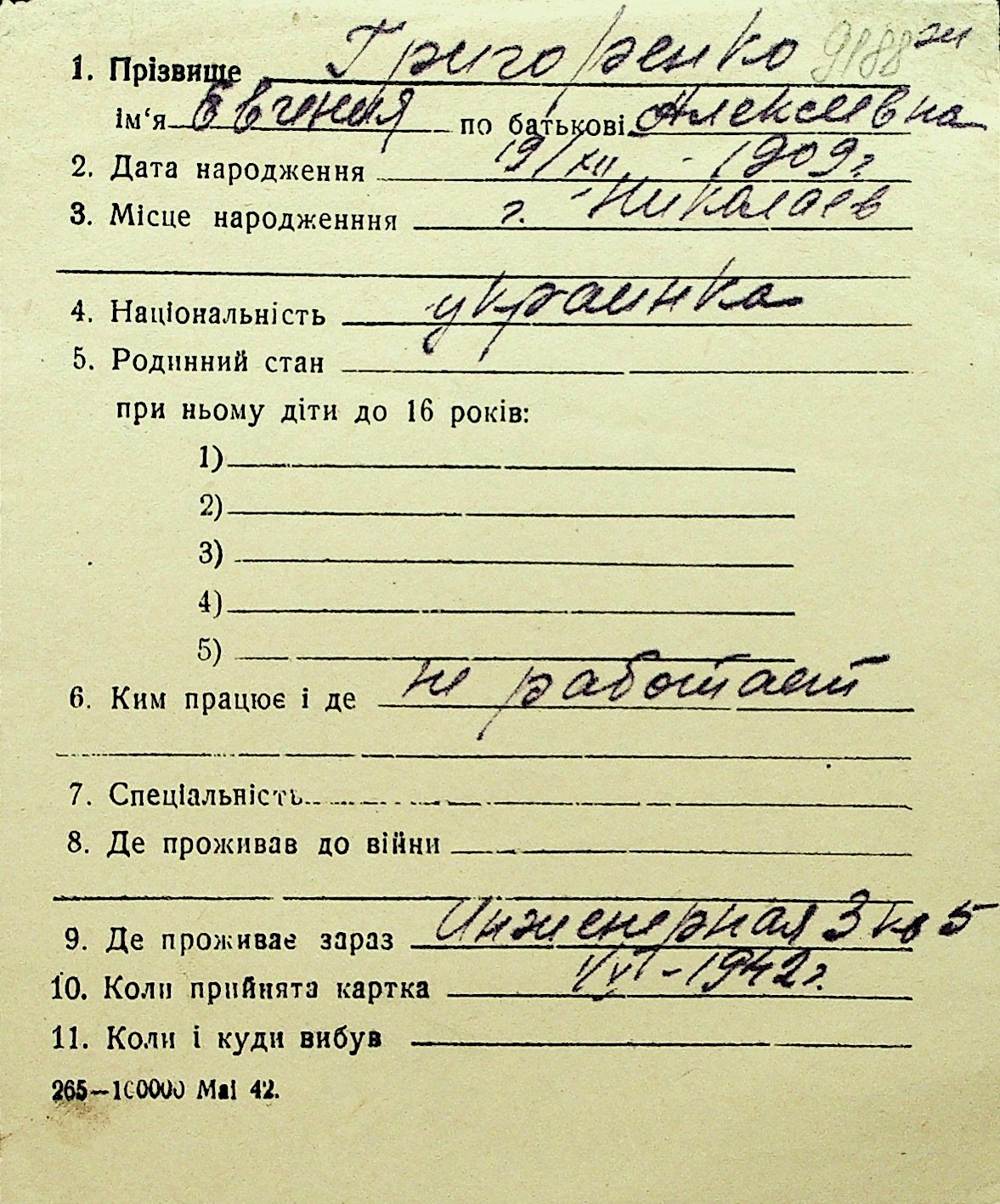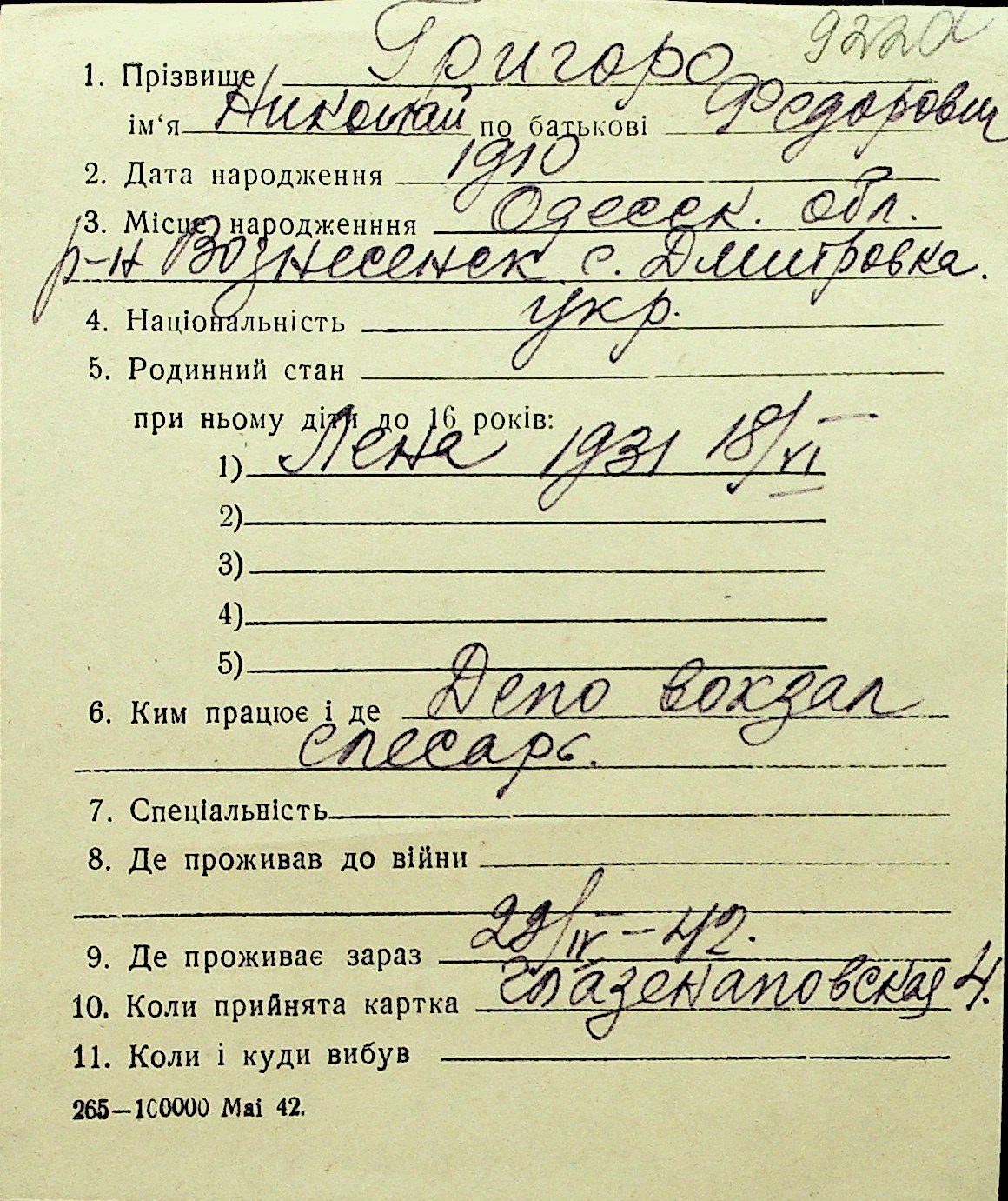 • • Перелік карток до фонду № Н-1016