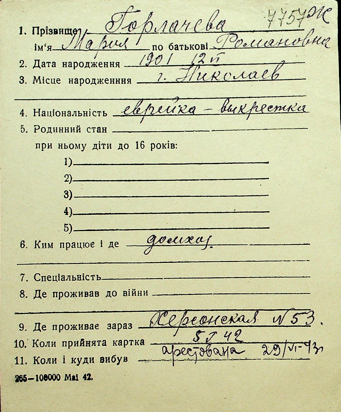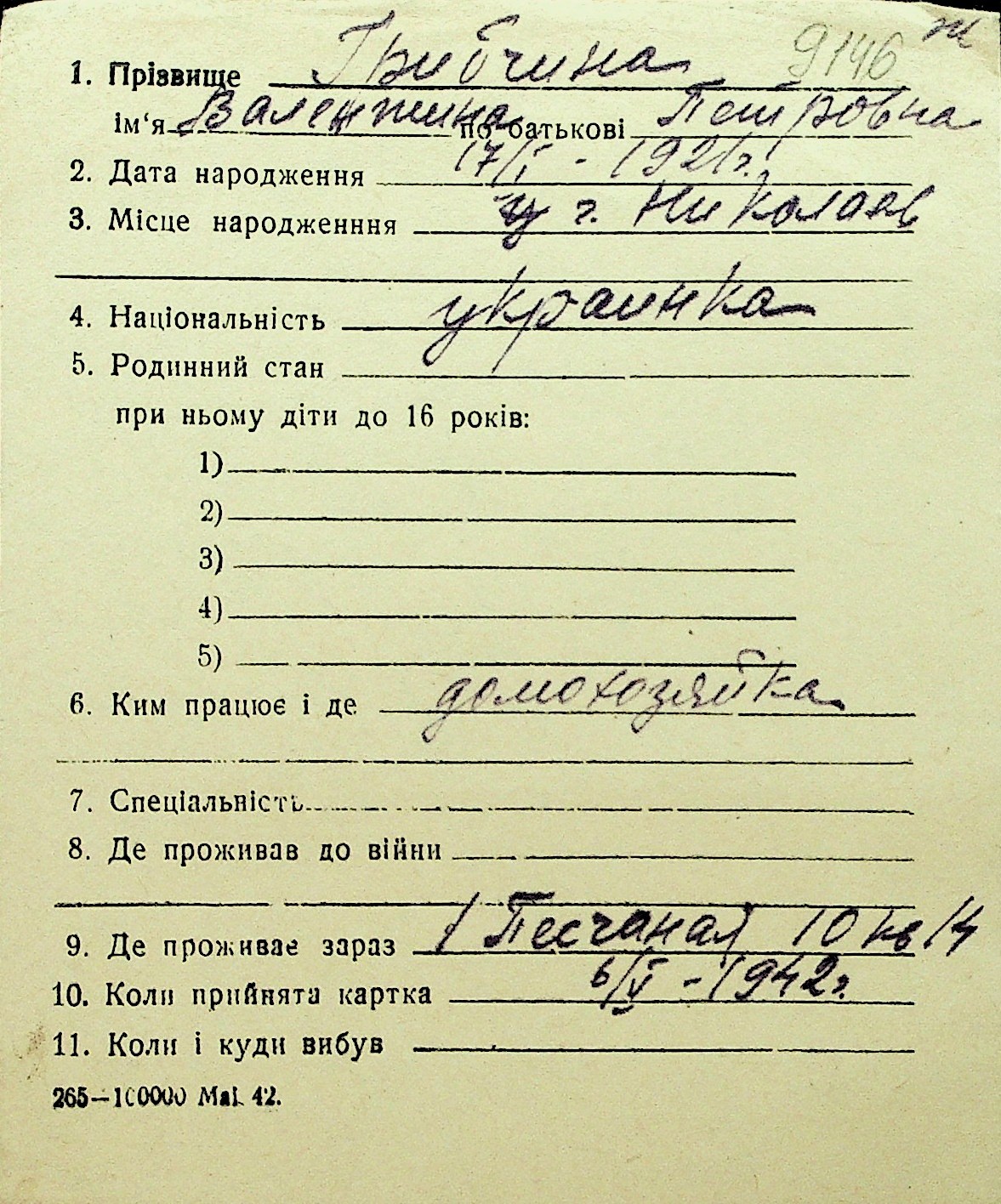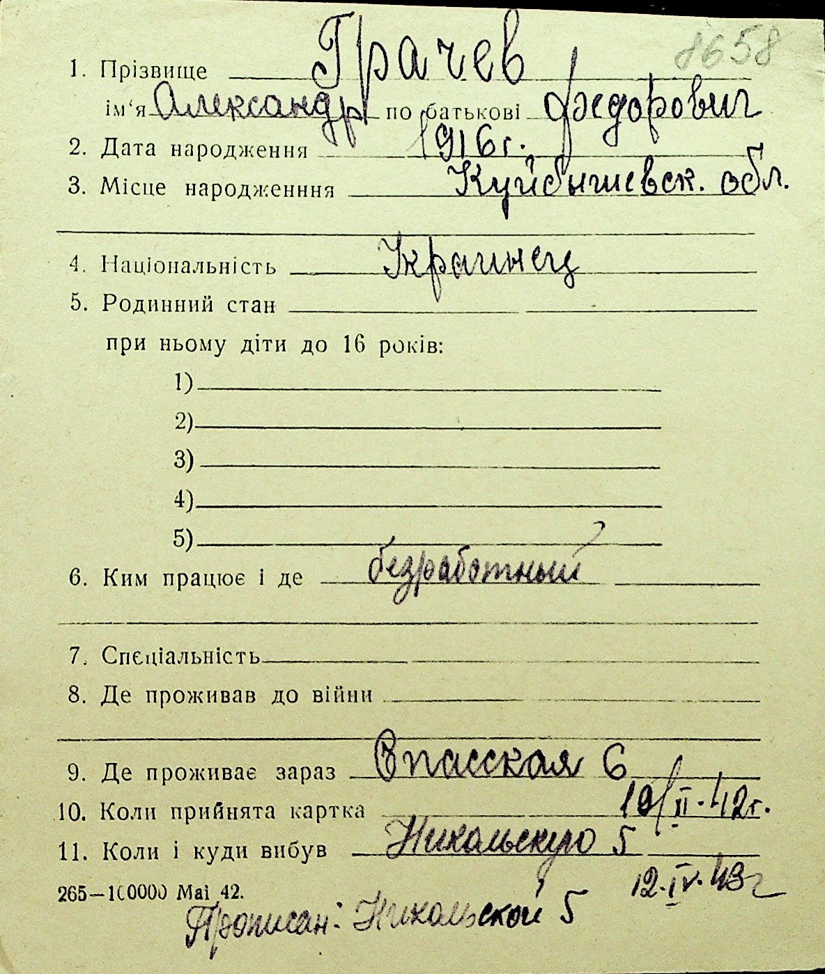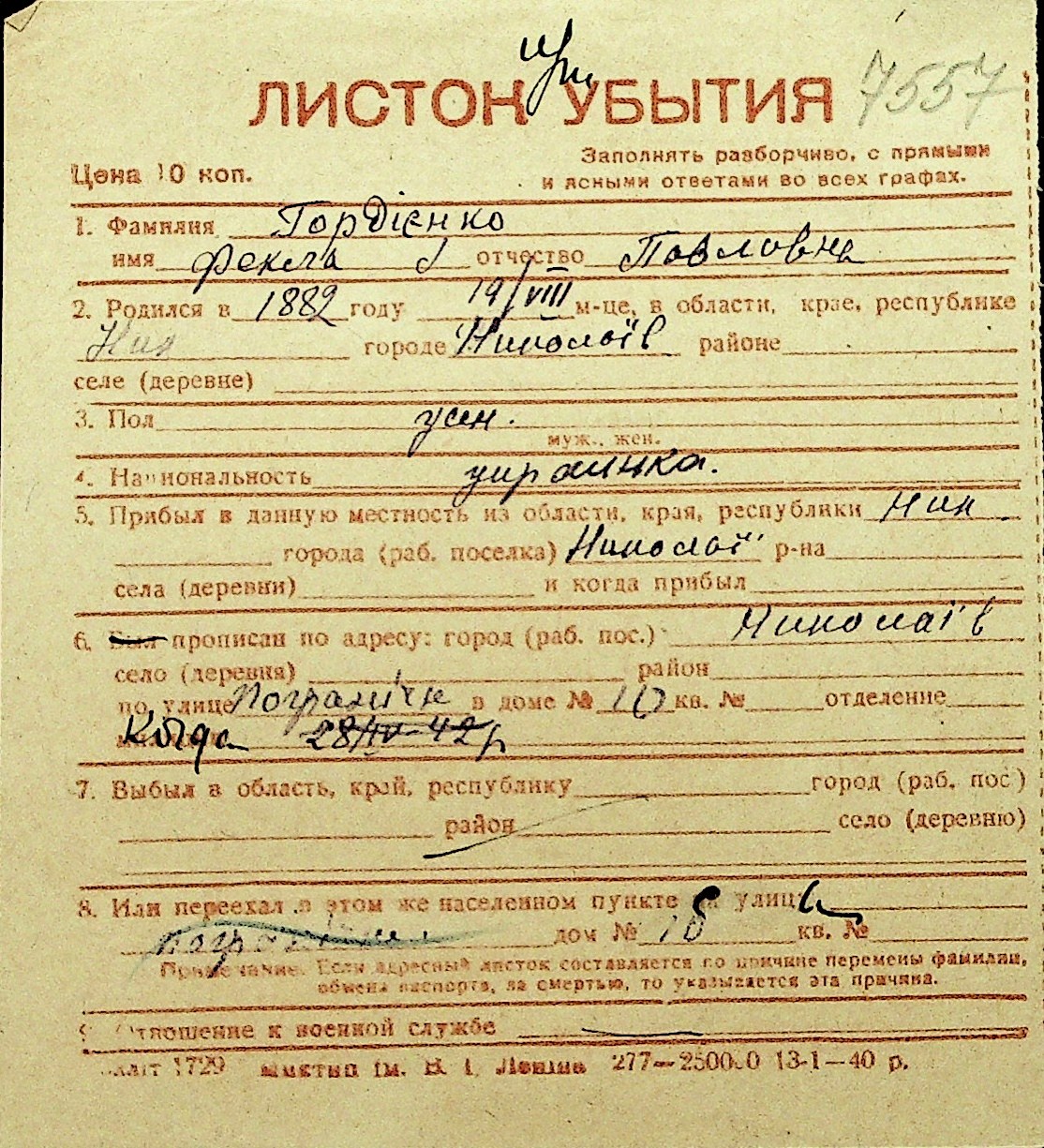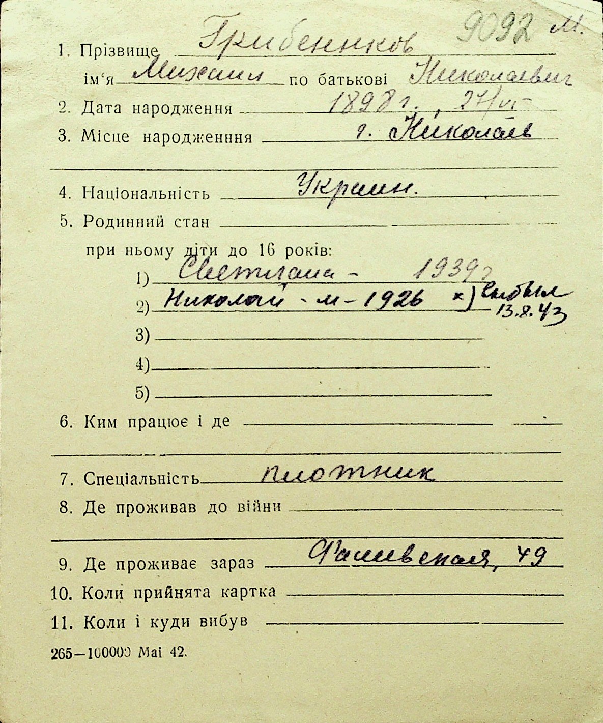 • • Перелік карток до фонду № Н-1016