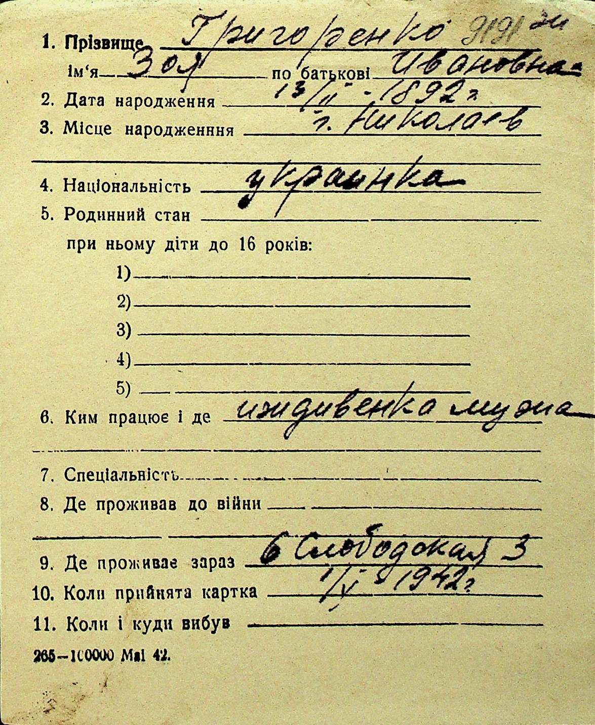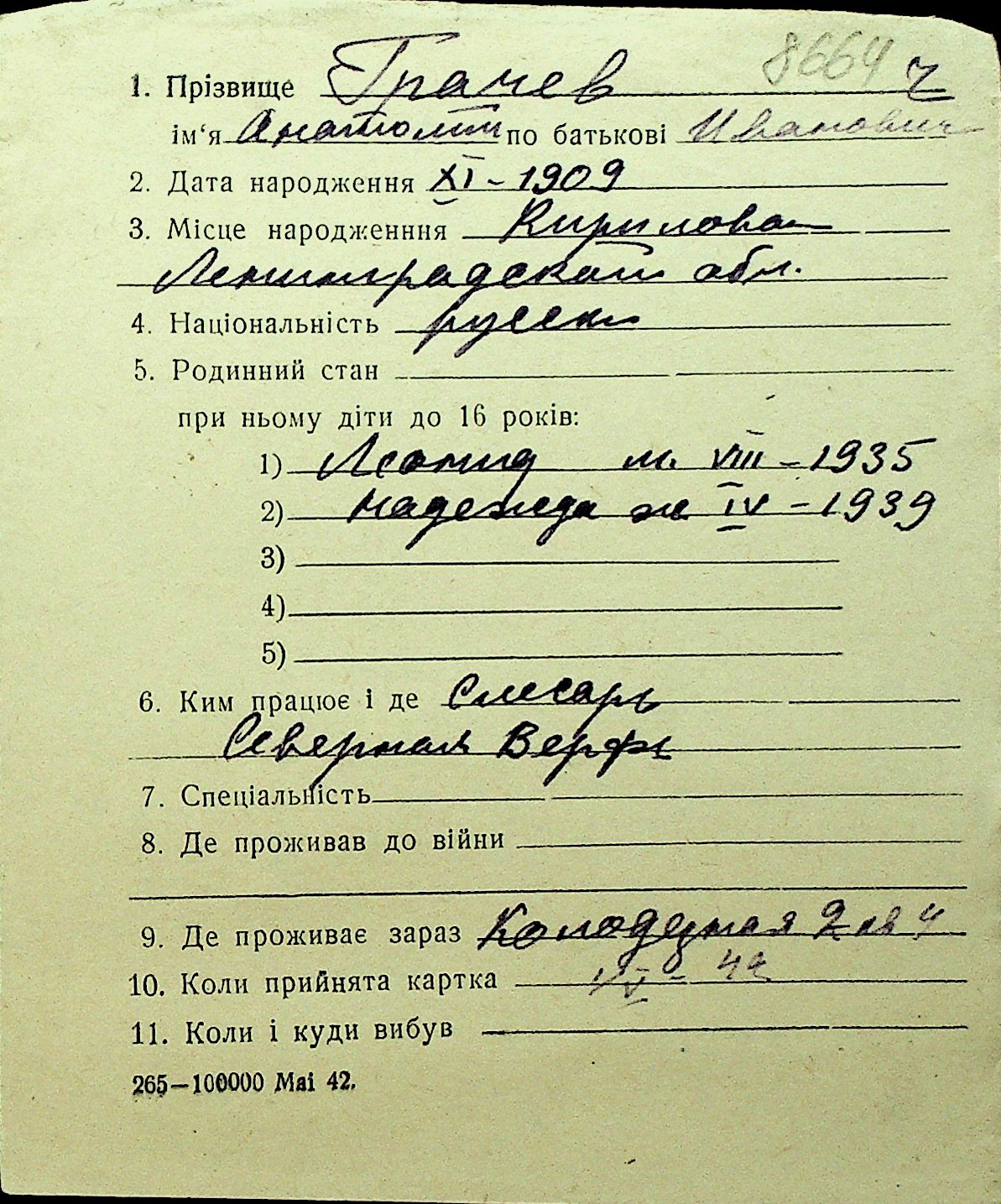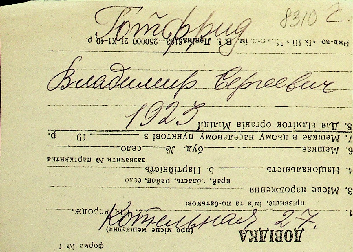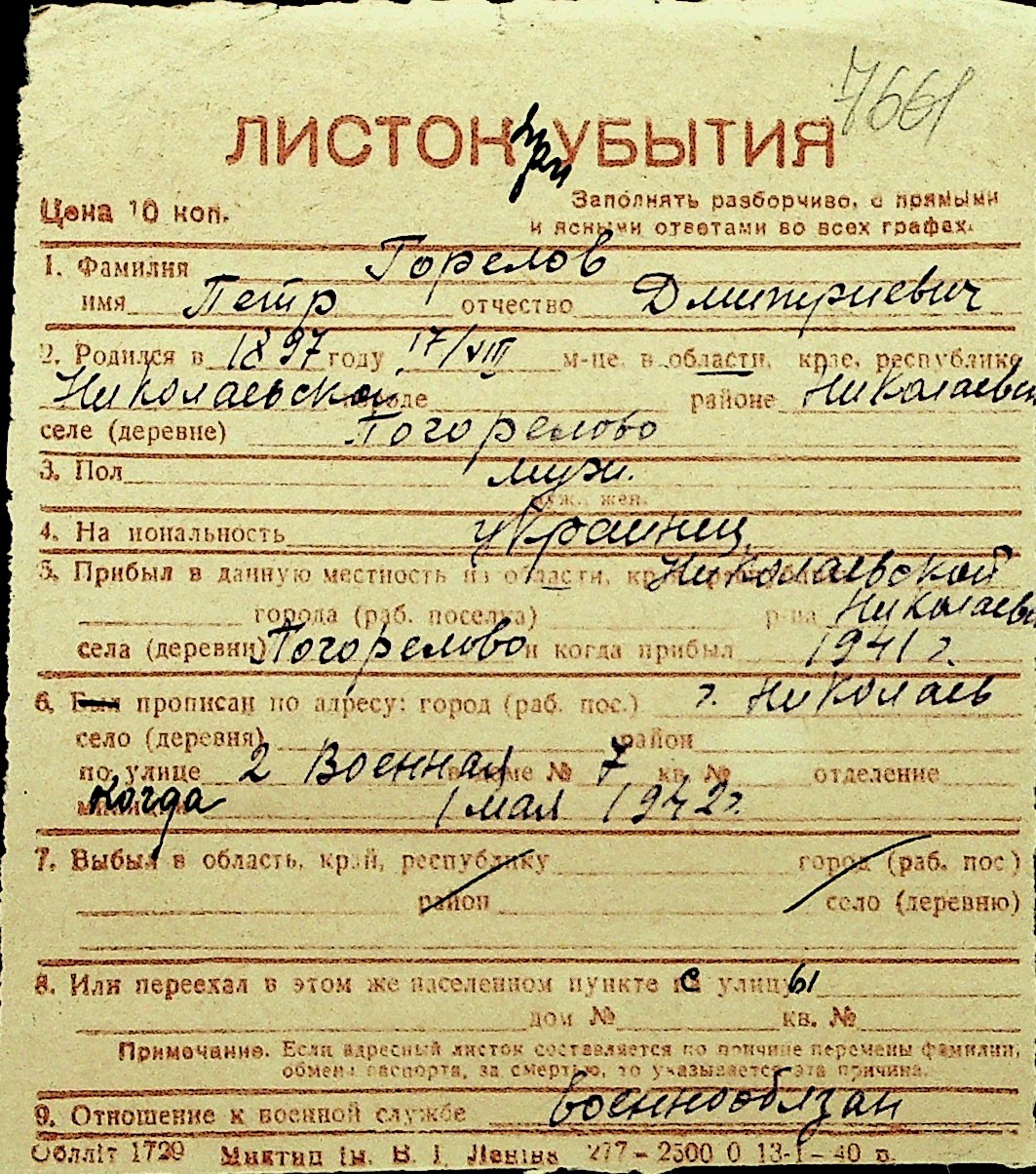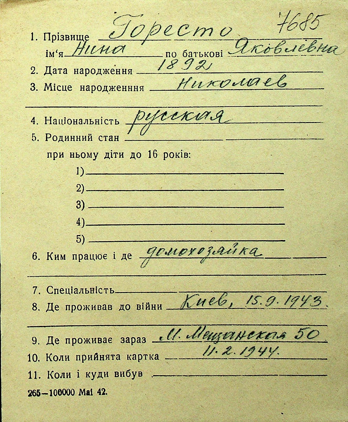 • • Перелік карток до фонду № Н-1016