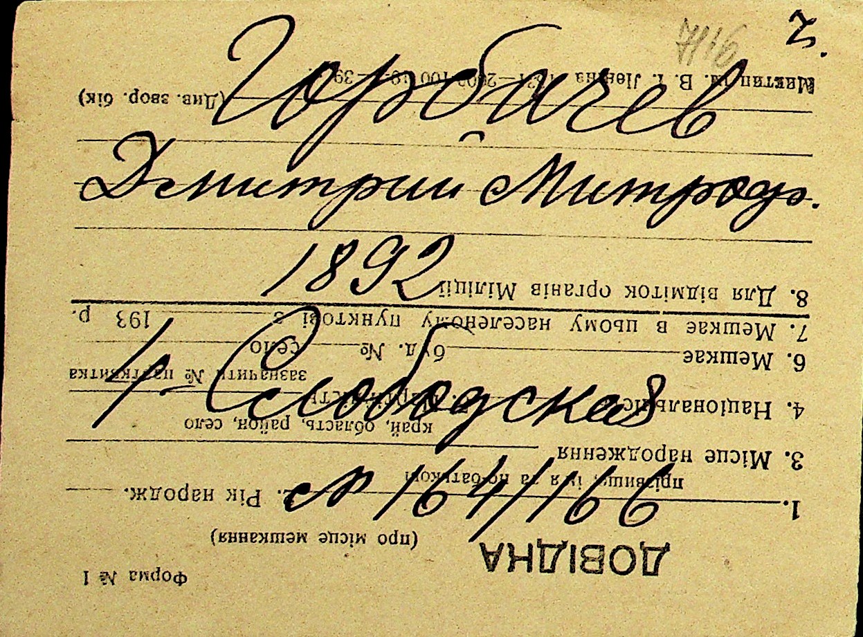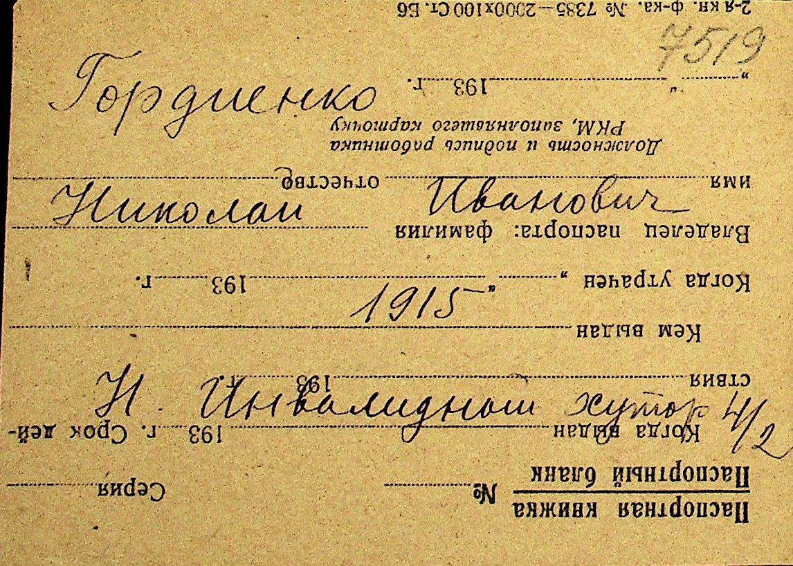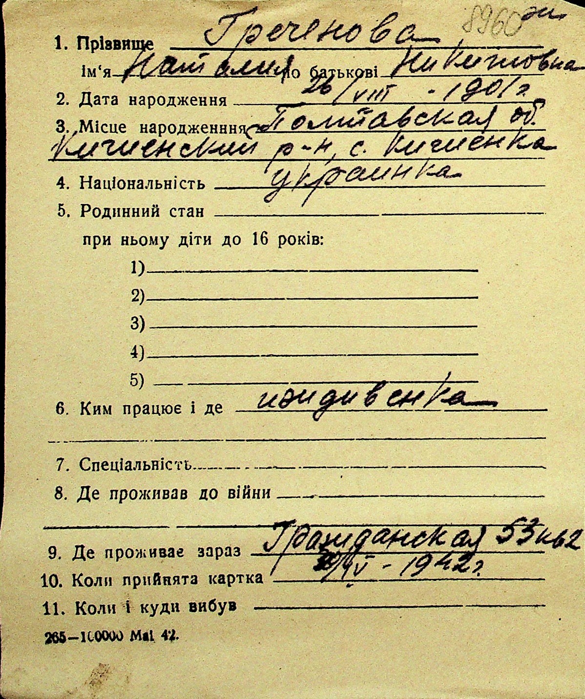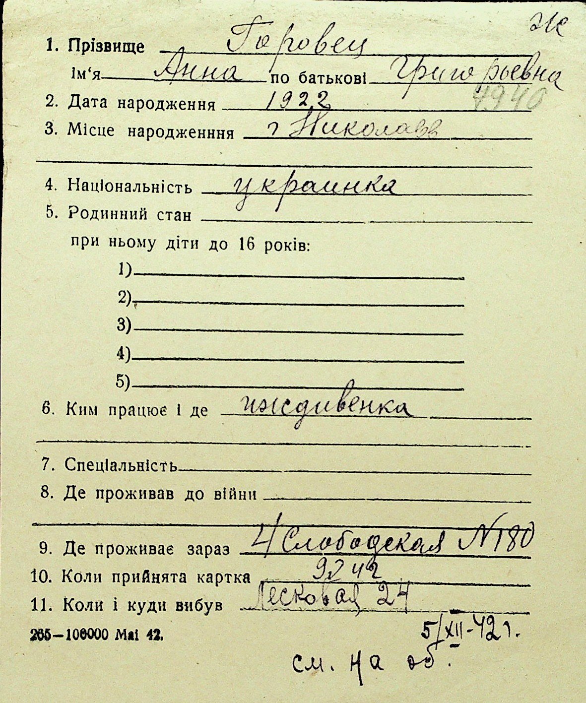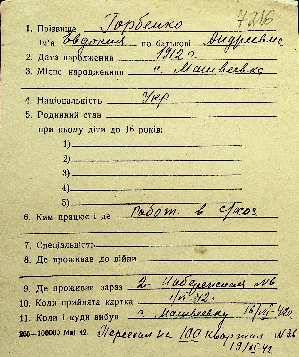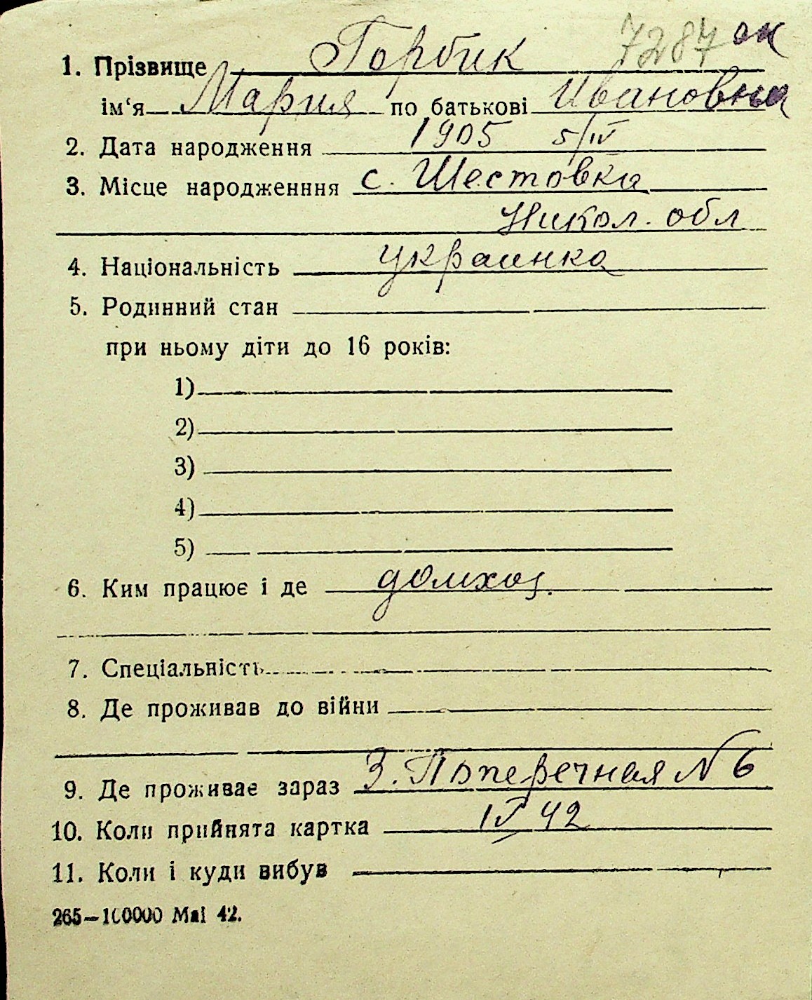• • Перелік карток до фонду № Н-1016