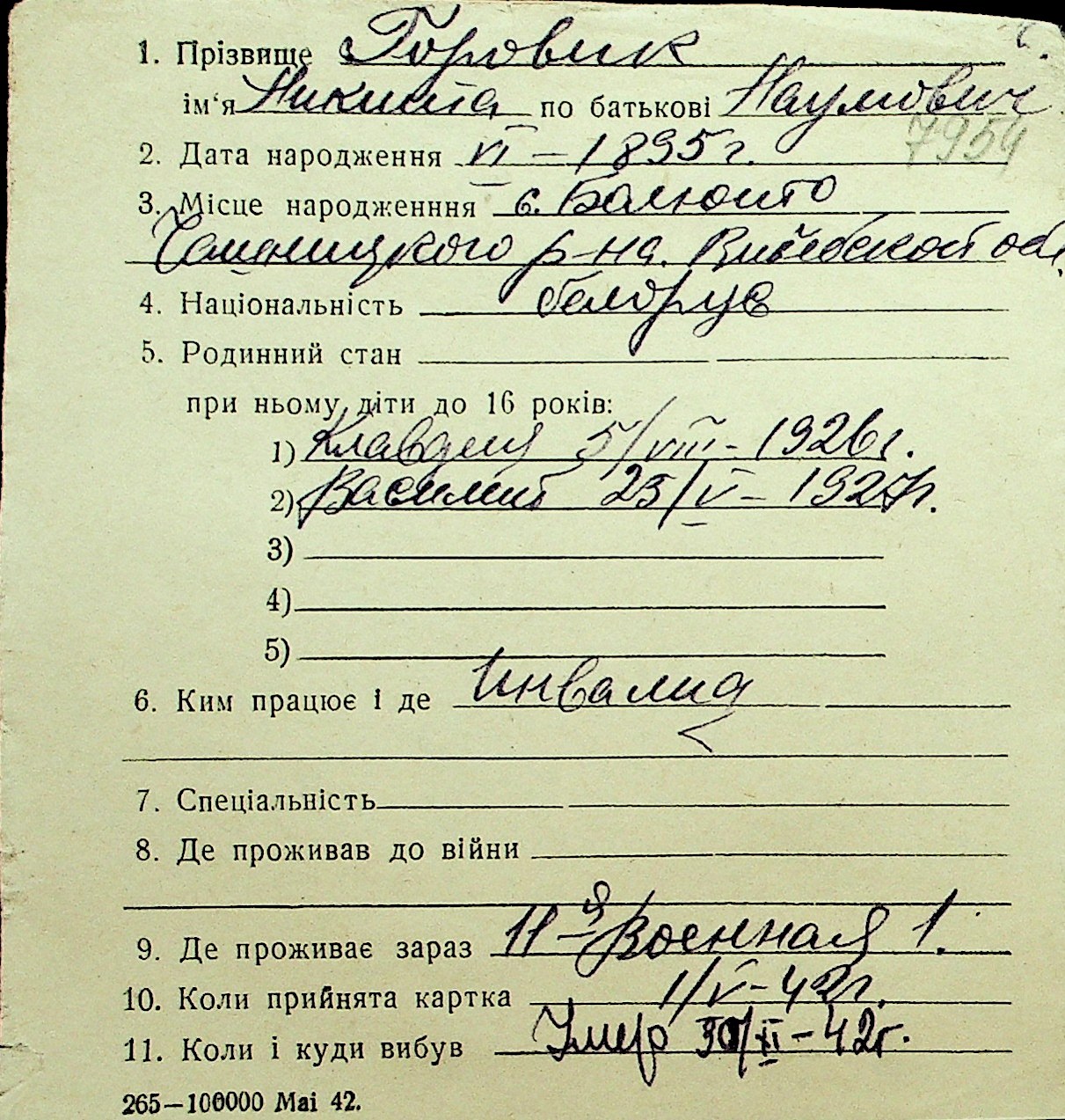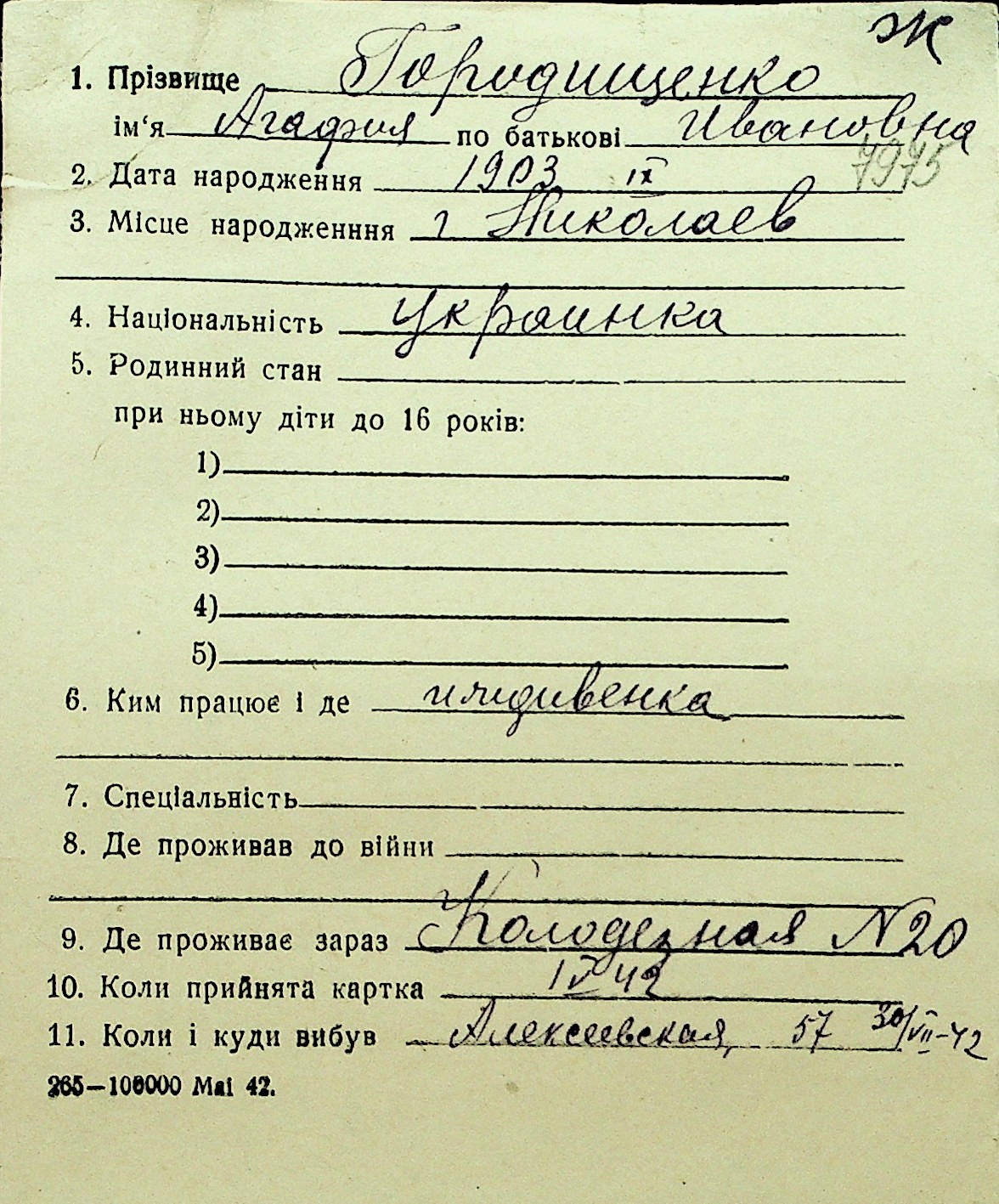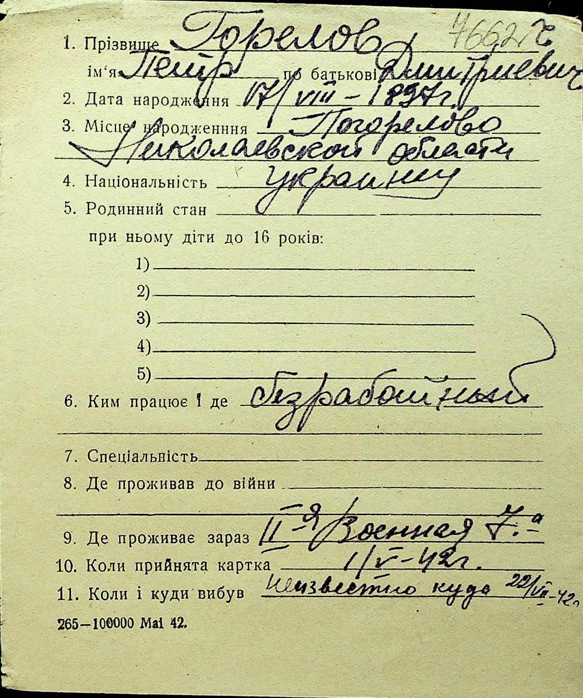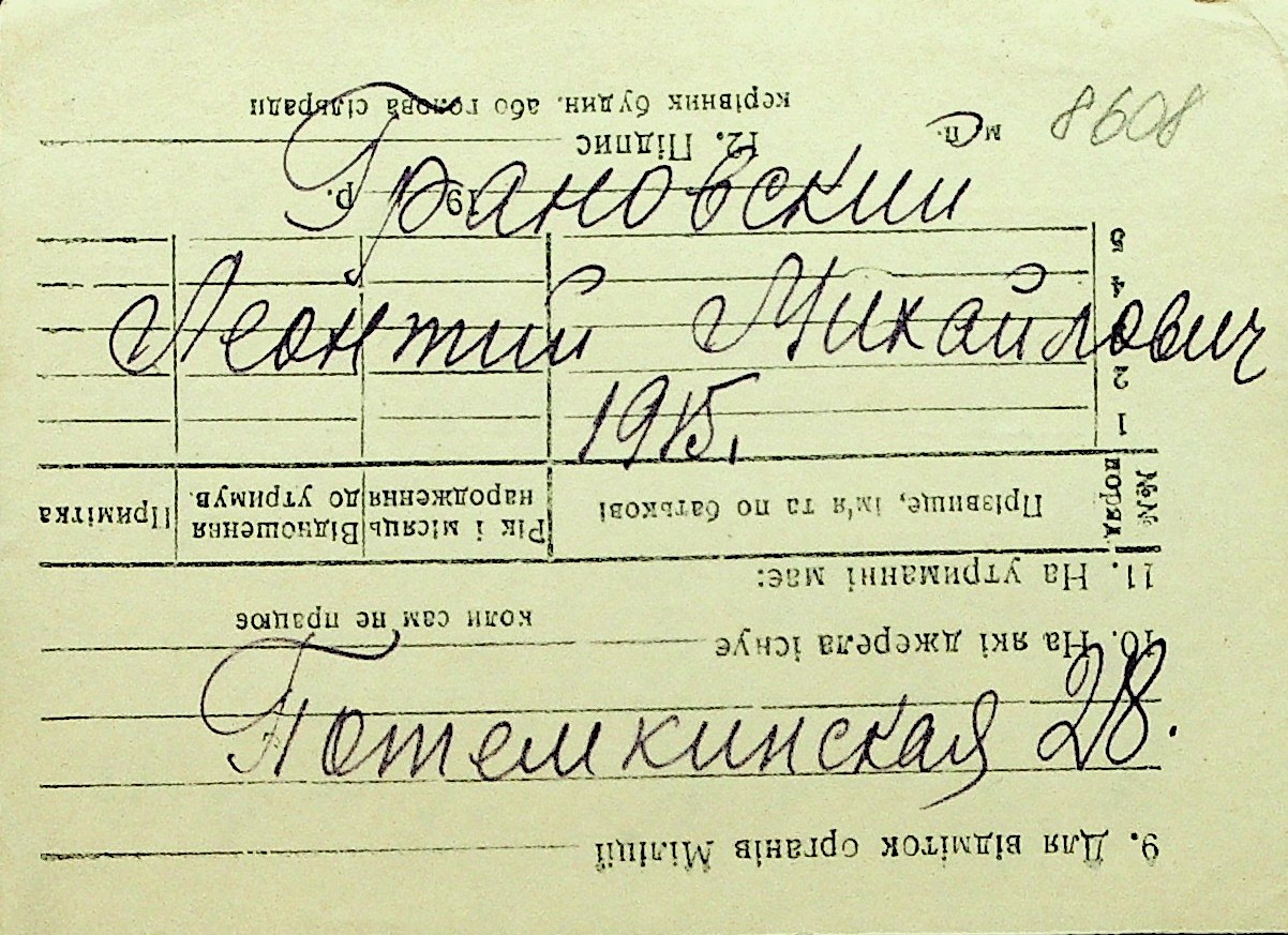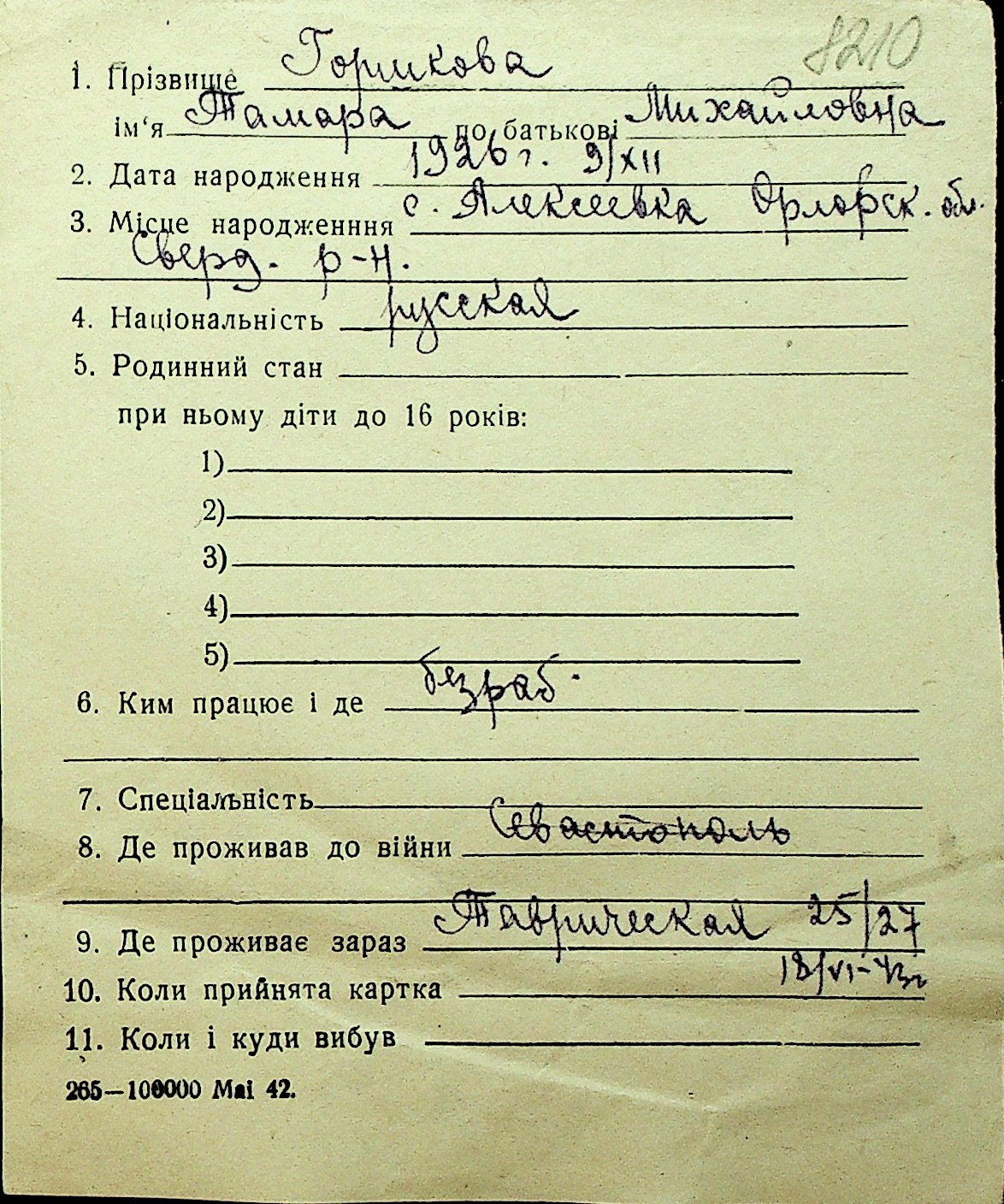 • • Перелік карток до фонду № Н-1016