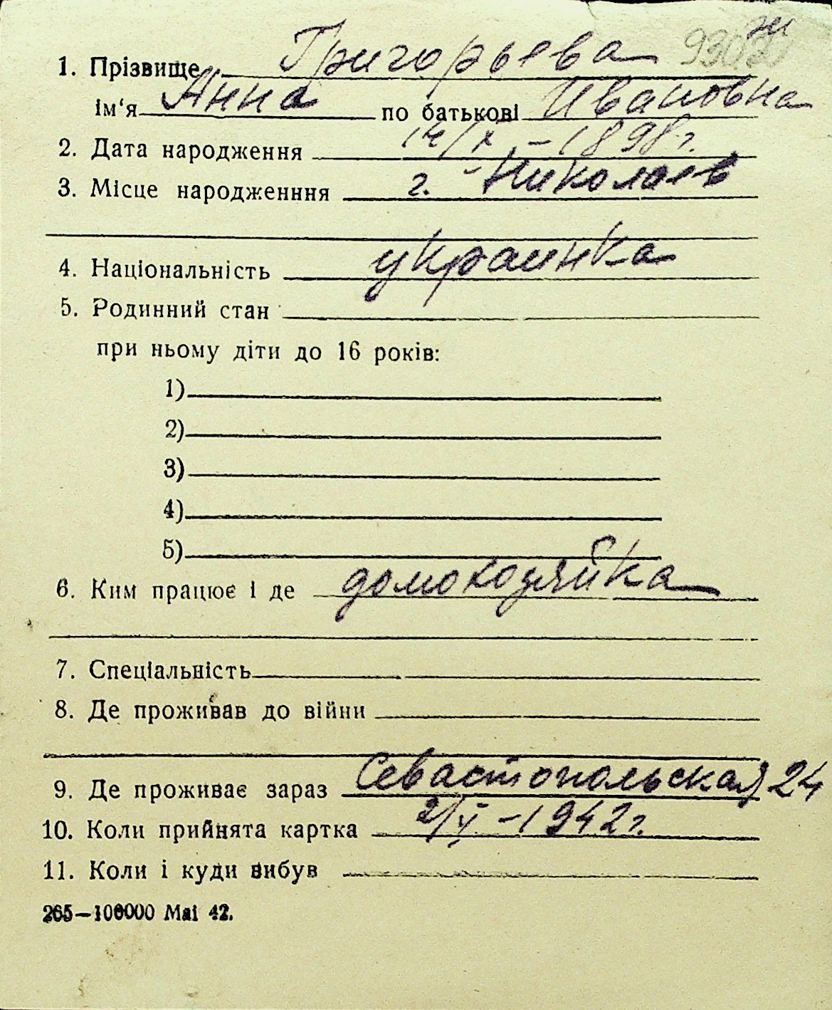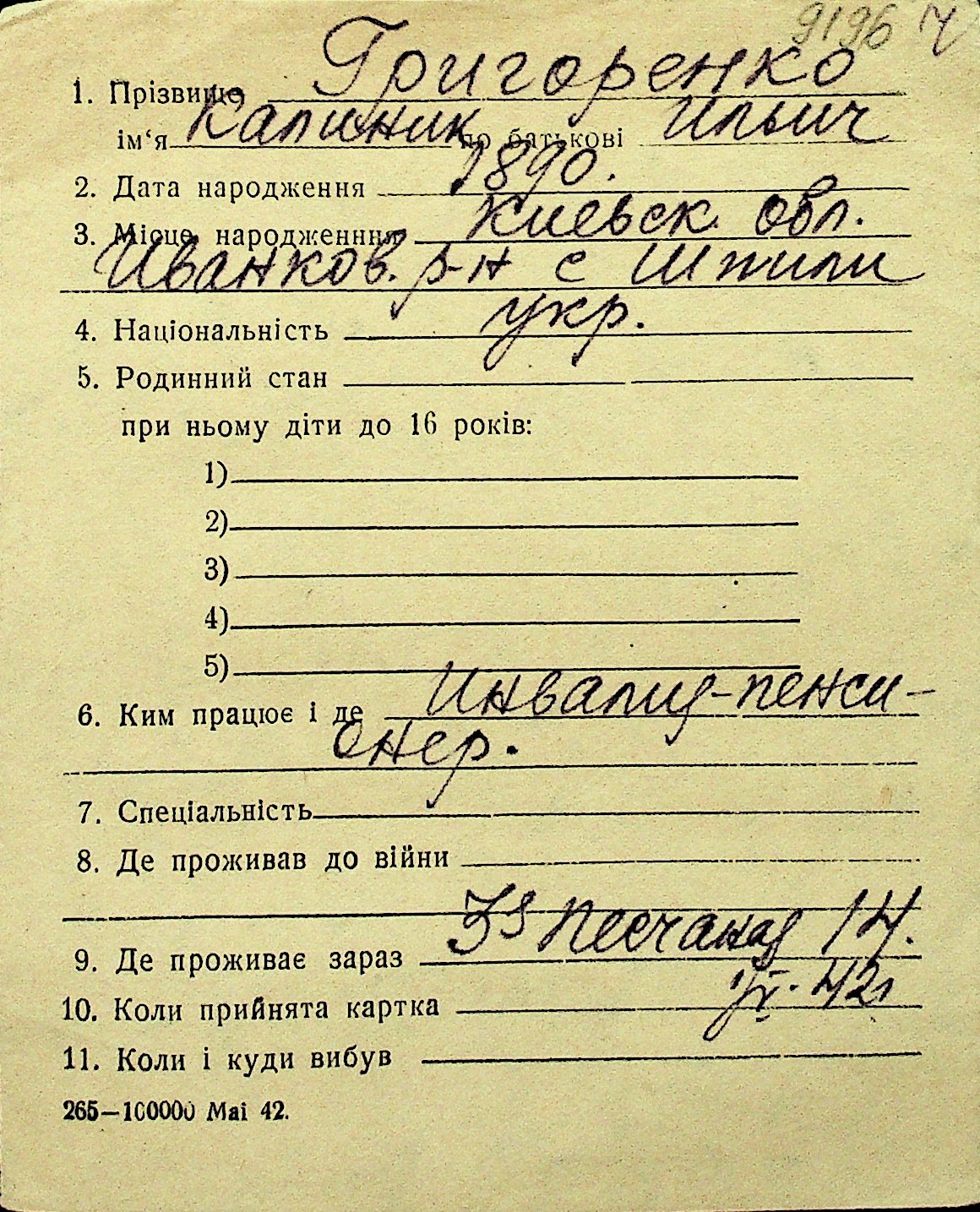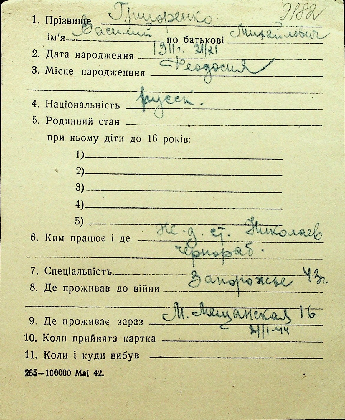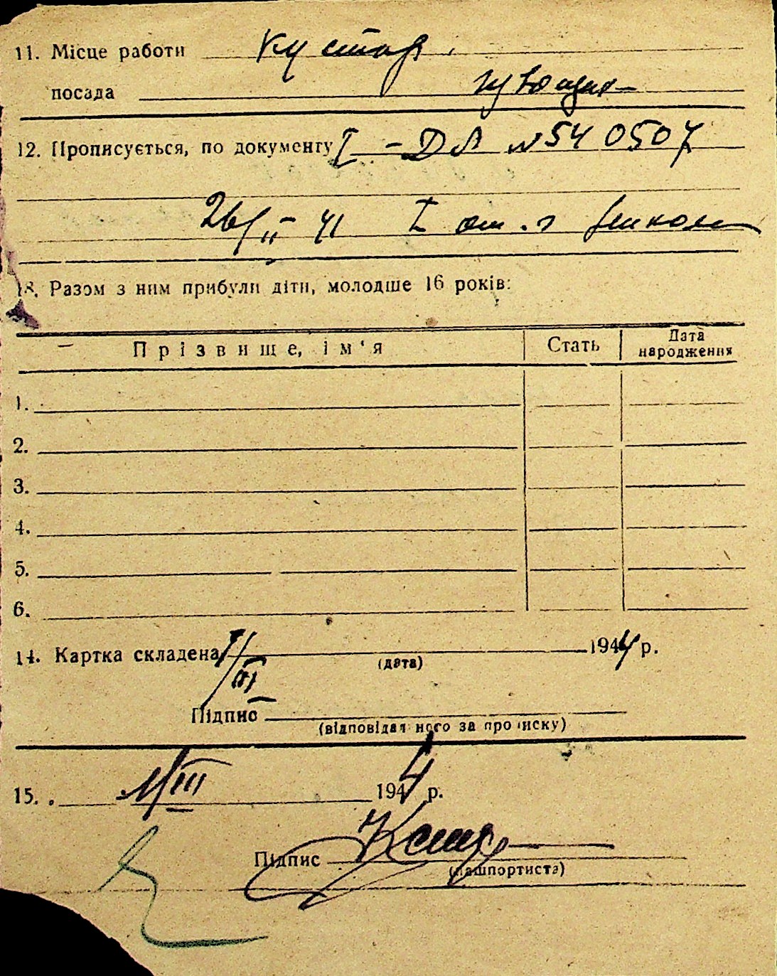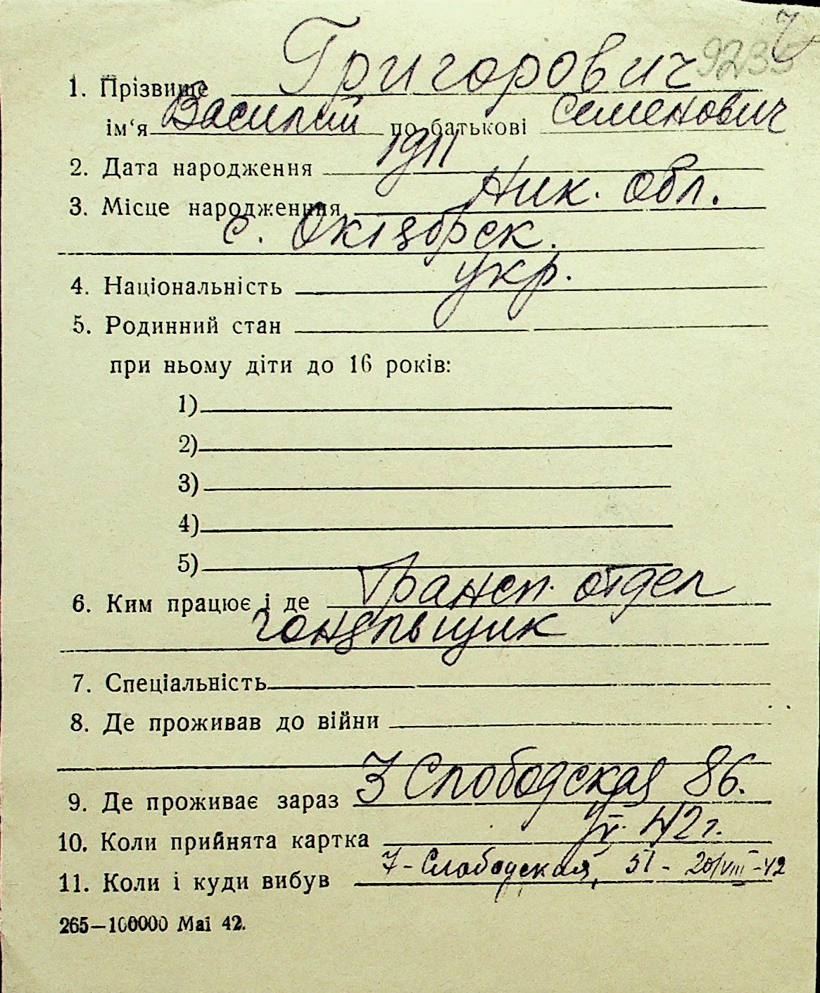 • • Перелік карток до фонду № Н-1016